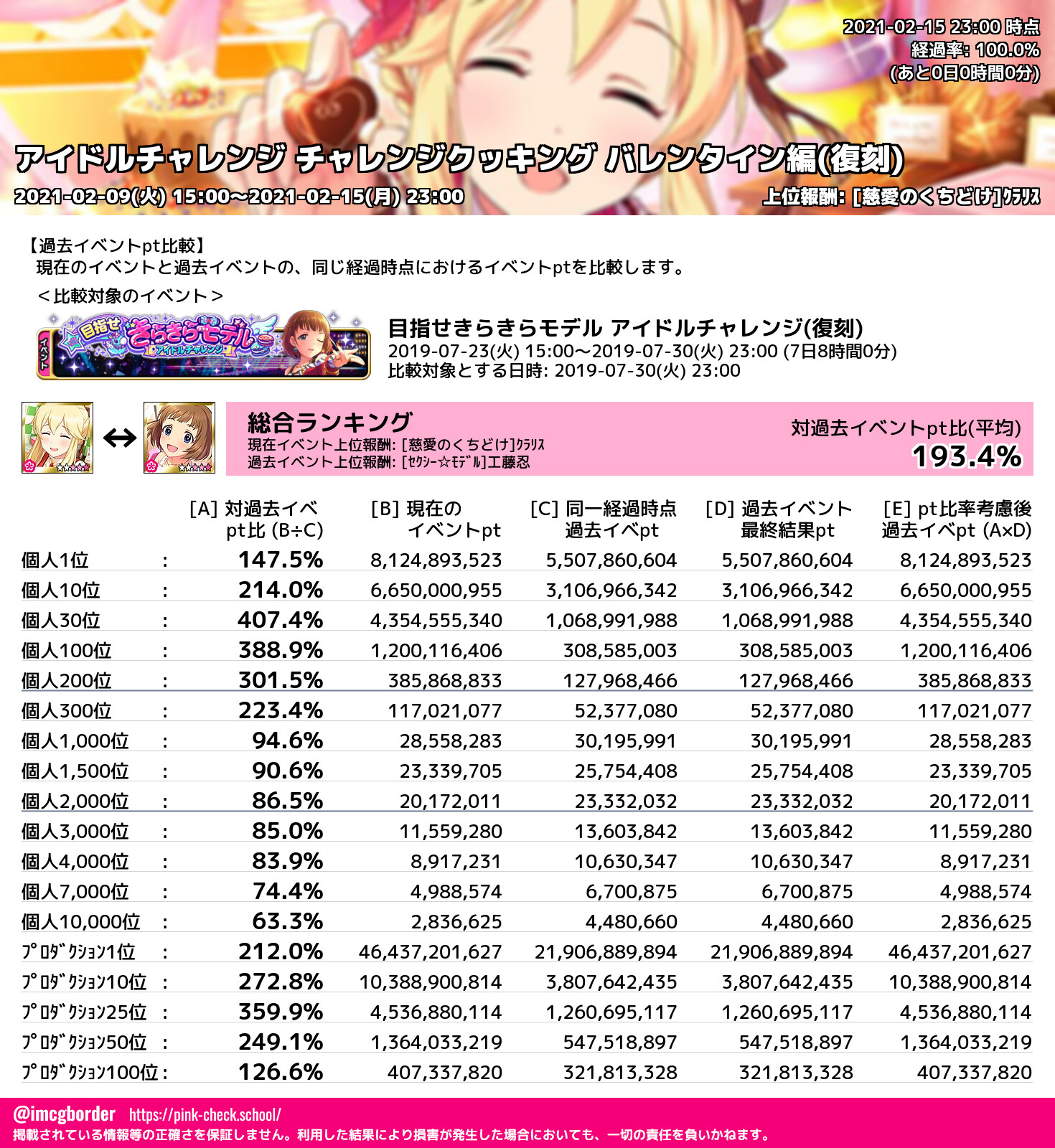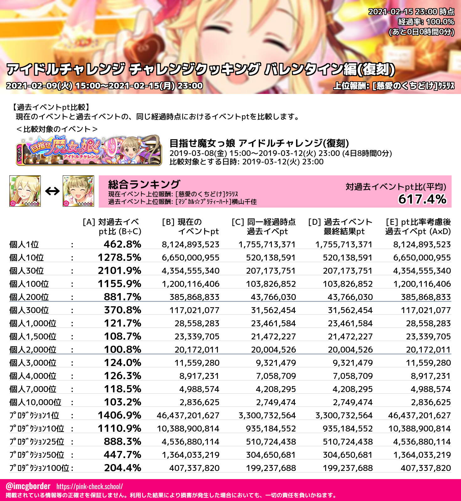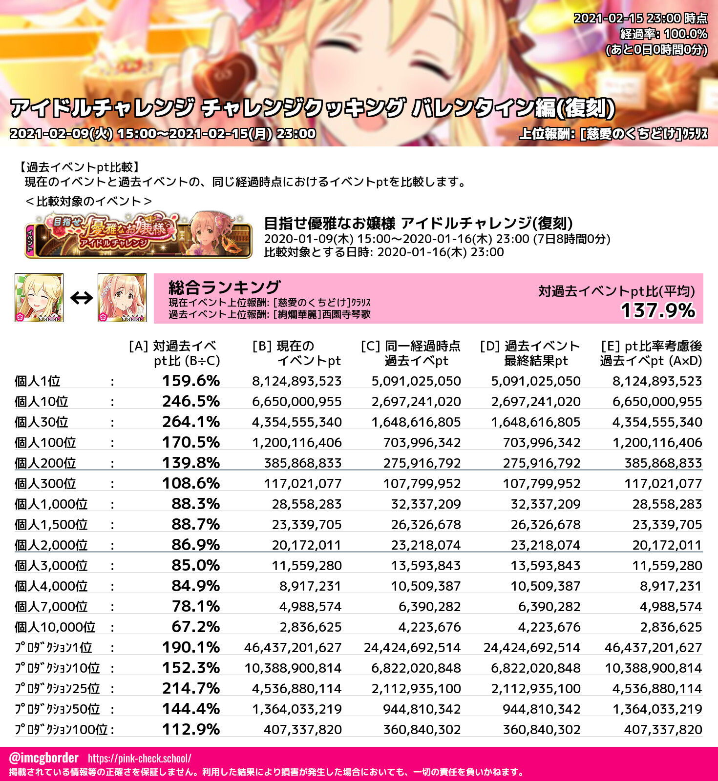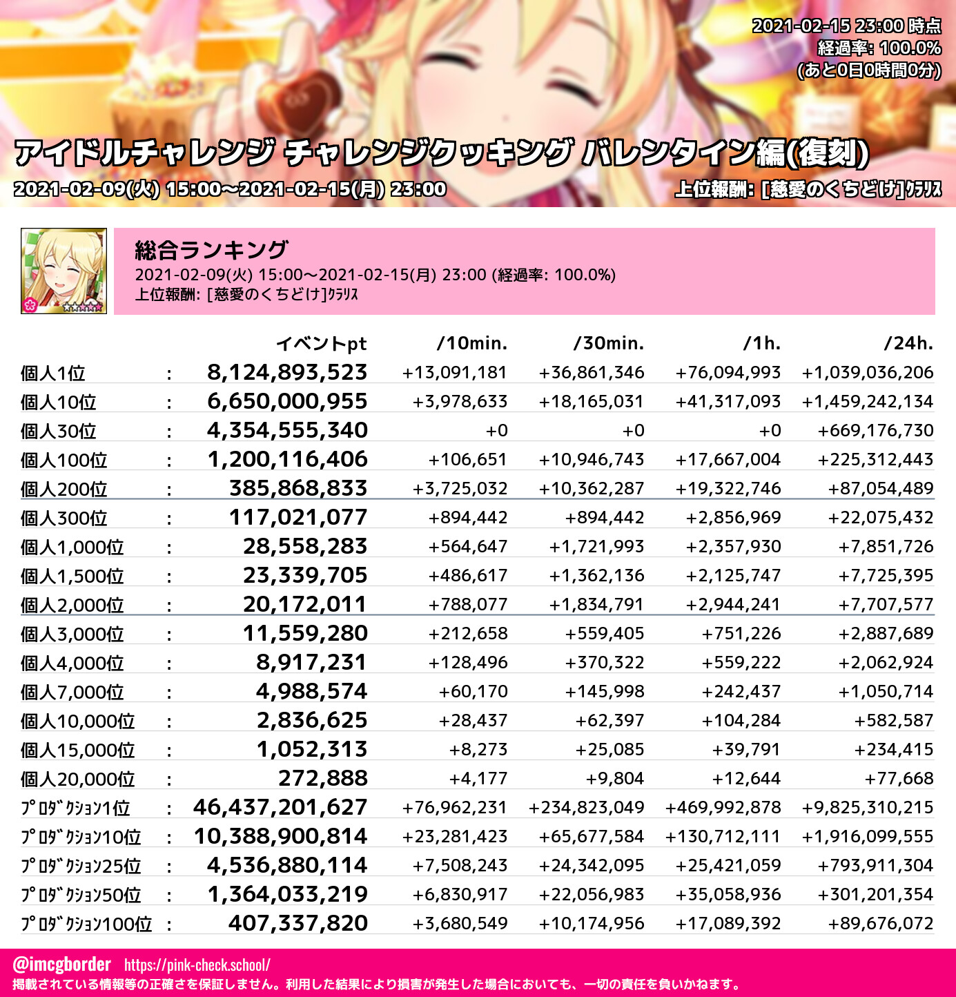 アイドルチャレンジ チャレンジクッキング バレンタイン編(復刻) 結果集計完了