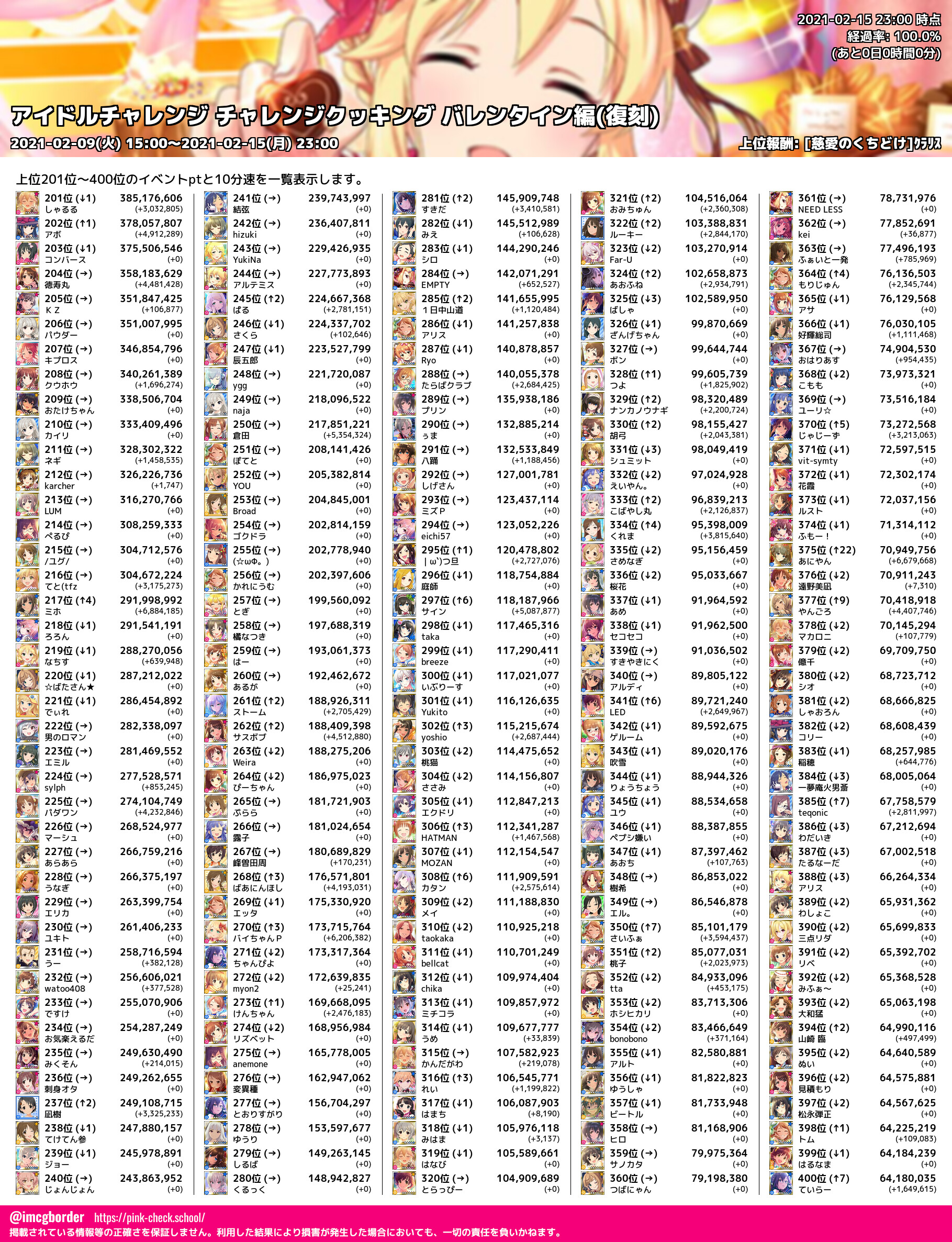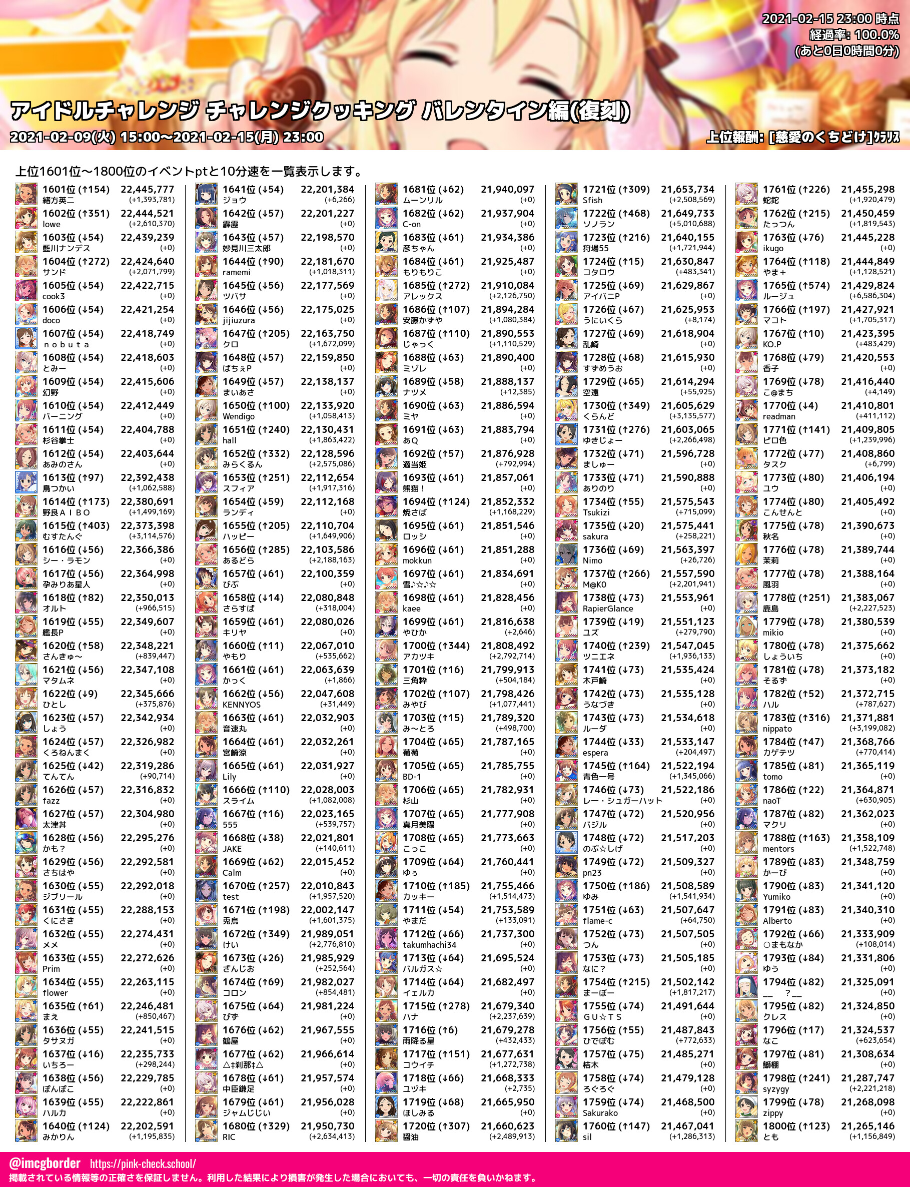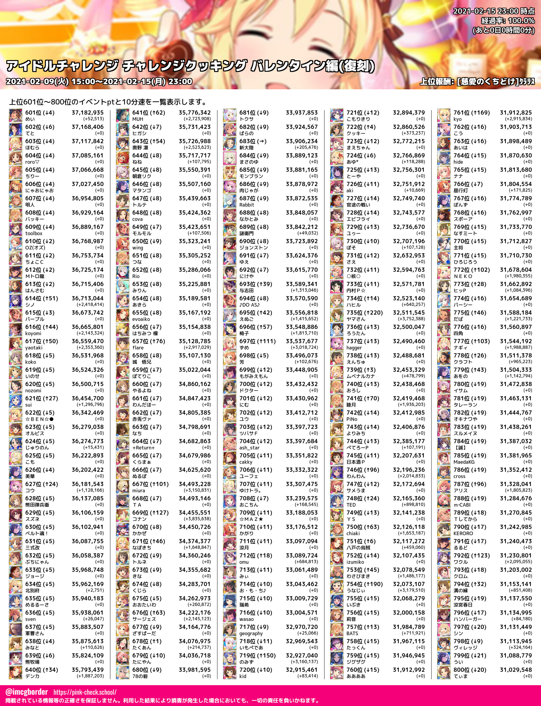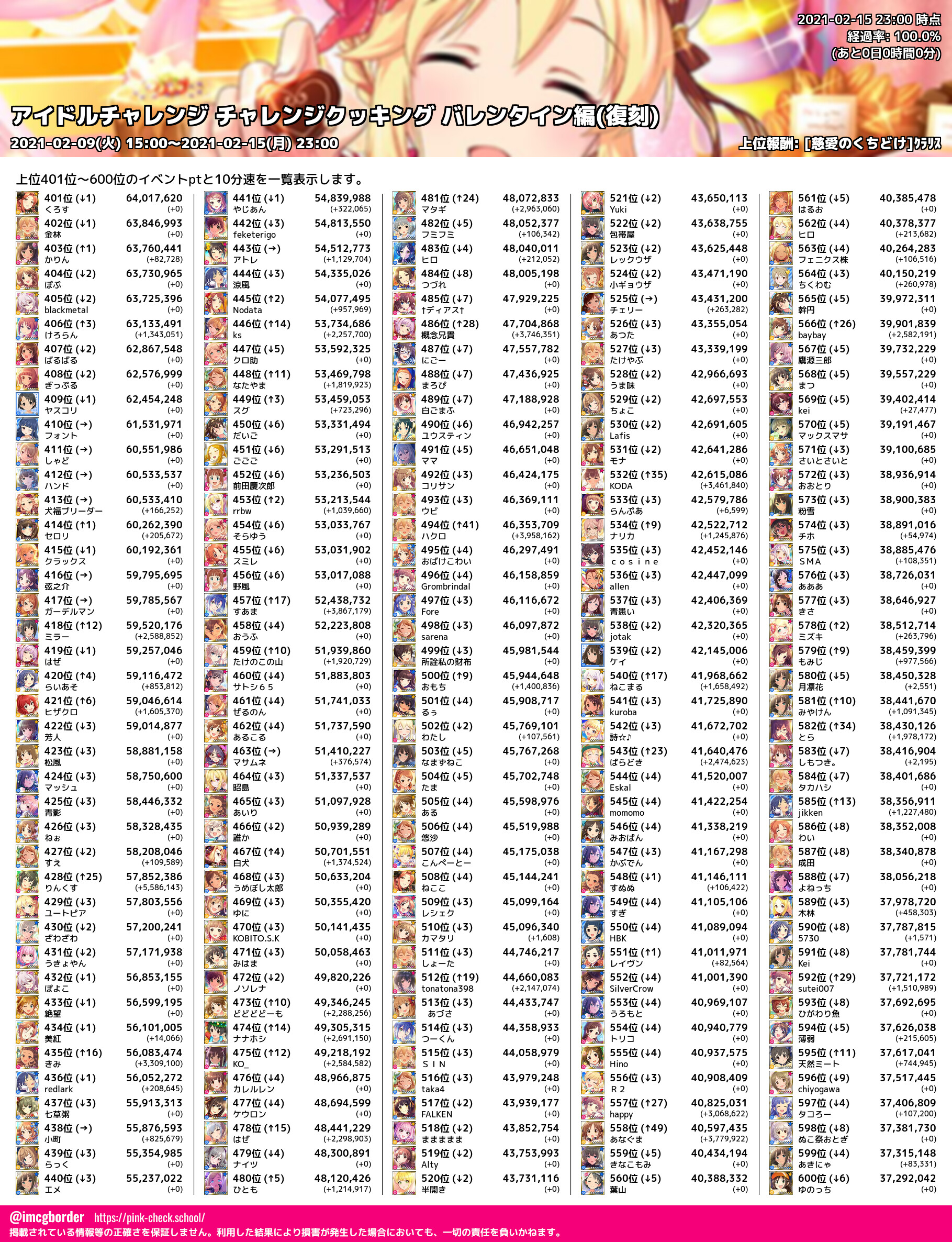 上位プロデューサースコア (2021-02-15 23:00 時点)