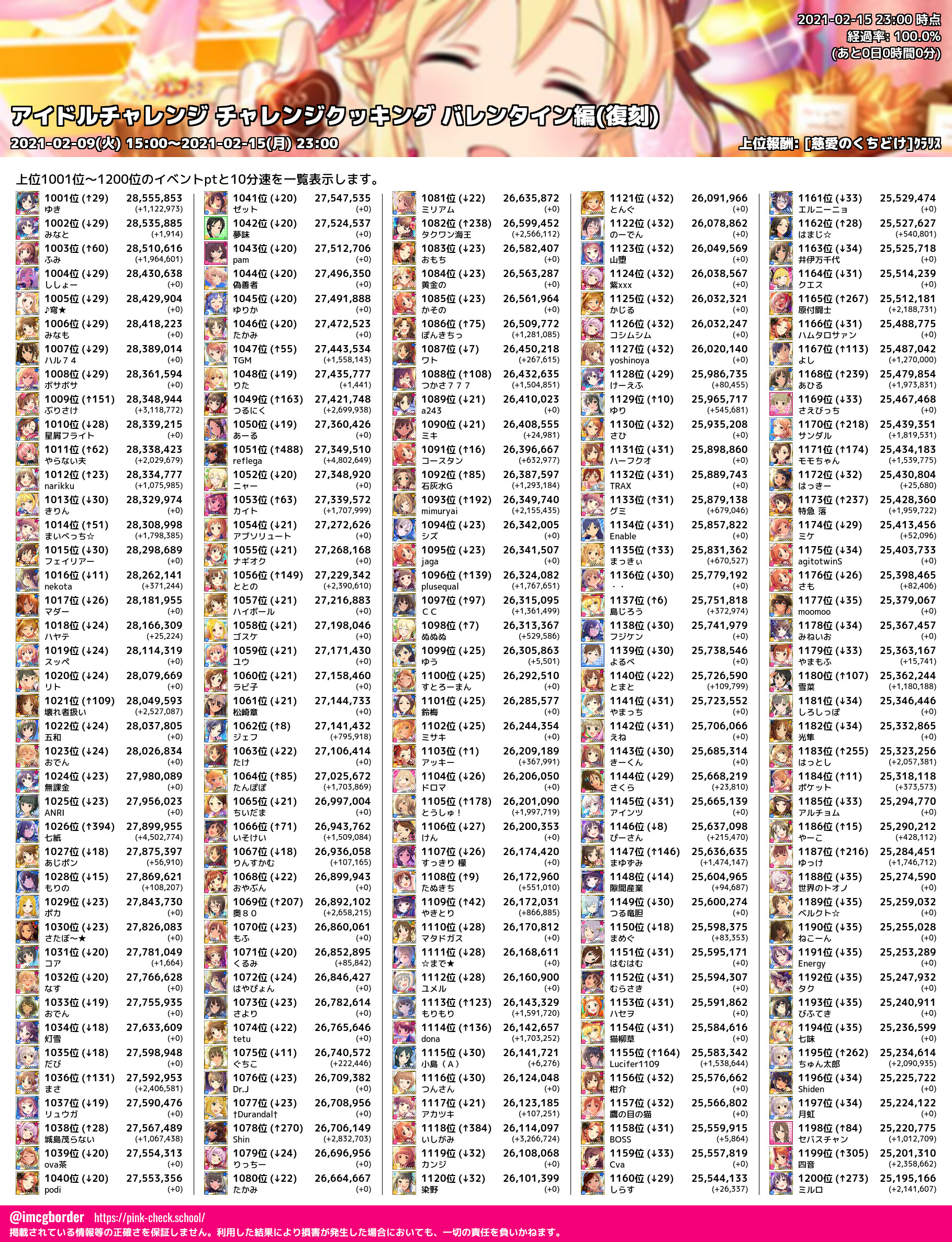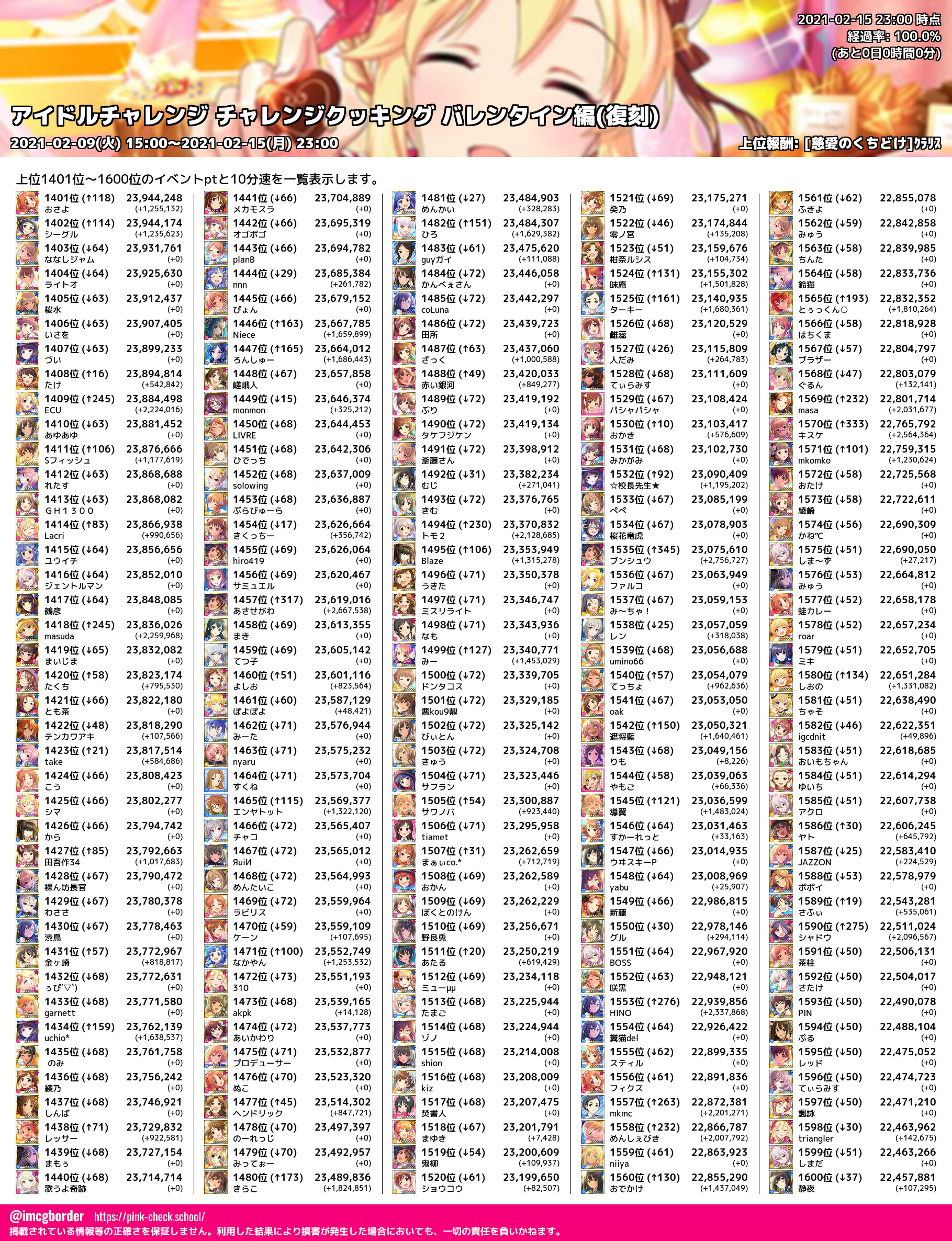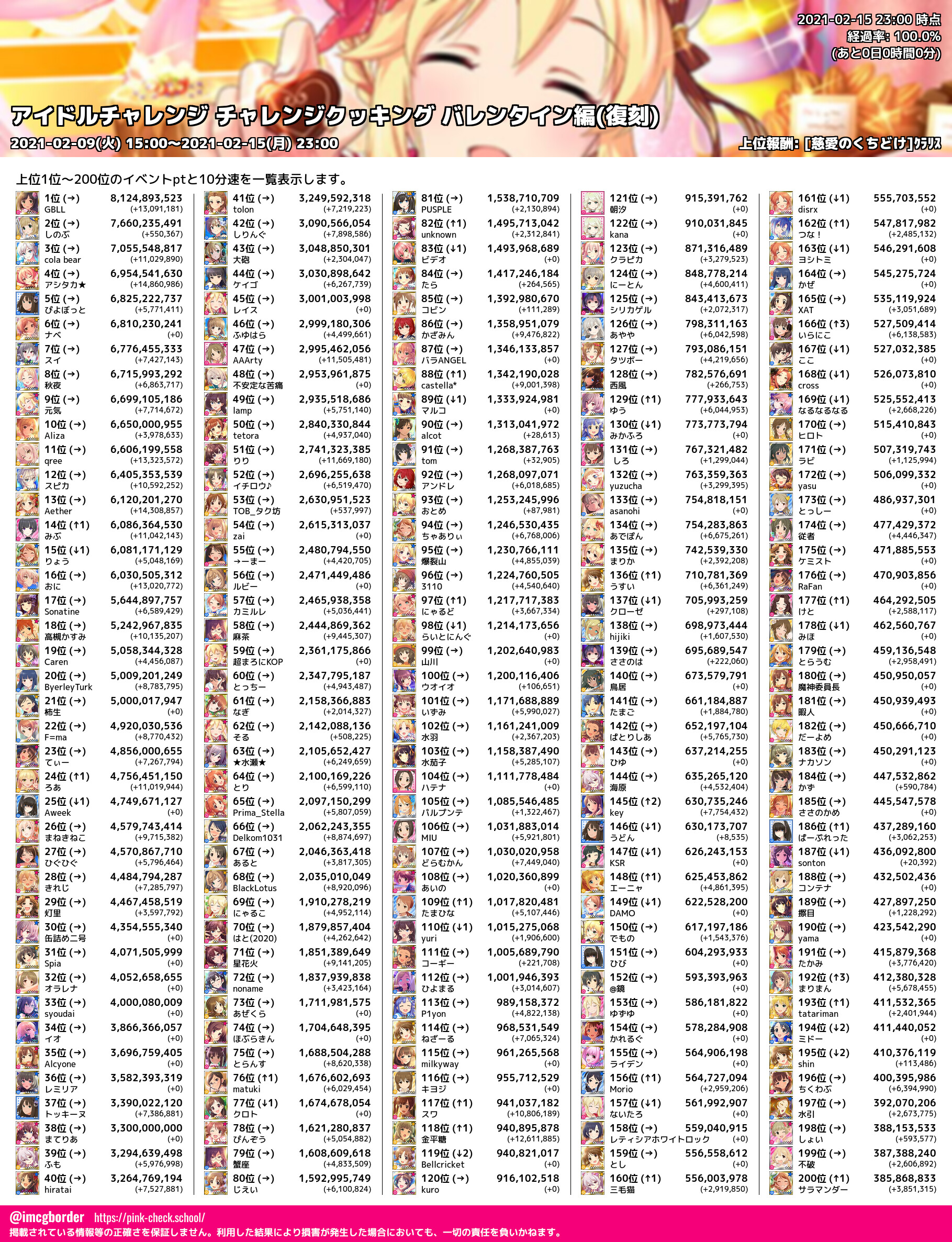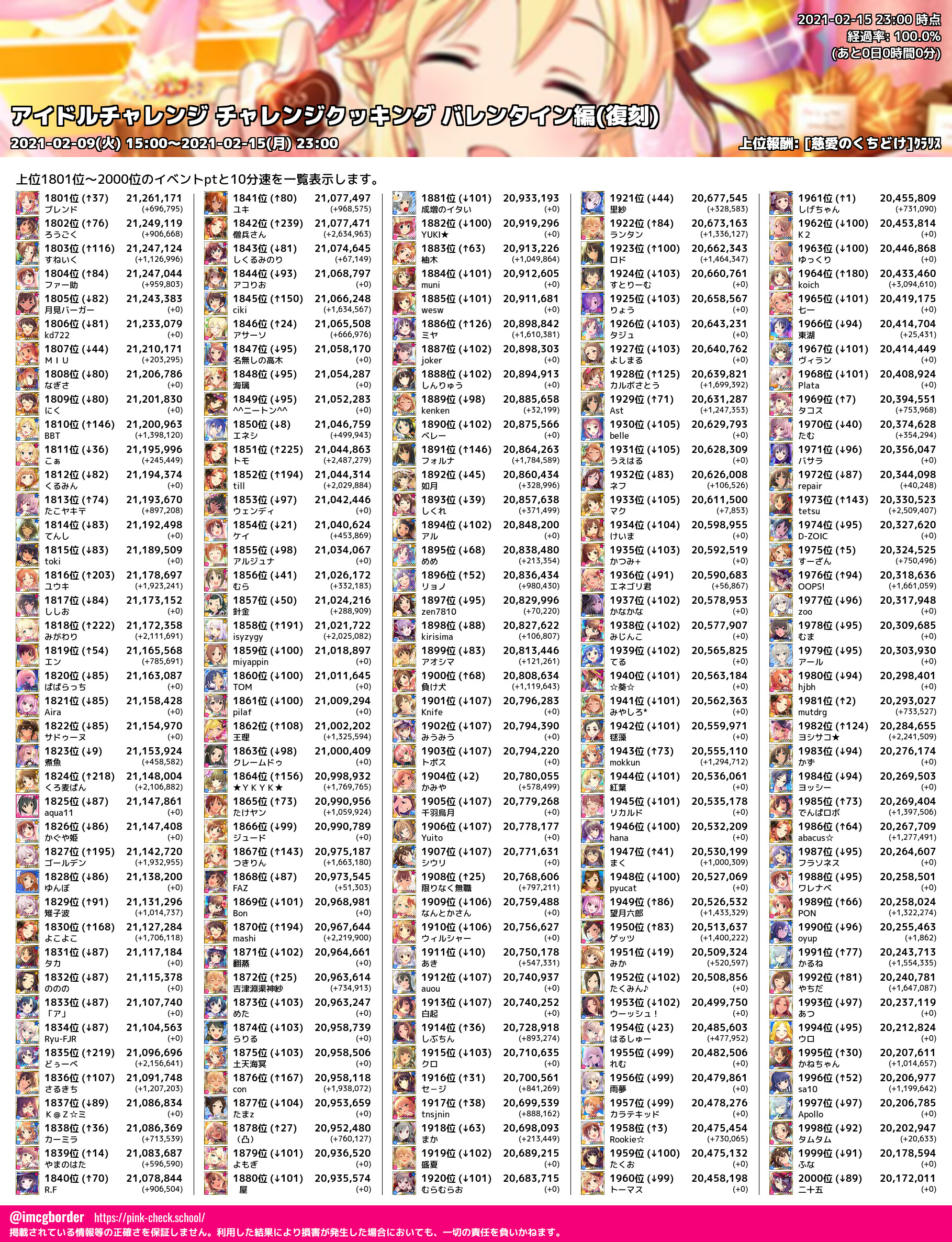 上位プロデューサースコア (2021-02-15 23:00 時点)