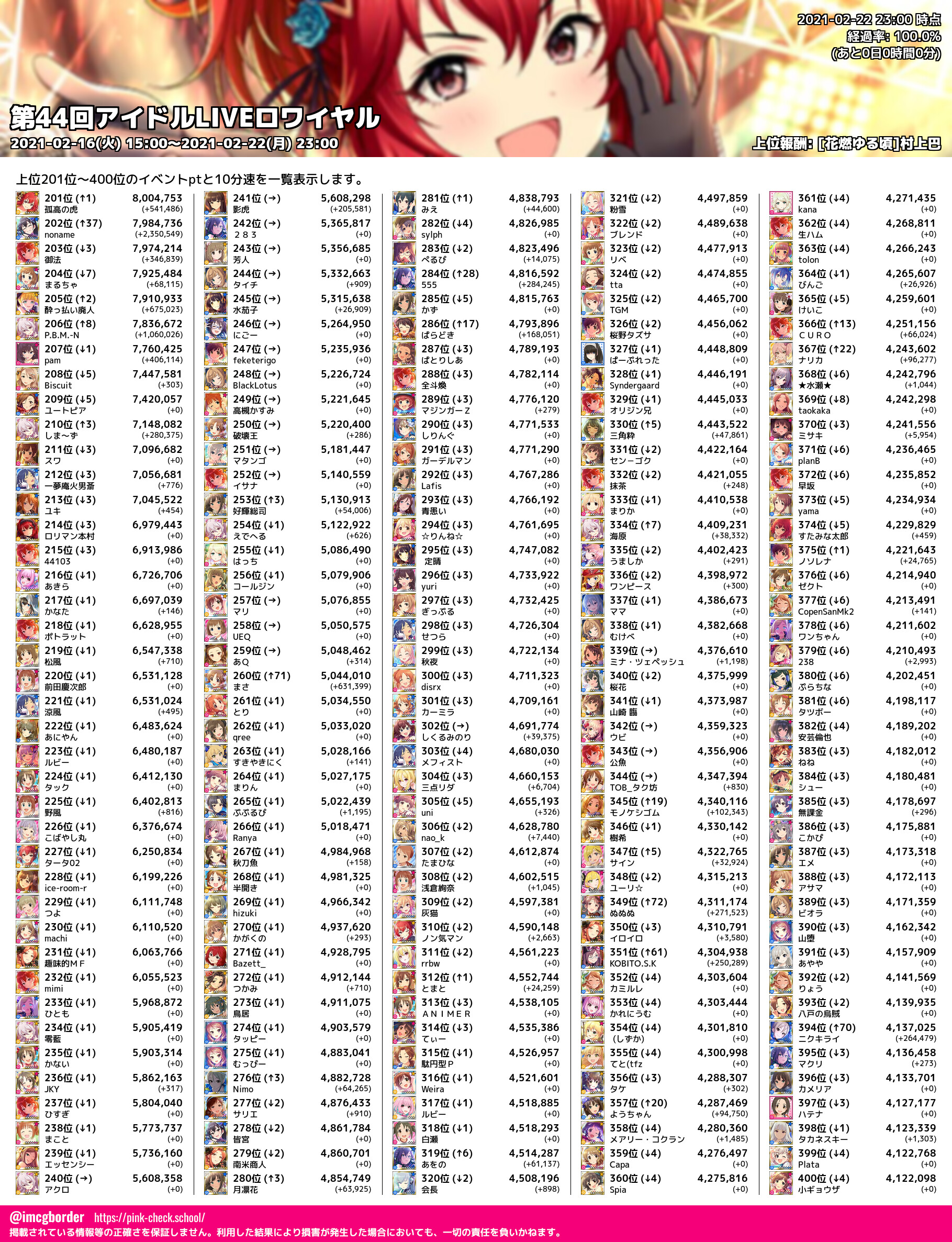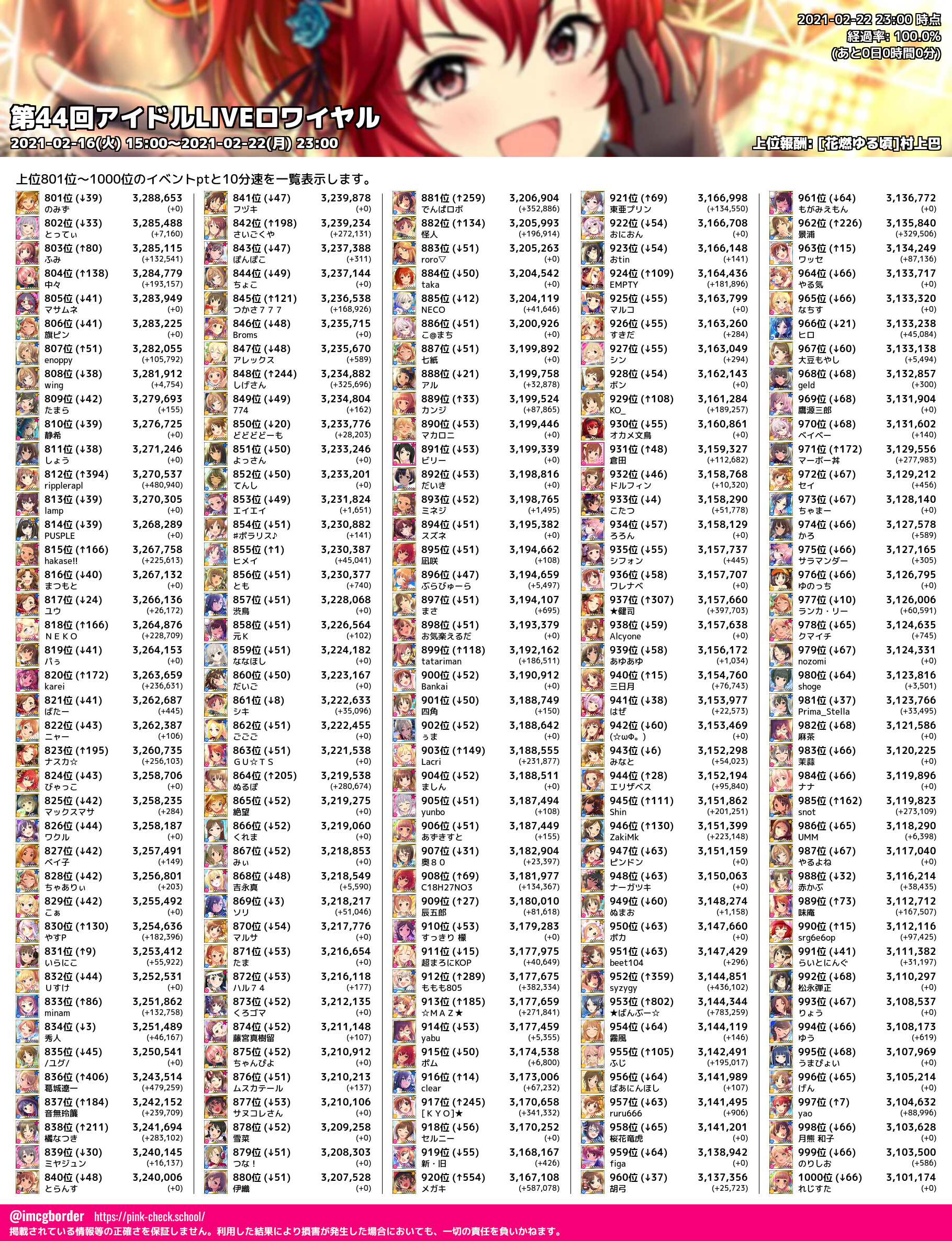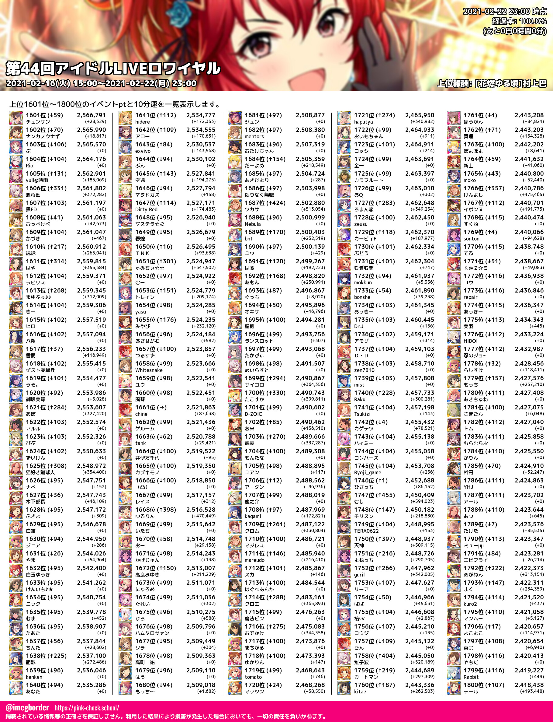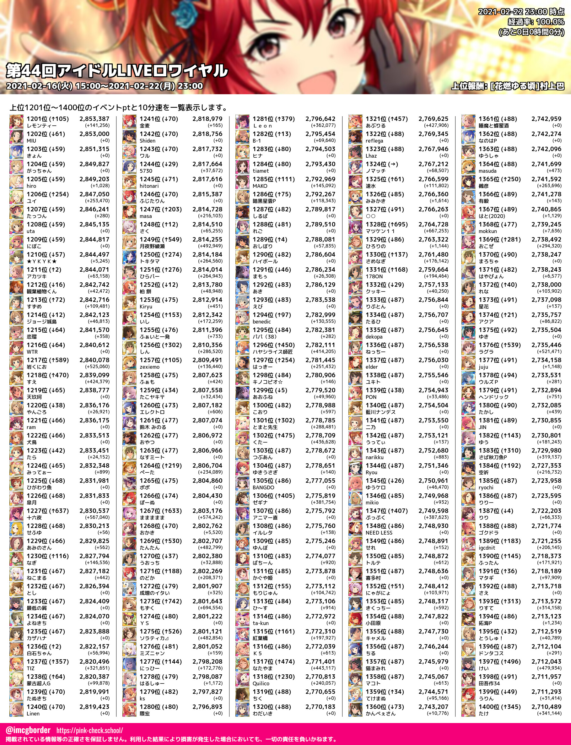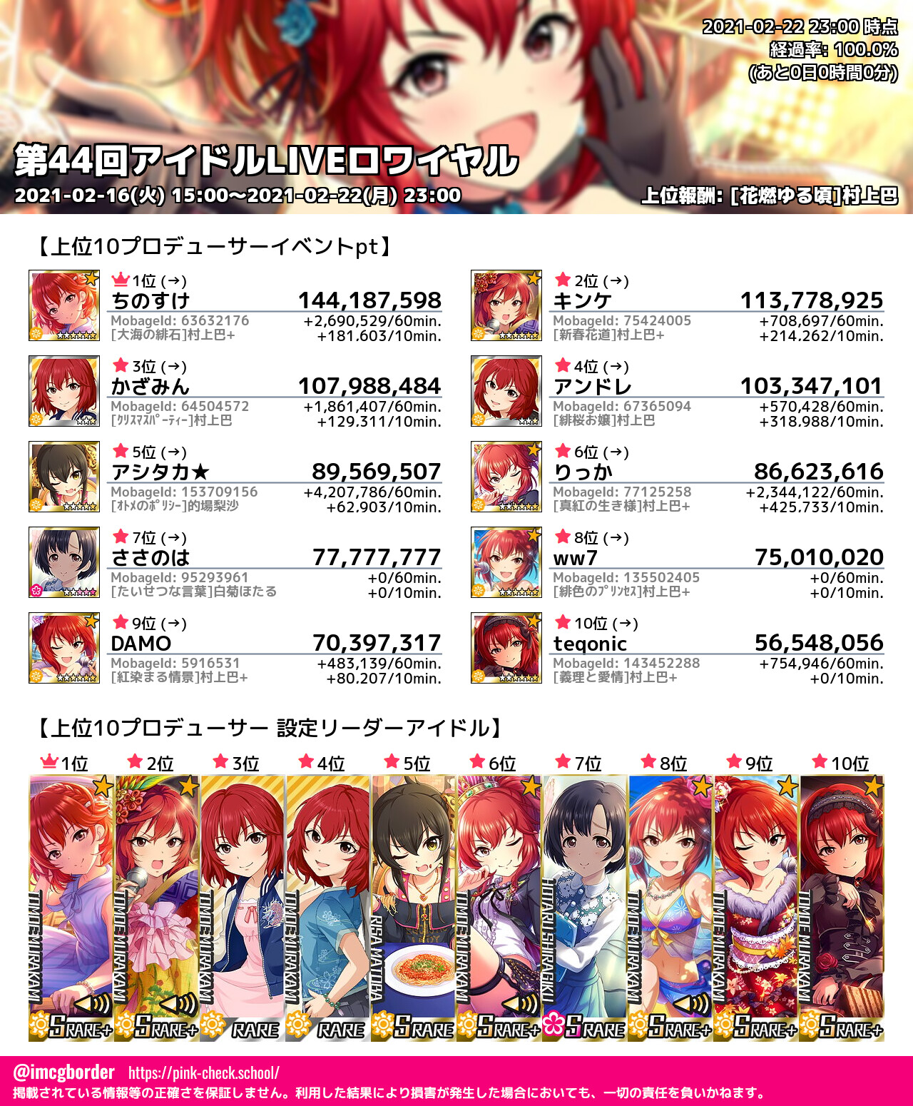 上位プロデューサースコア (2021-02-22 23:00 時点)