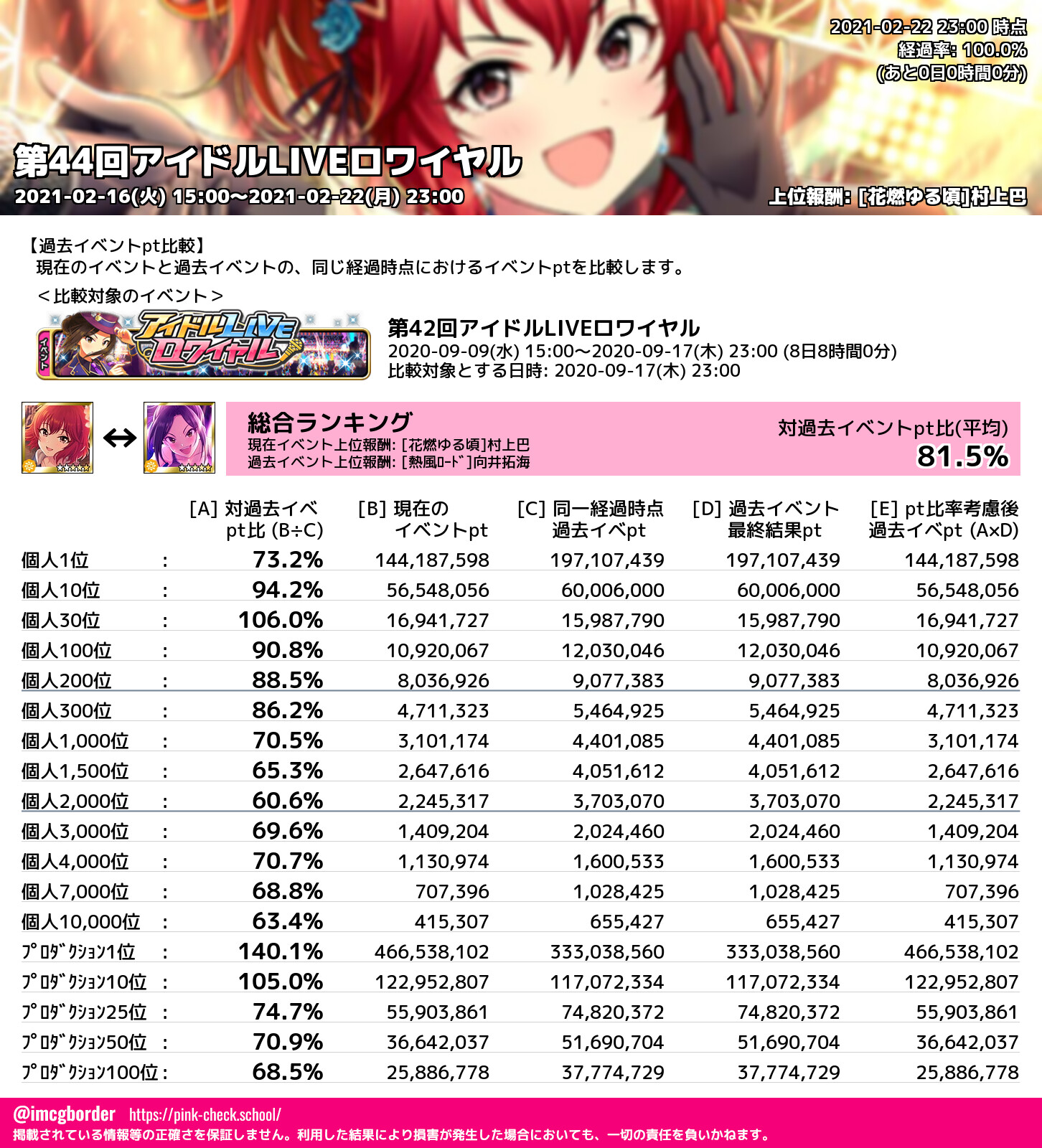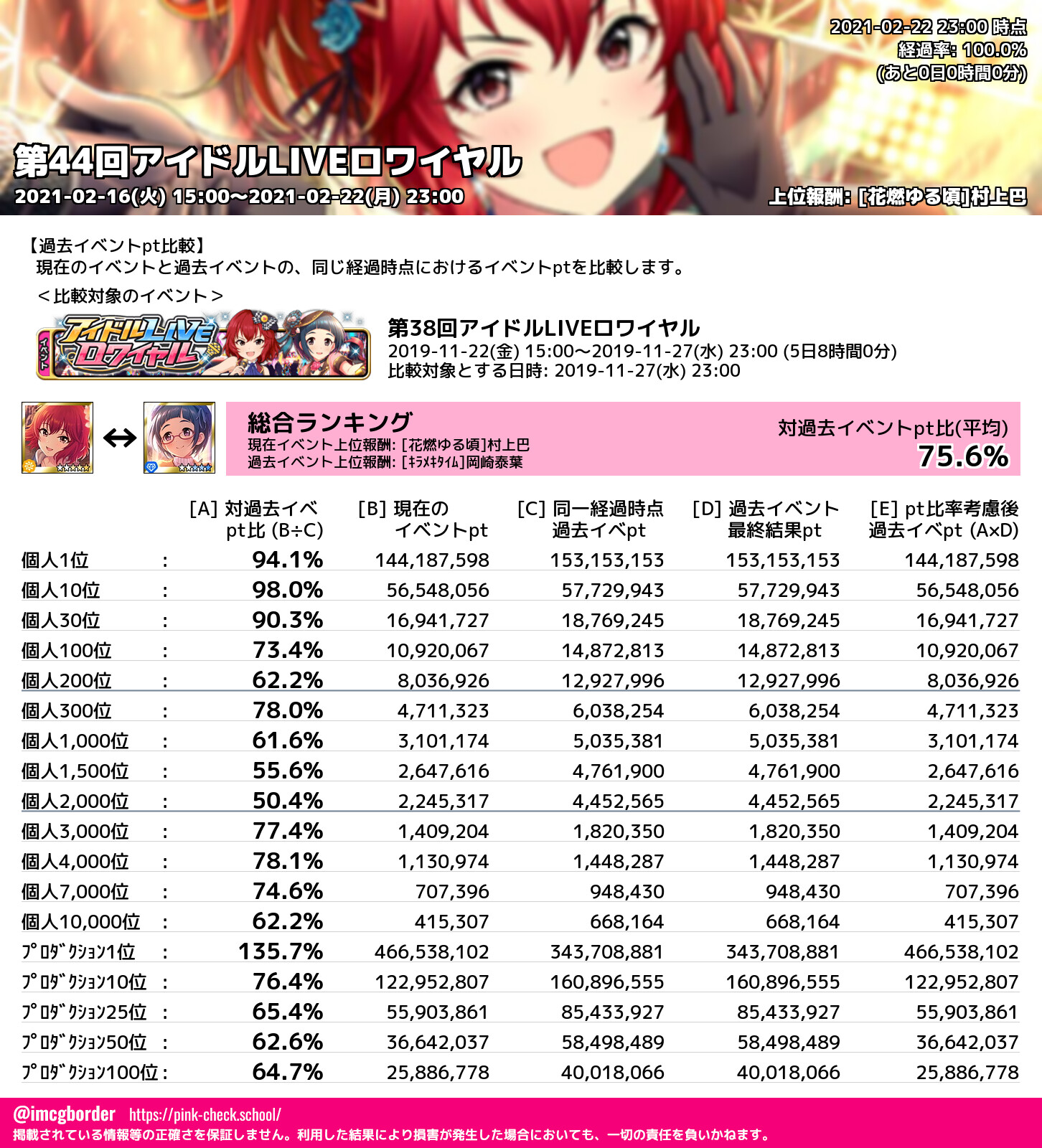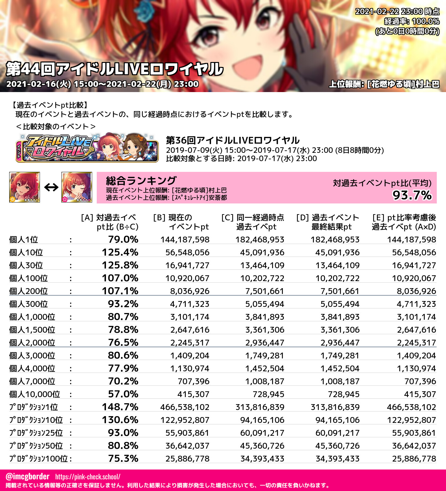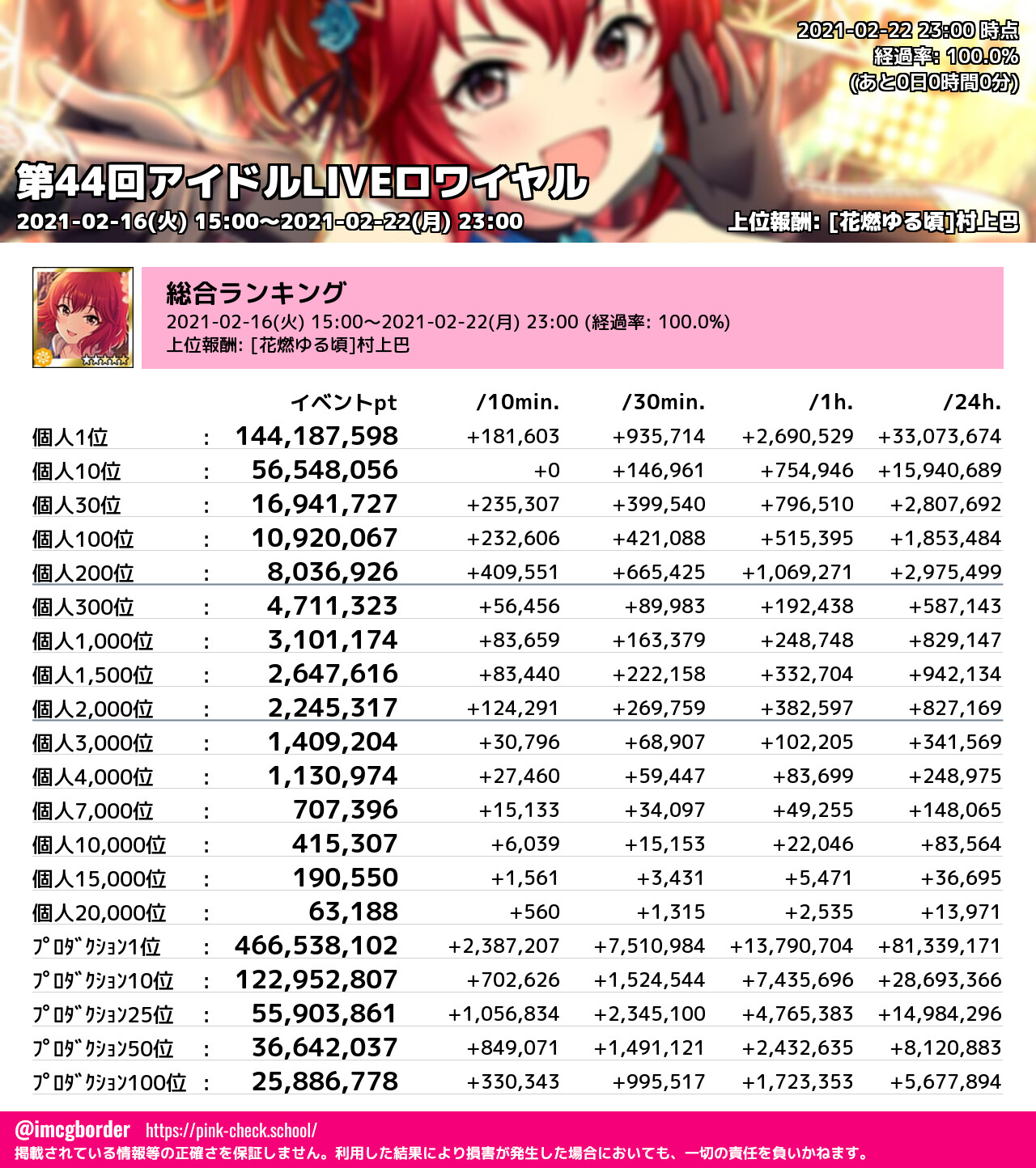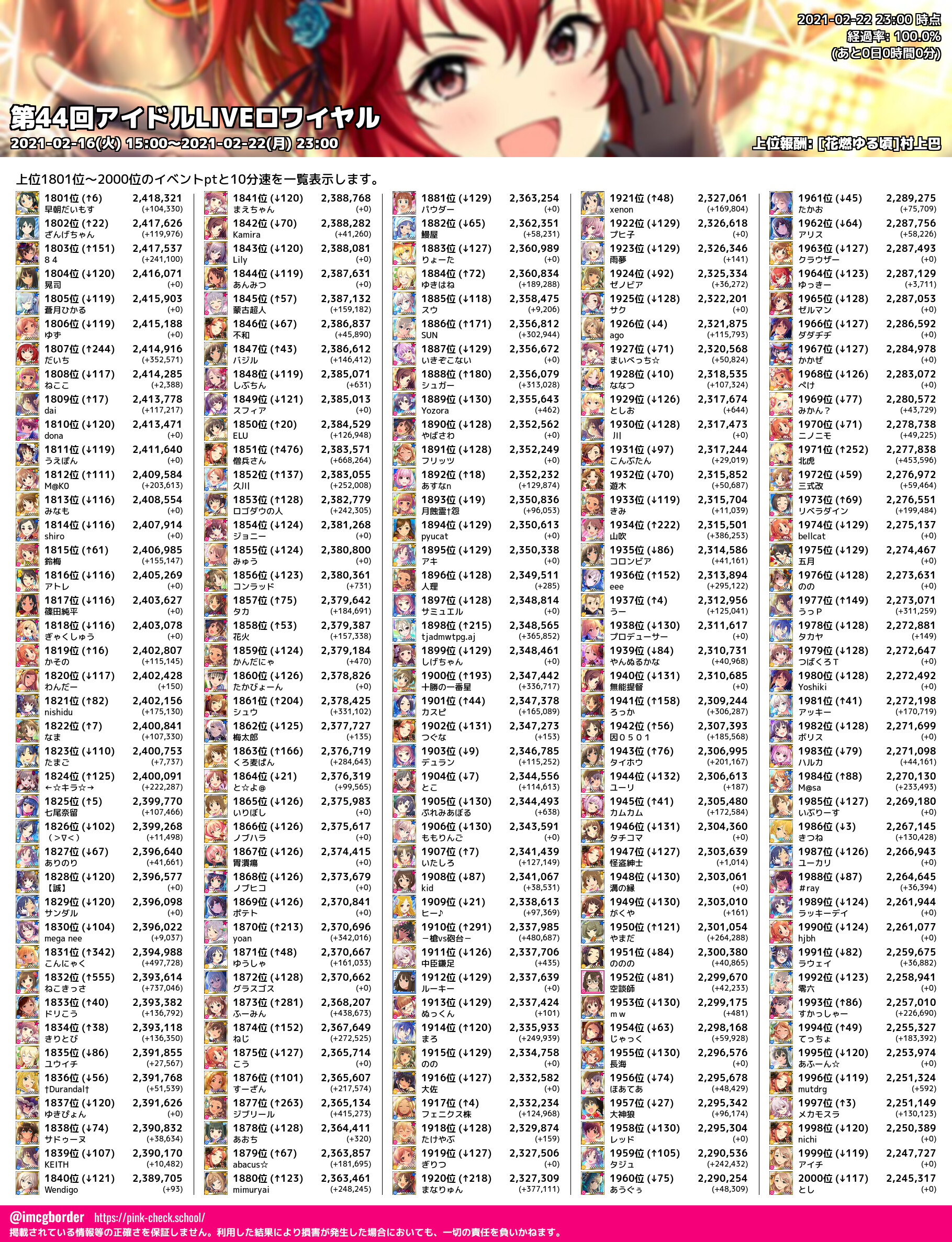 上位プロデューサースコア (2021-02-22 23:00 時点)