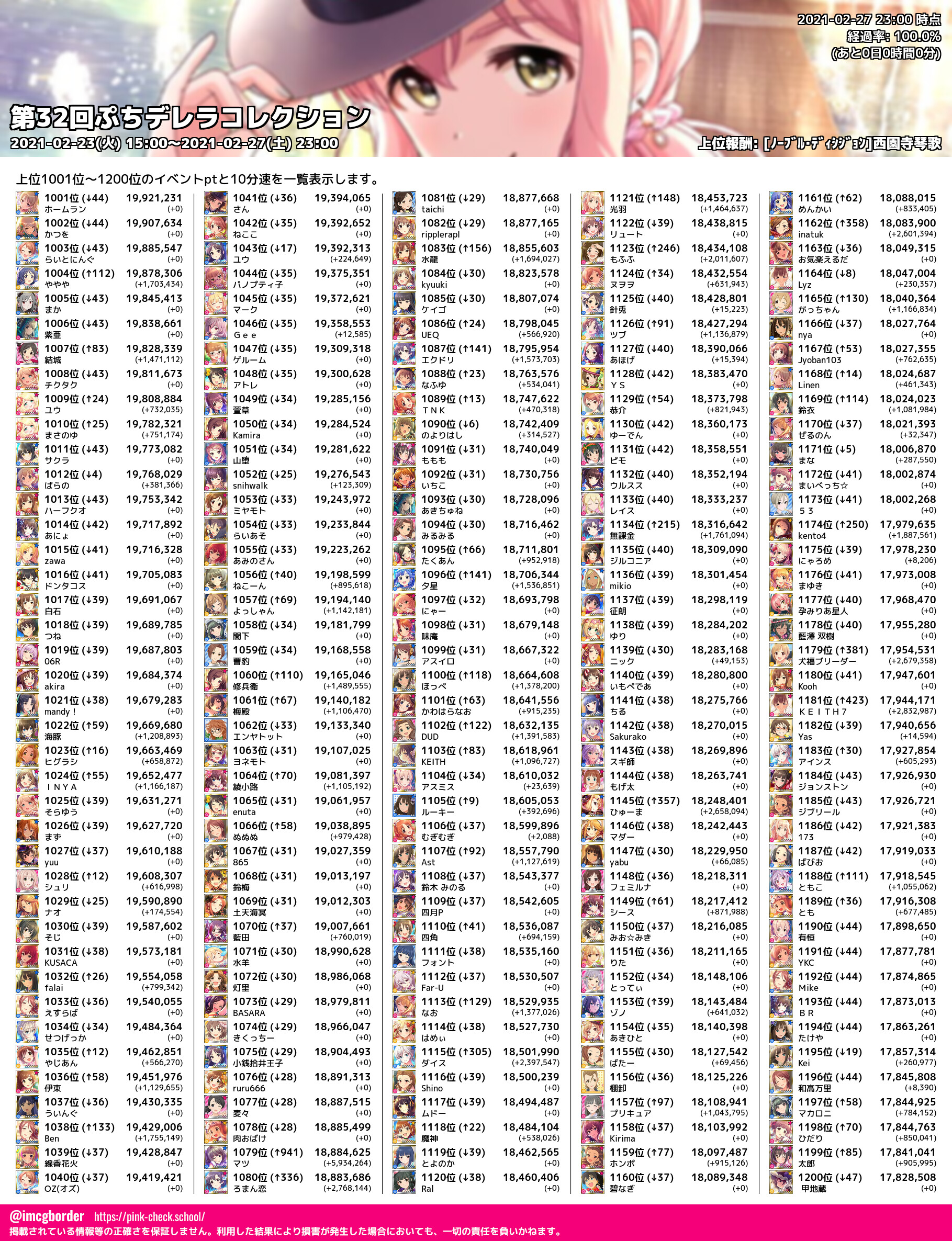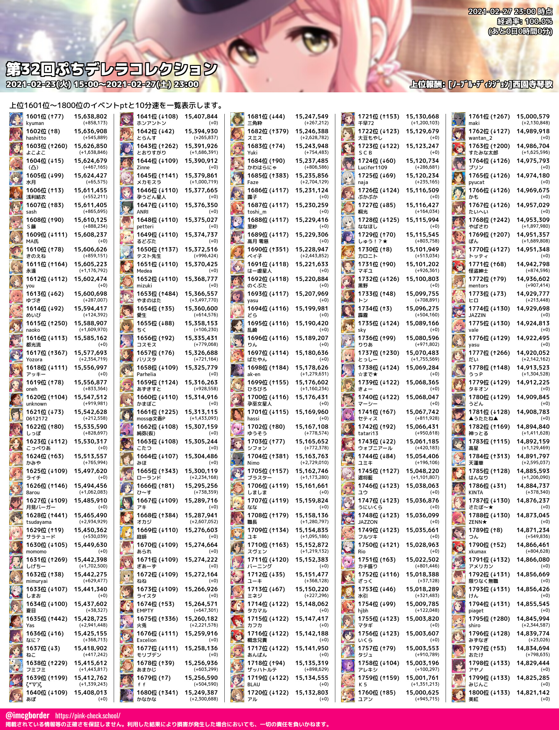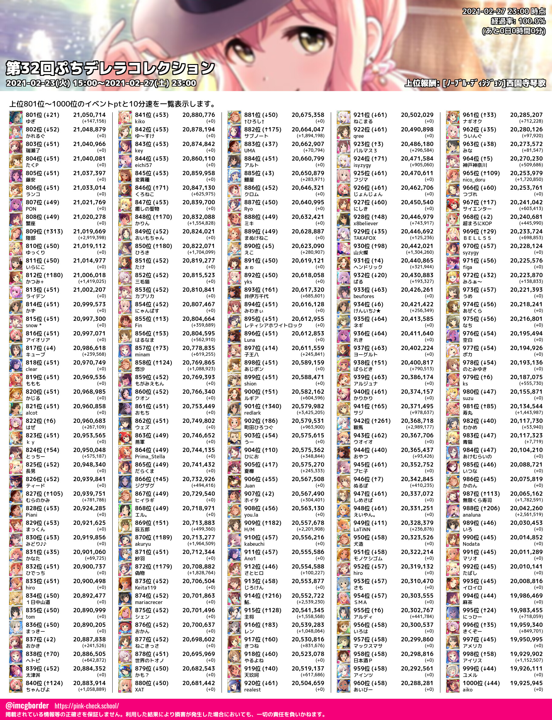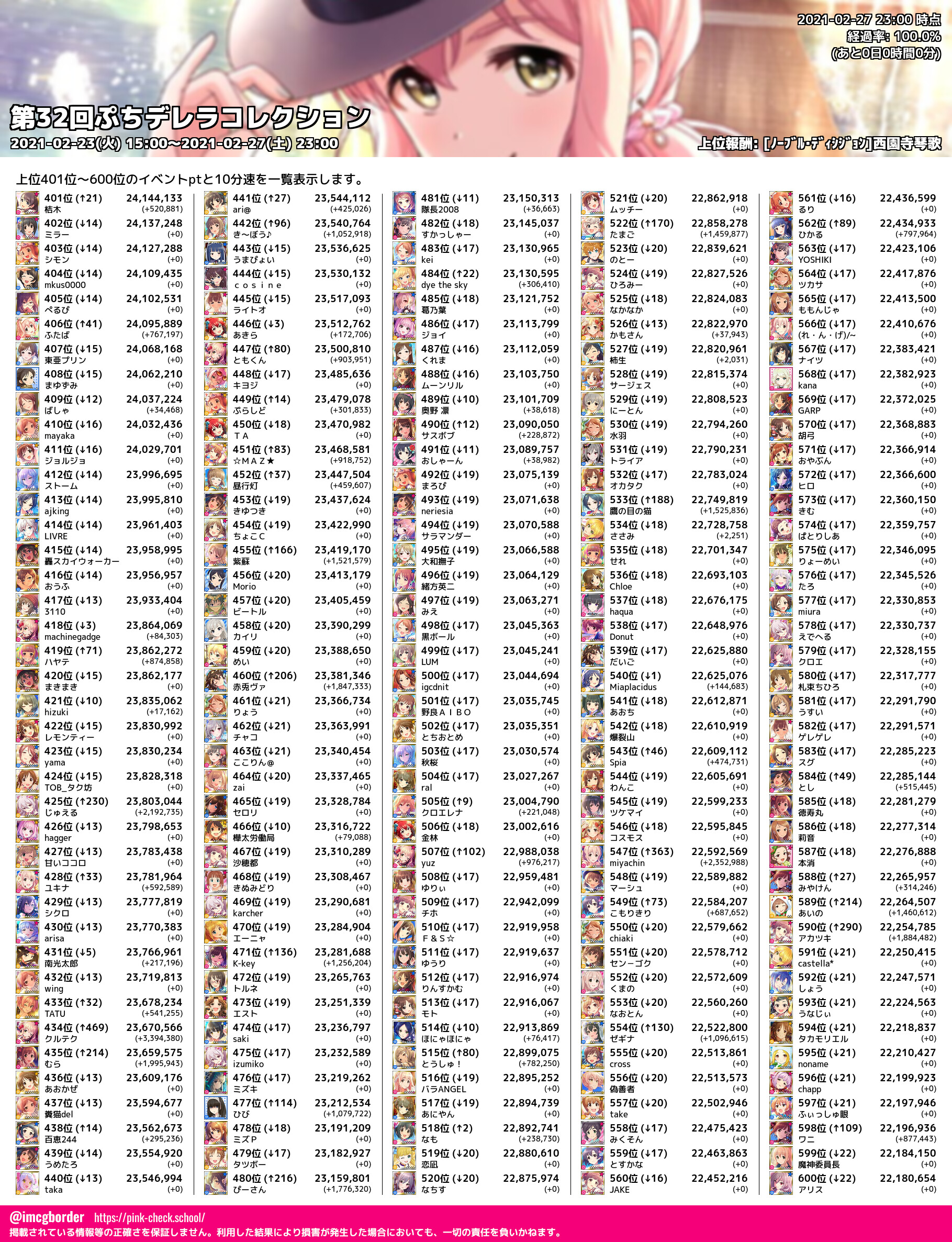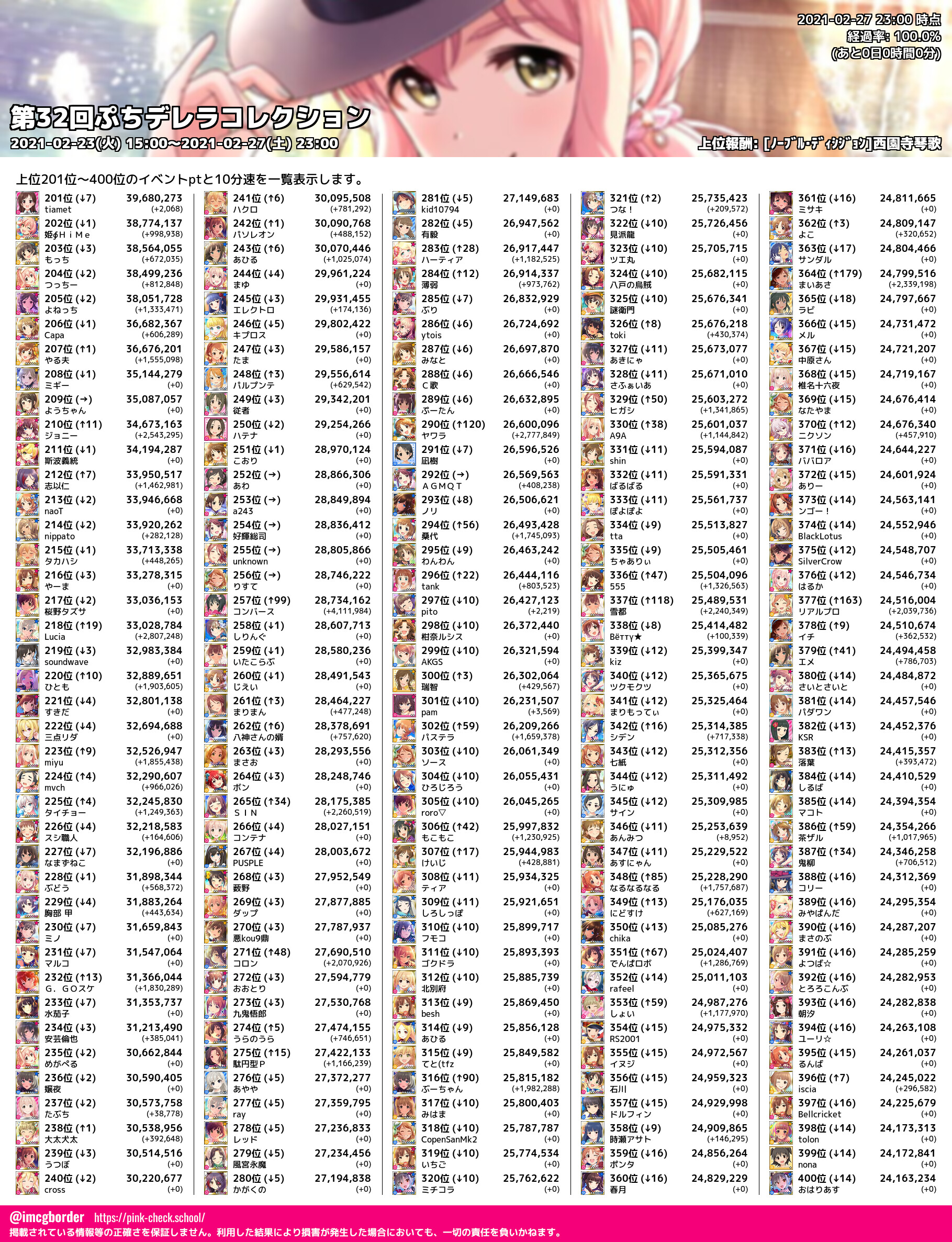上位プロデューサースコア (2021-02-27 23:00 時点)