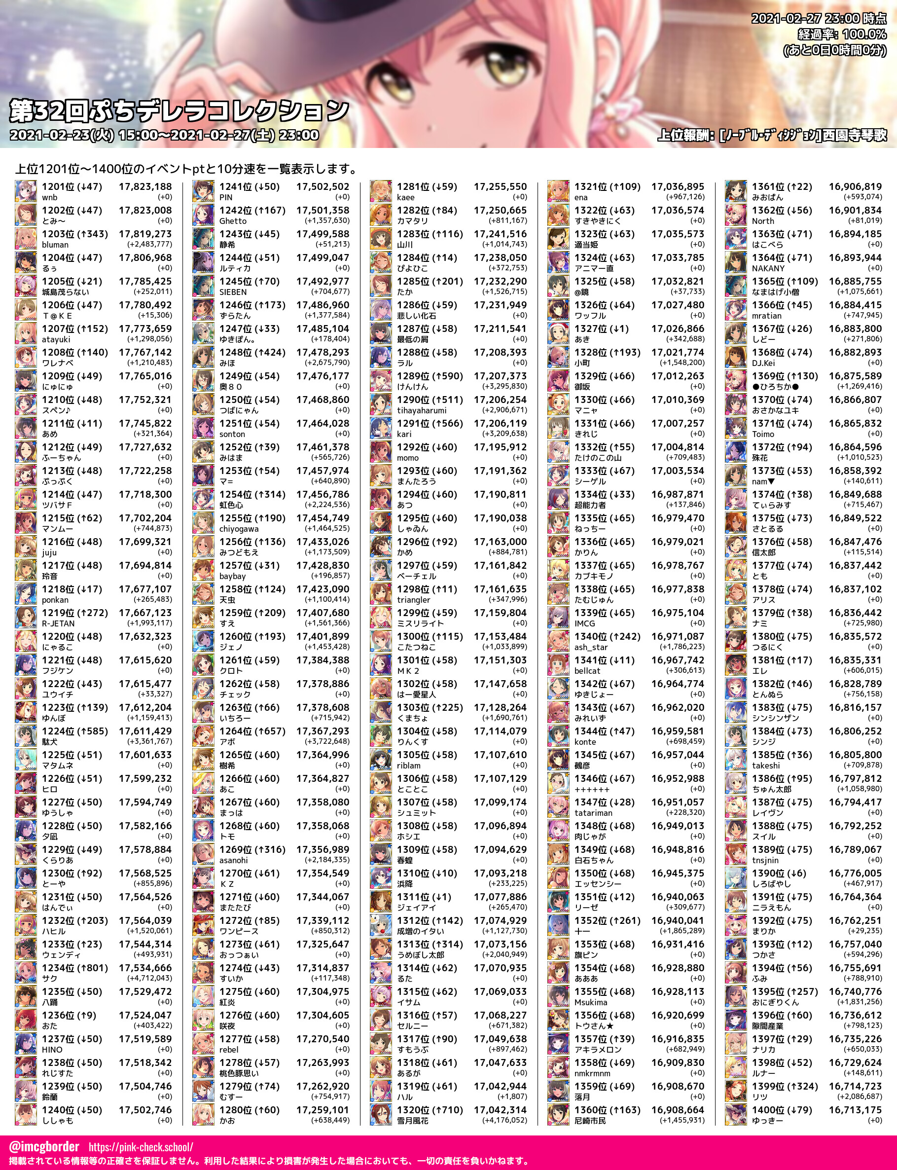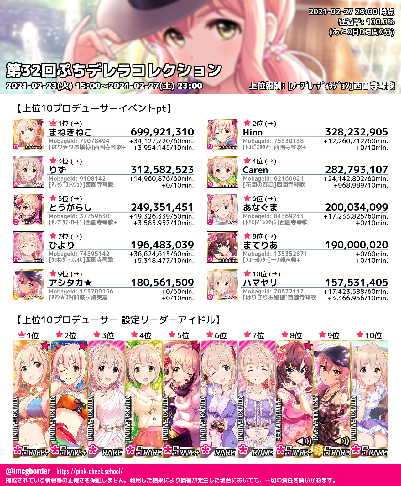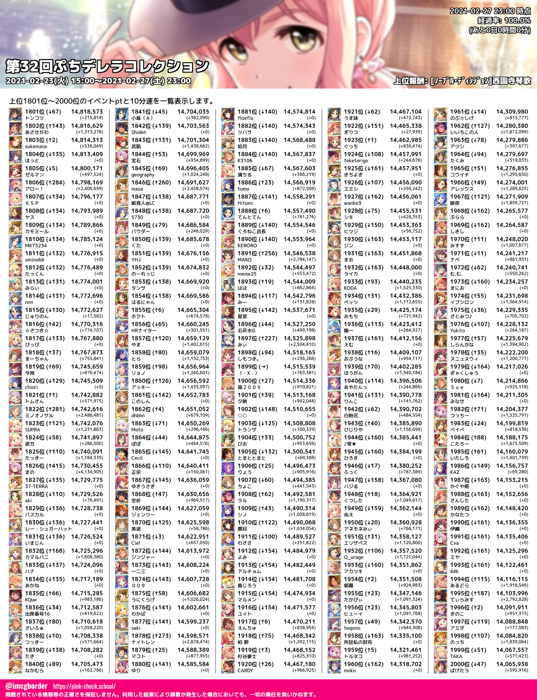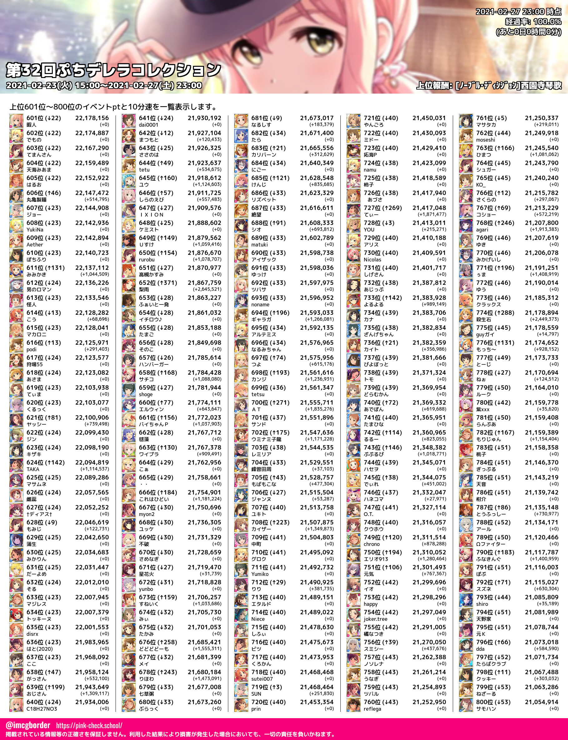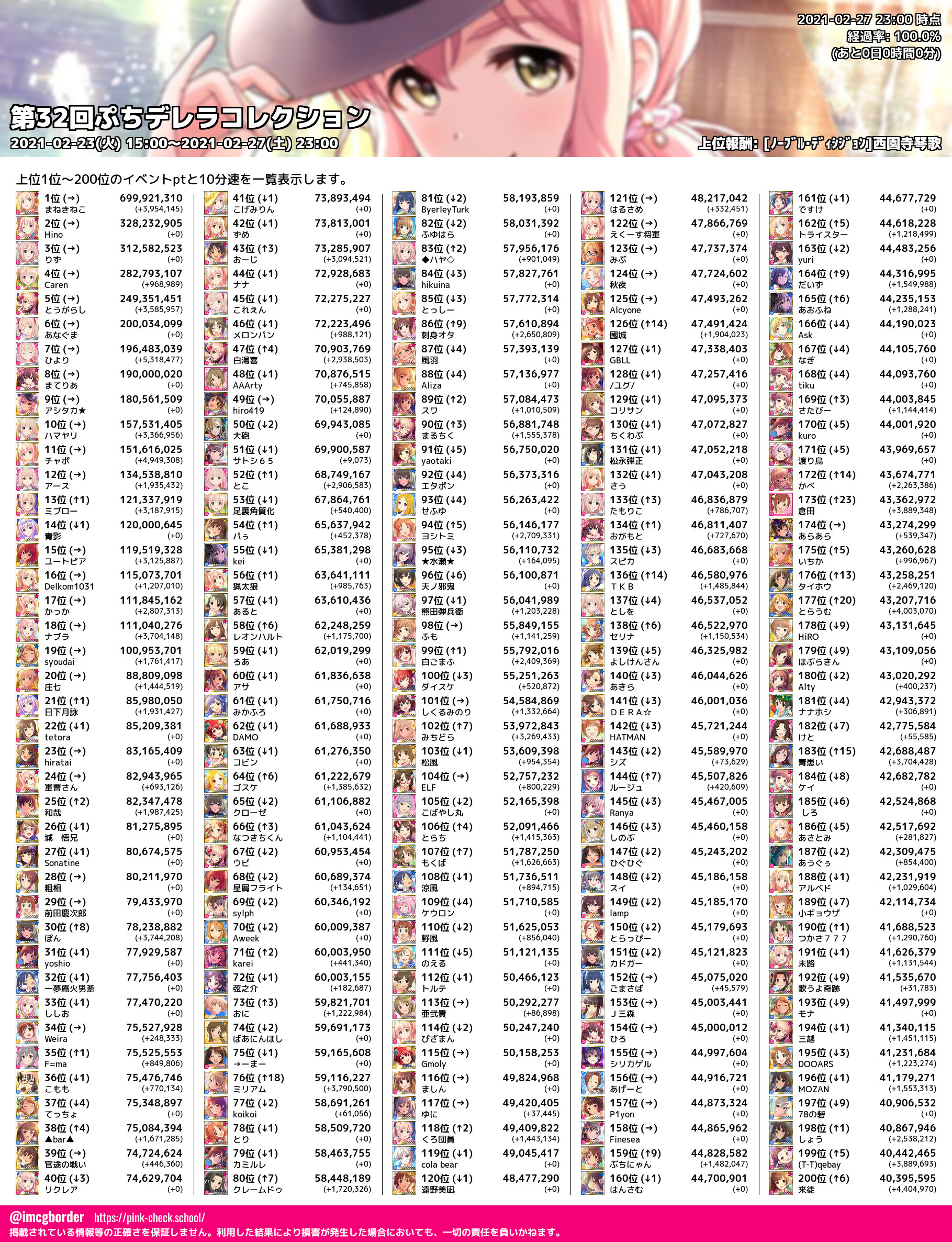 上位プロデューサースコア (2021-02-27 23:00 時点)