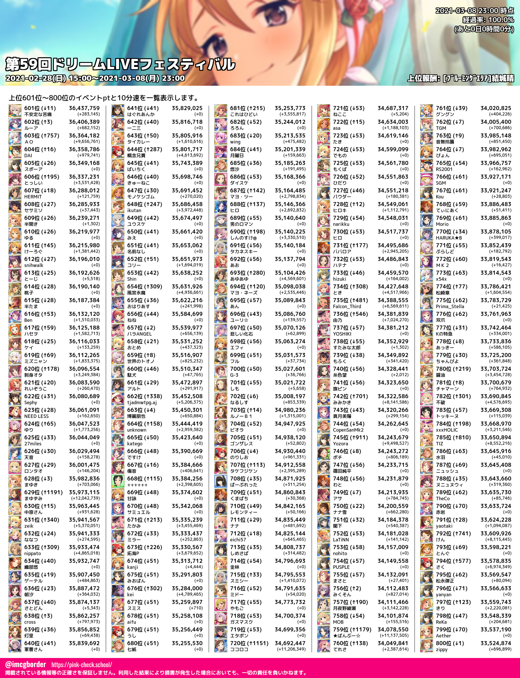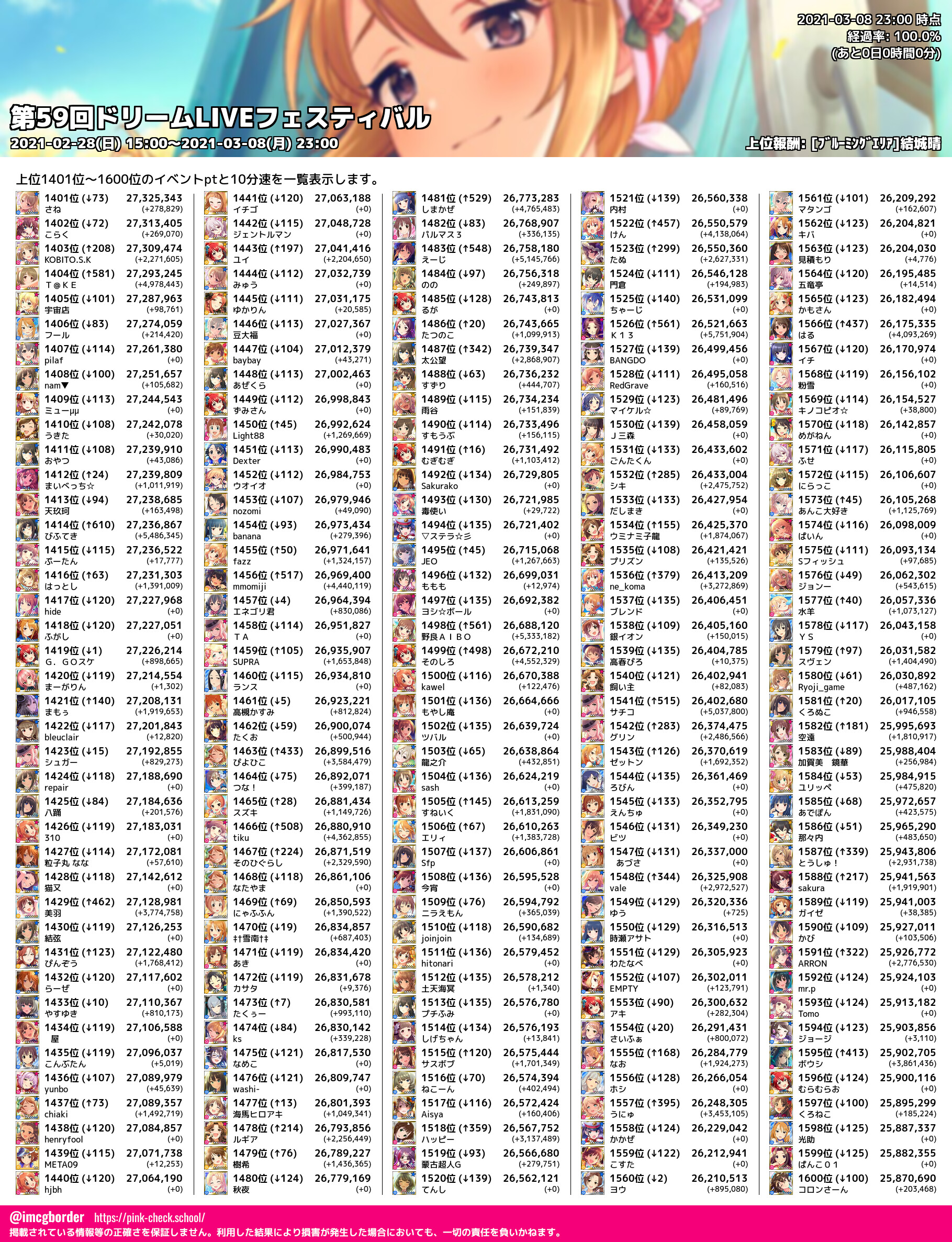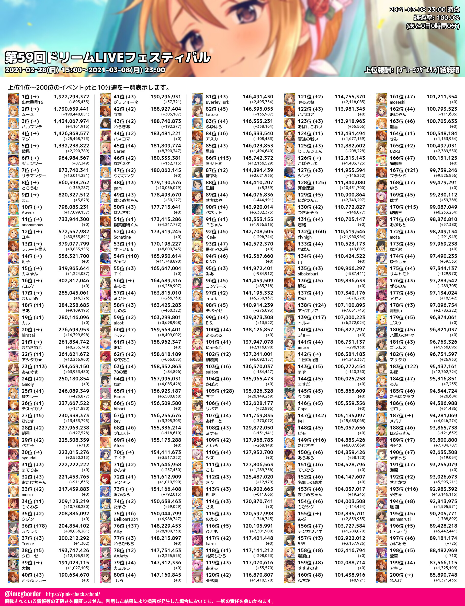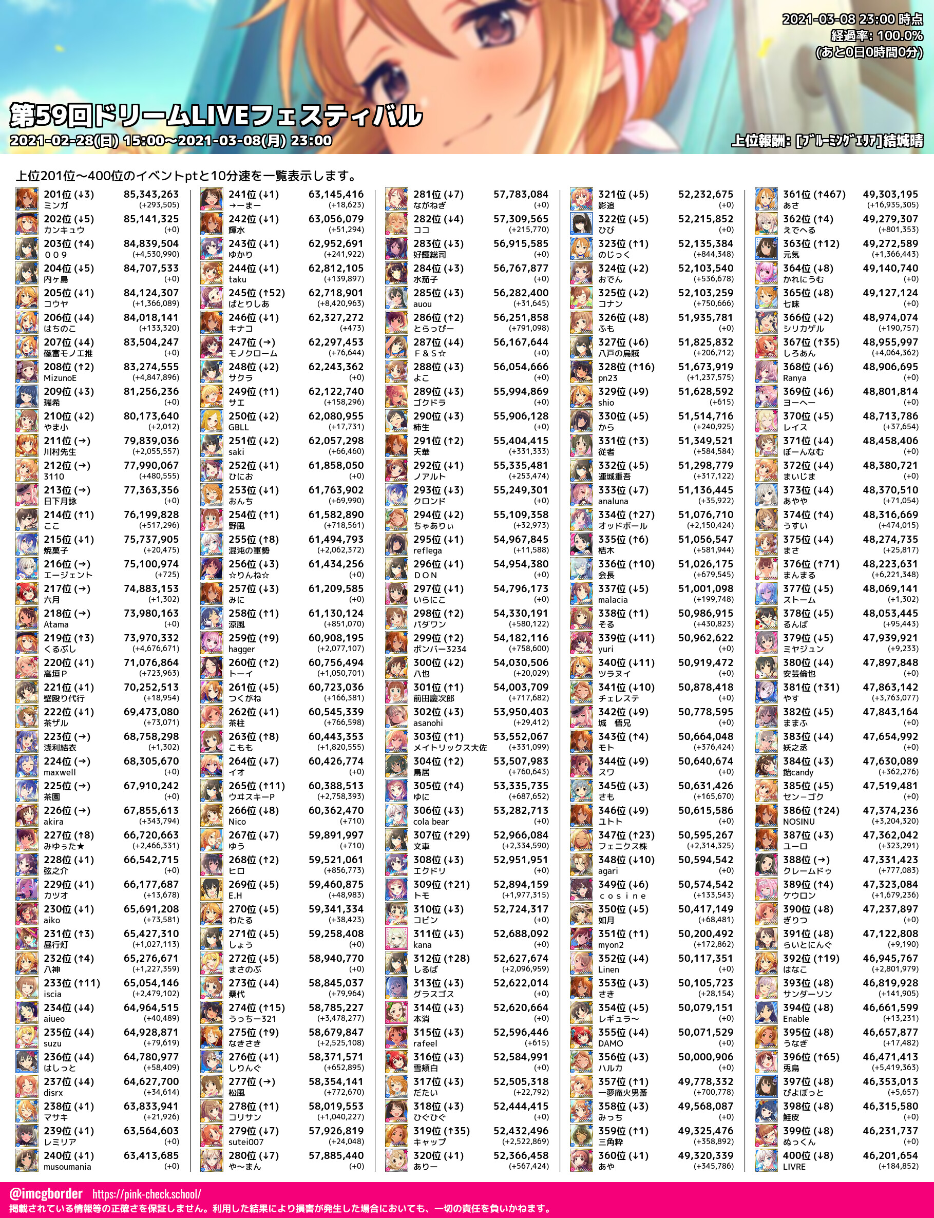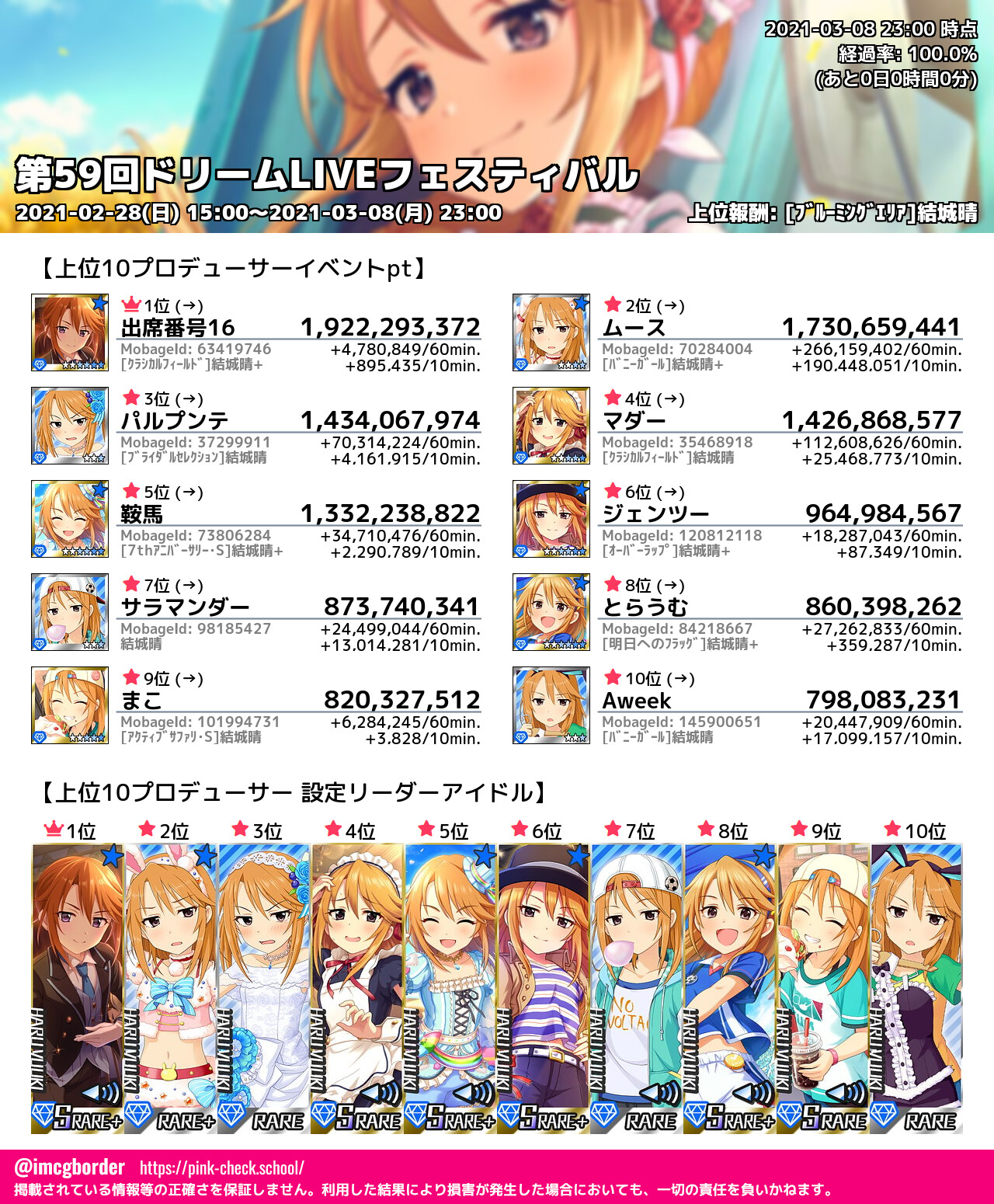 上位プロデューサースコア (2021-03-08 23:00 時点)