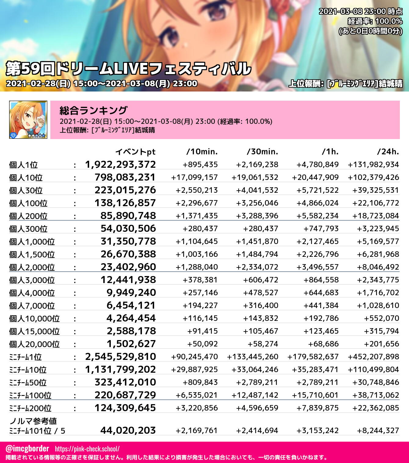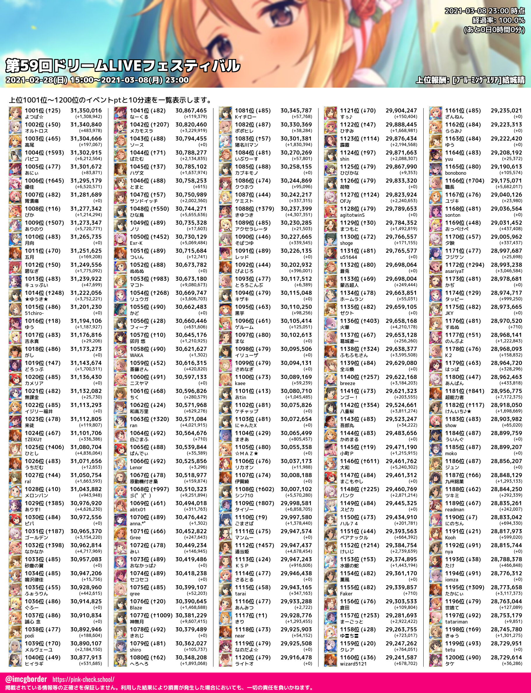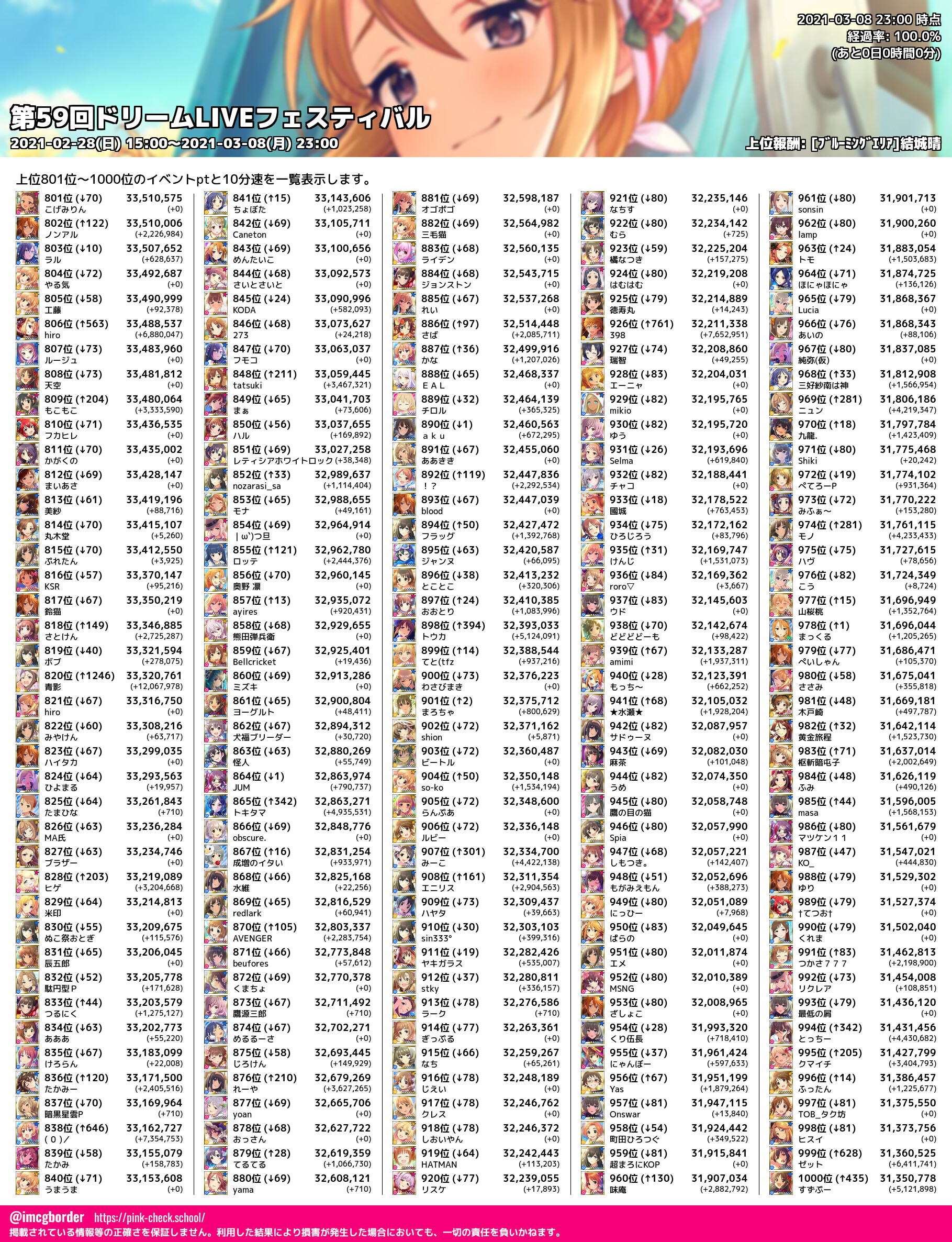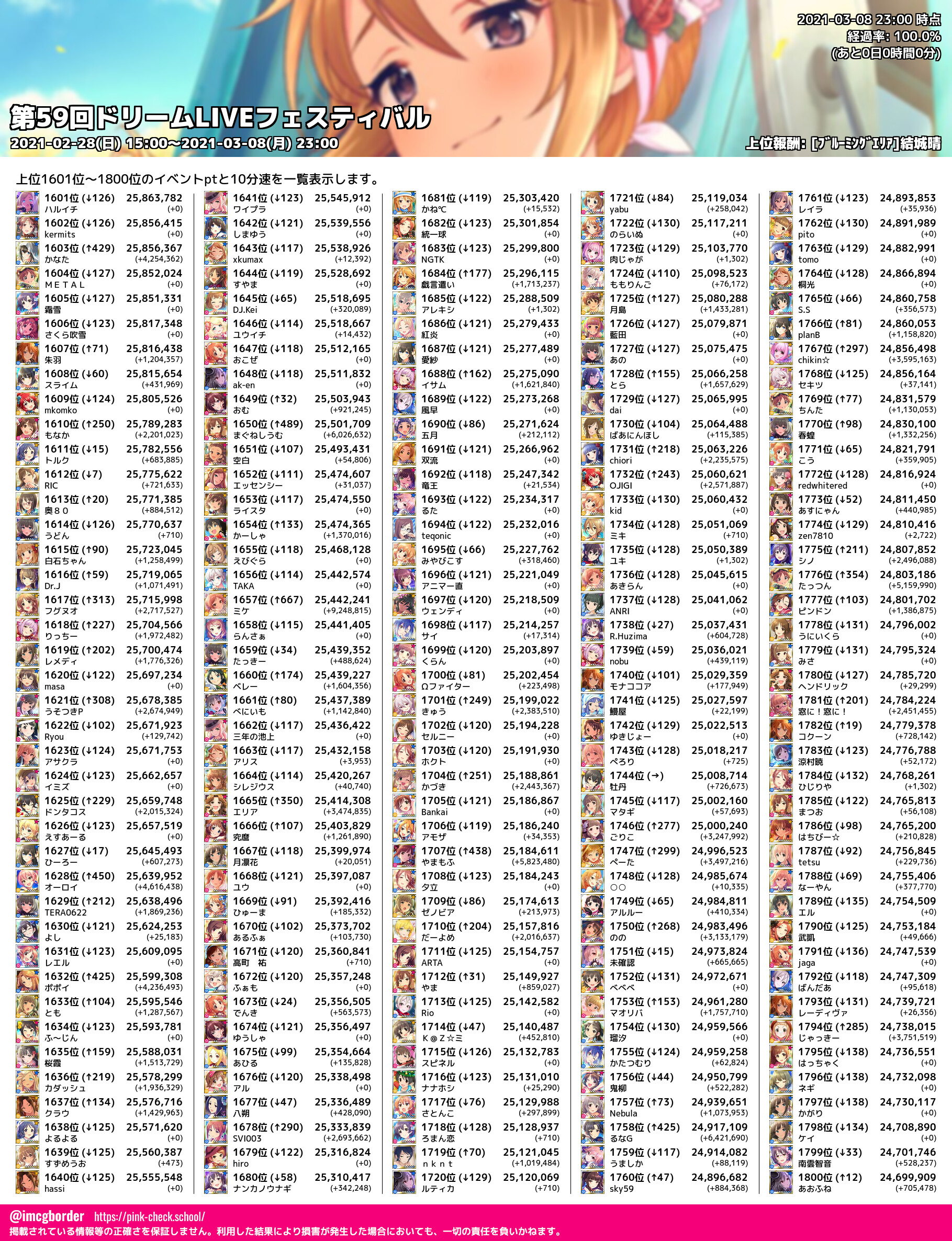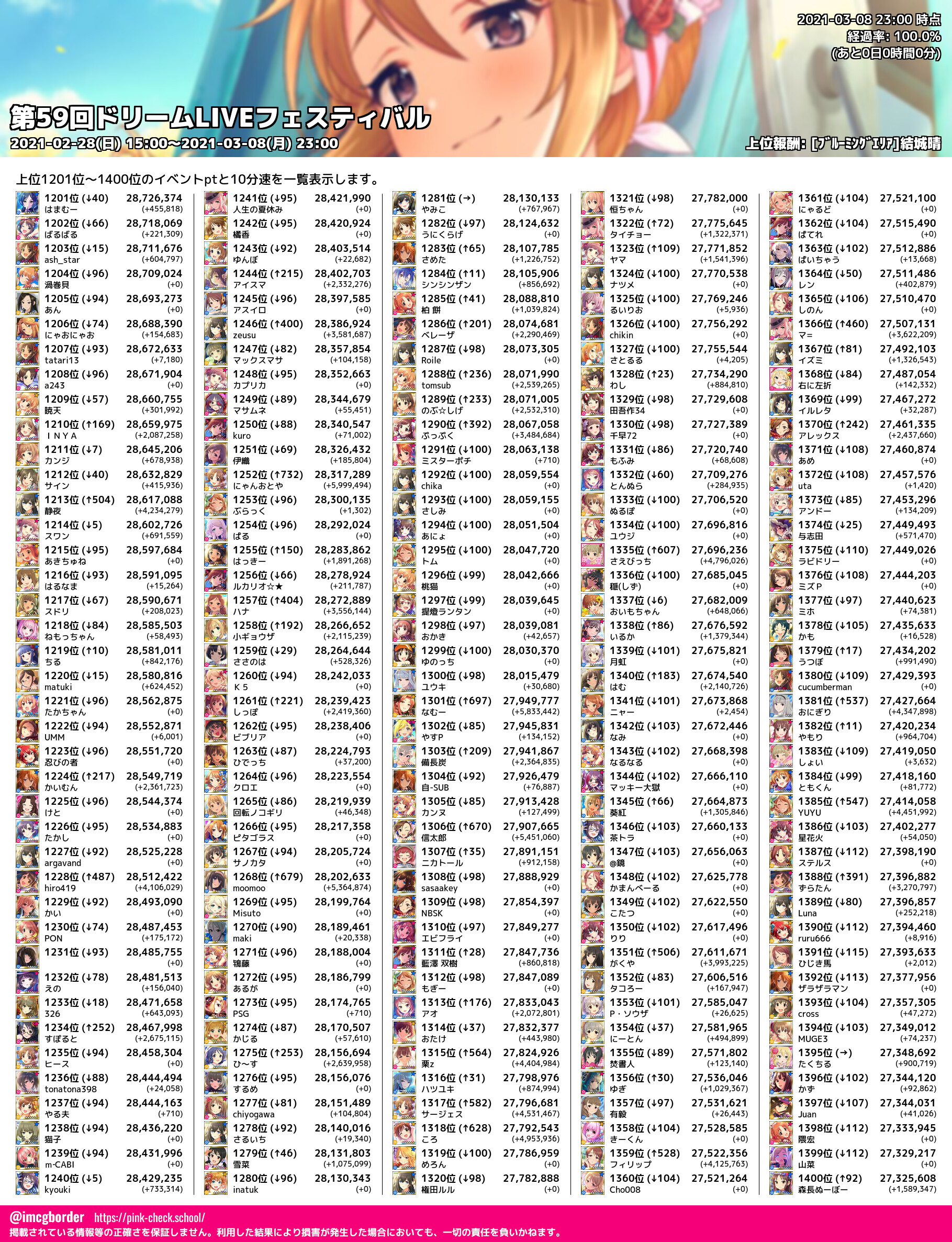 上位プロデューサースコア (2021-03-08 23:00 時点)