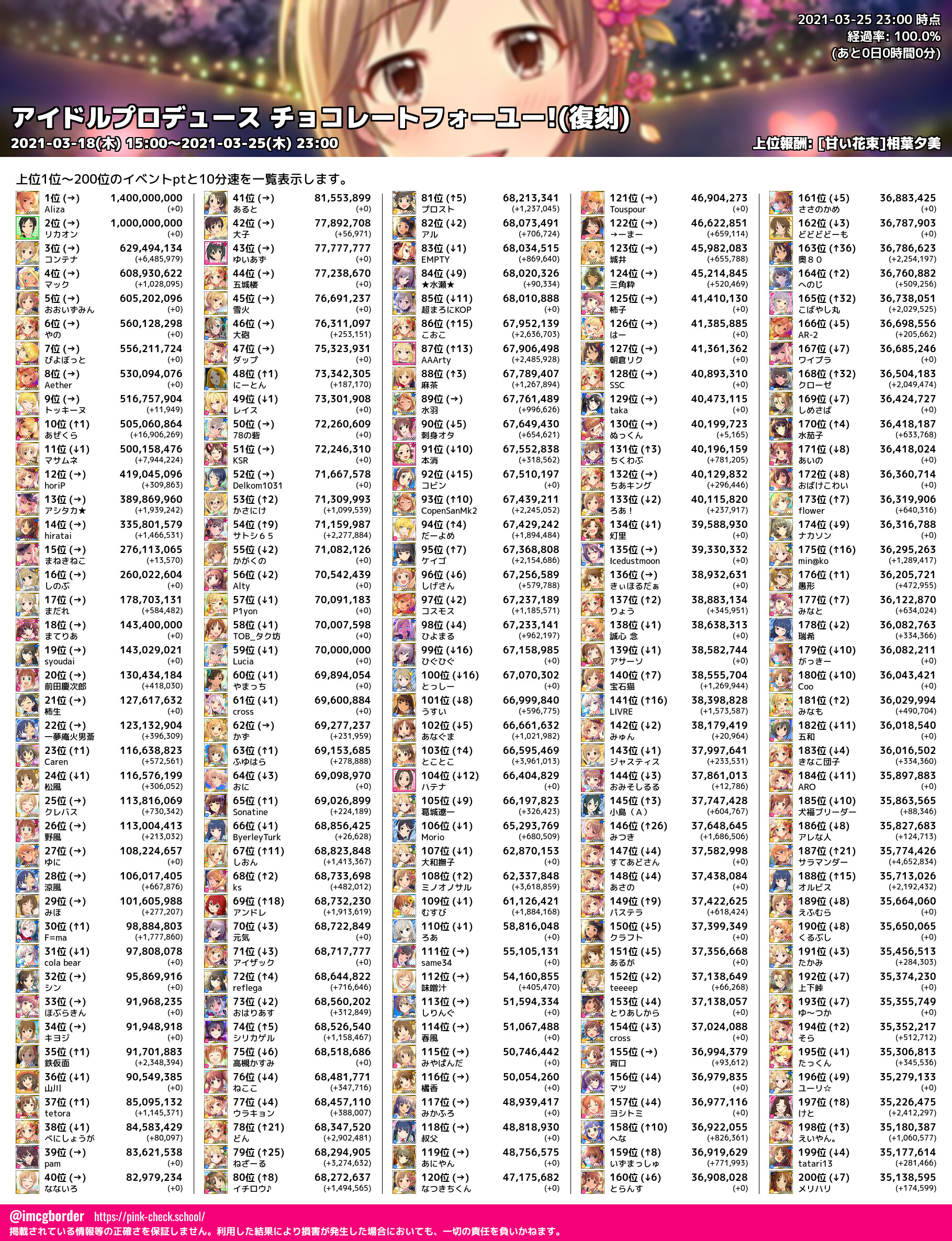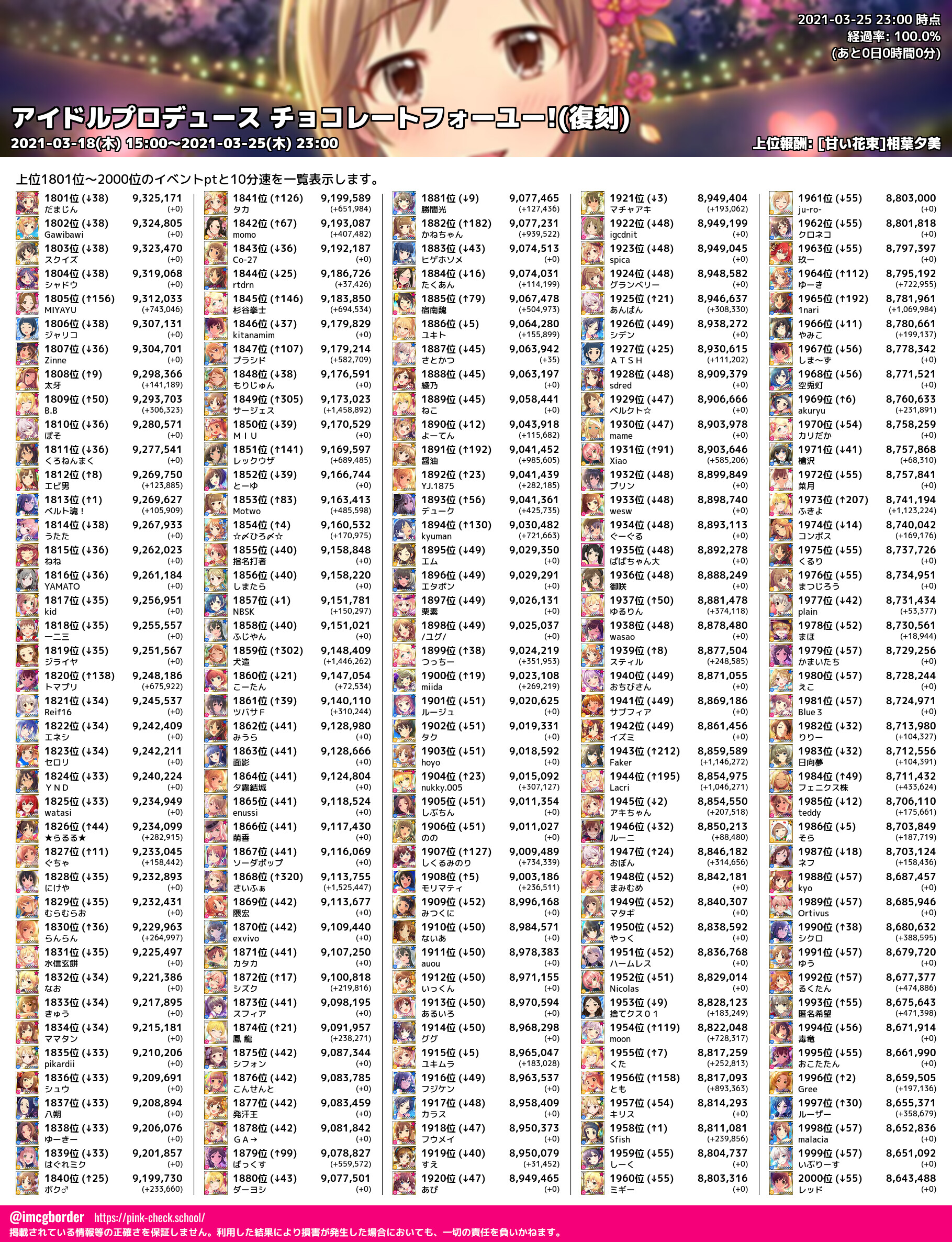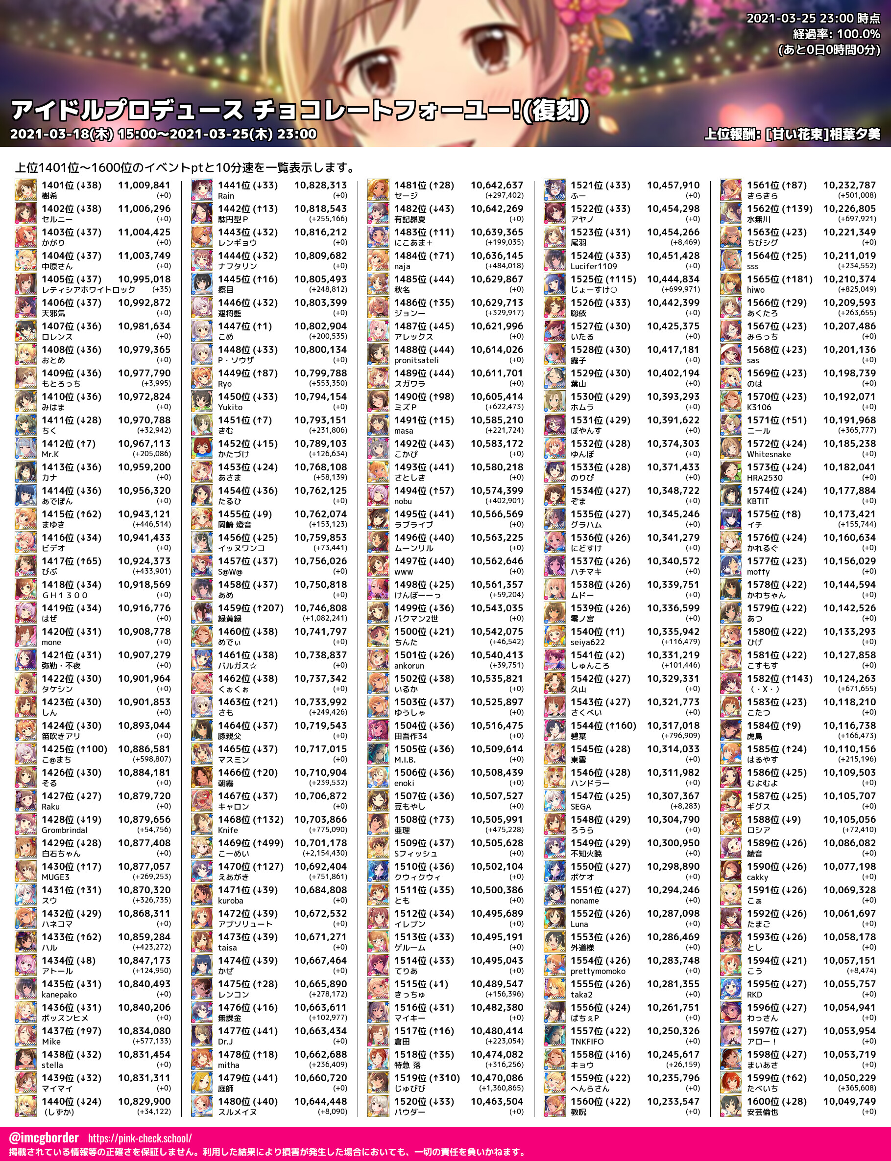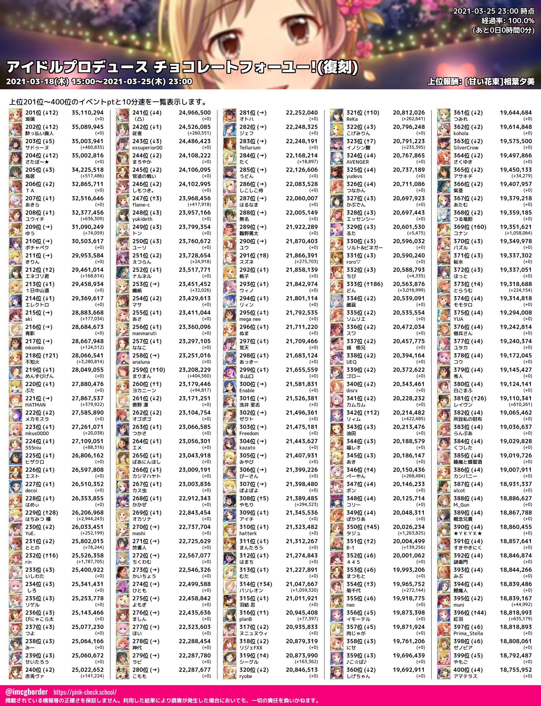上位プロデューサースコア (2021-03-25 23:00 時点)