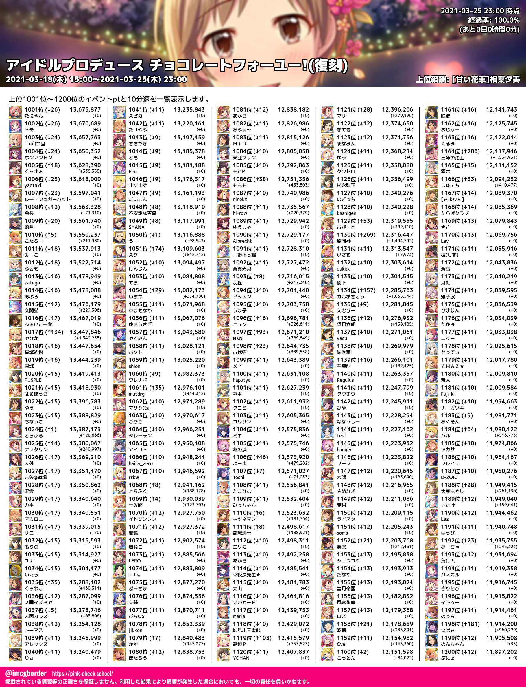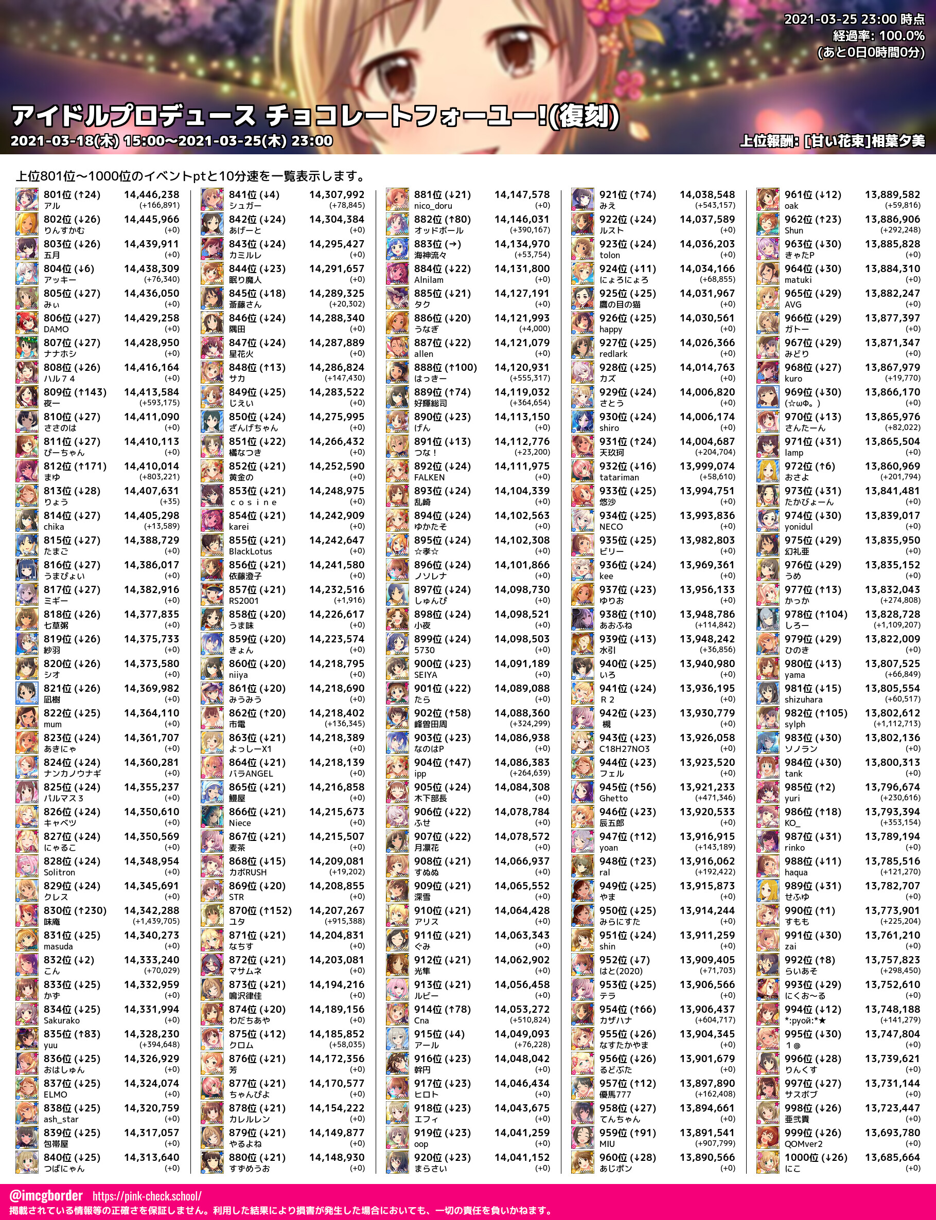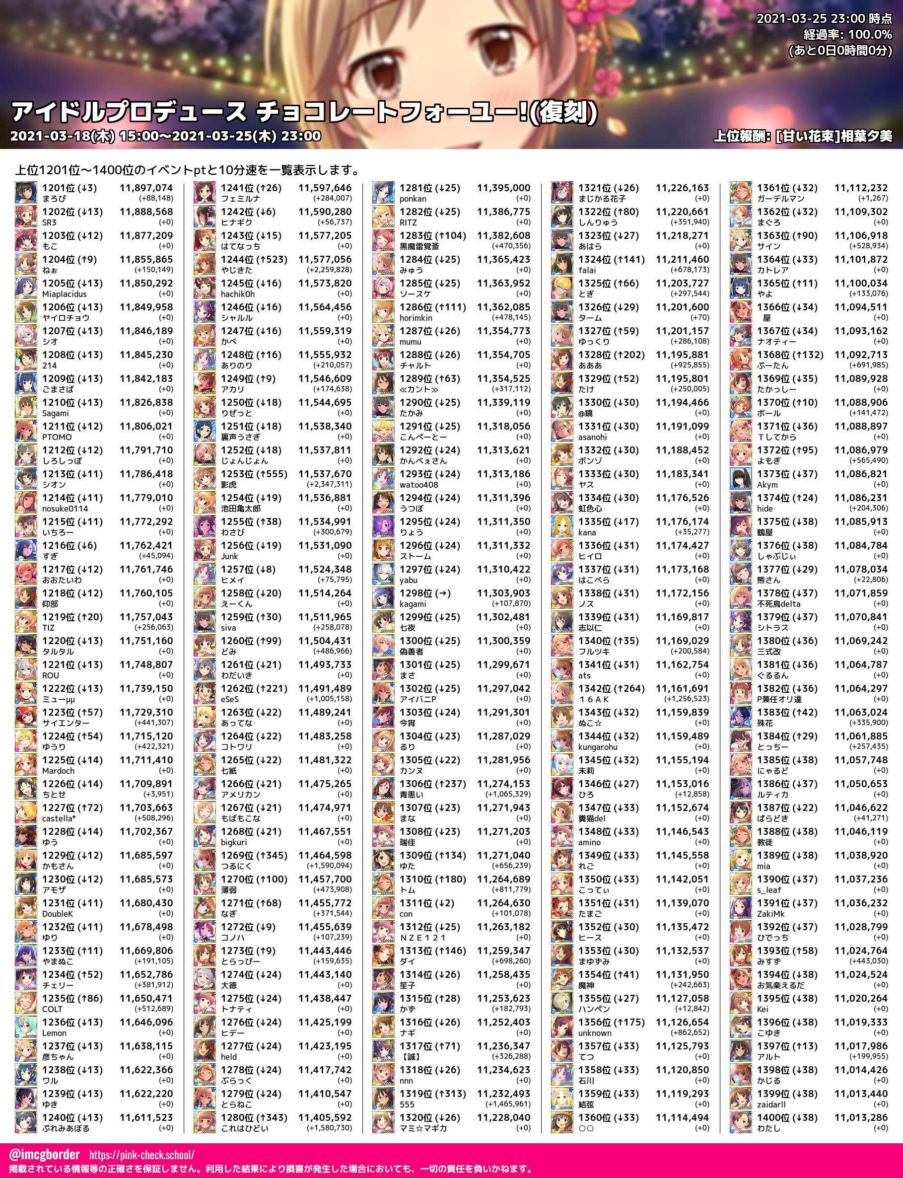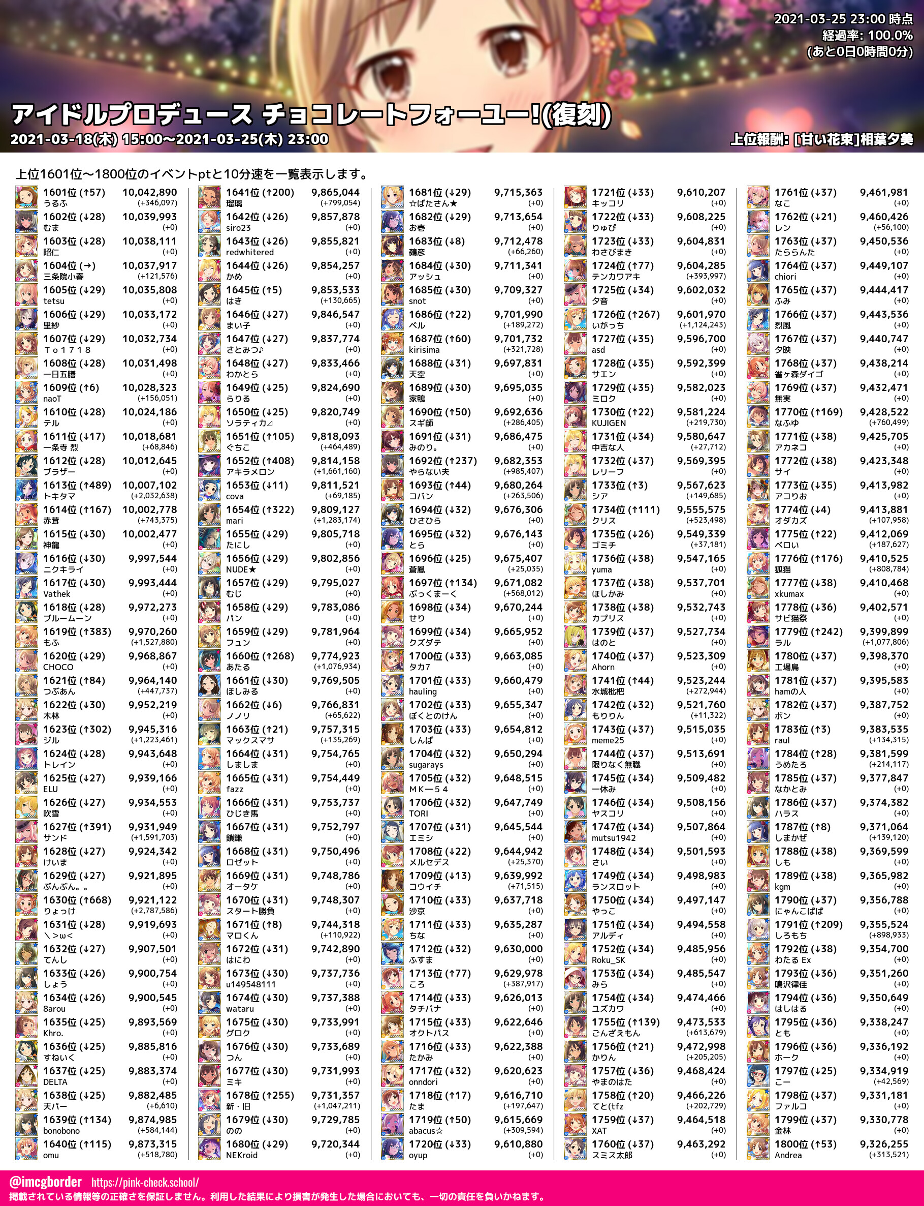 上位プロデューサースコア (2021-03-25 23:00 時点)