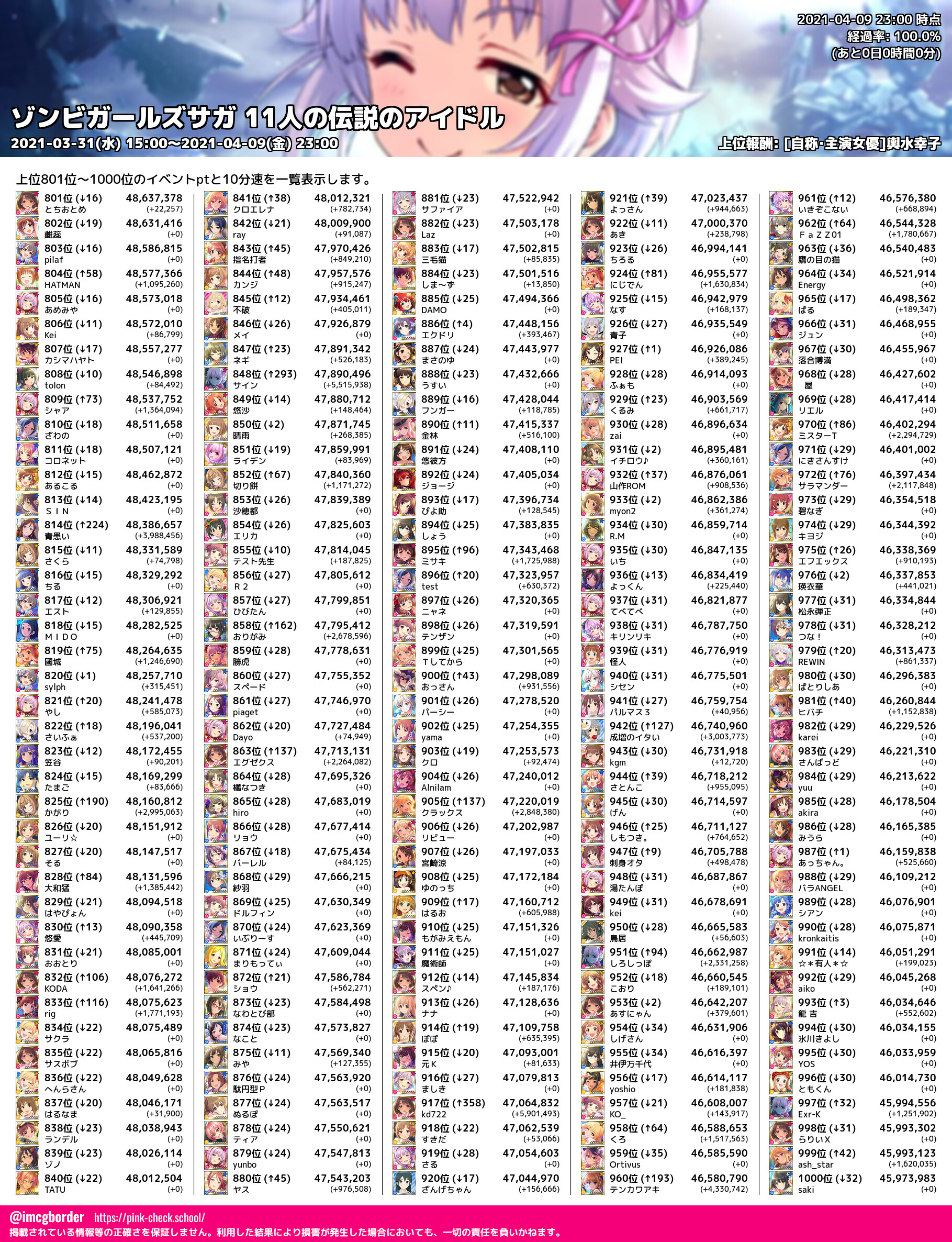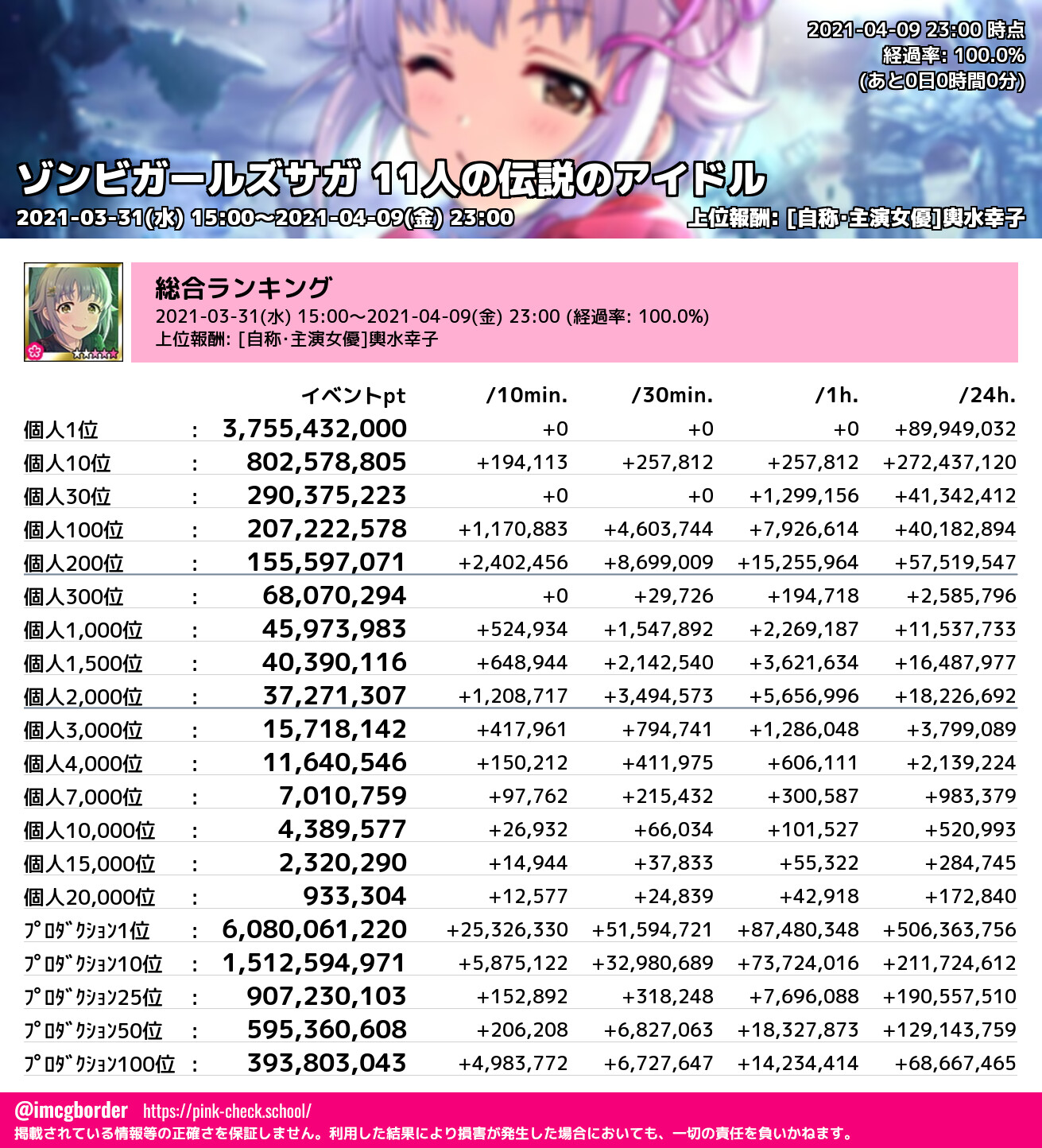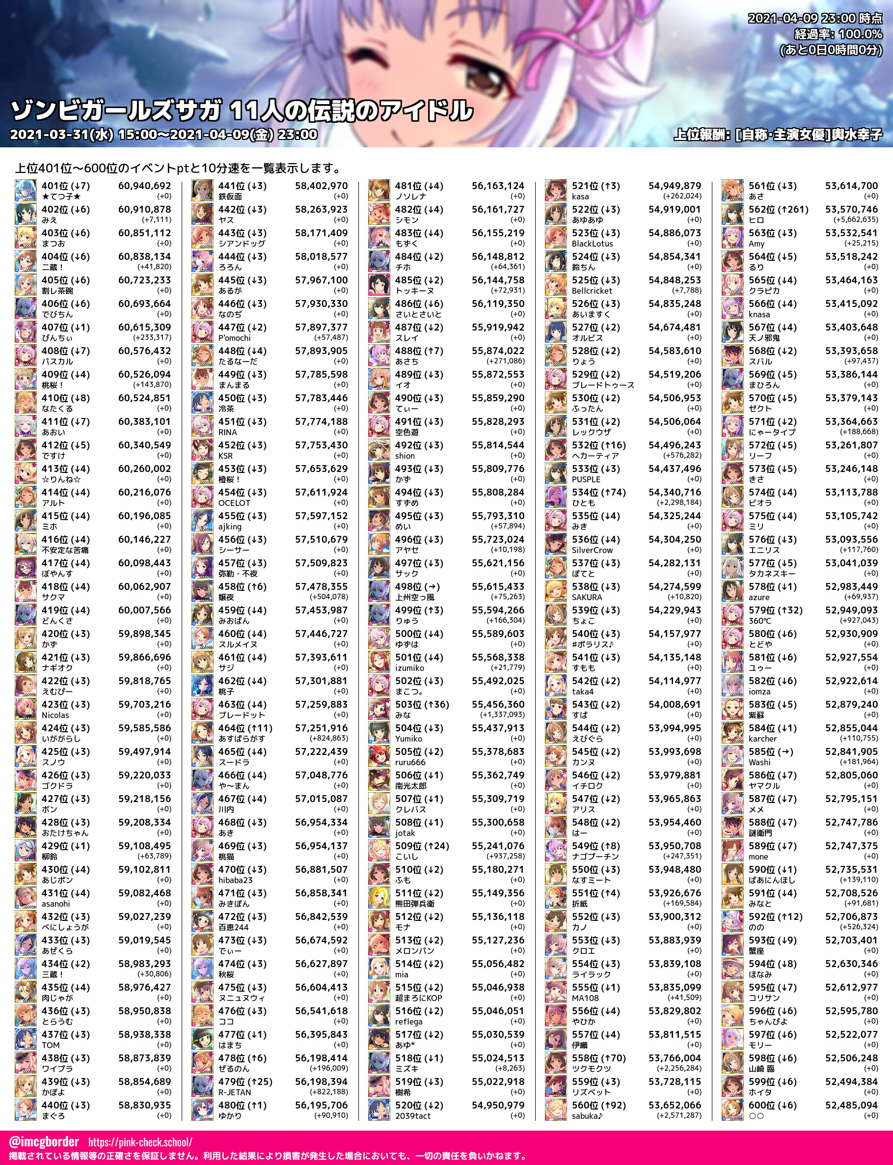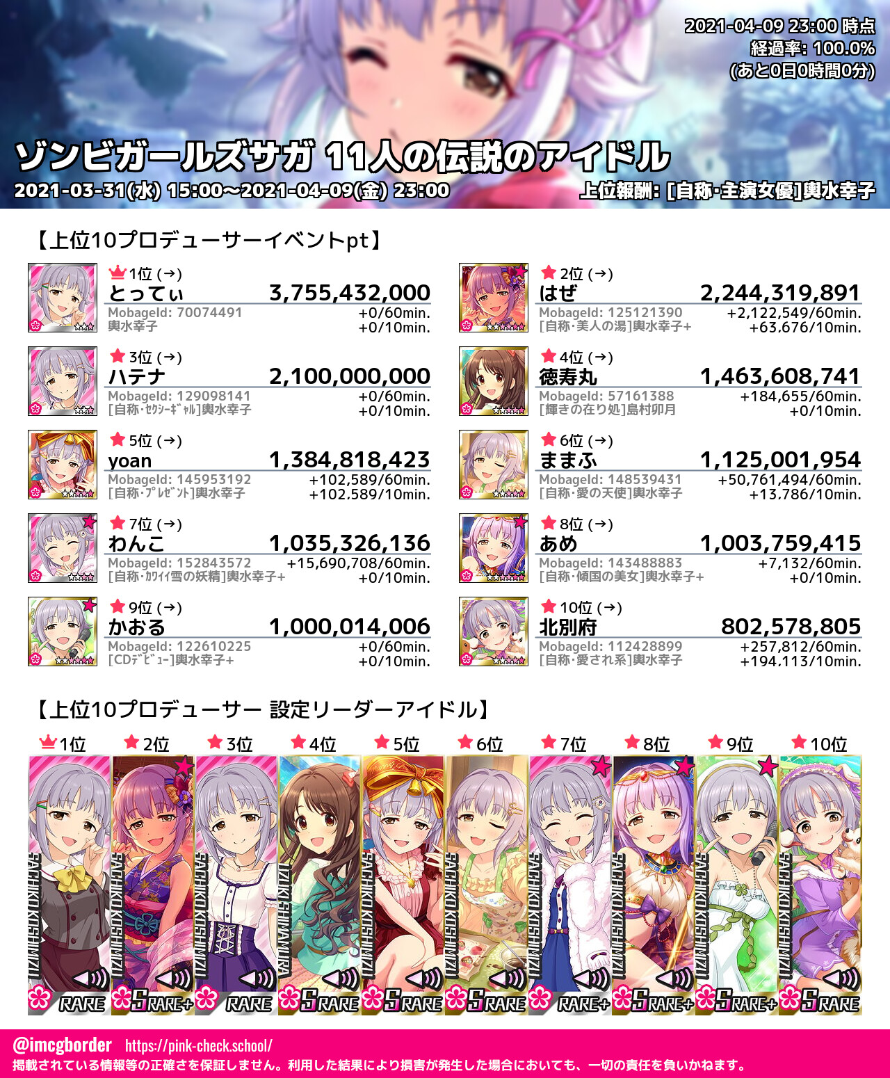 上位プロデューサースコア (2021-04-09 23:00 時点)