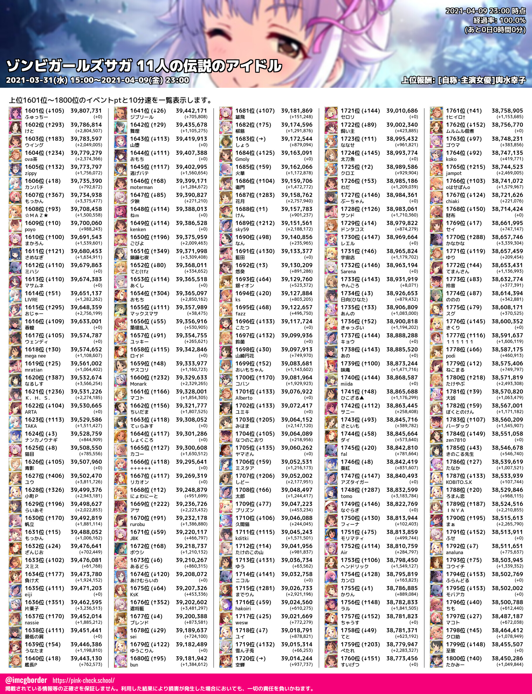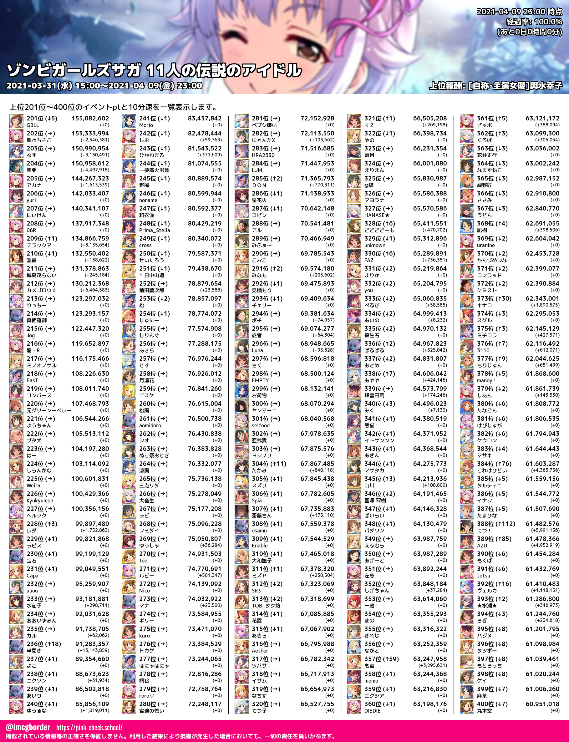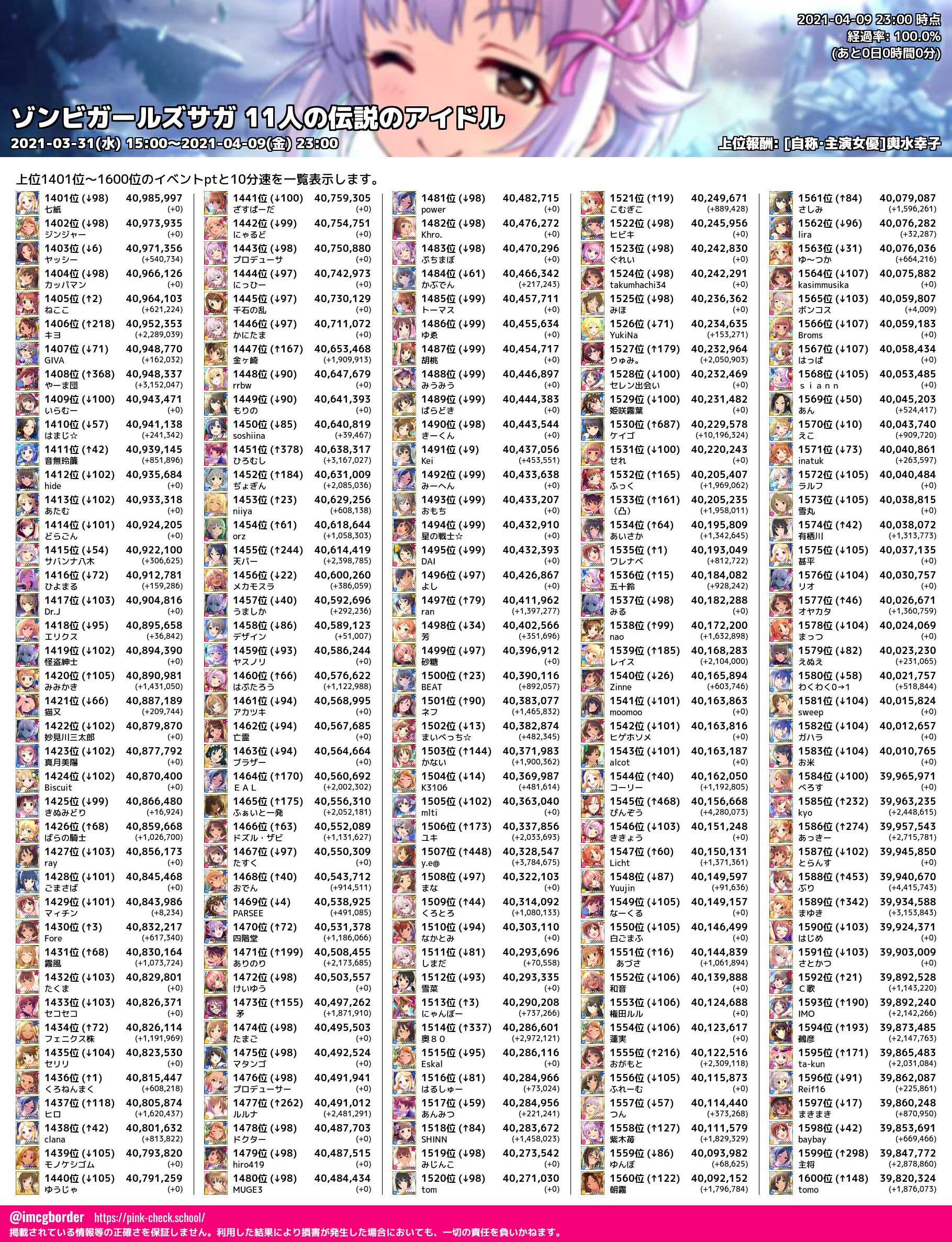上位プロデューサースコア (2021-04-09 23:00 時点)