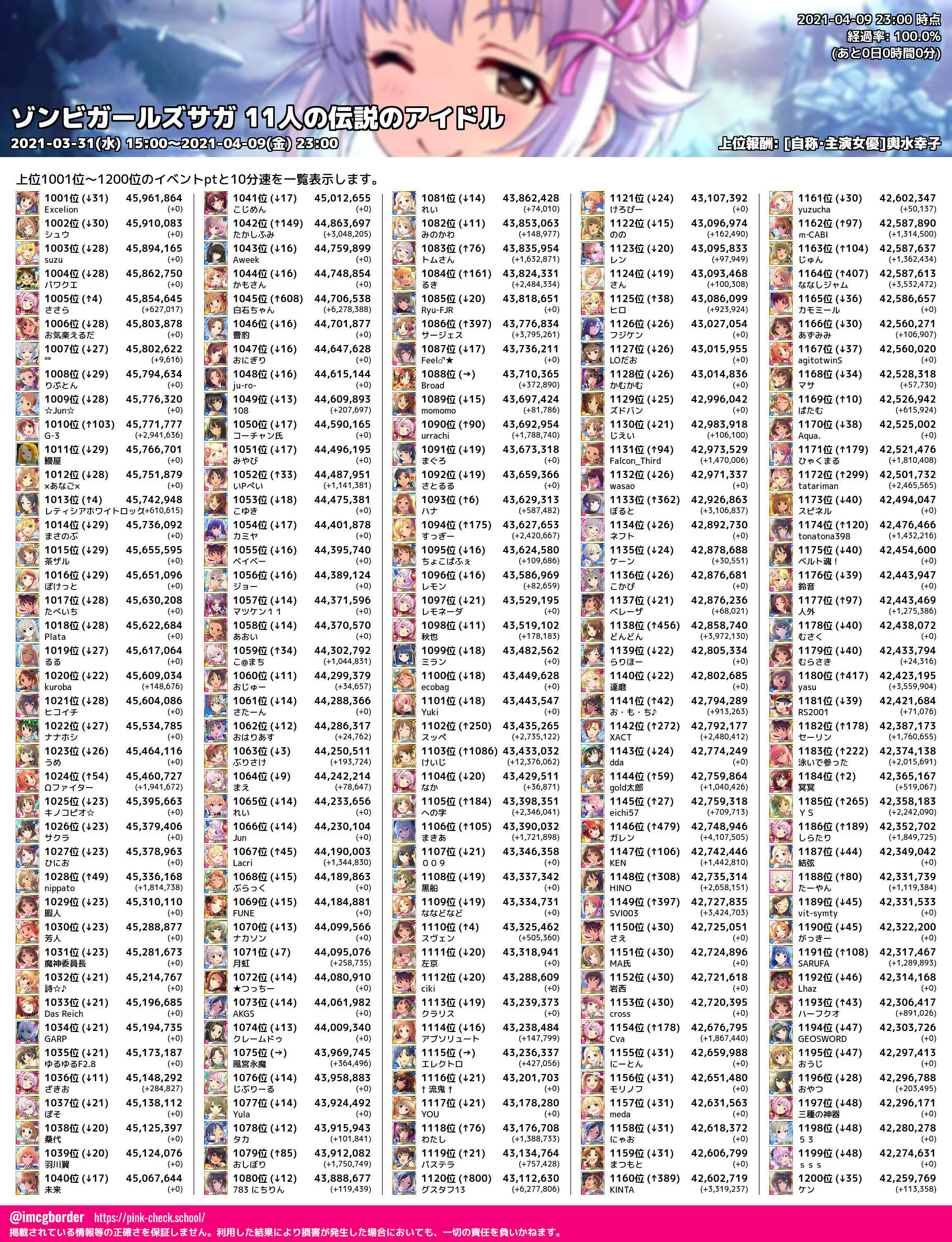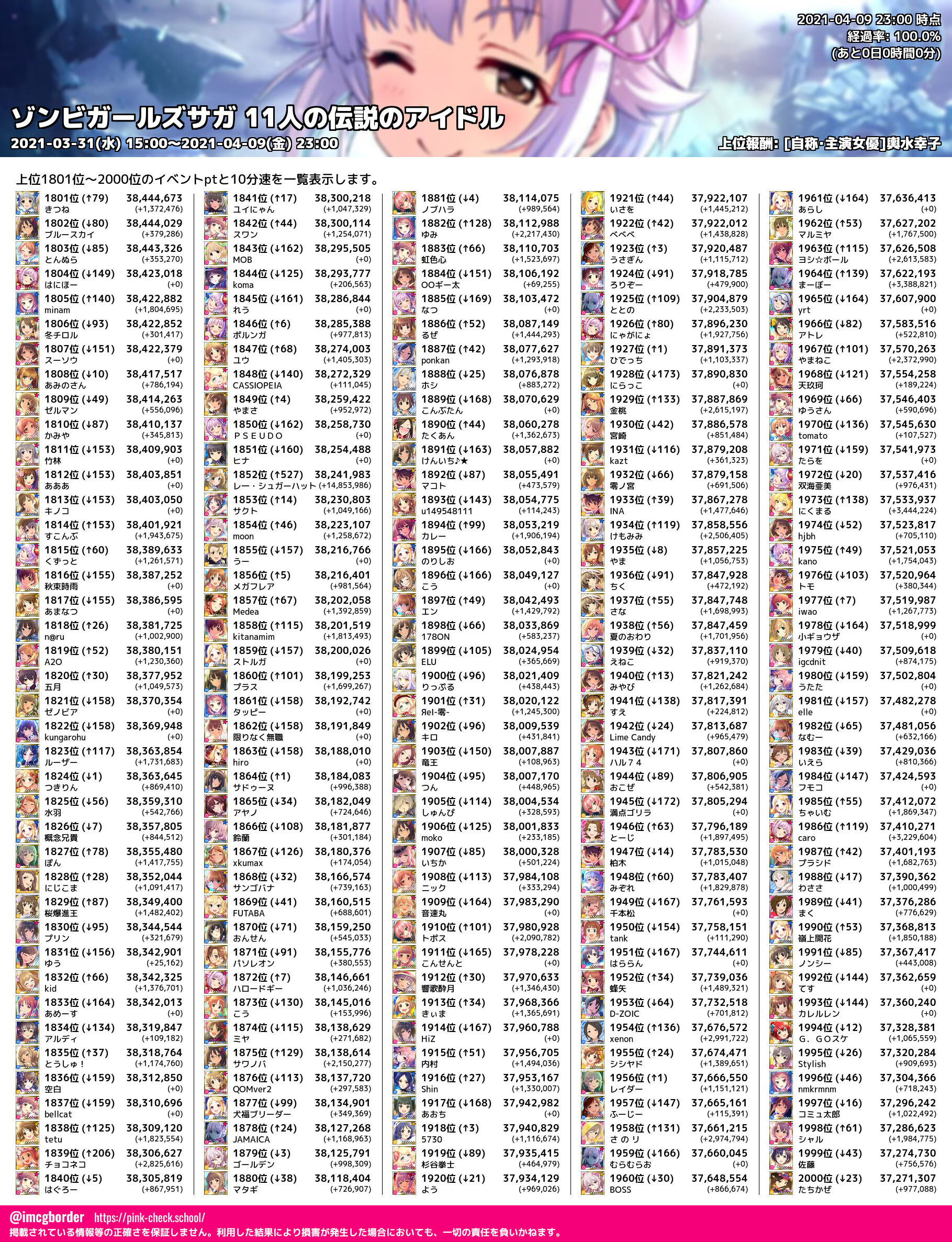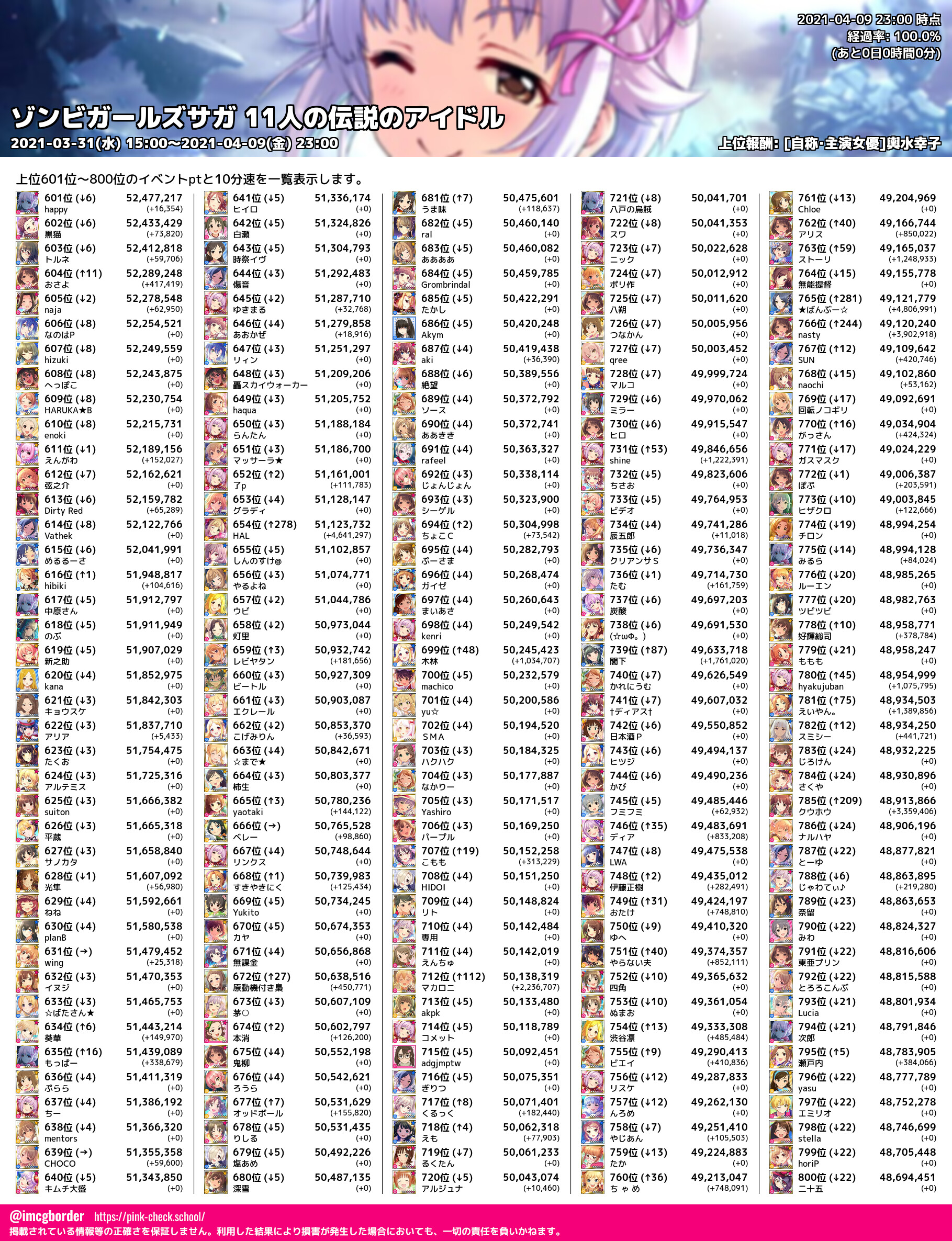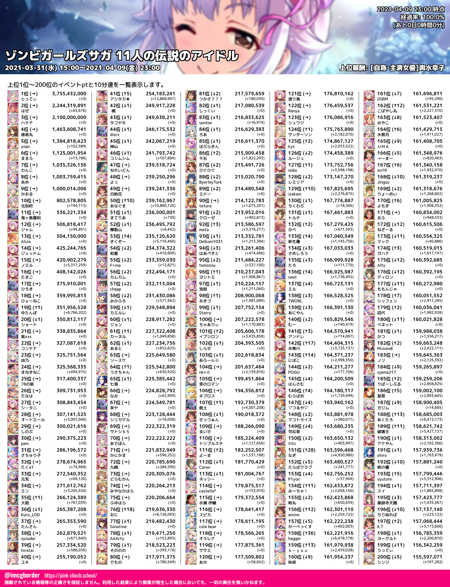 上位プロデューサースコア (2021-04-09 23:00 時点)