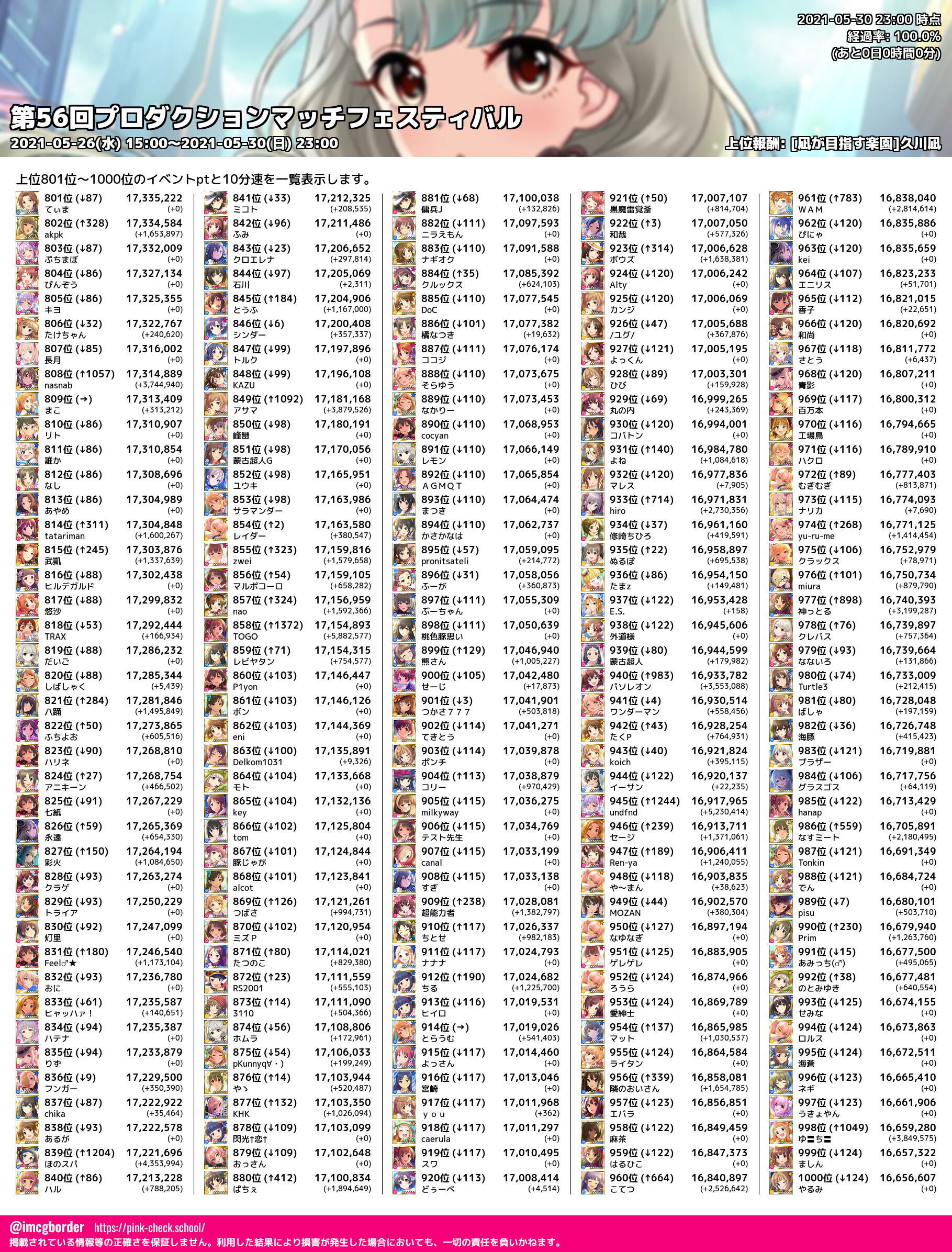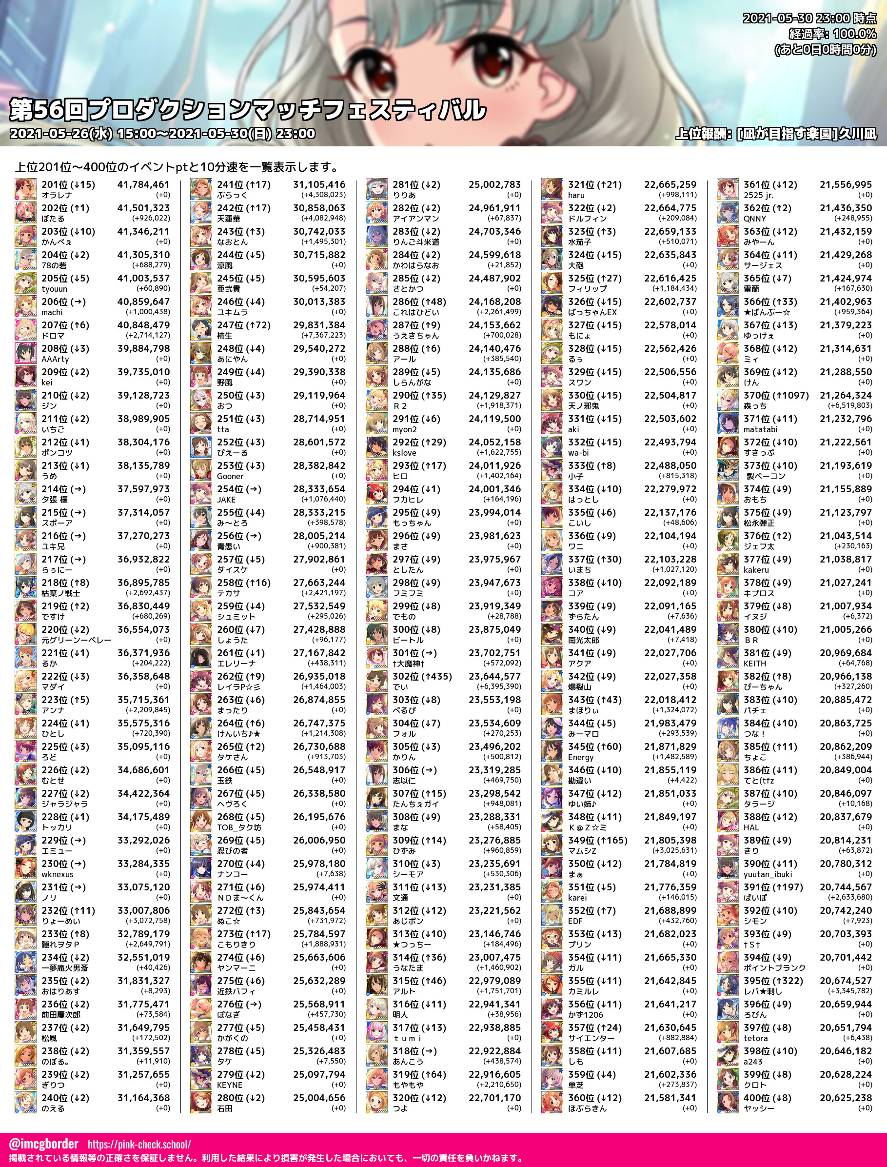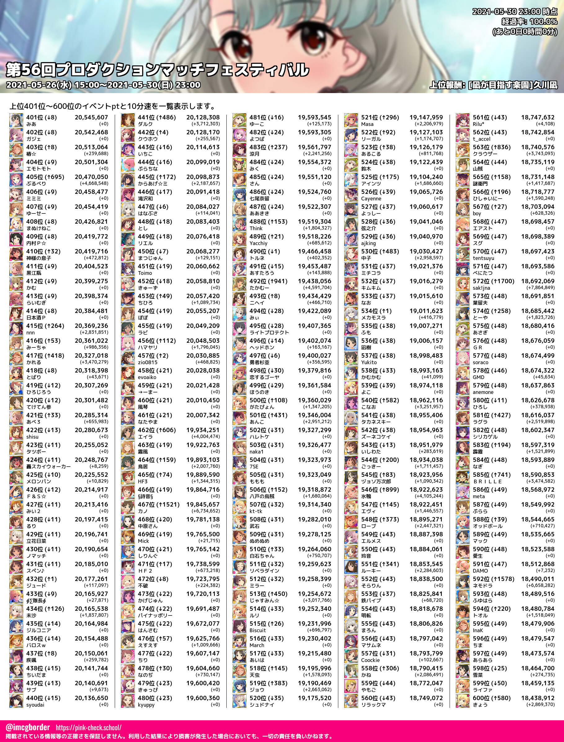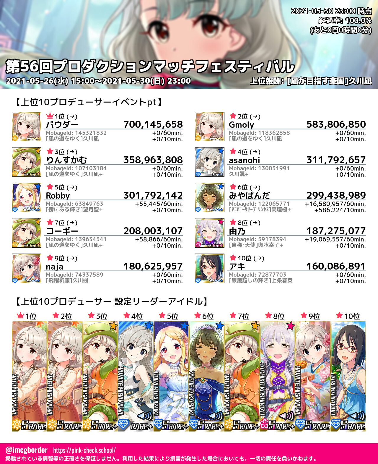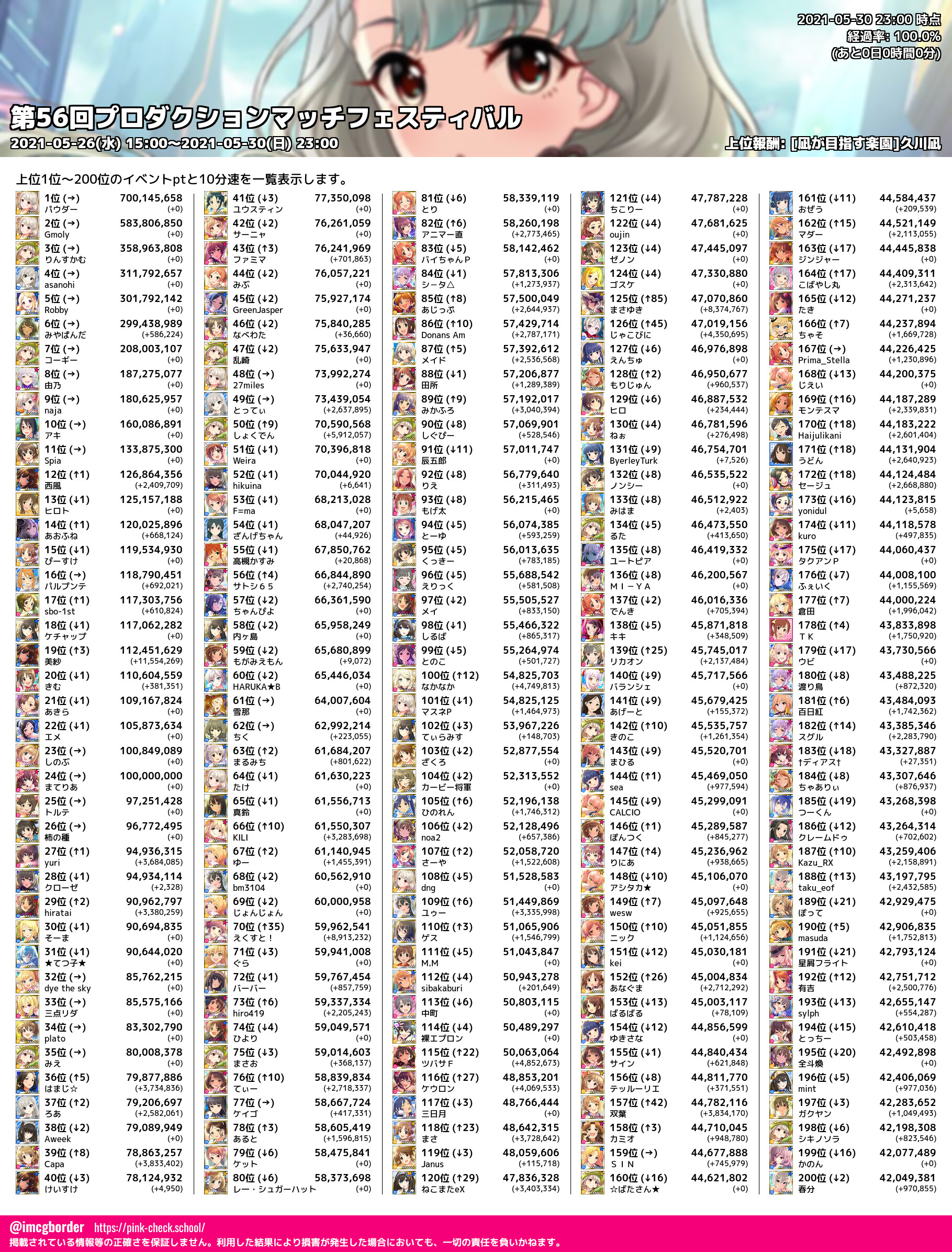 上位プロデューサースコア (2021-05-30 23:00 時点)