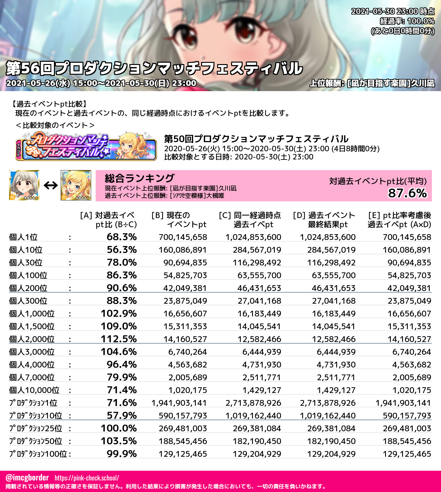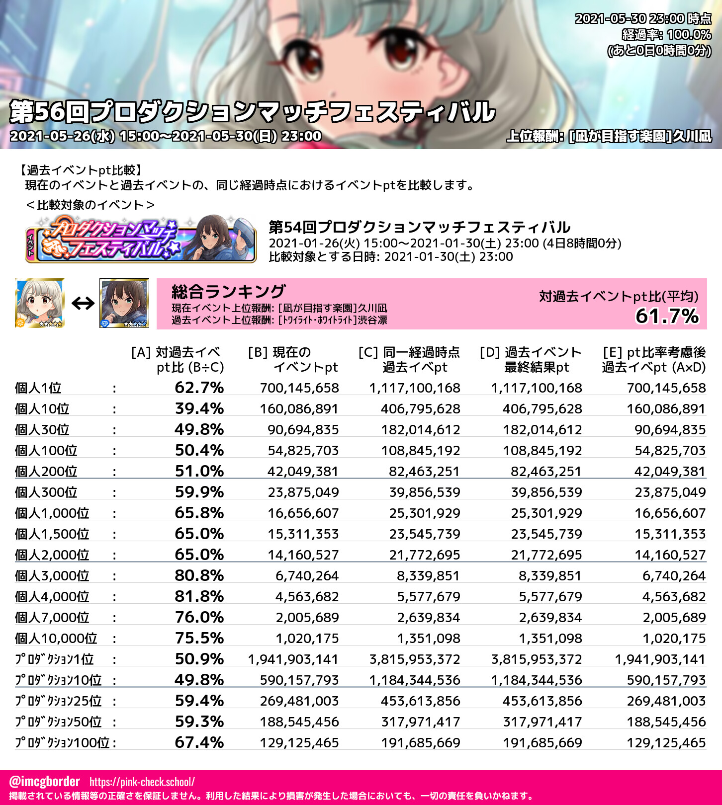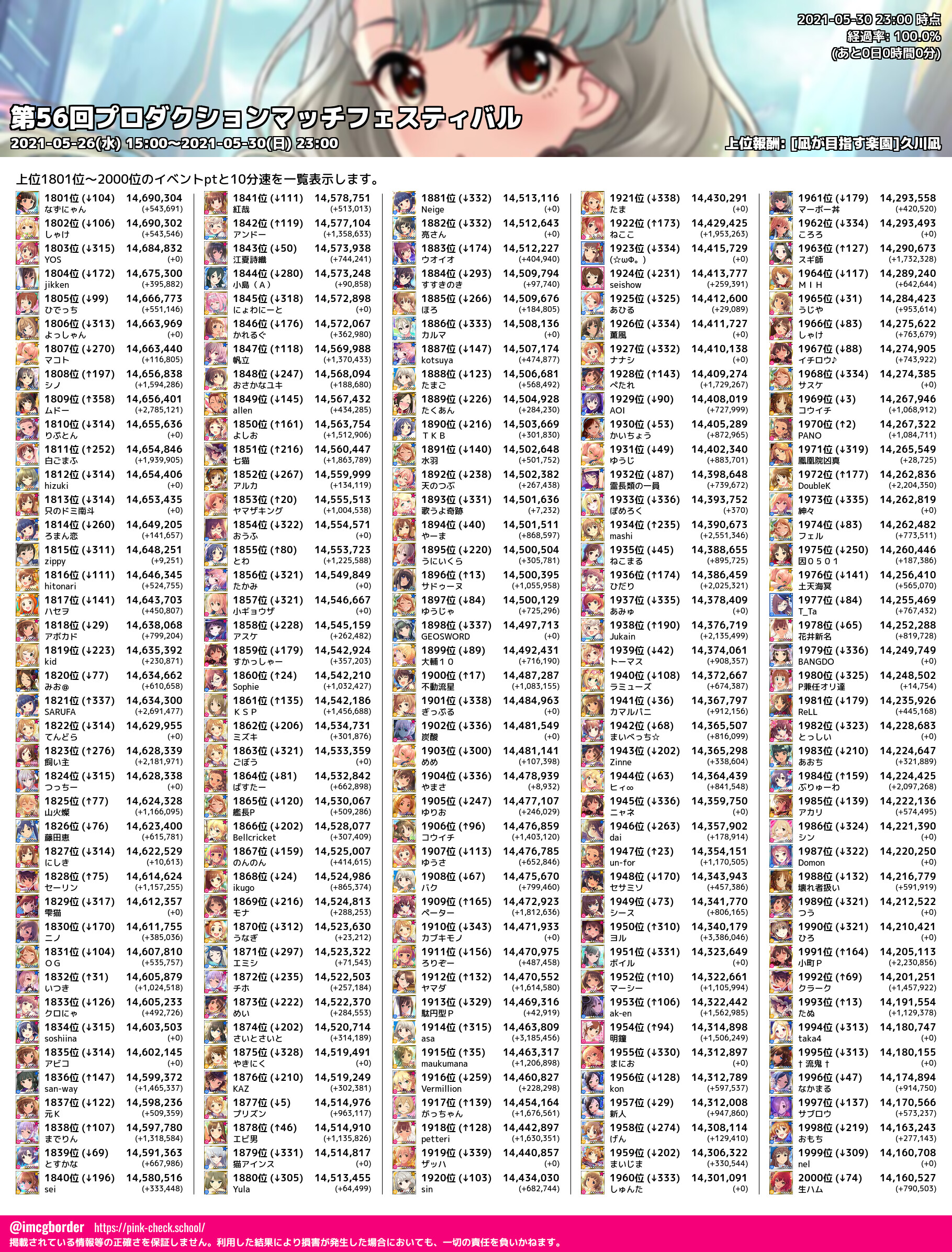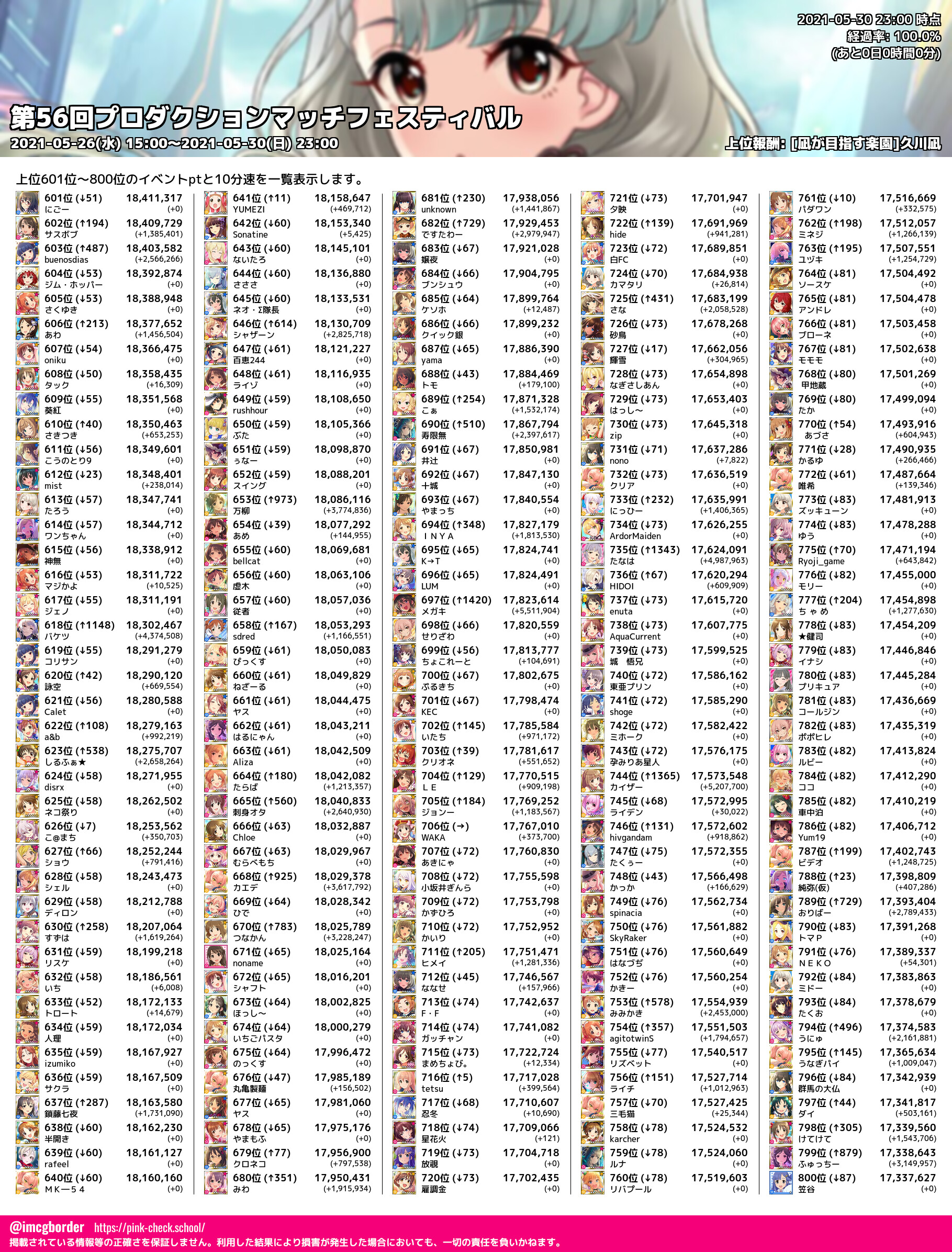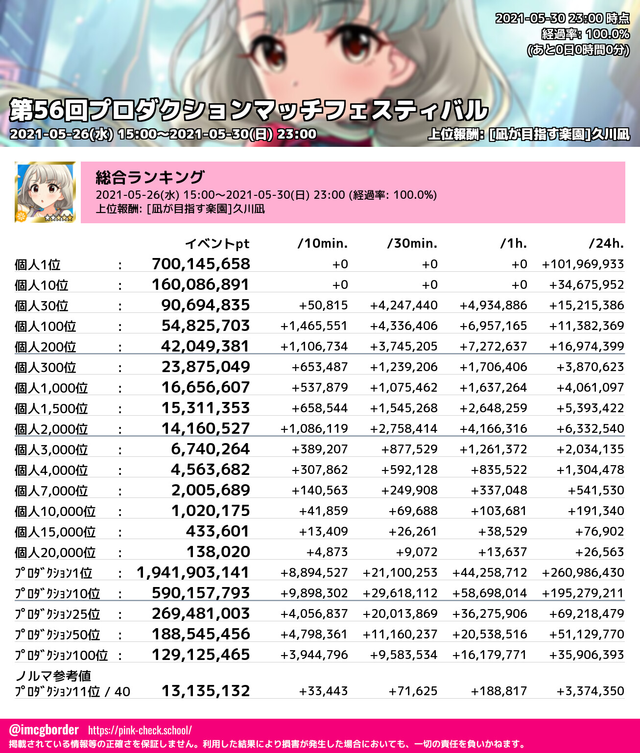 上位プロデューサースコア (2021-05-30 23:00 時点)