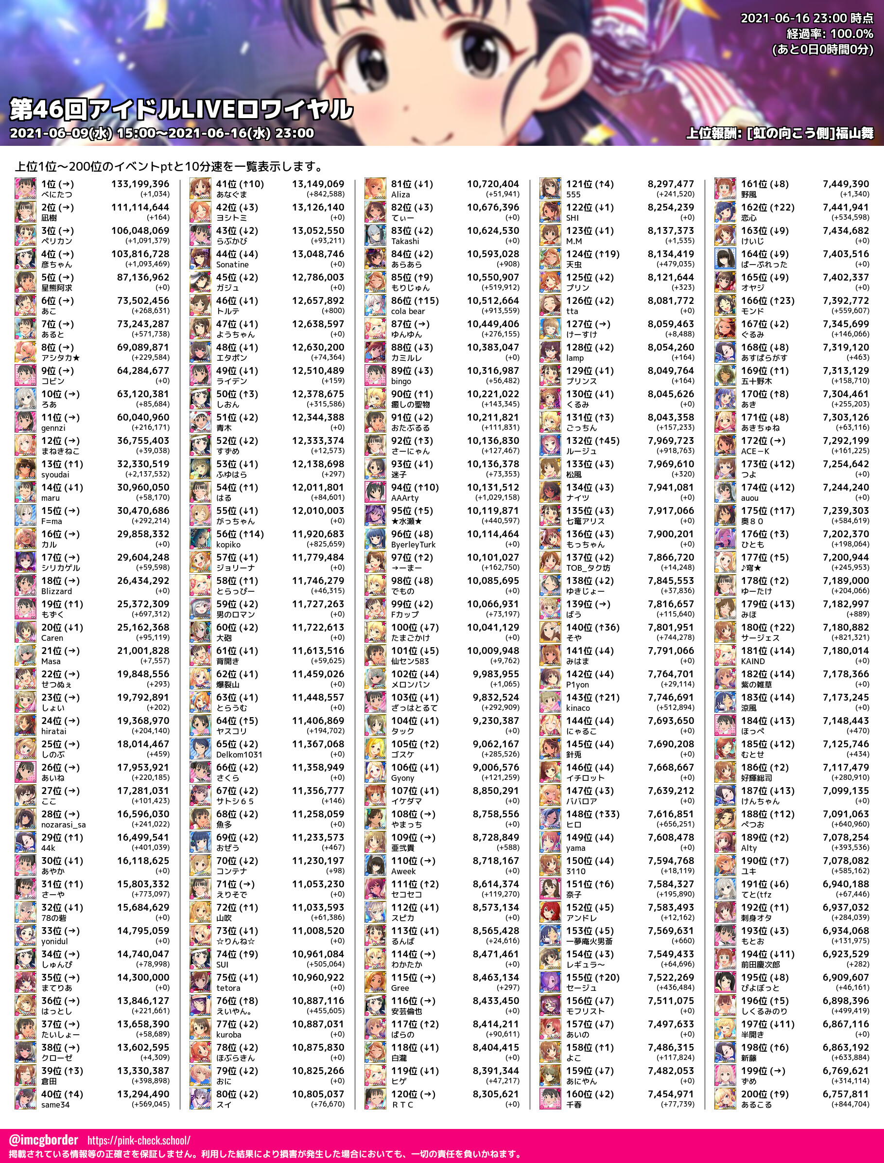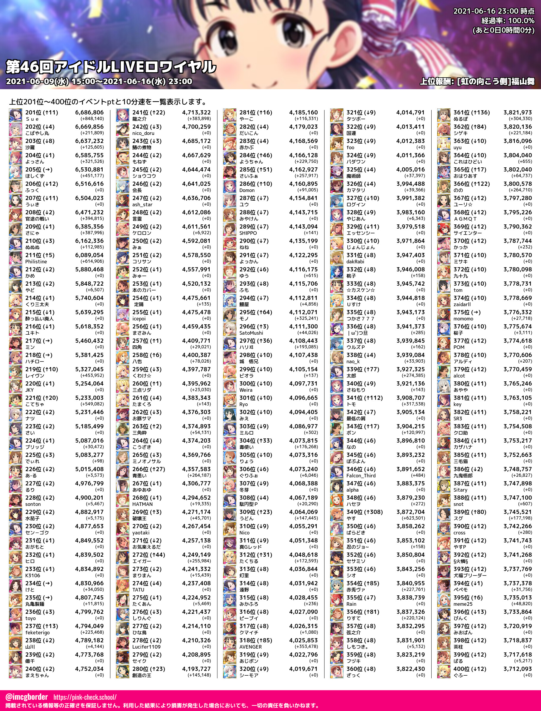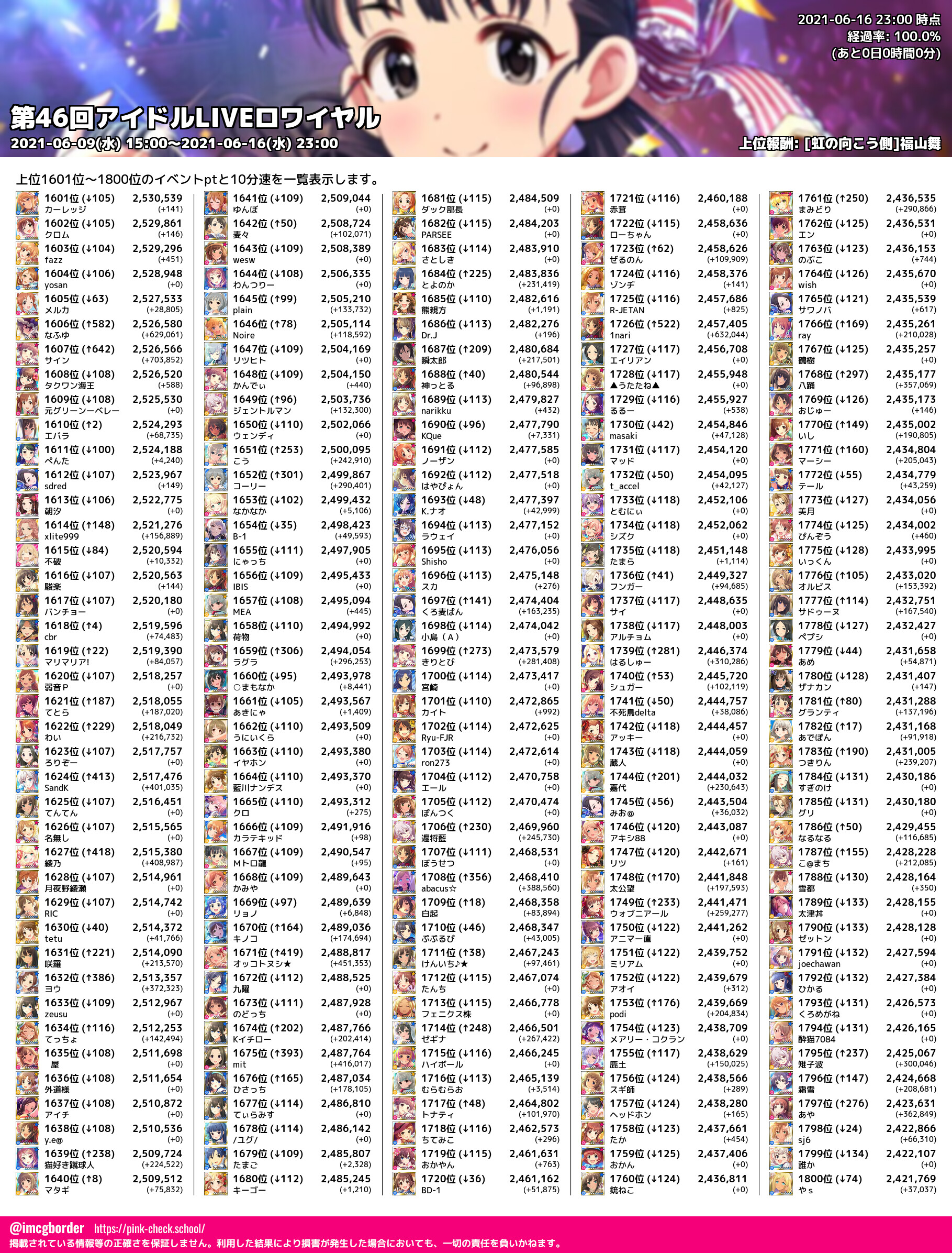 上位プロデューサースコア (2021-06-16 23:00 時点)