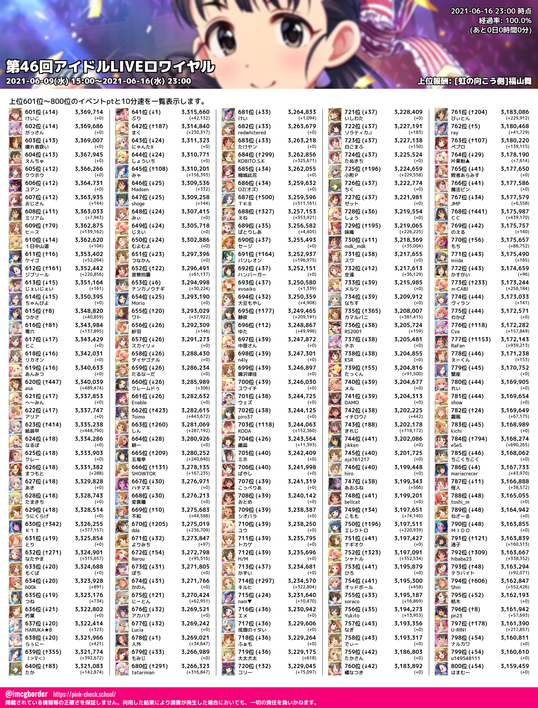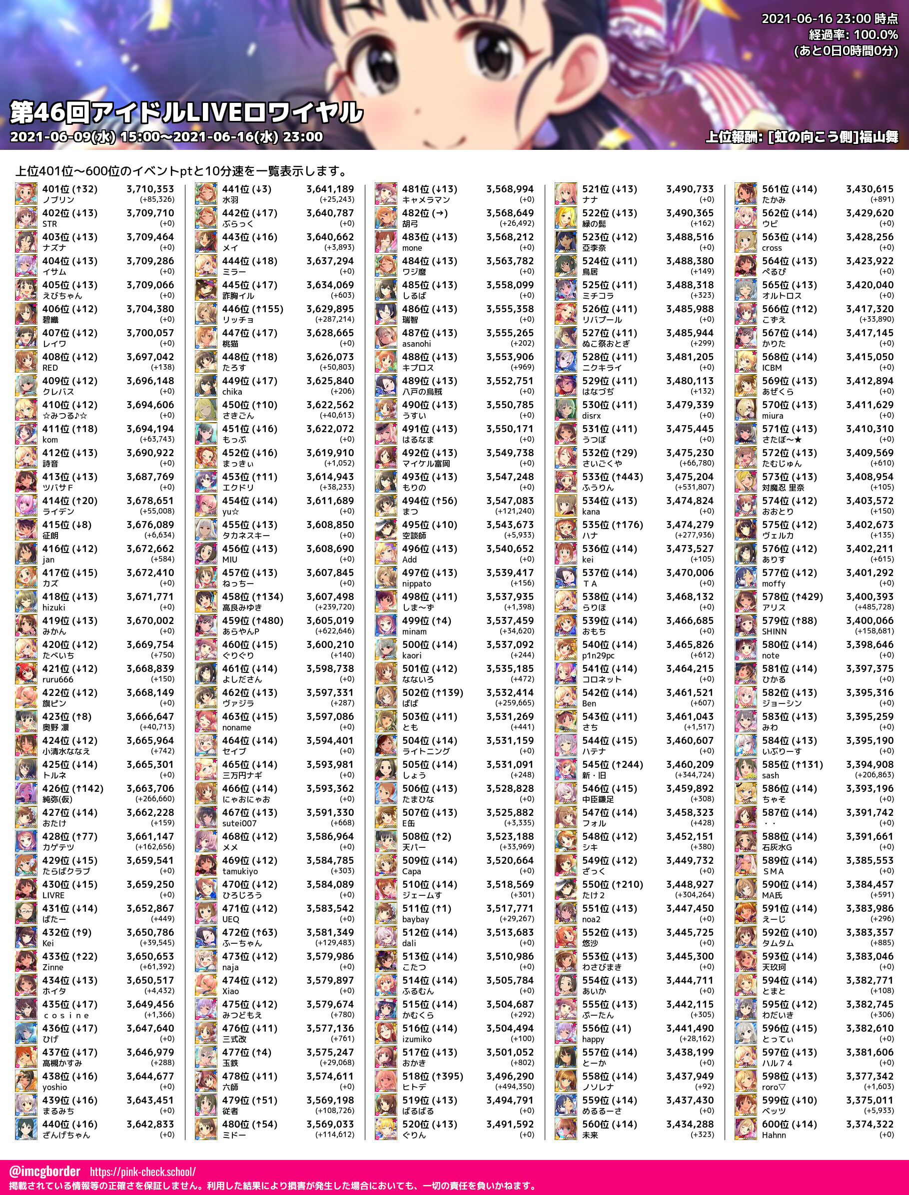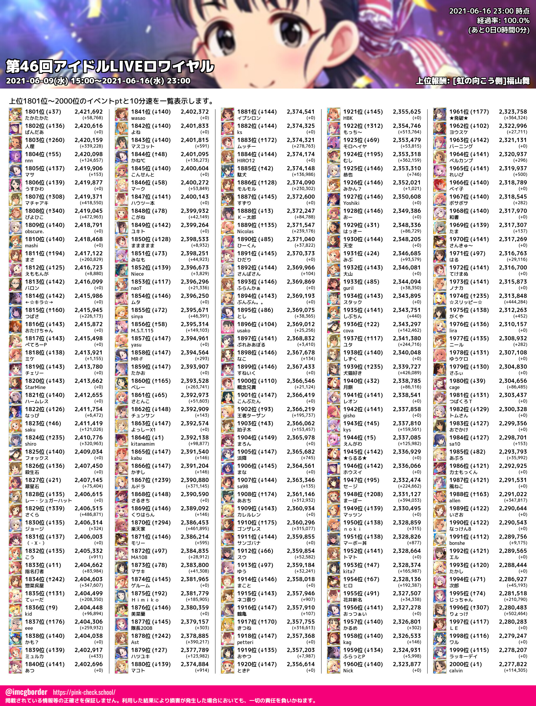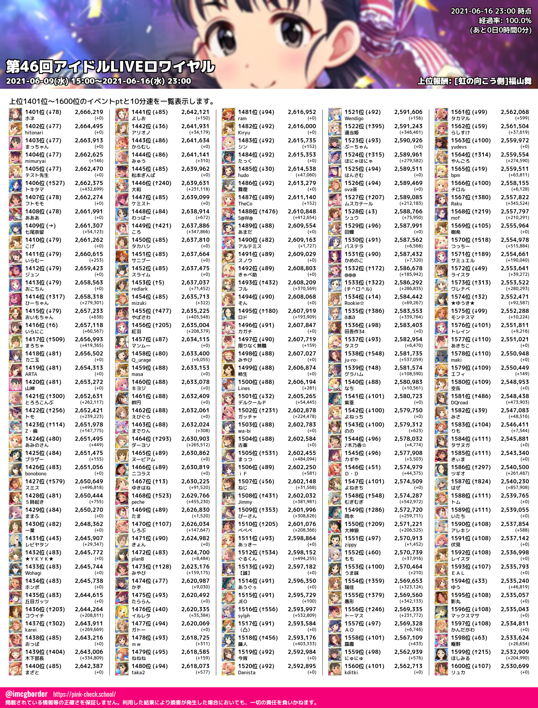 上位プロデューサースコア (2021-06-16 23:00 時点)