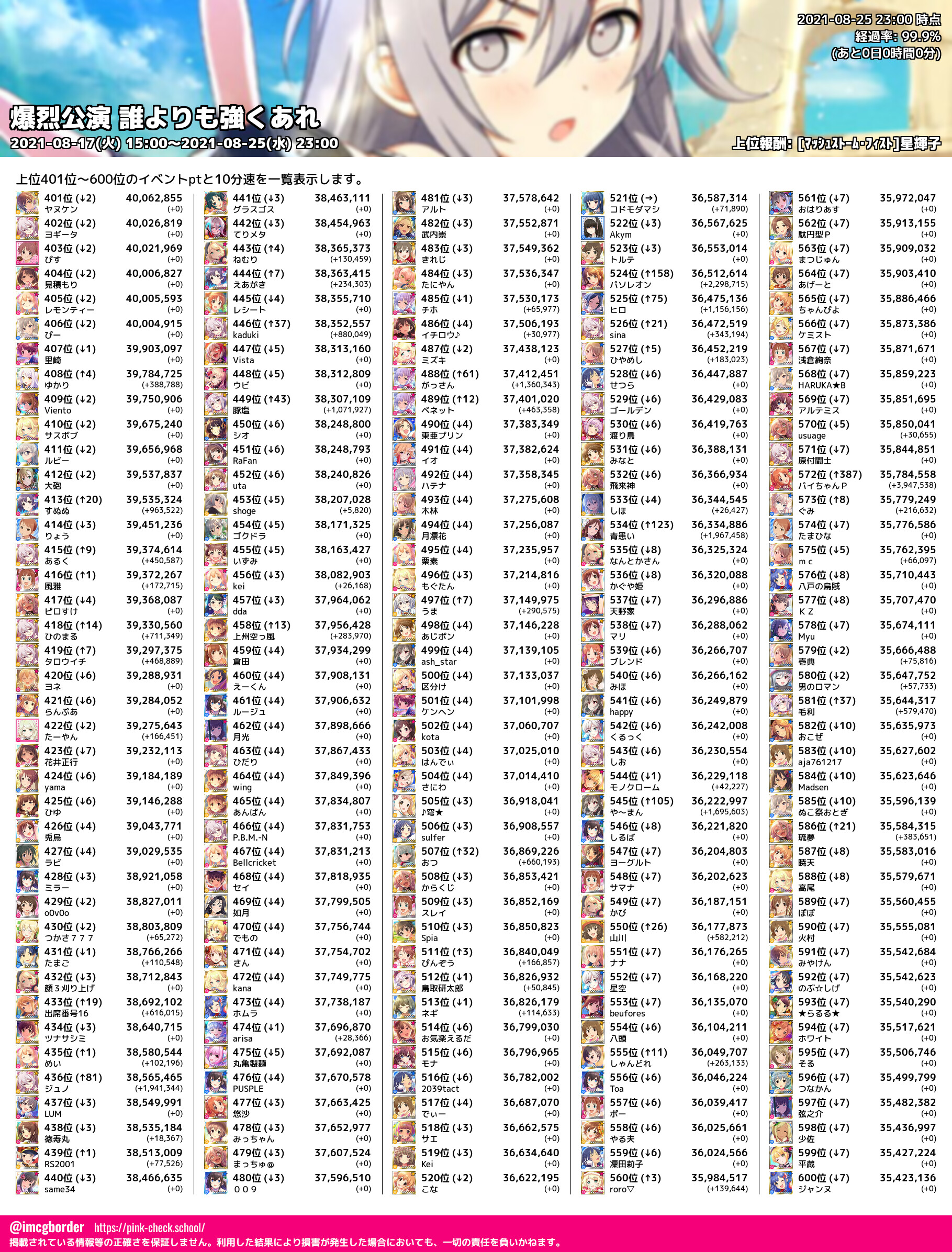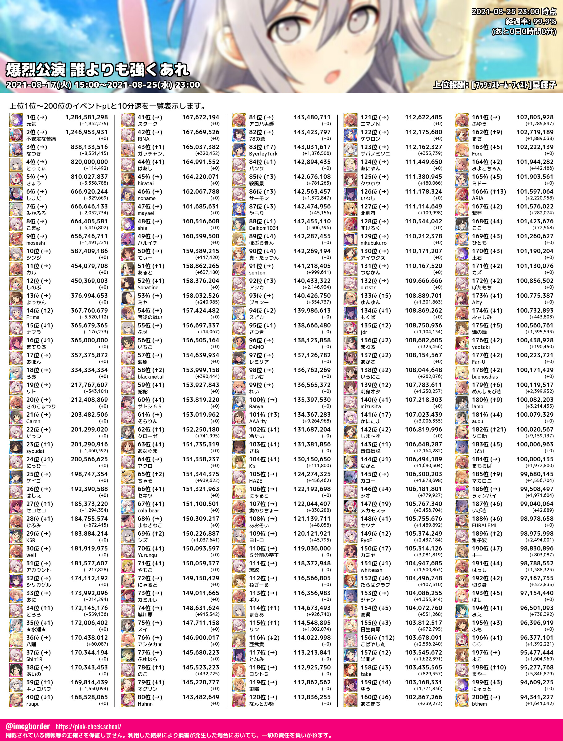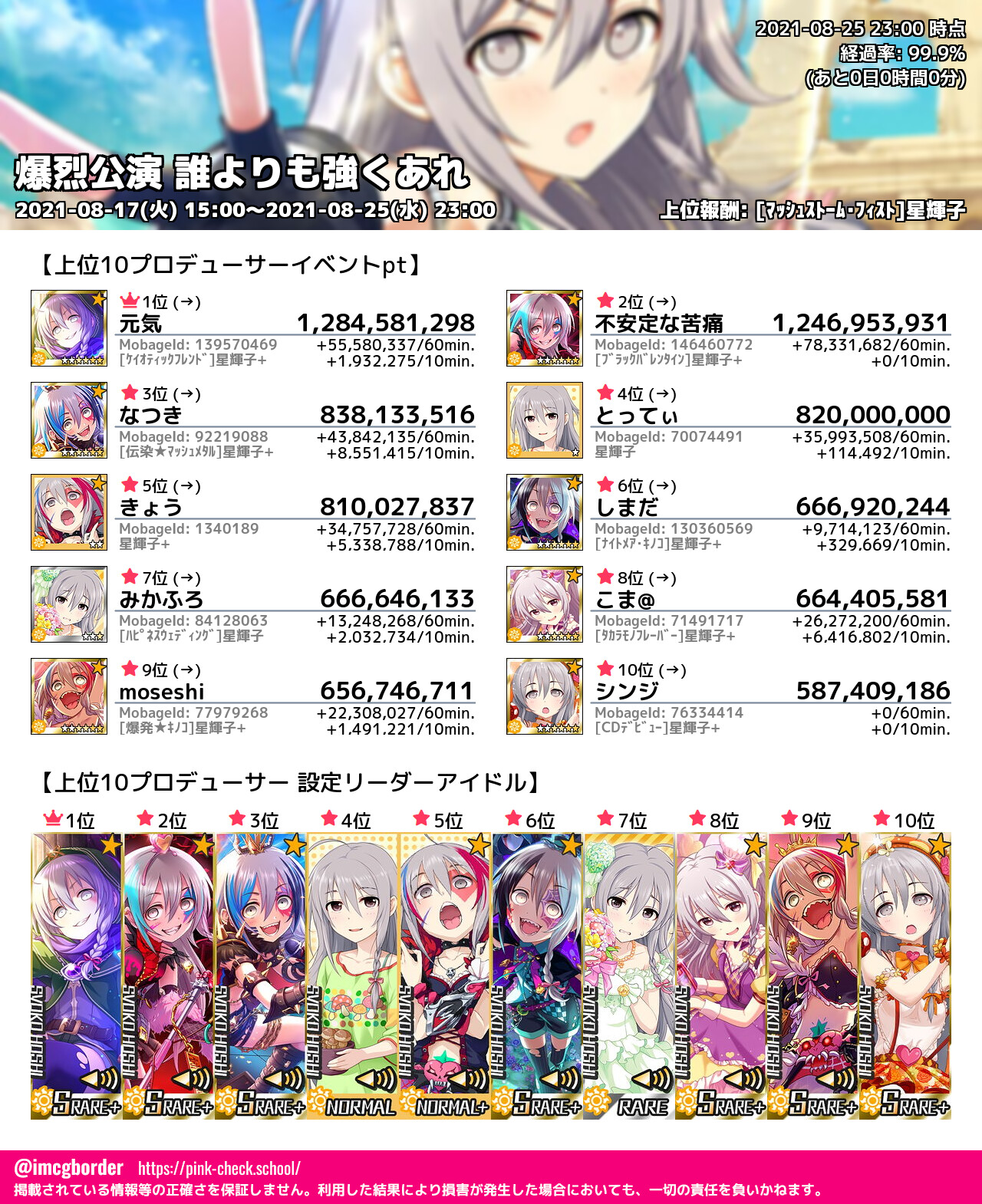 上位プロデューサースコア (2021-08-25 23:00 時点)