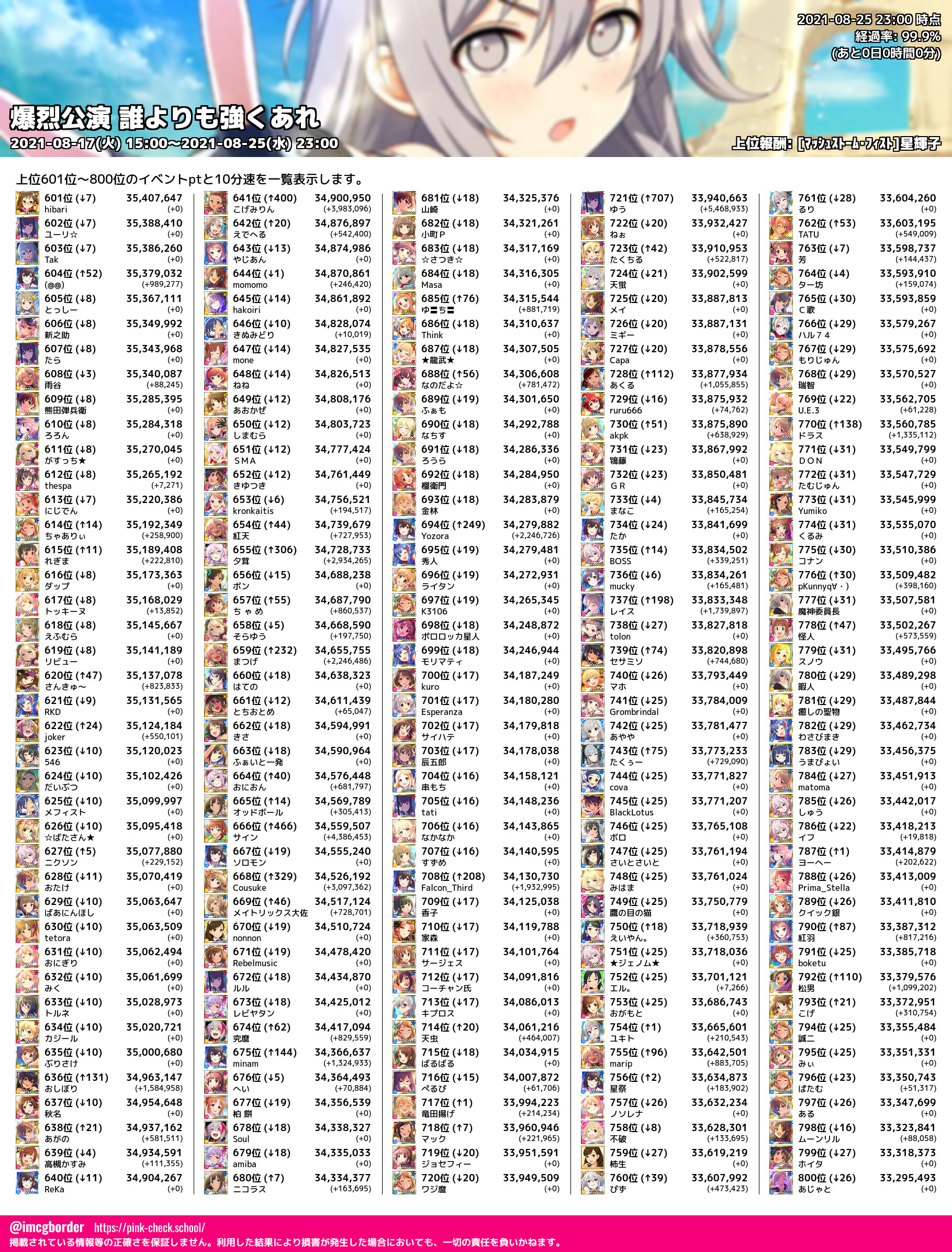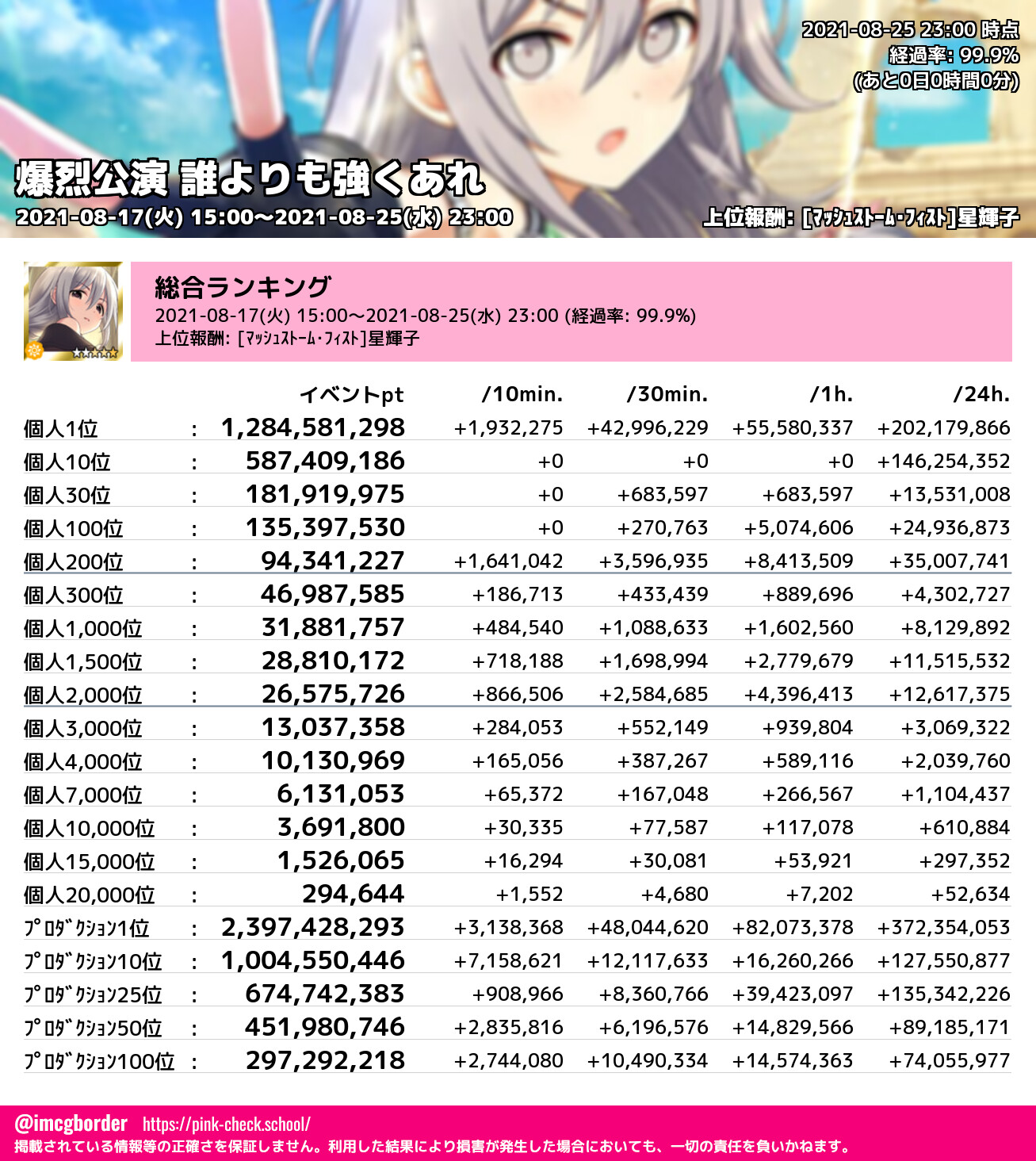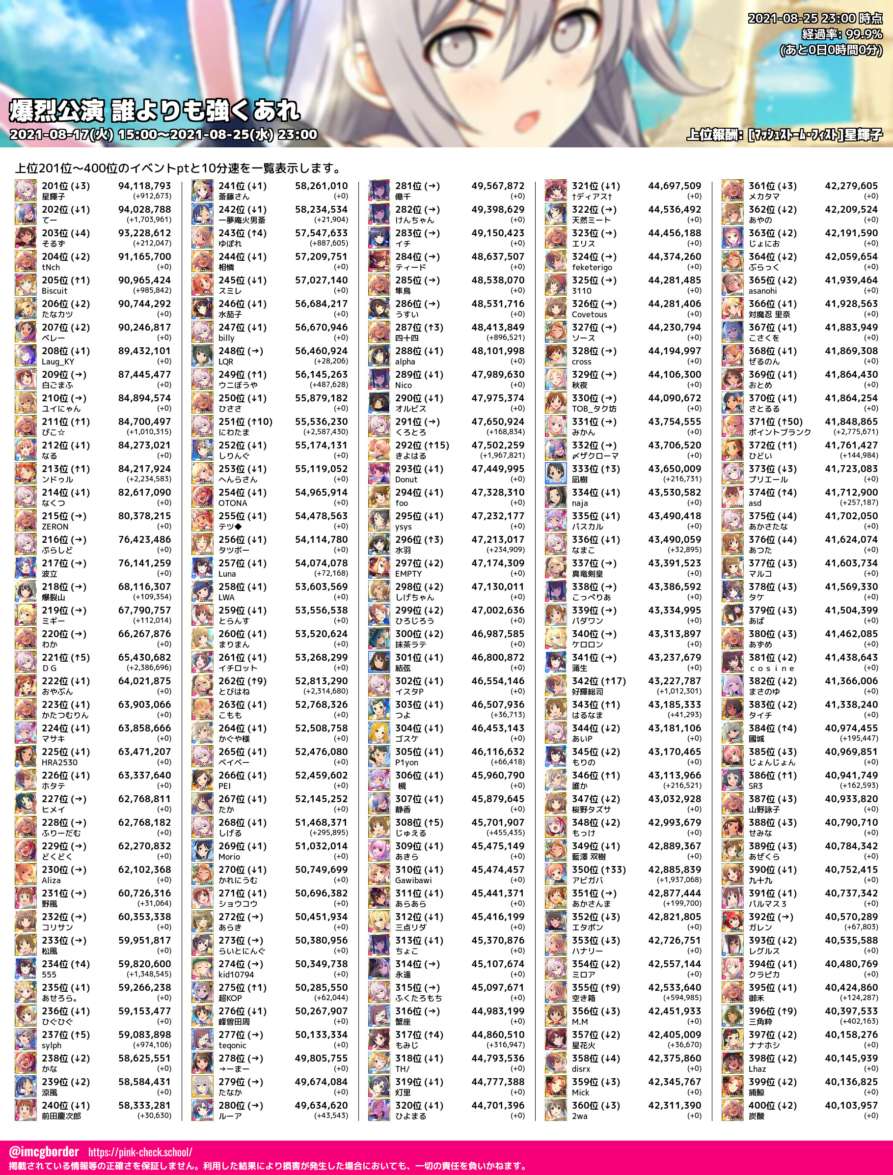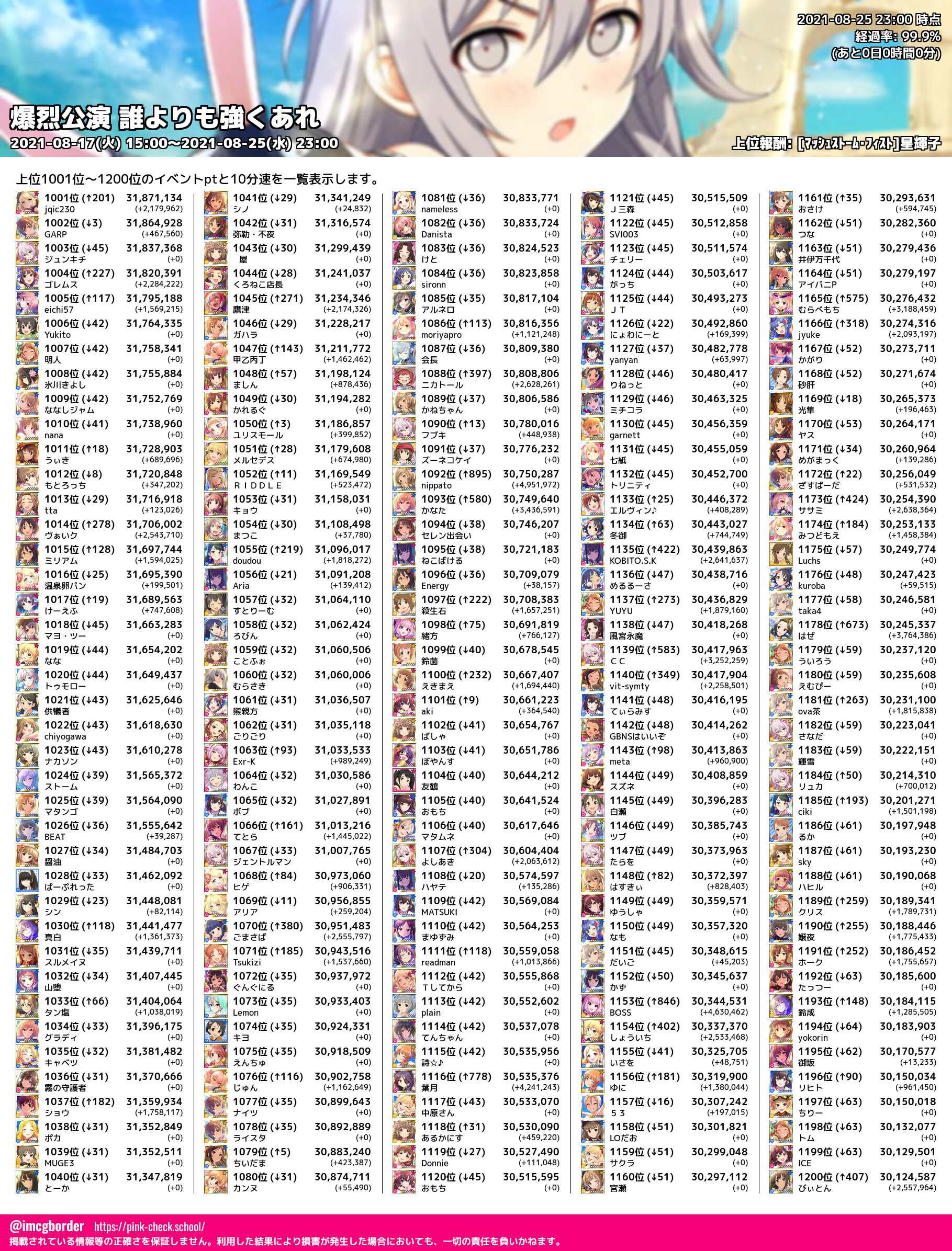 上位プロデューサースコア (2021-08-25 23:00 時点)