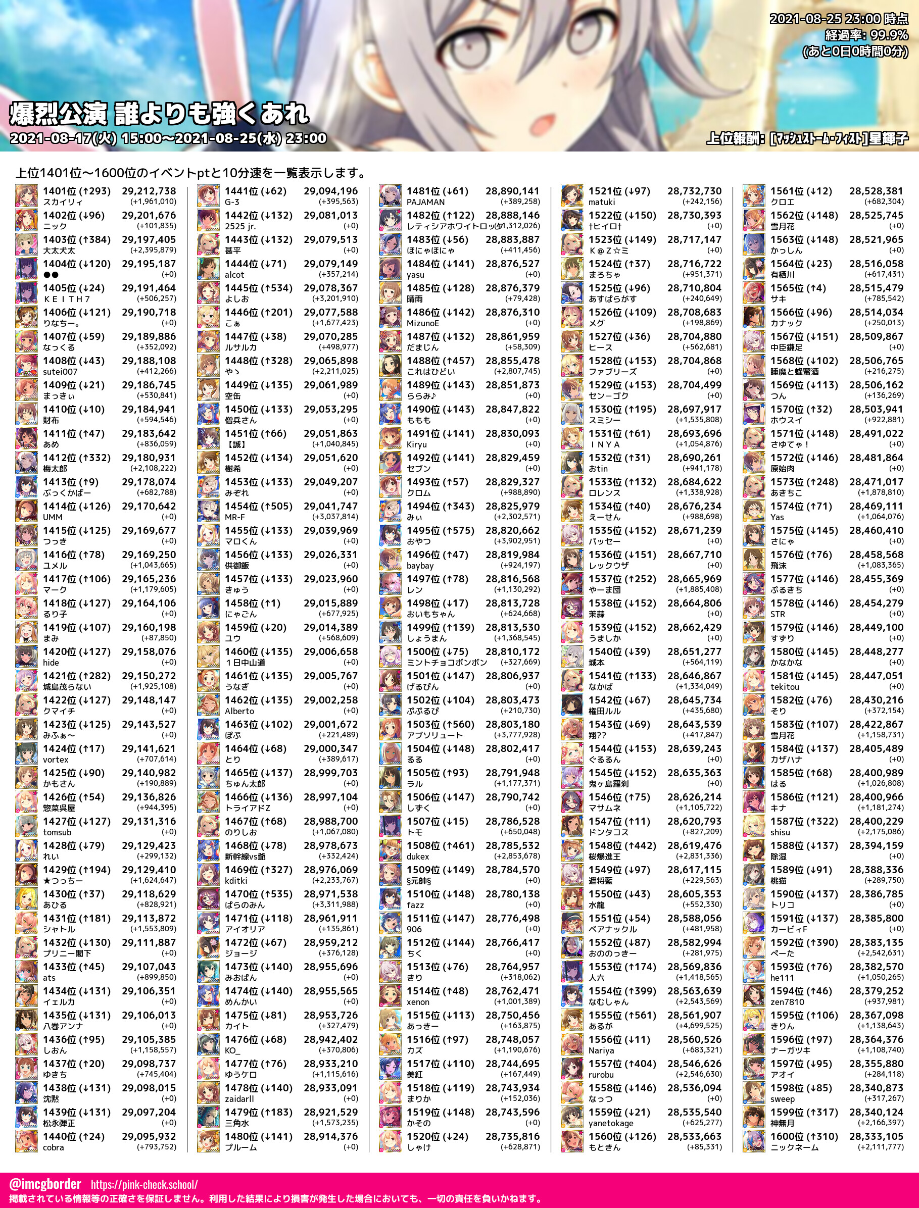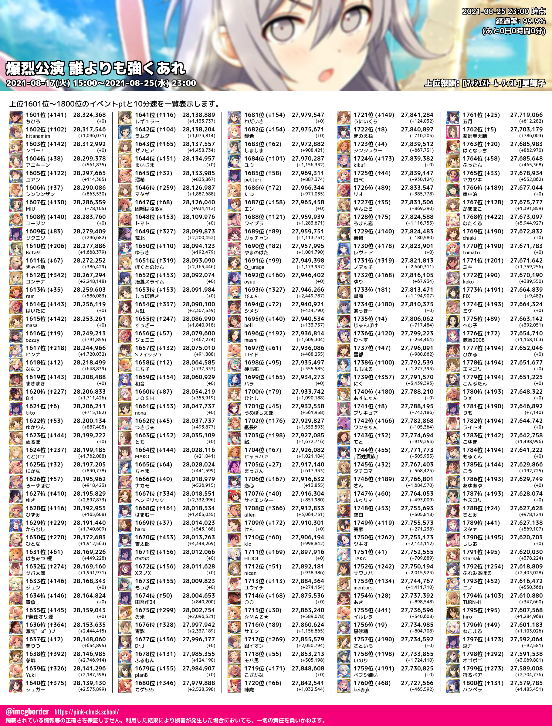 | 開催期間 | 2021-08-17(火) 15:00~2021-08-25(水) 23:00 |