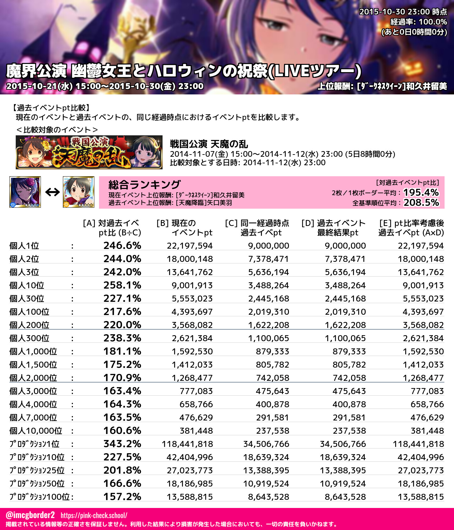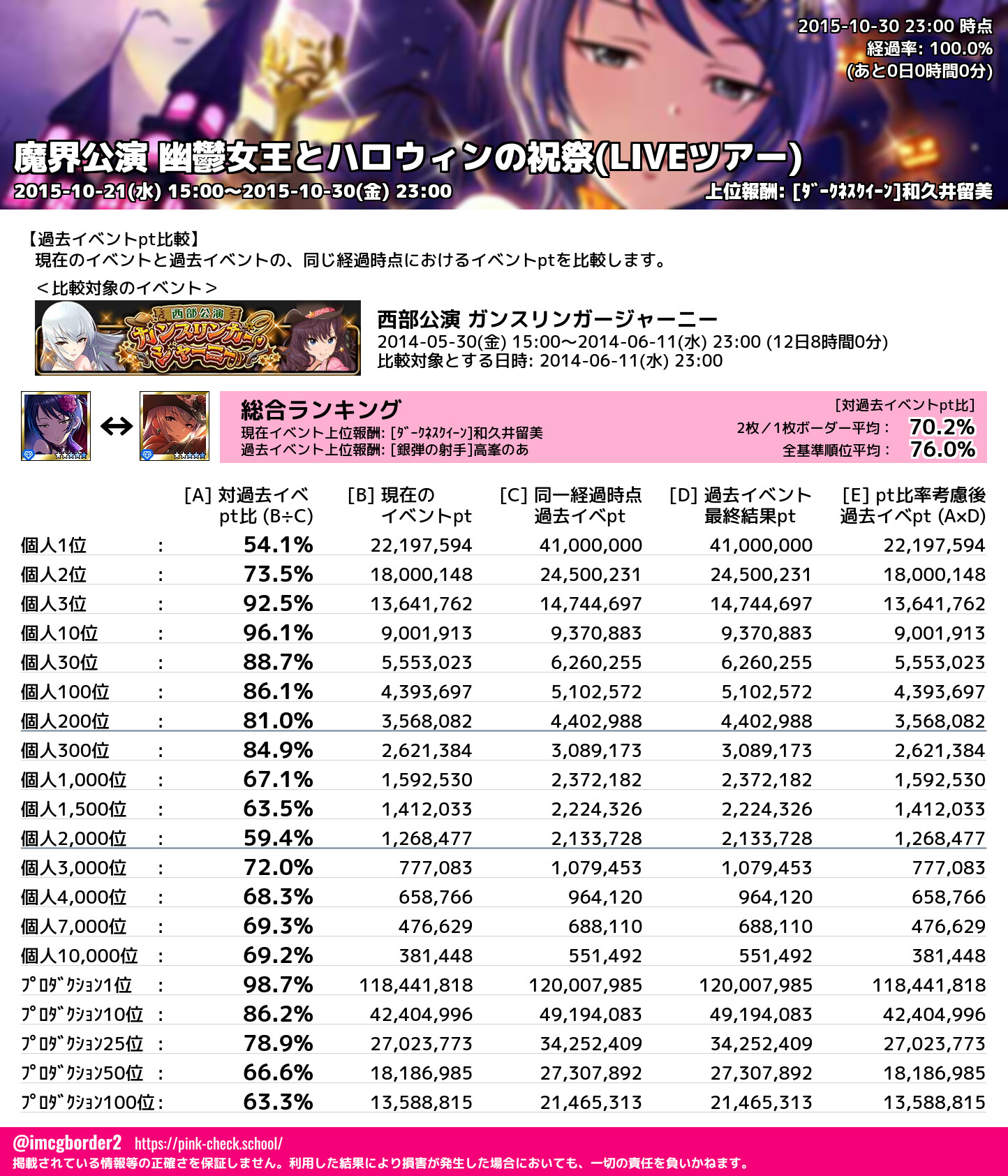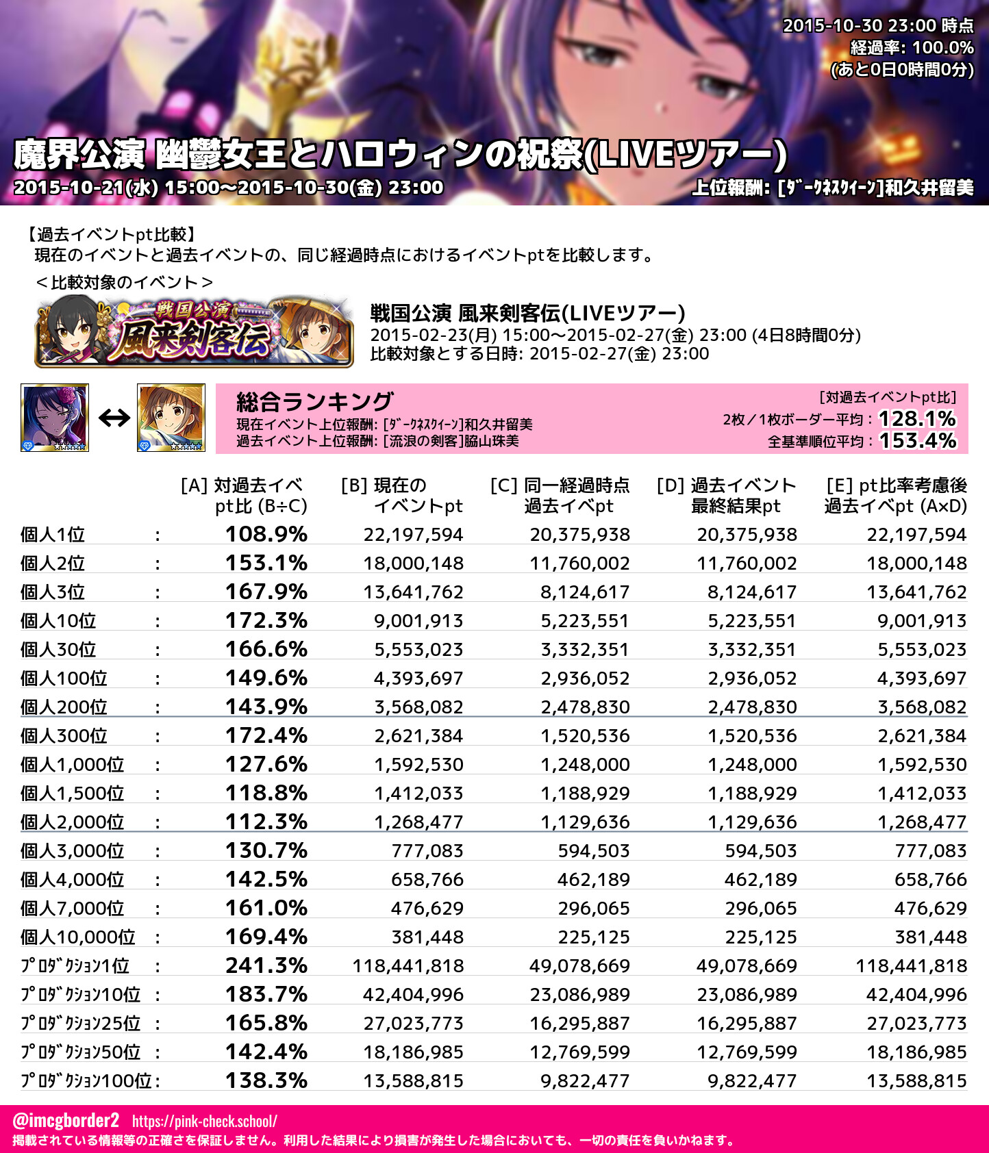 魔界公演 幽鬱女王とハロウィンの祝祭(LIVEツアー) 結果集計完了