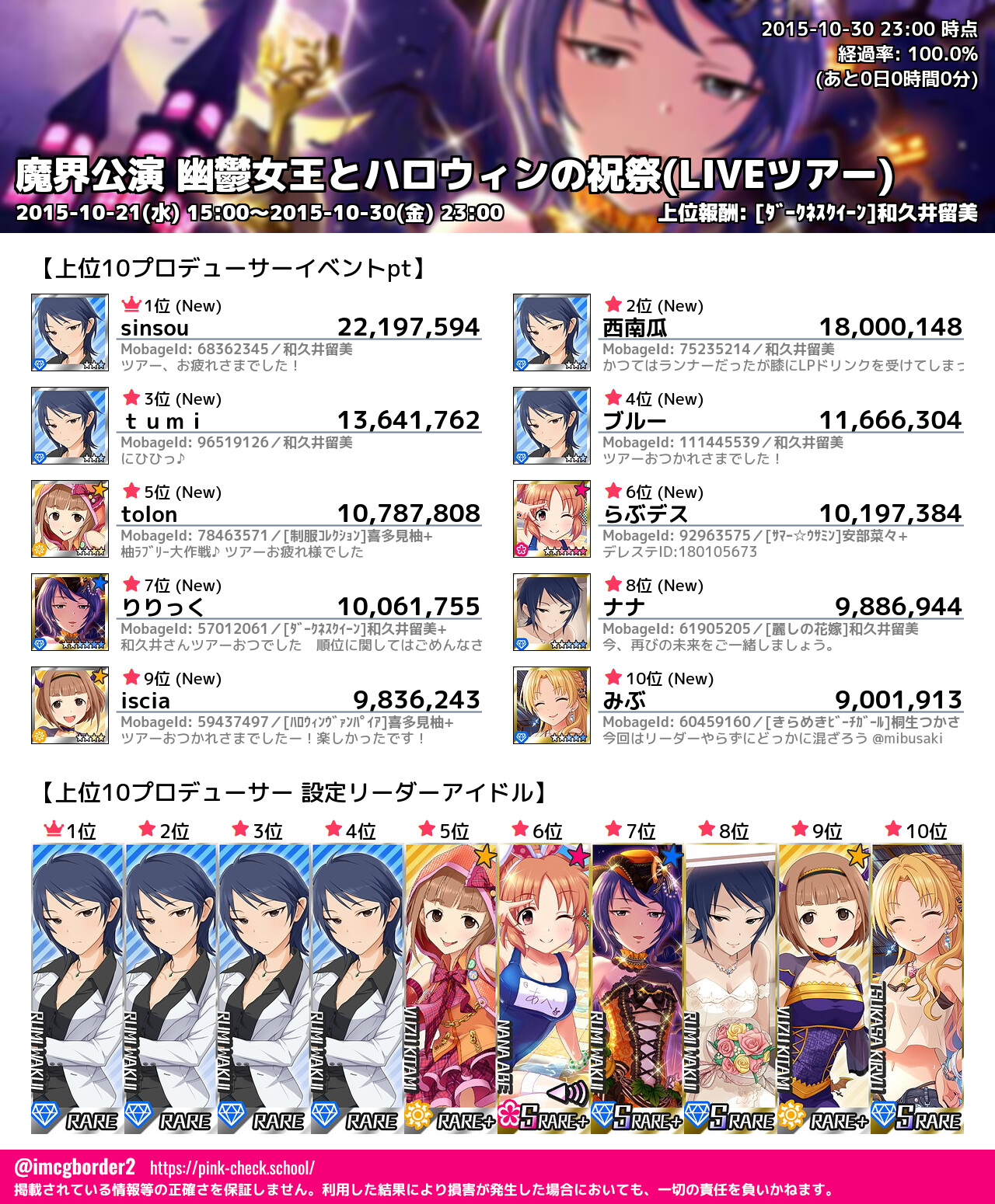 上位プロデューサースコア (2015-10-30 23:00 時点)