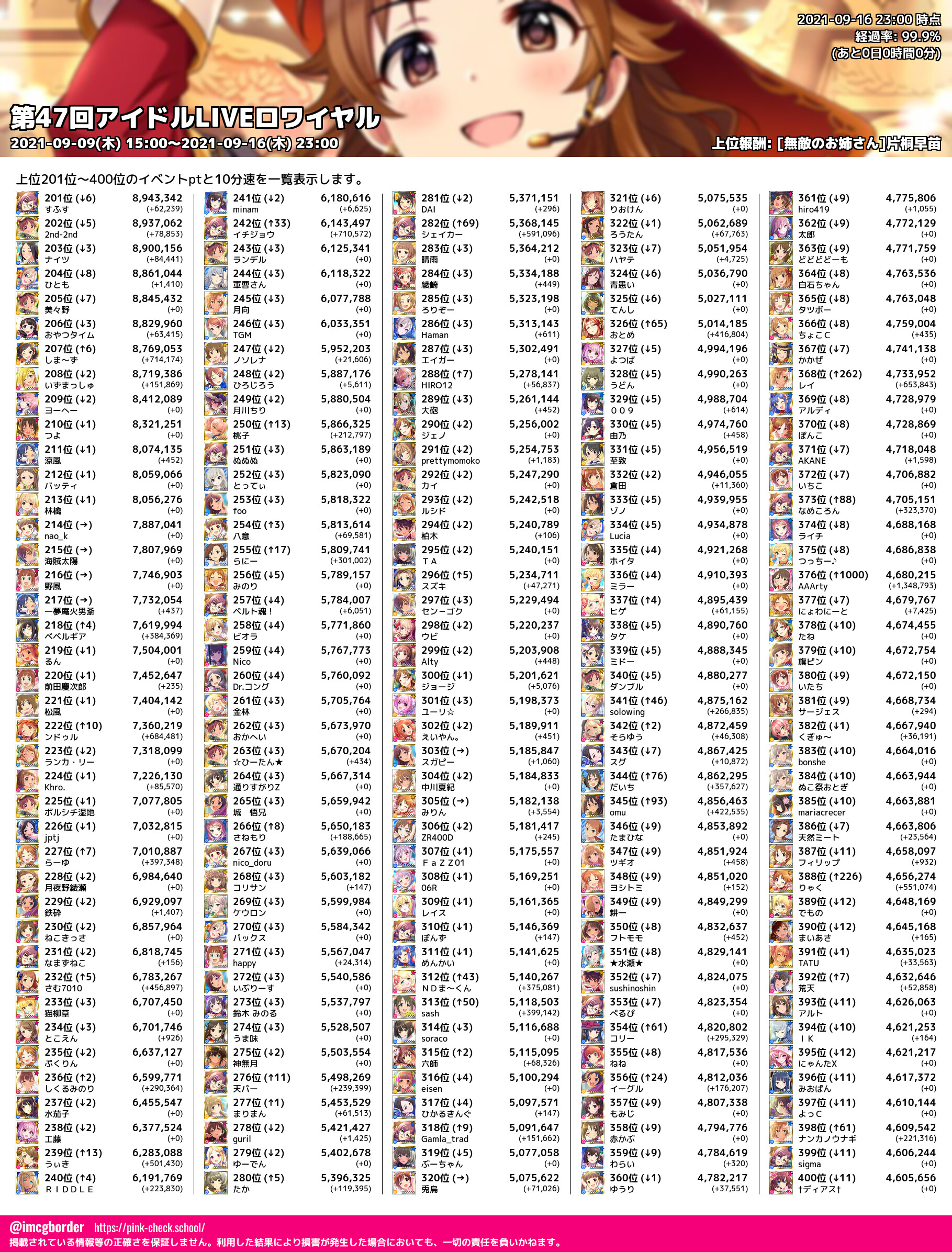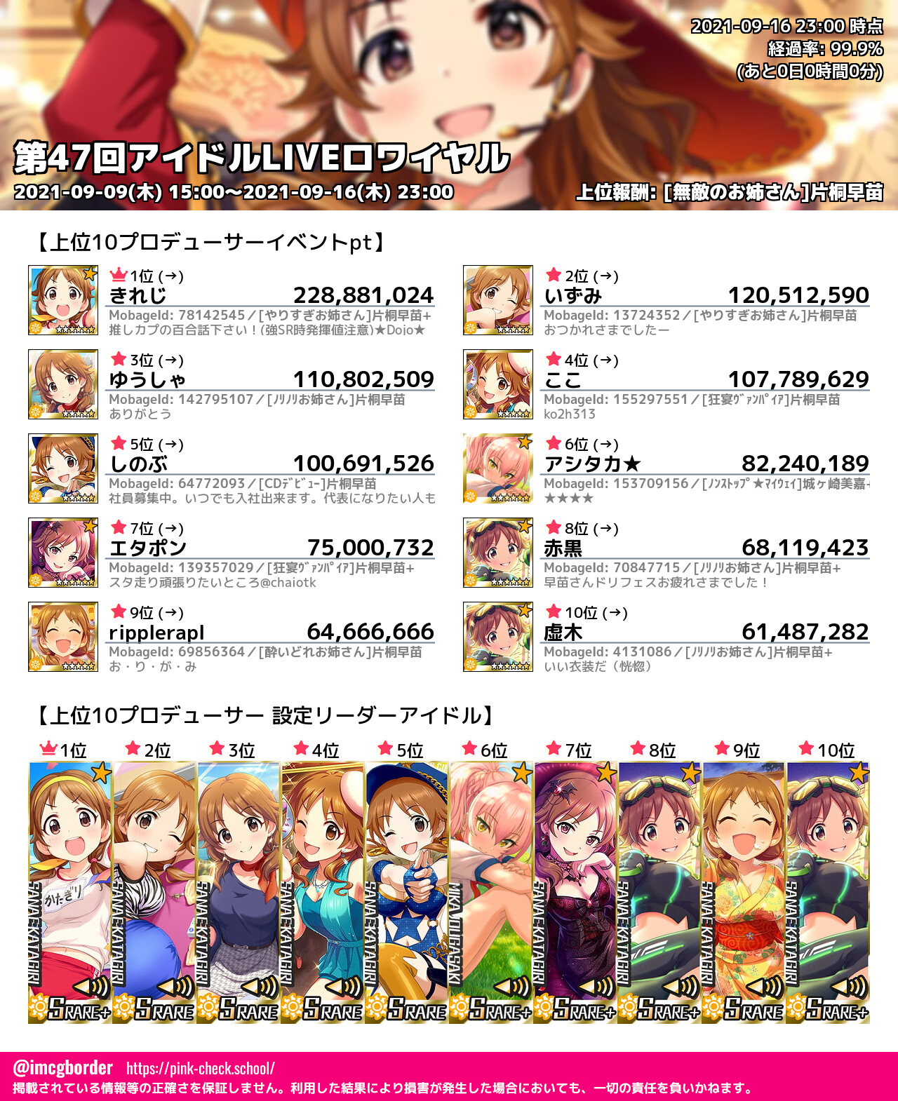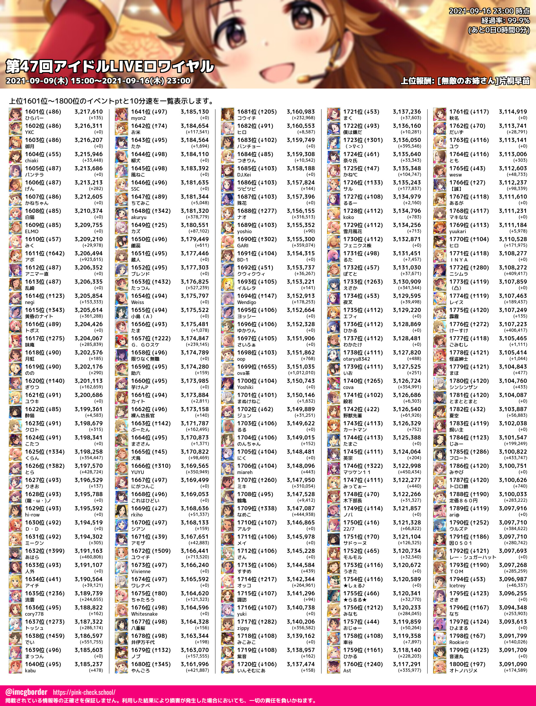 上位プロデューサースコア (2021-09-16 23:00 時点)
