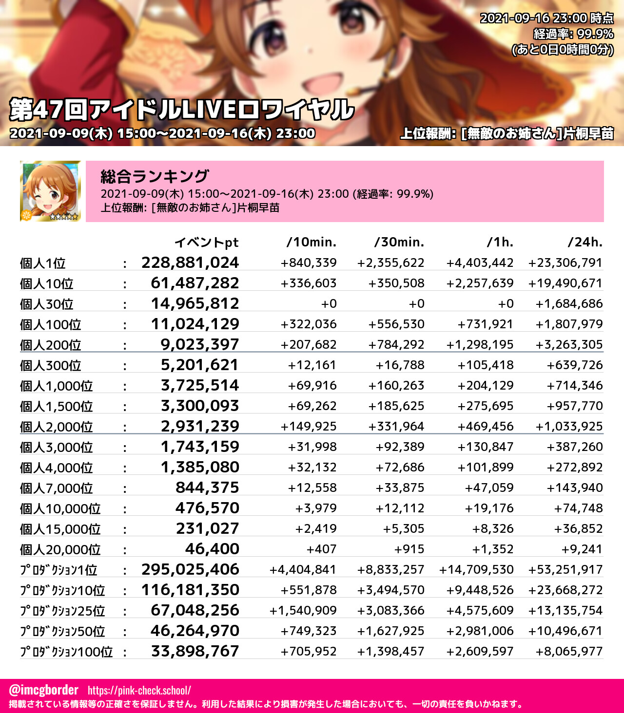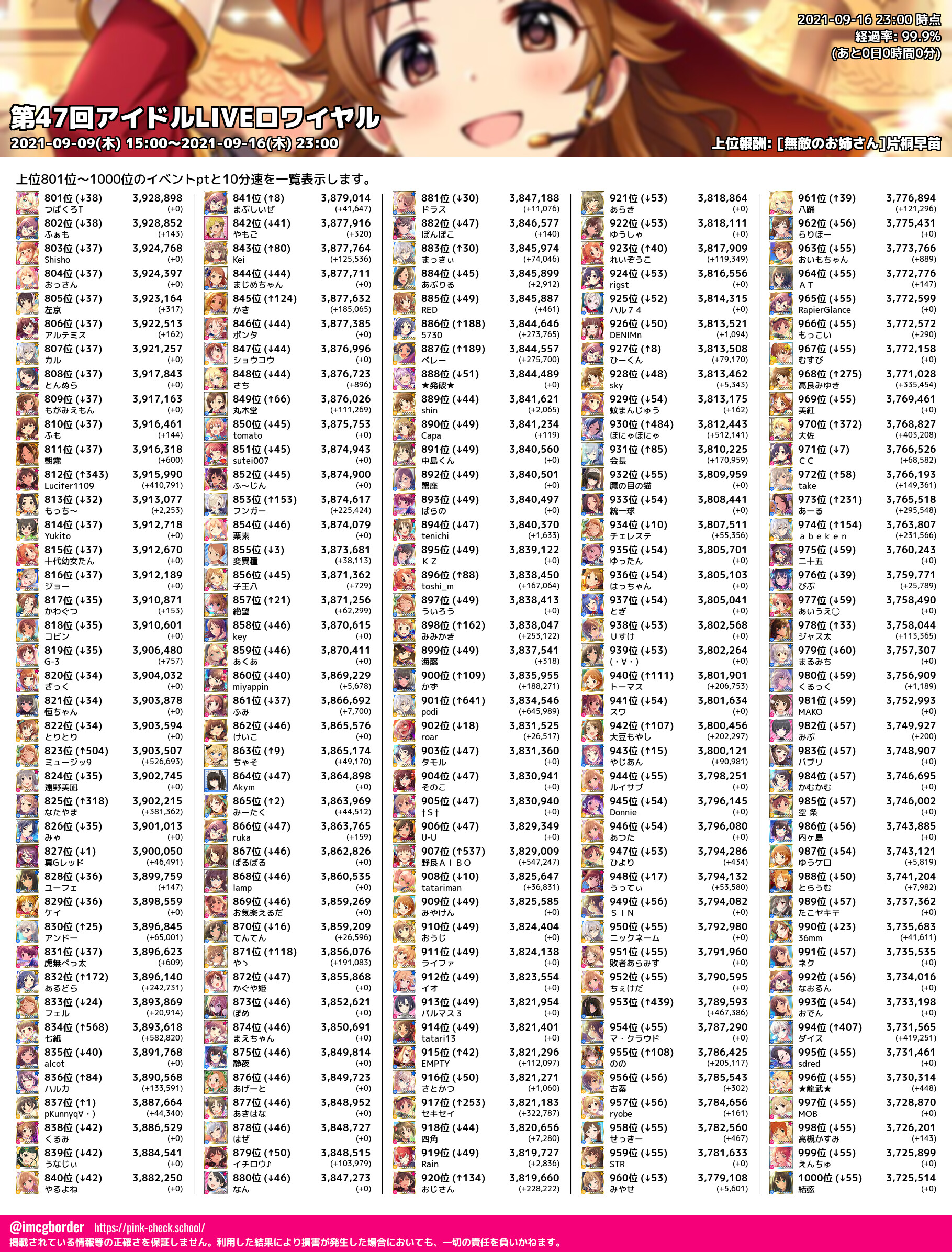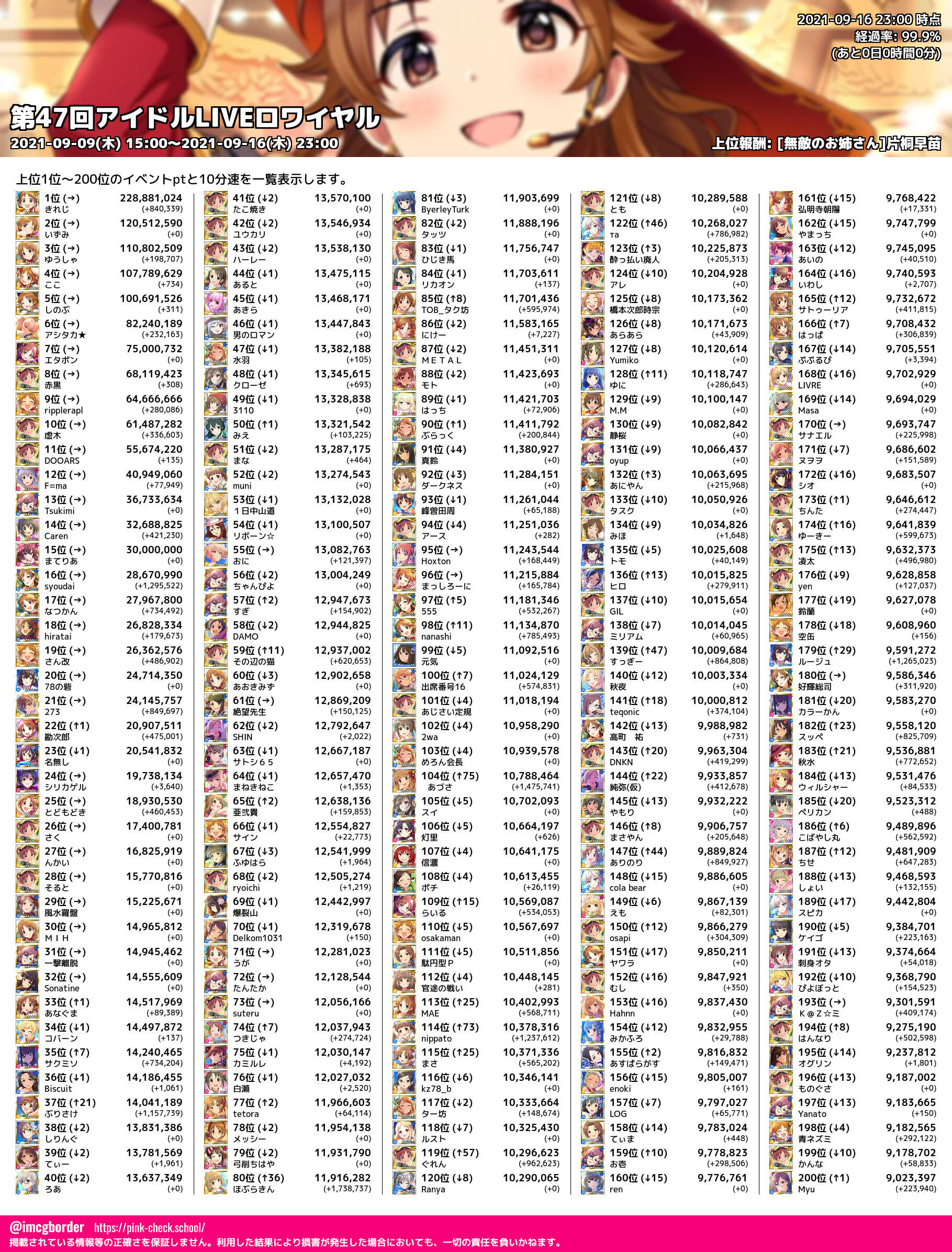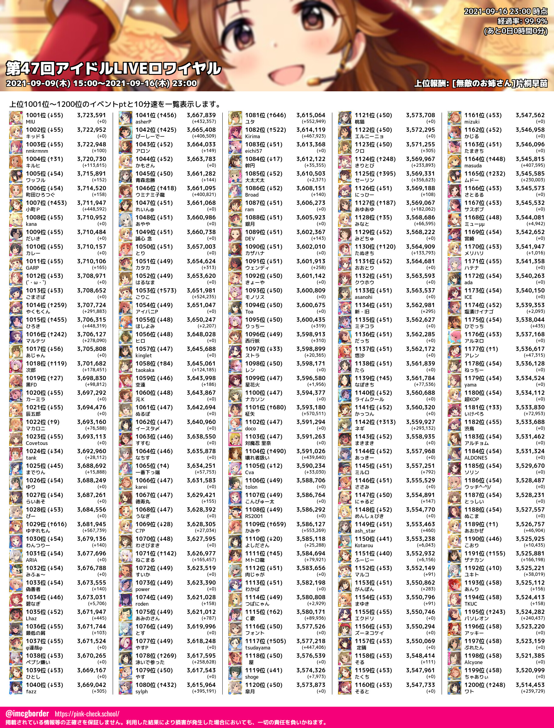 上位プロデューサースコア (2021-09-16 23:00 時点)