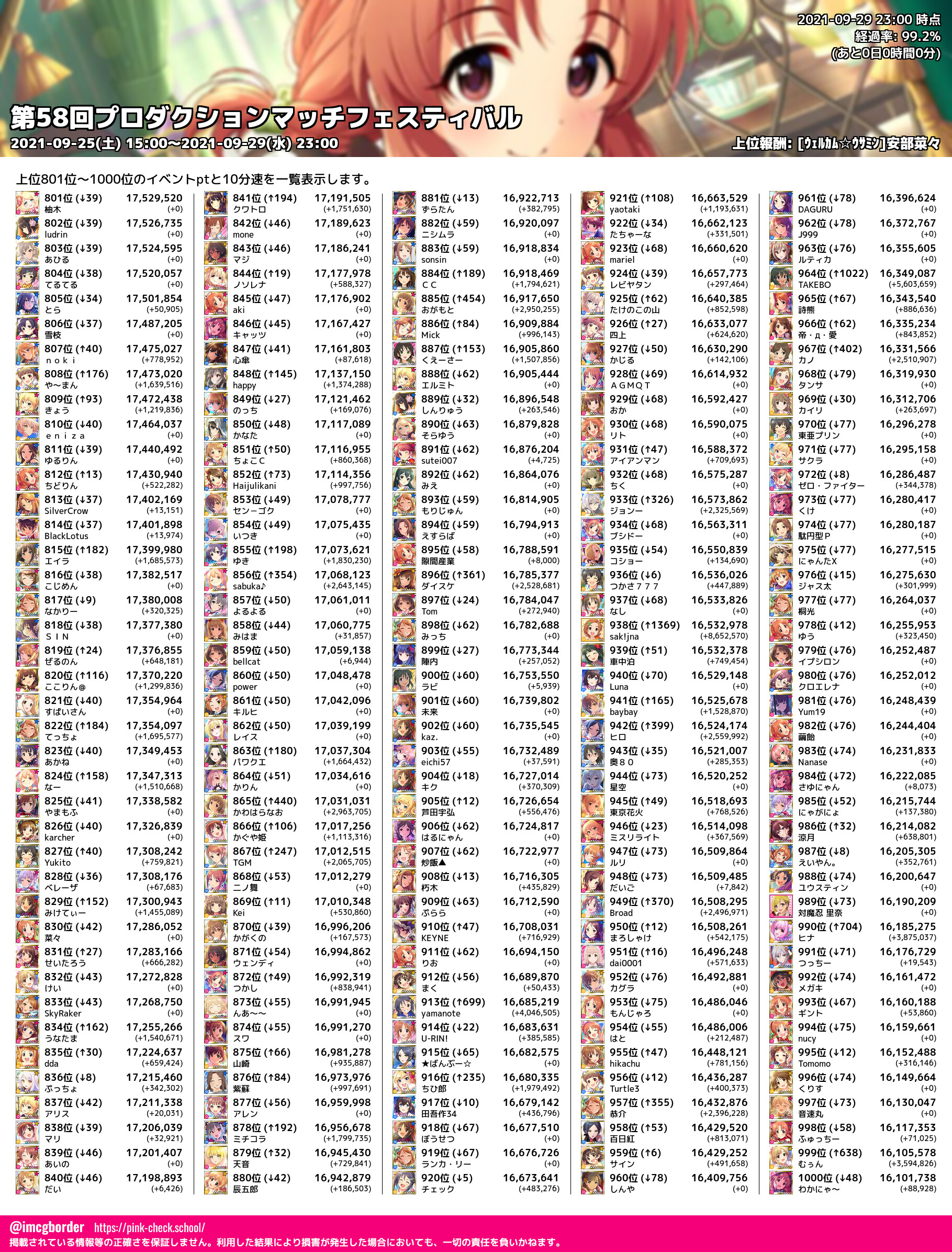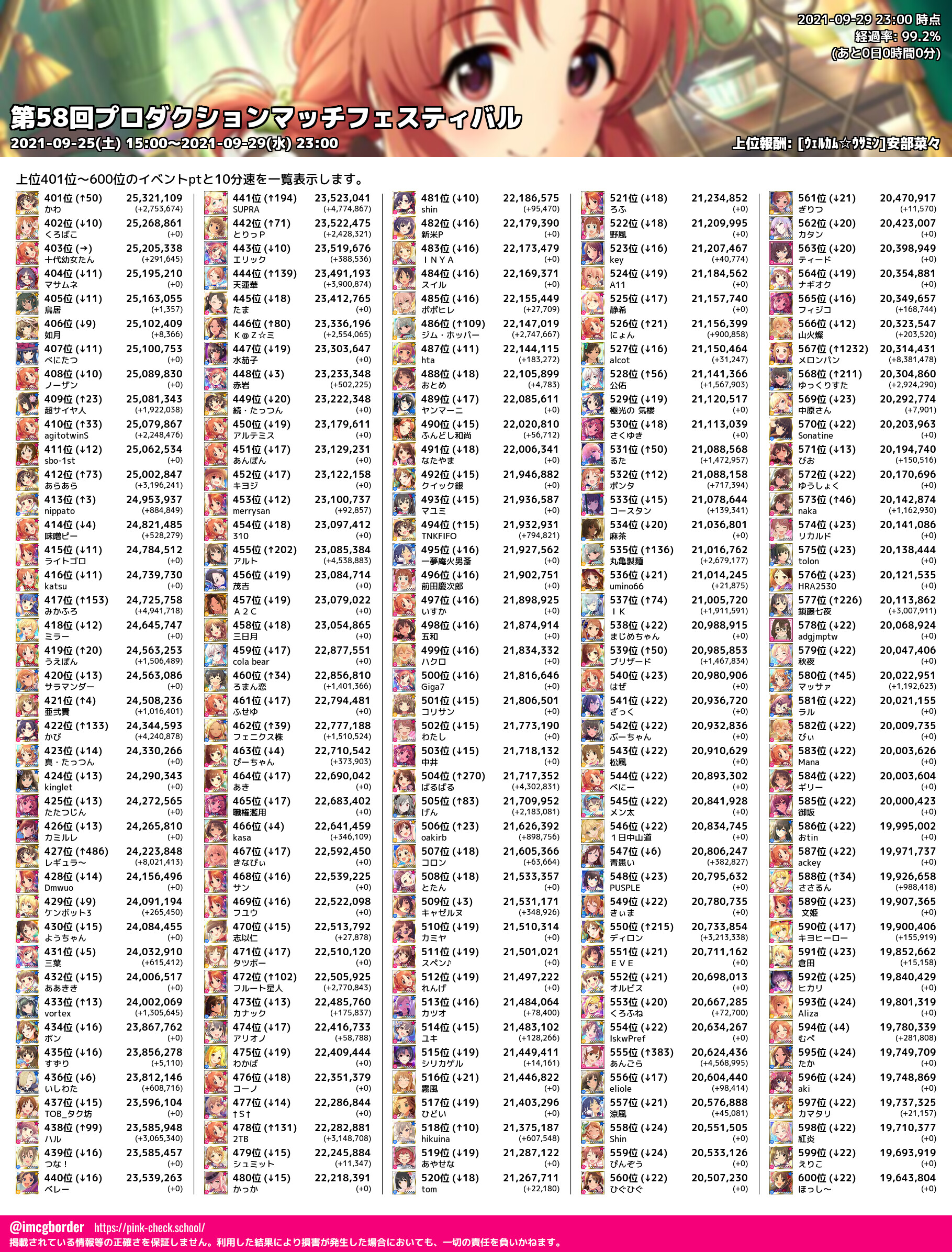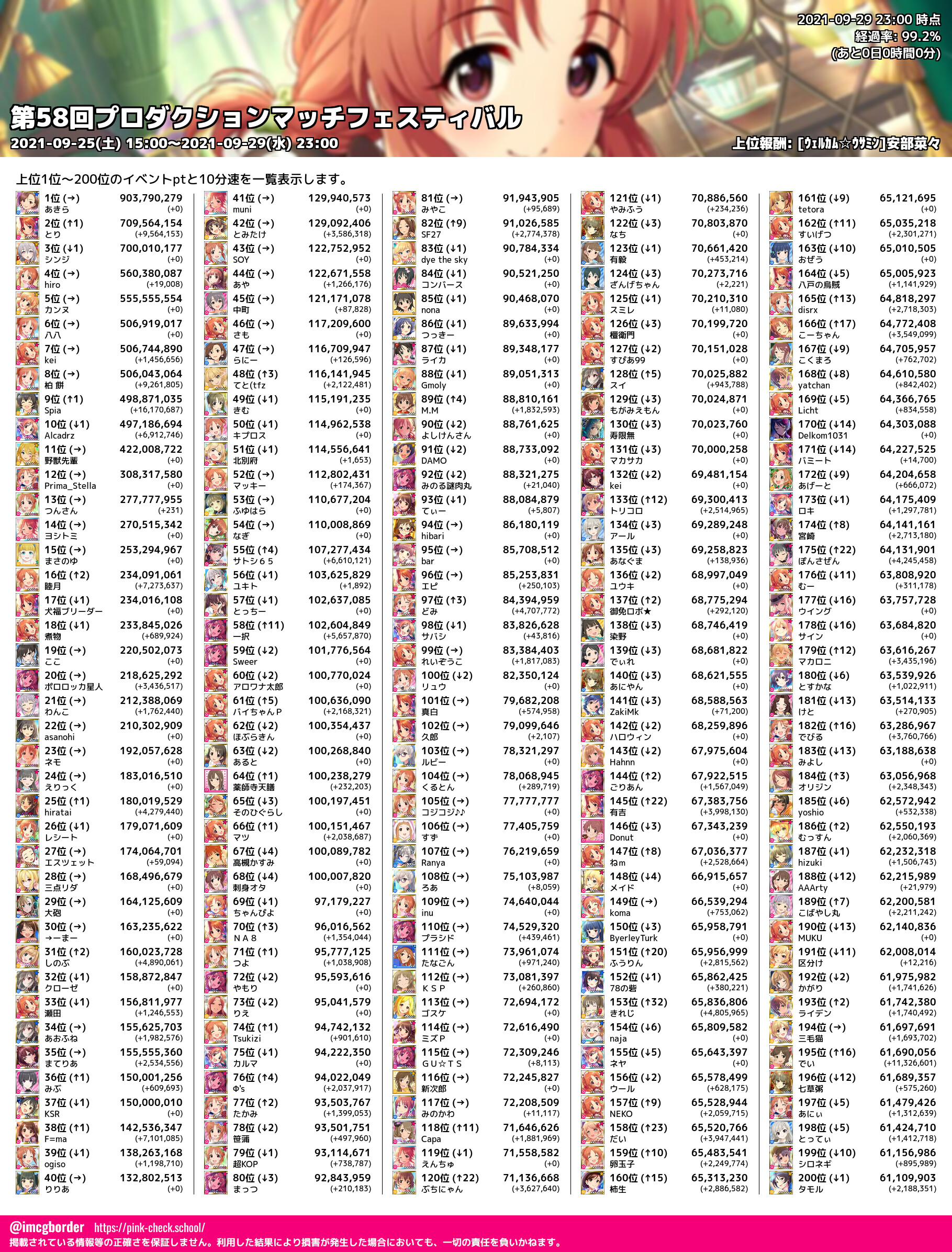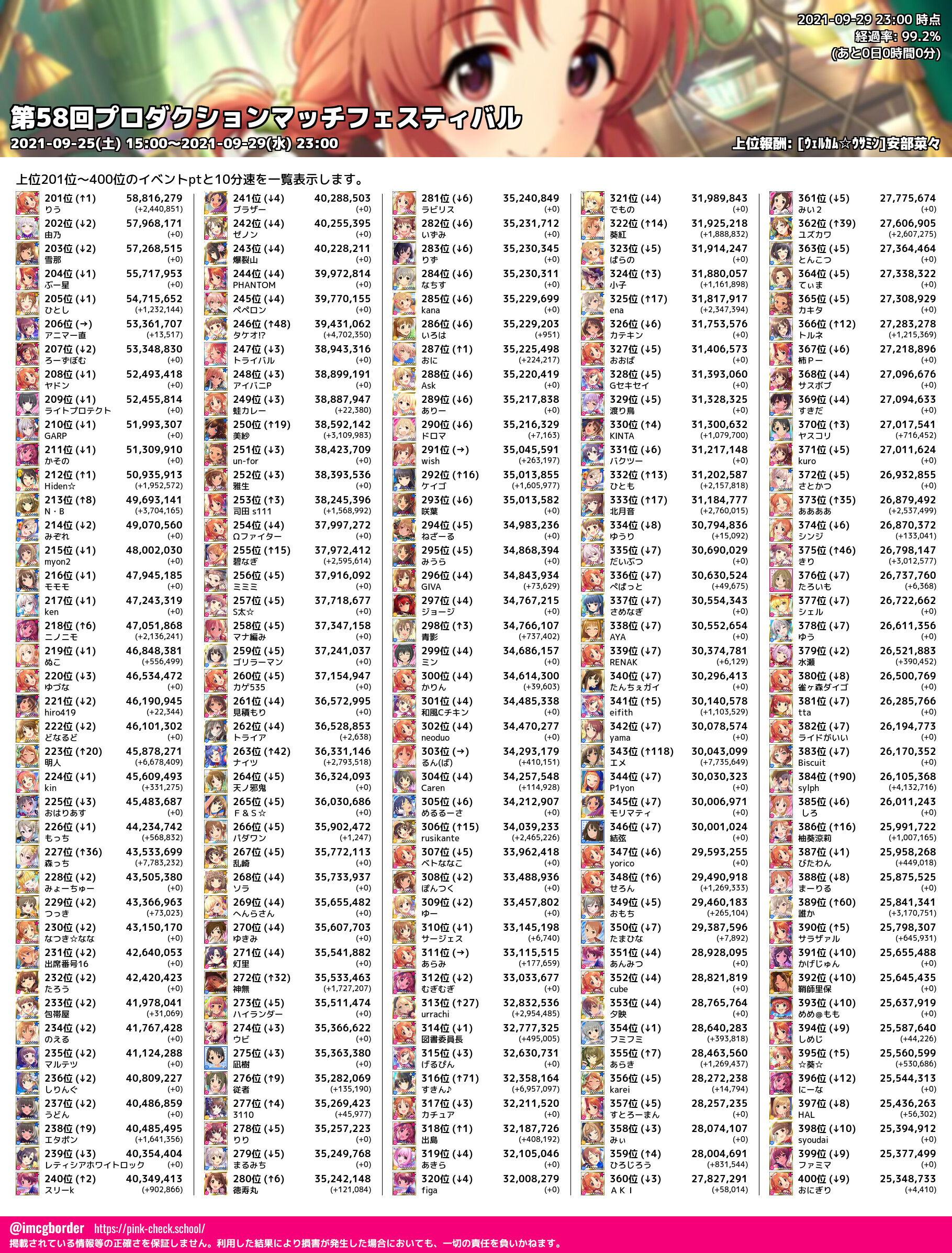 上位プロデューサースコア (2021-09-29 23:00 時点)