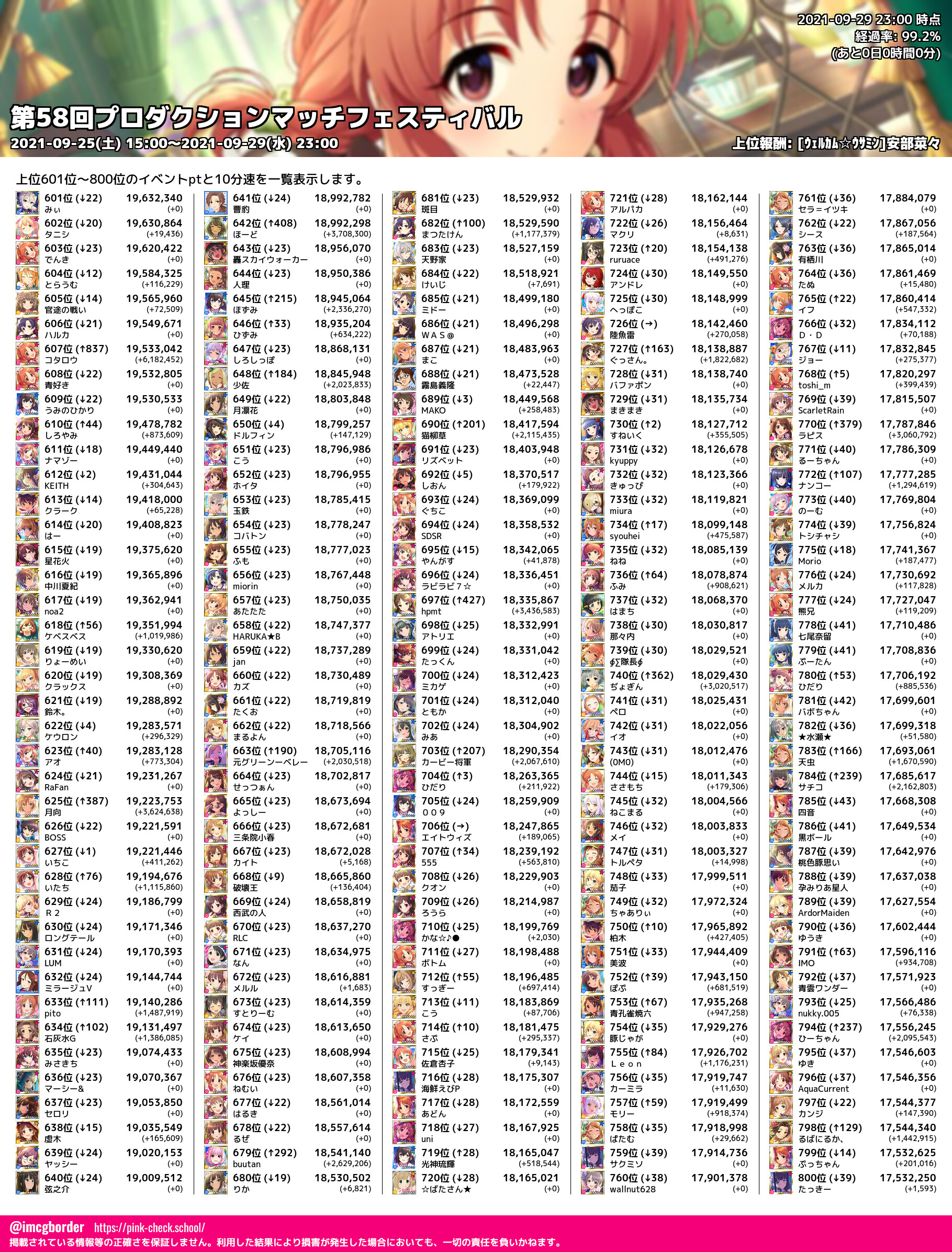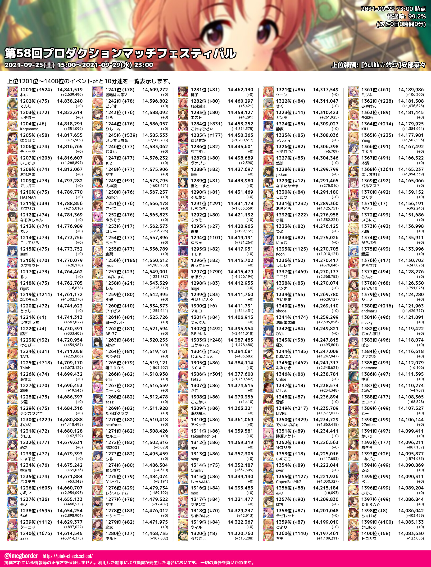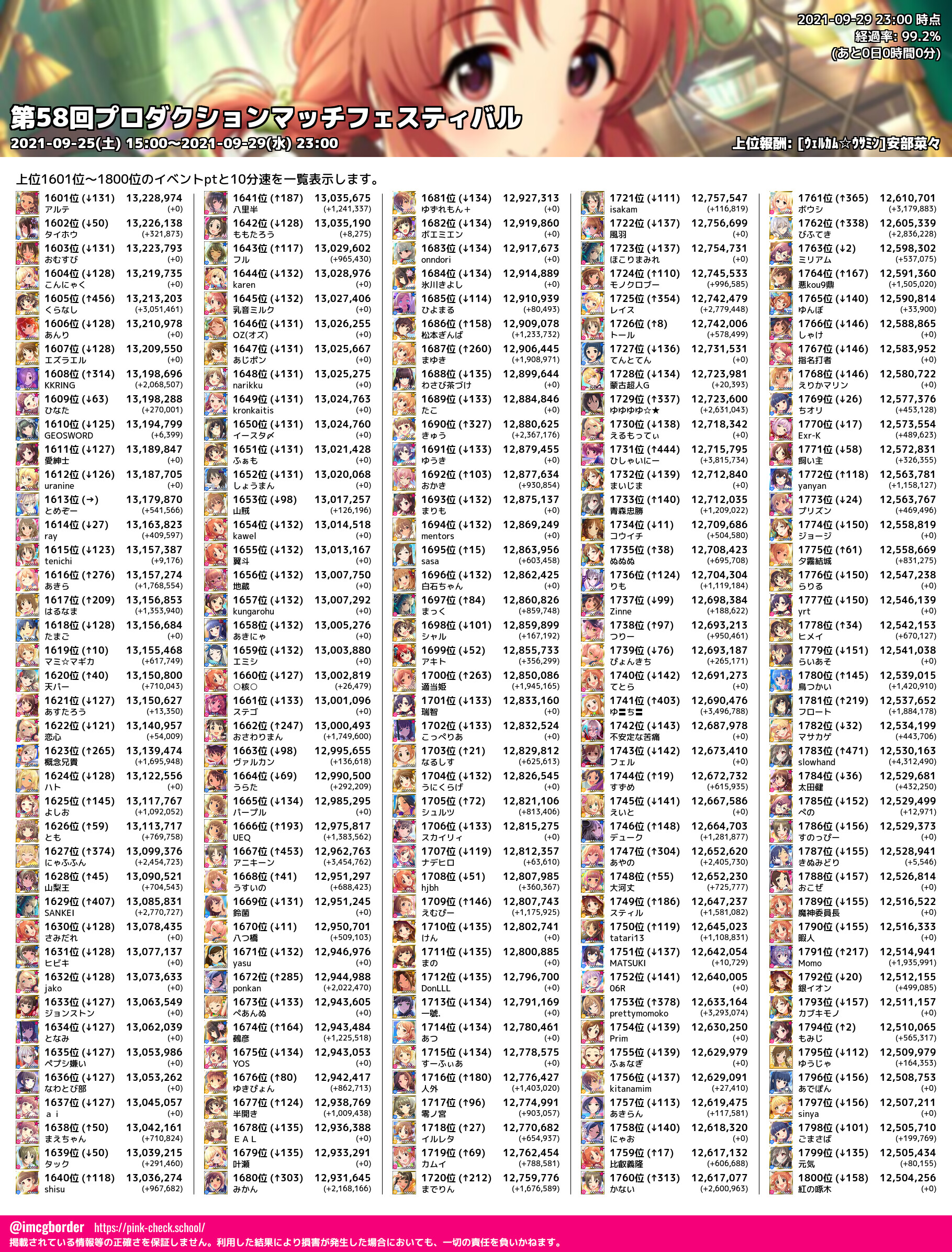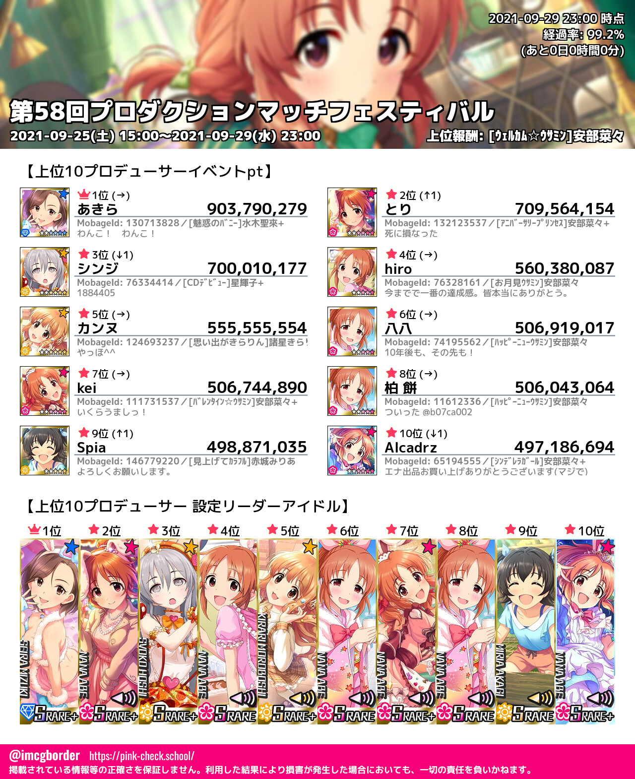 上位プロデューサースコア (2021-09-29 23:00 時点)