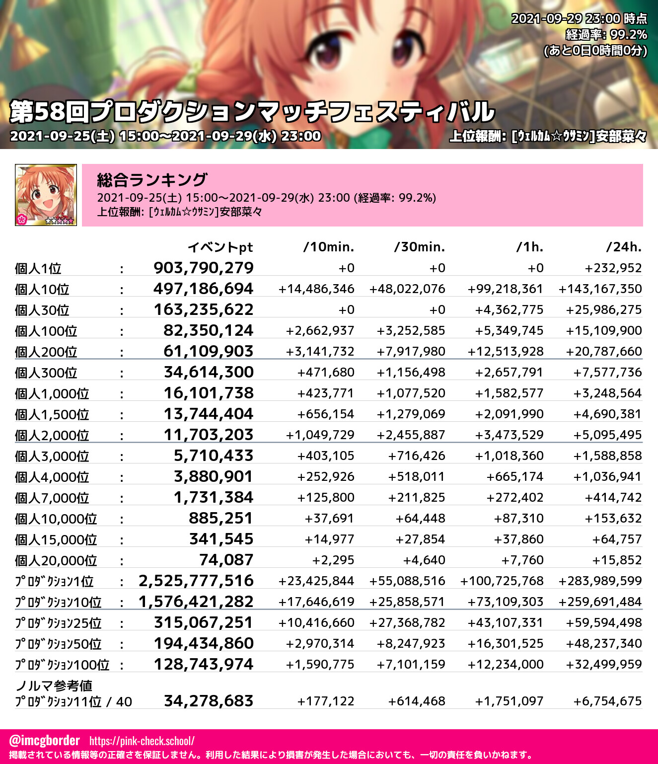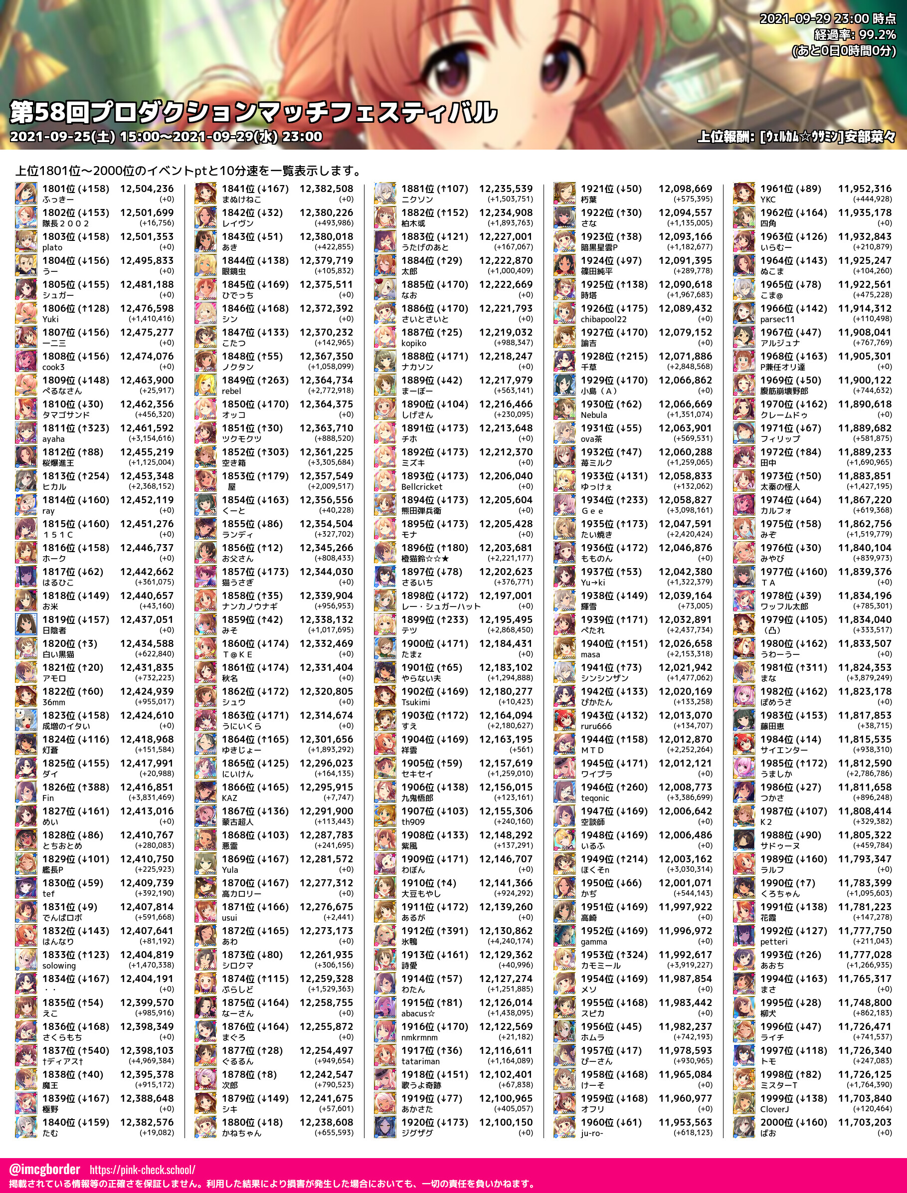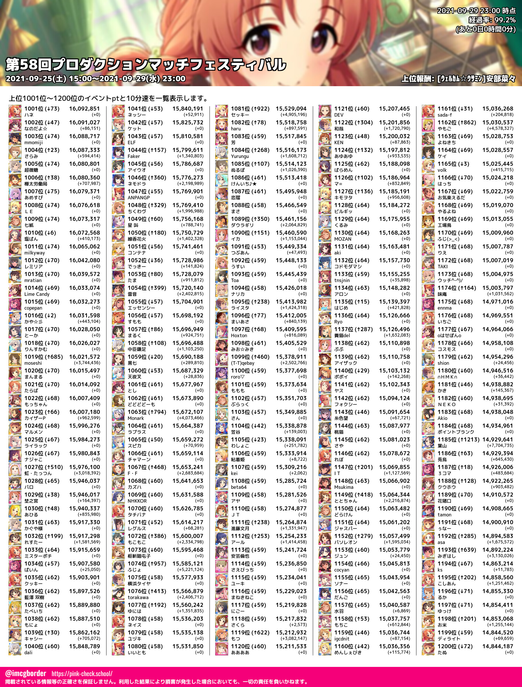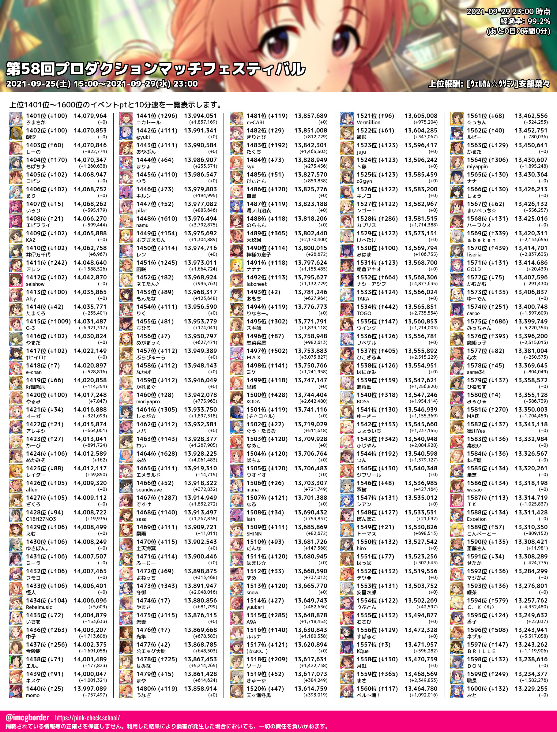 上位プロデューサースコア (2021-09-29 23:00 時点)