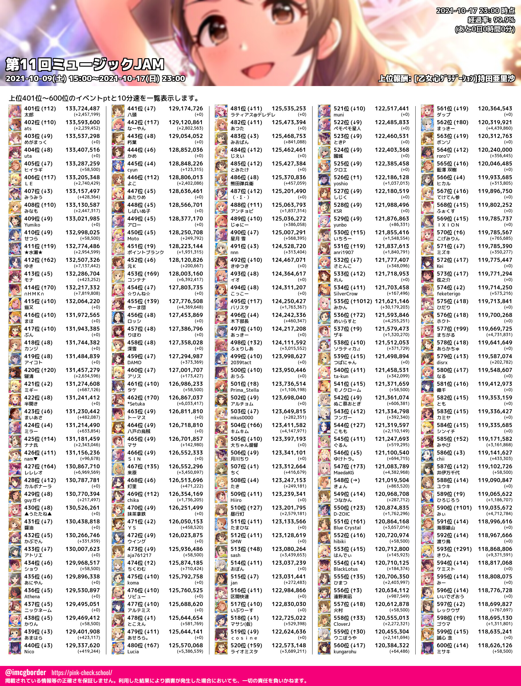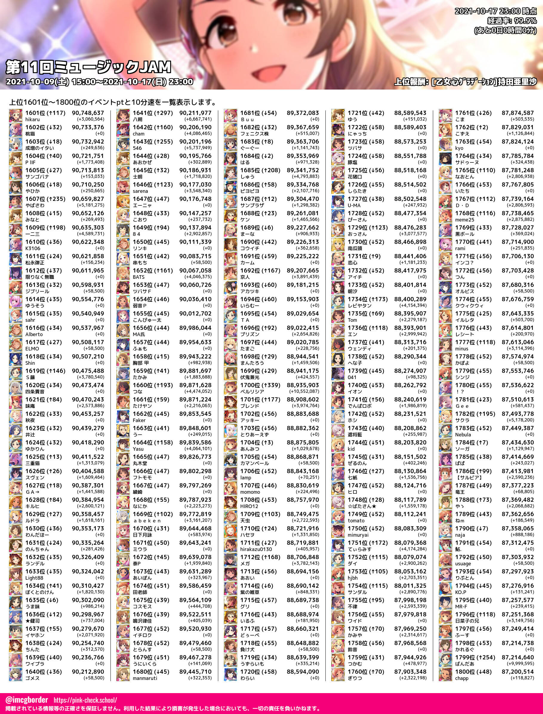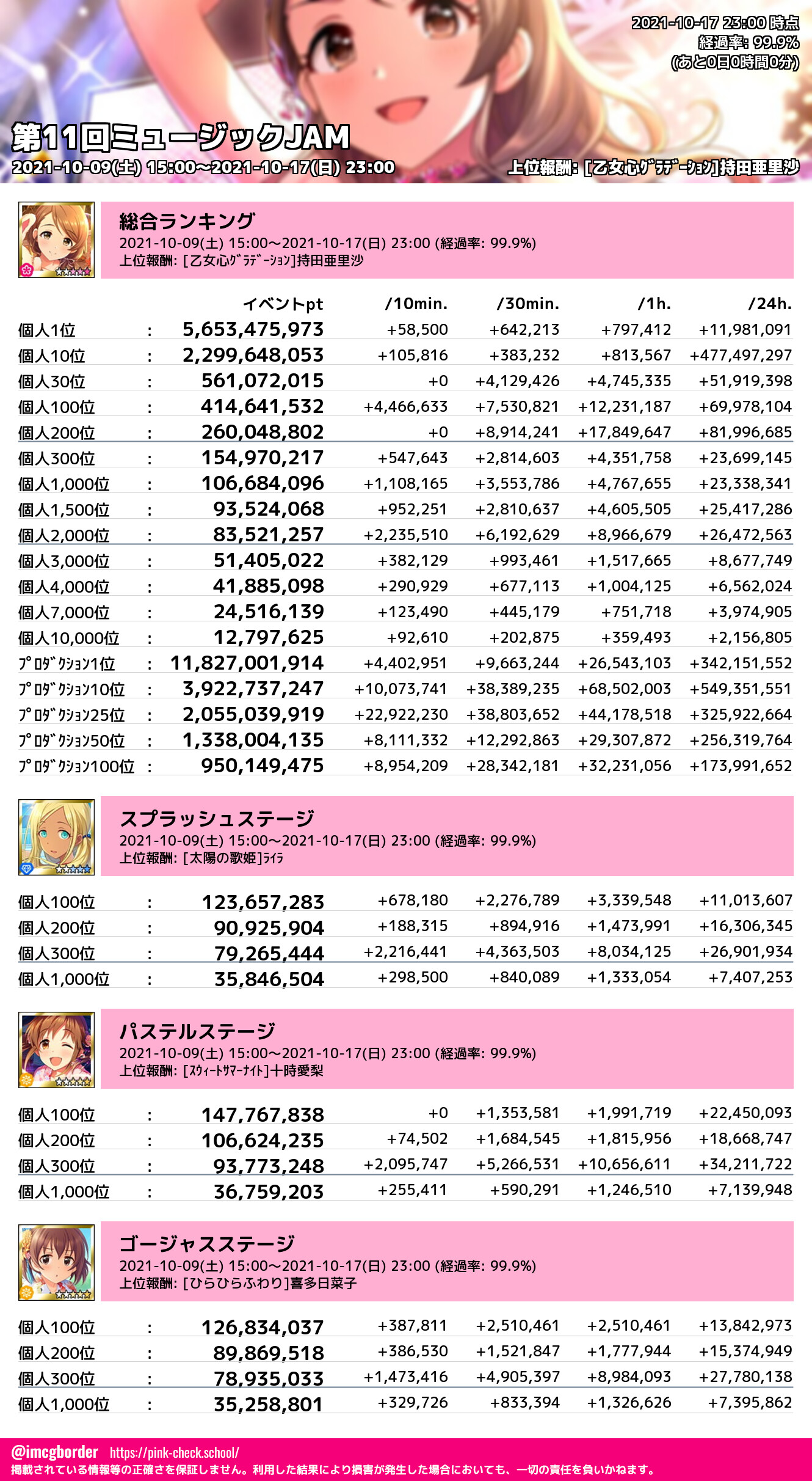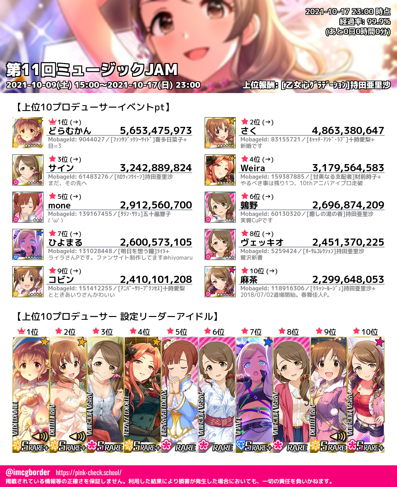 上位プロデューサースコア (2021-10-17 23:00 時点)