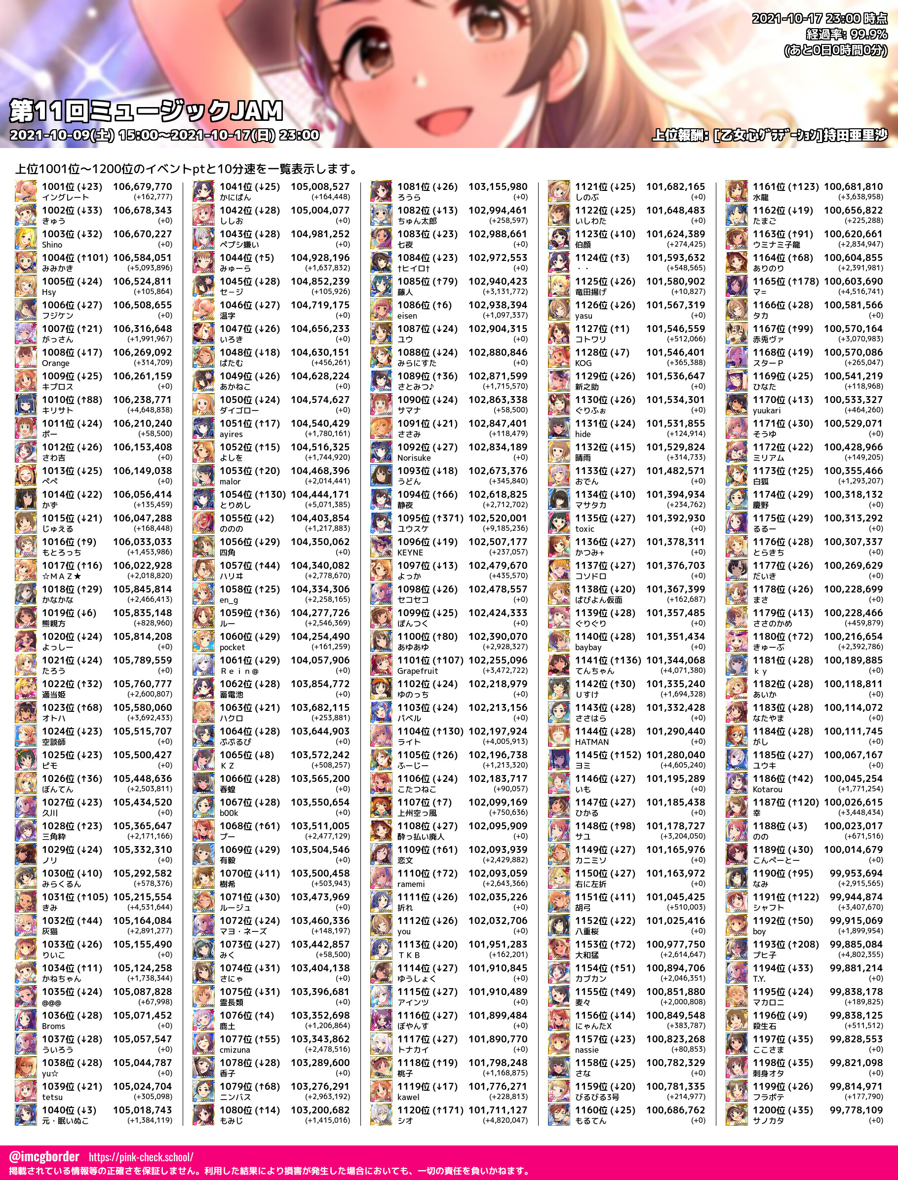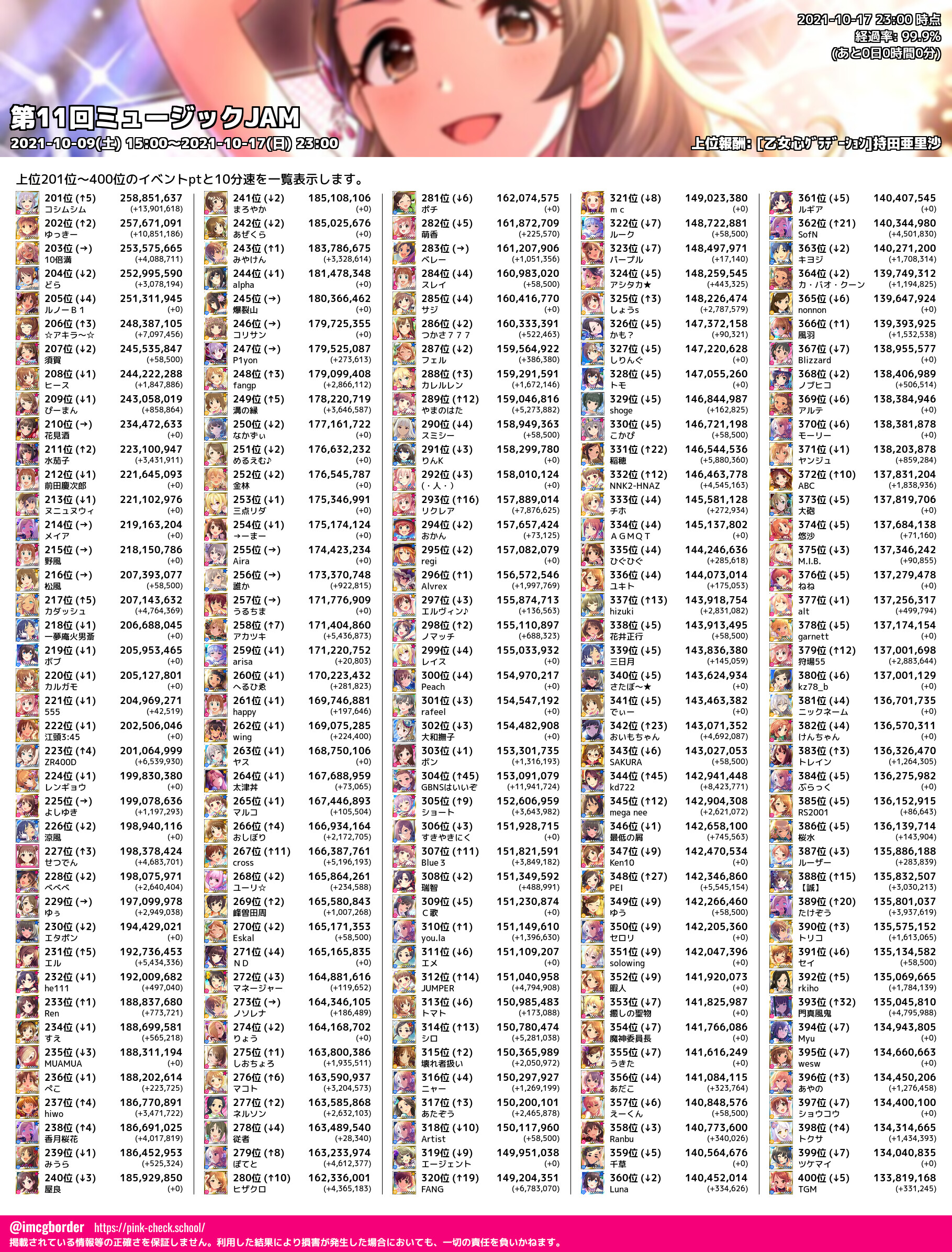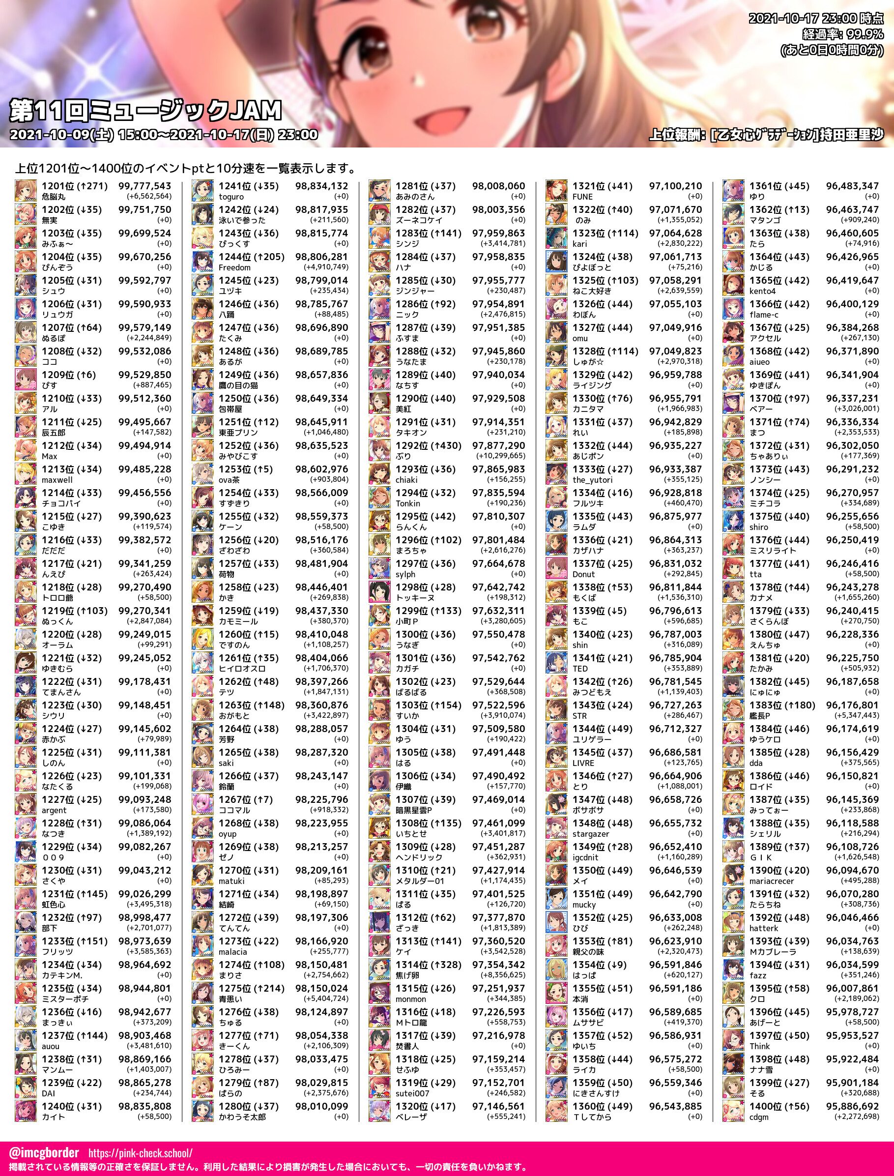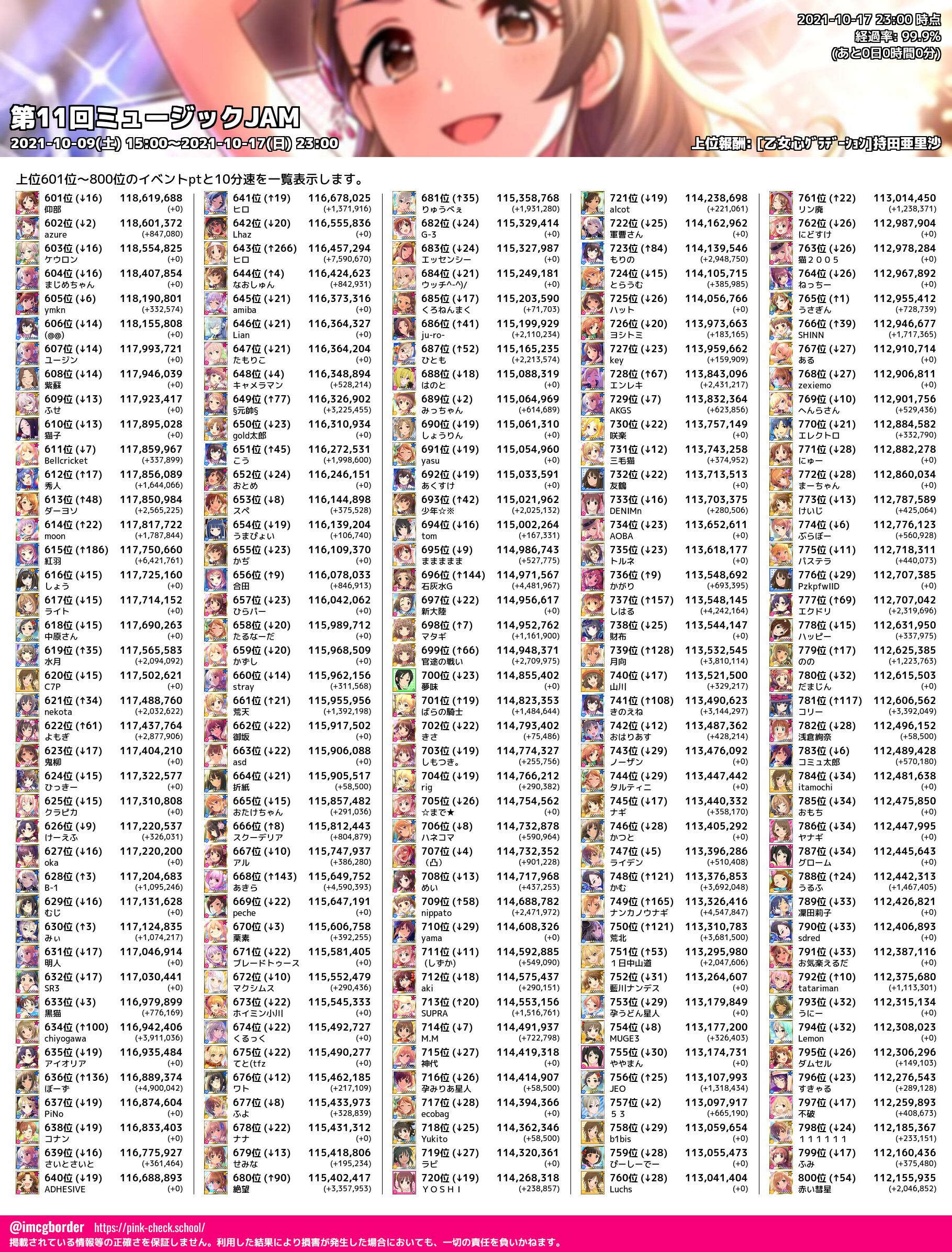 上位プロデューサースコア (2021-10-17 23:00 時点)