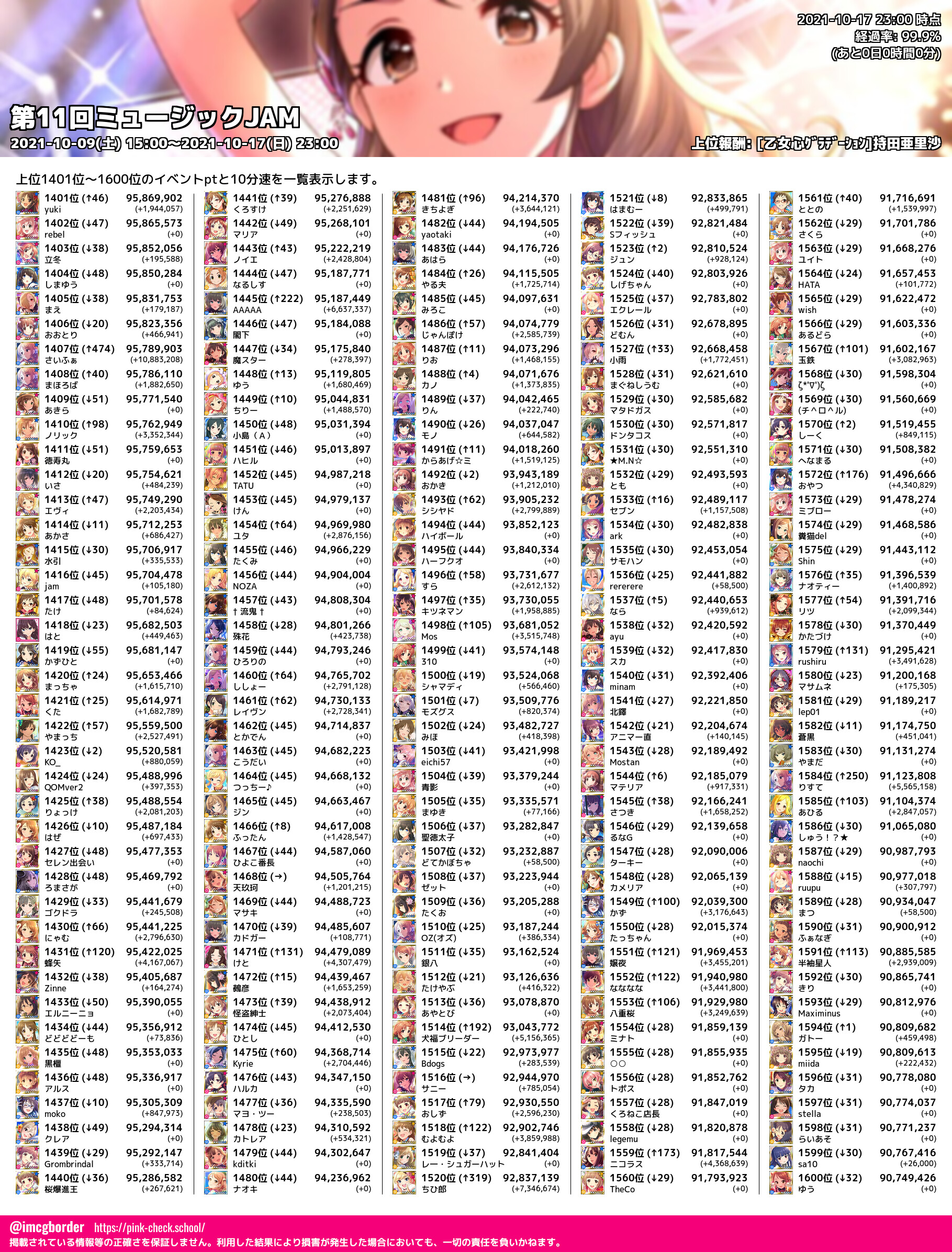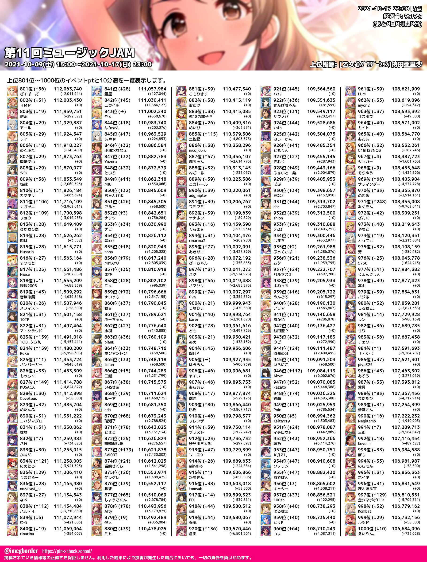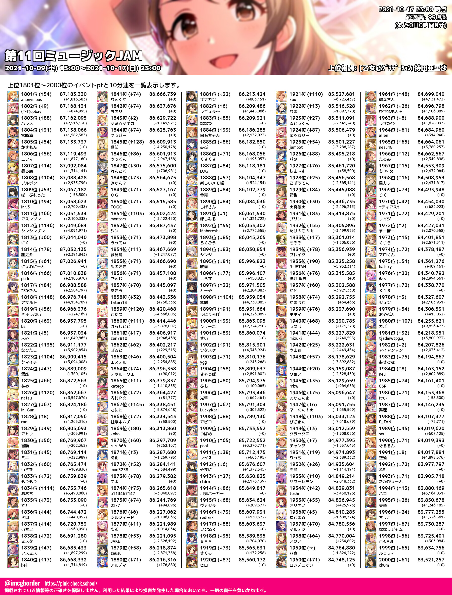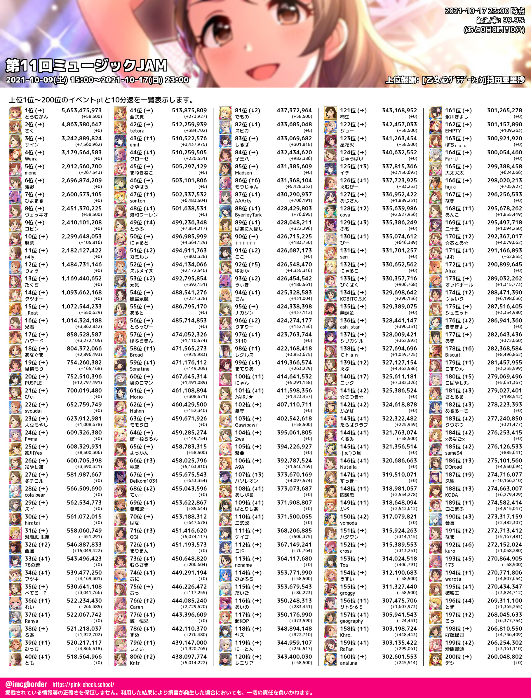 上位プロデューサースコア (2021-10-17 23:00 時点)