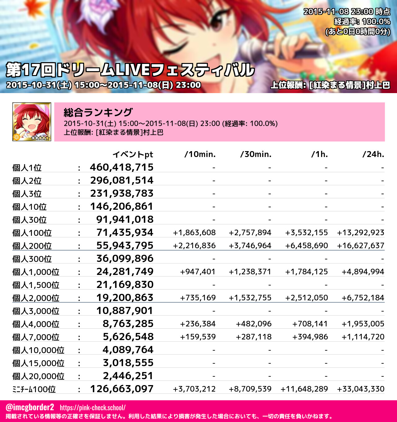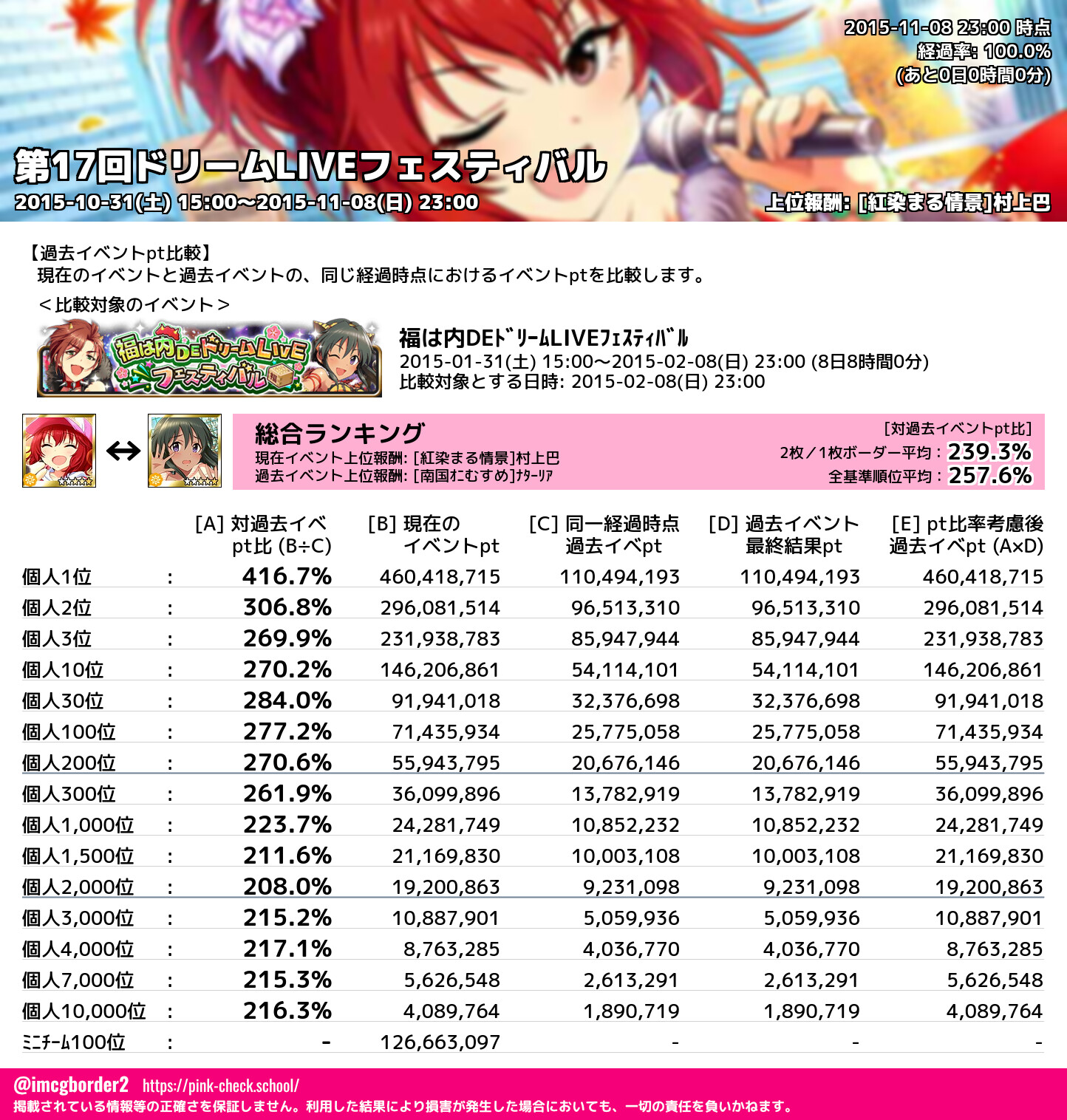 | 結果発表 | 2015-11-08(日) 23:00 |