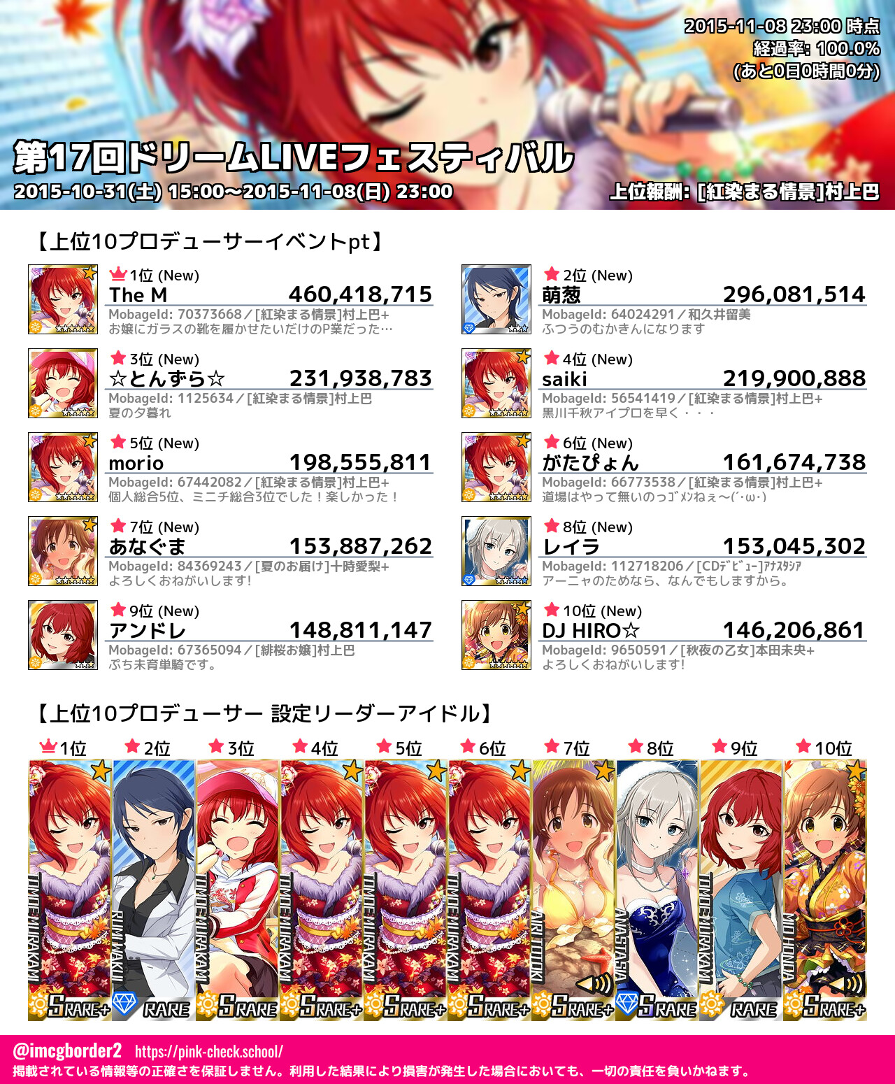 上位プロデューサースコア (2015-11-08 23:00 時点)