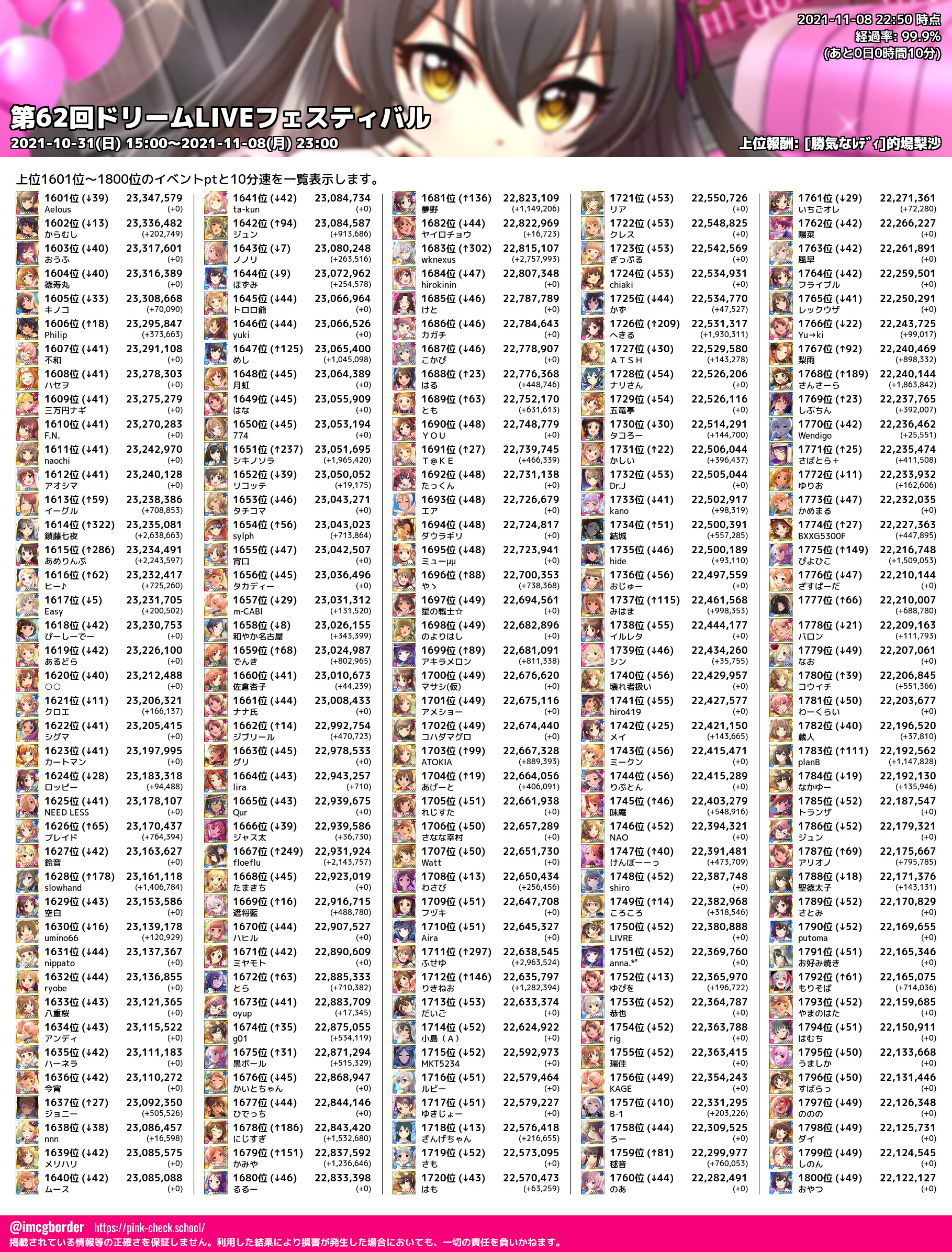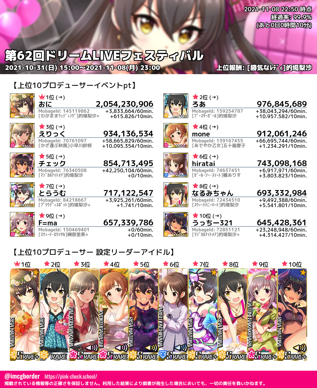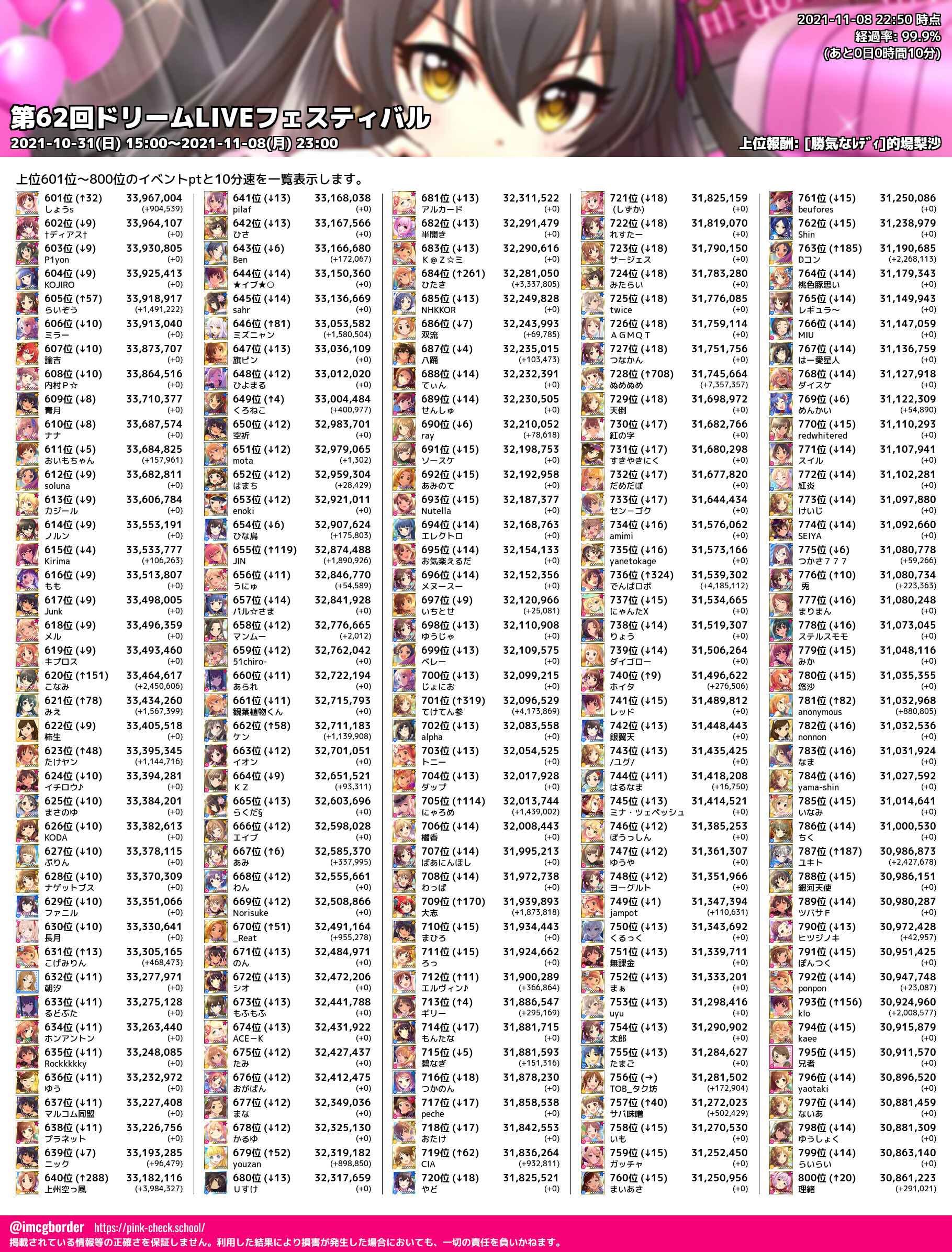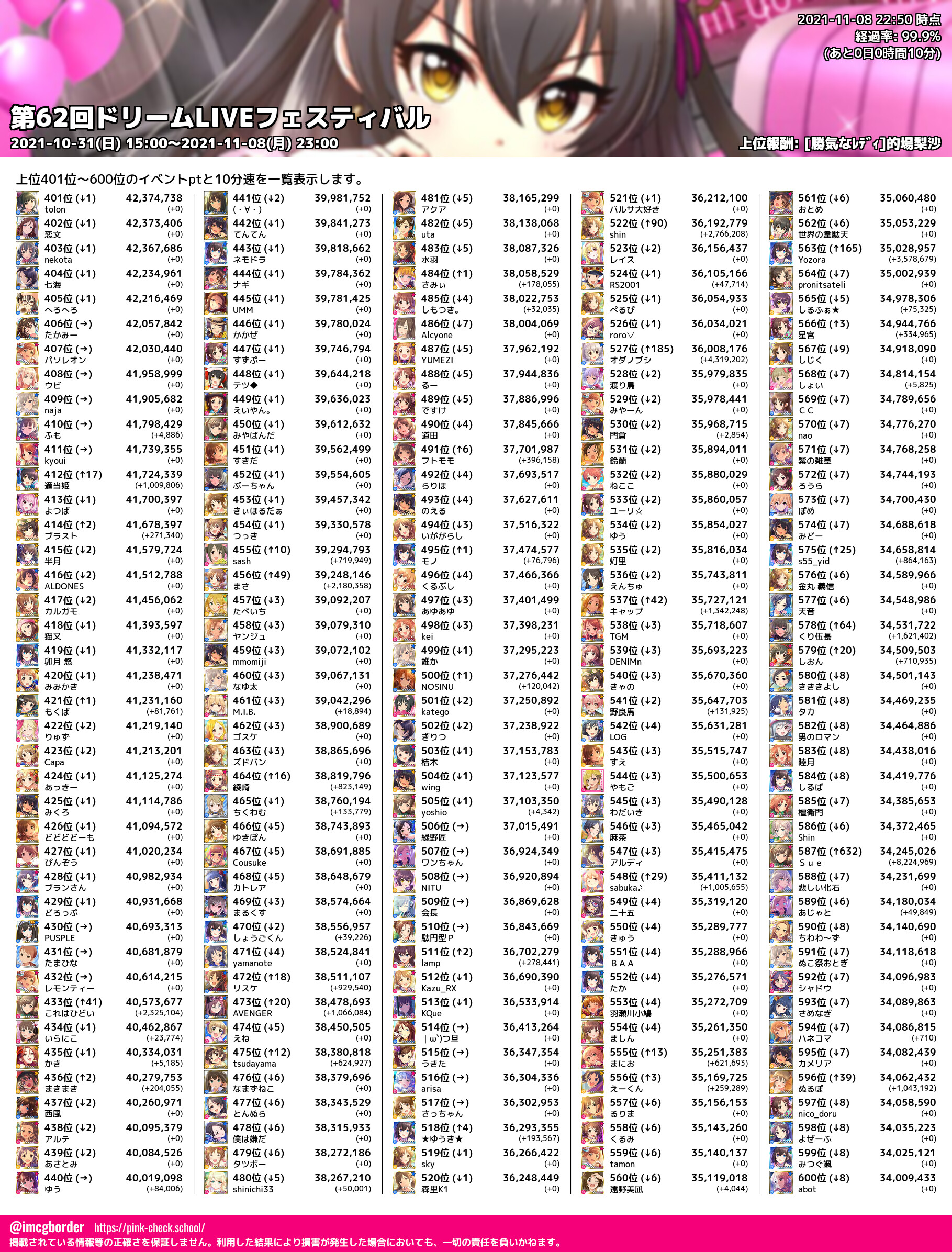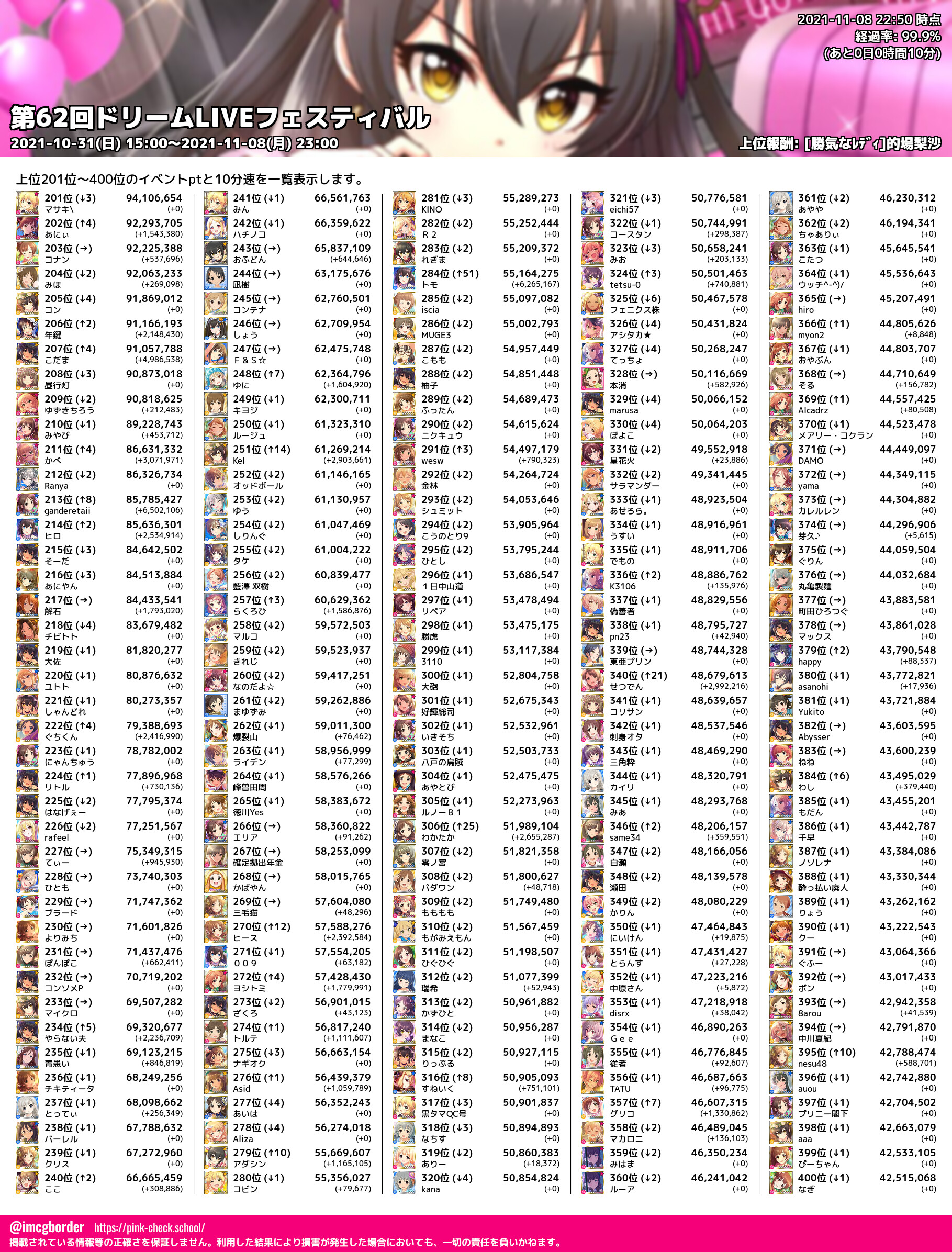 上位プロデューサースコア (2021-11-08 23:00 時点)
