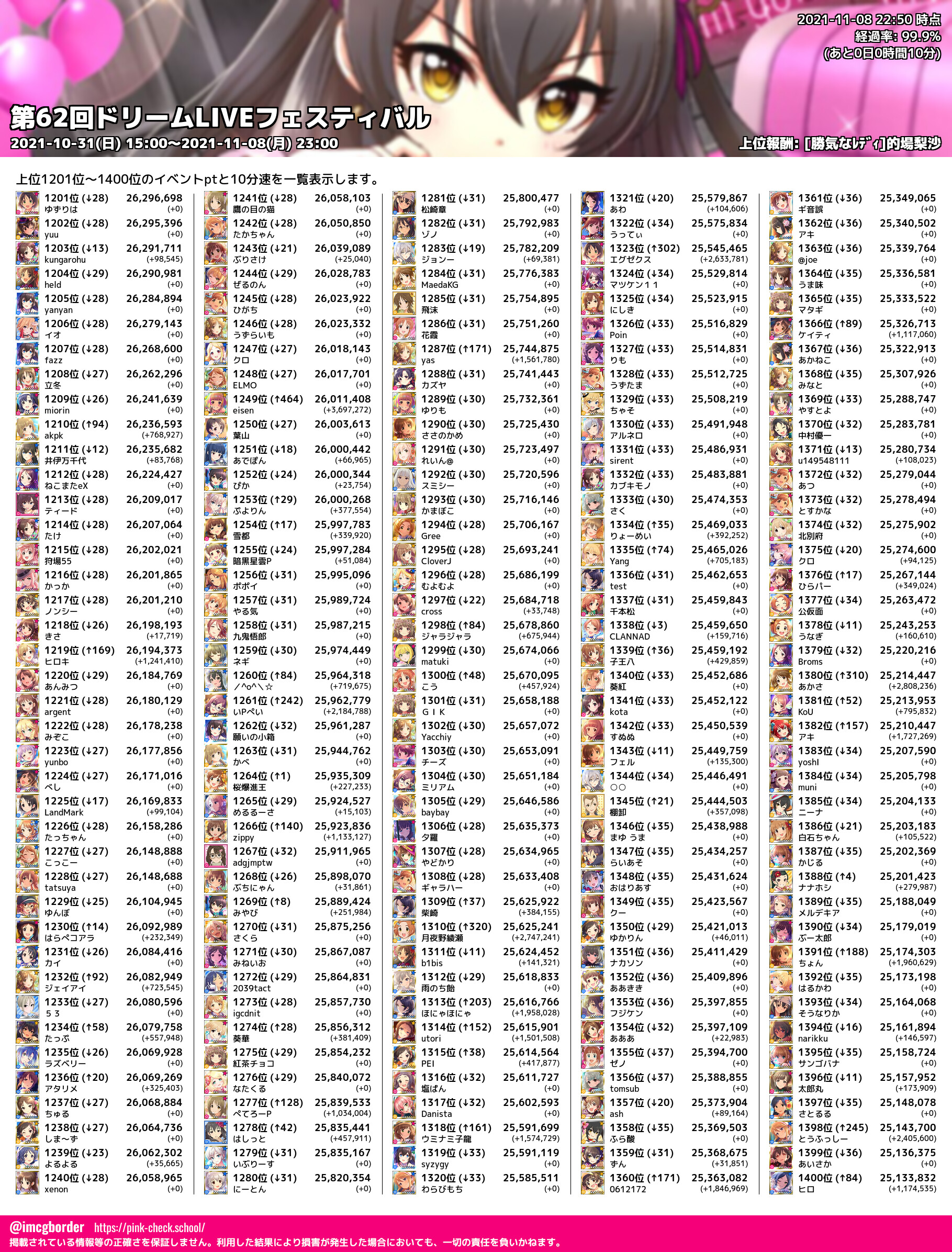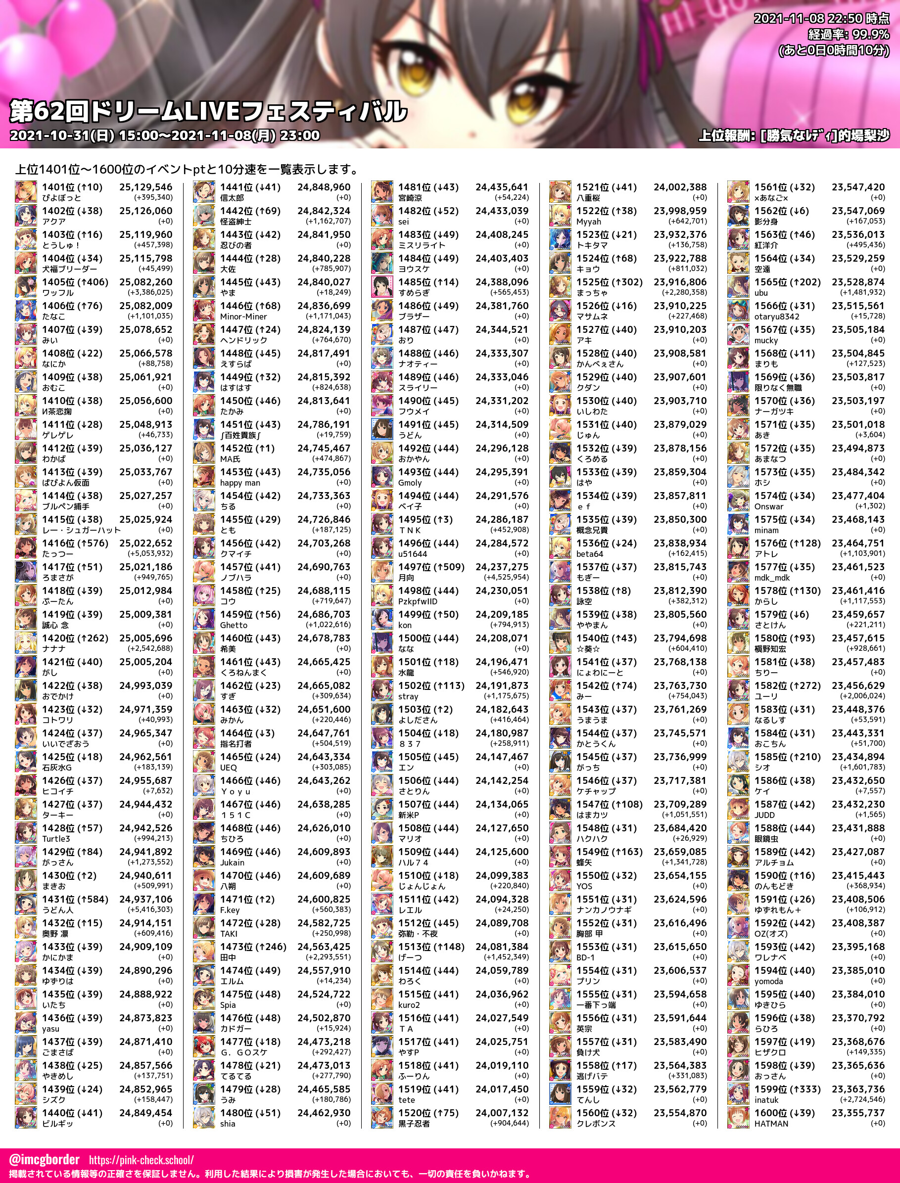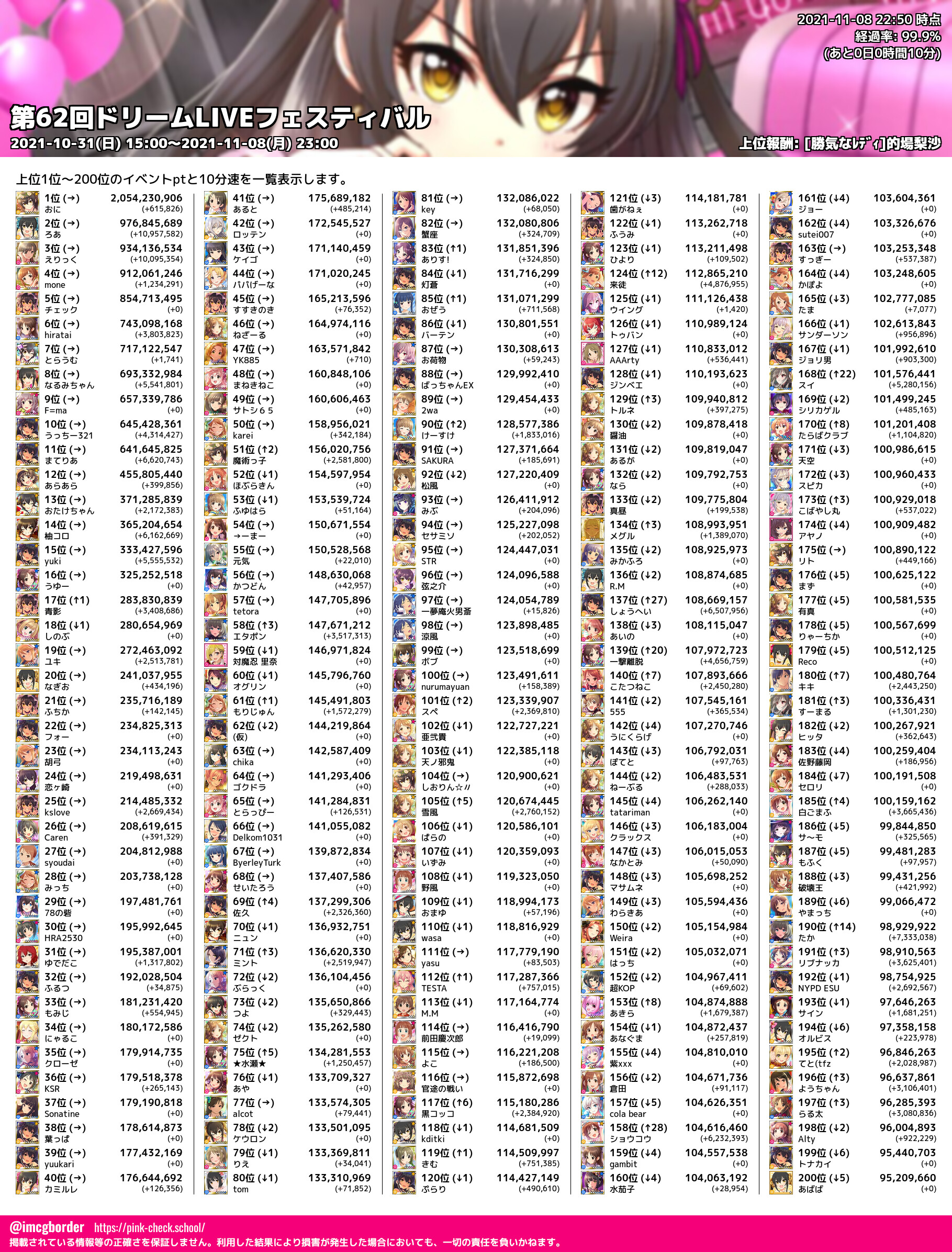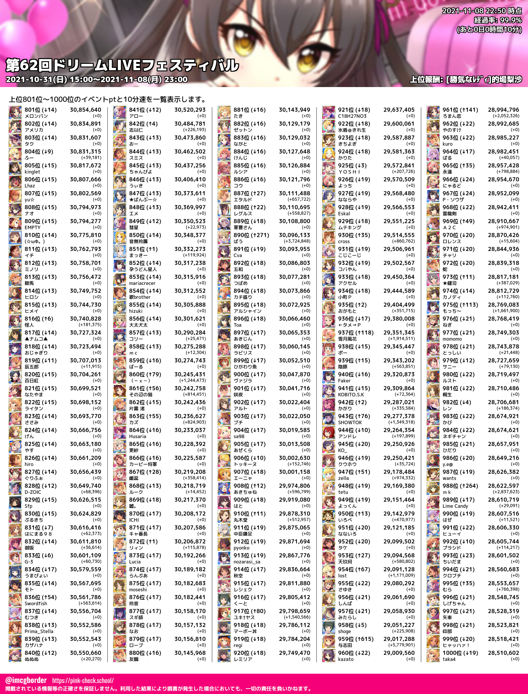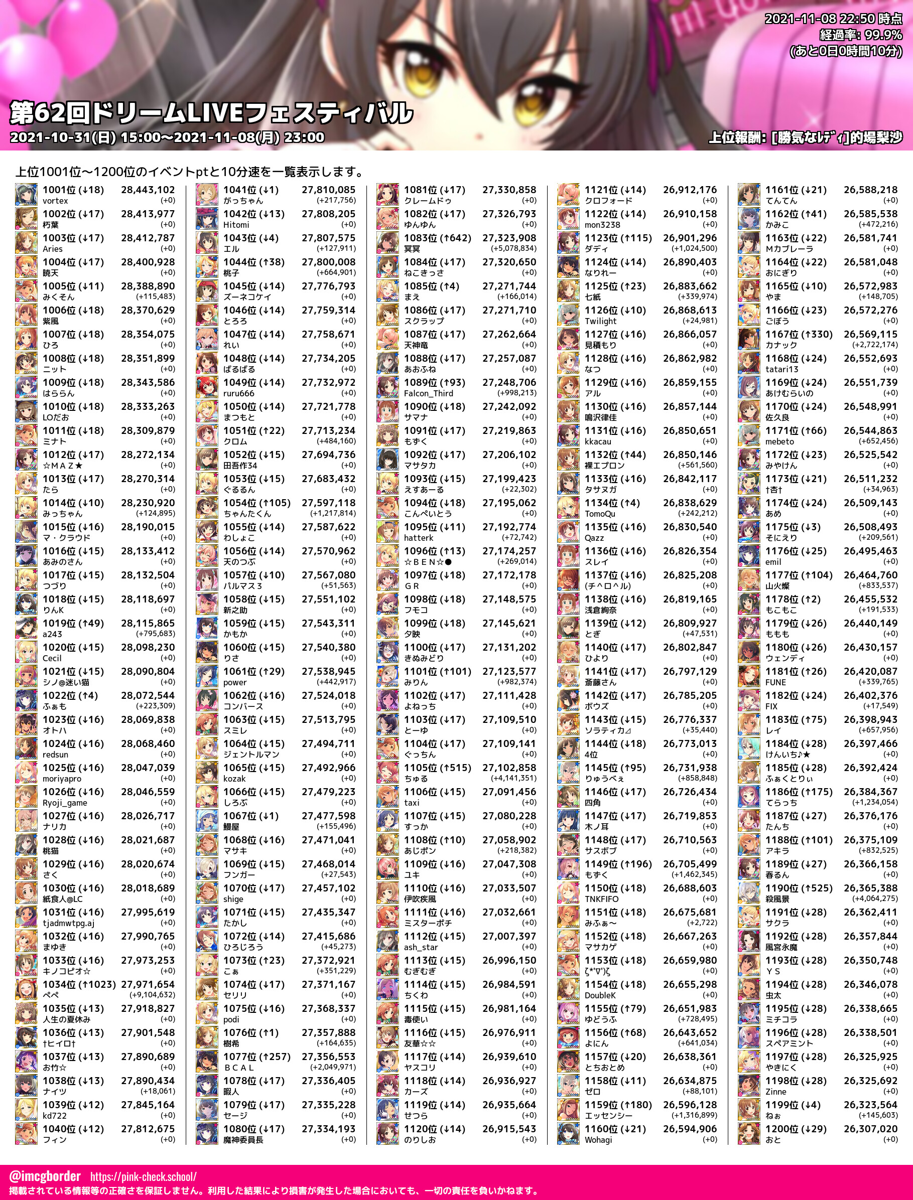 上位プロデューサースコア (2021-11-08 23:00 時点)