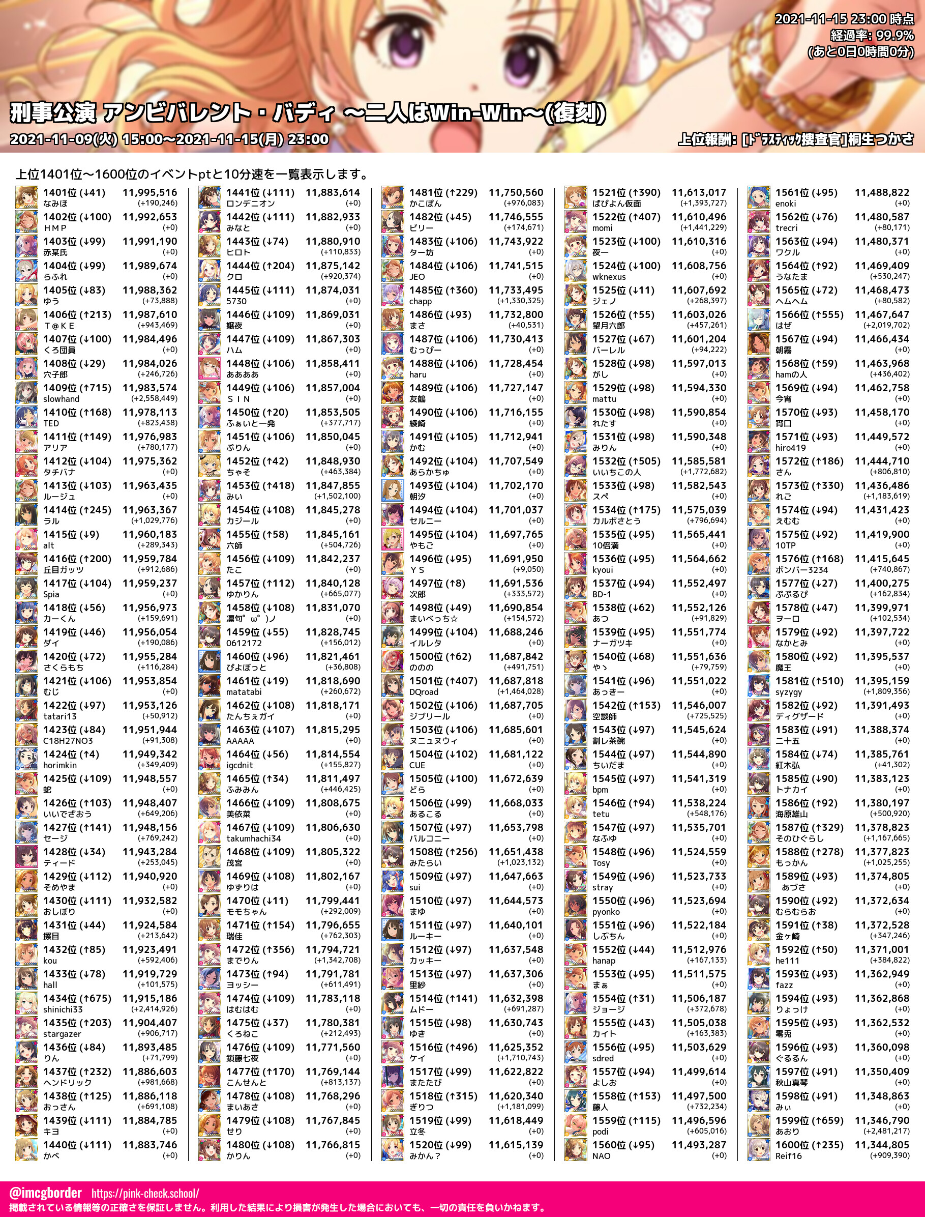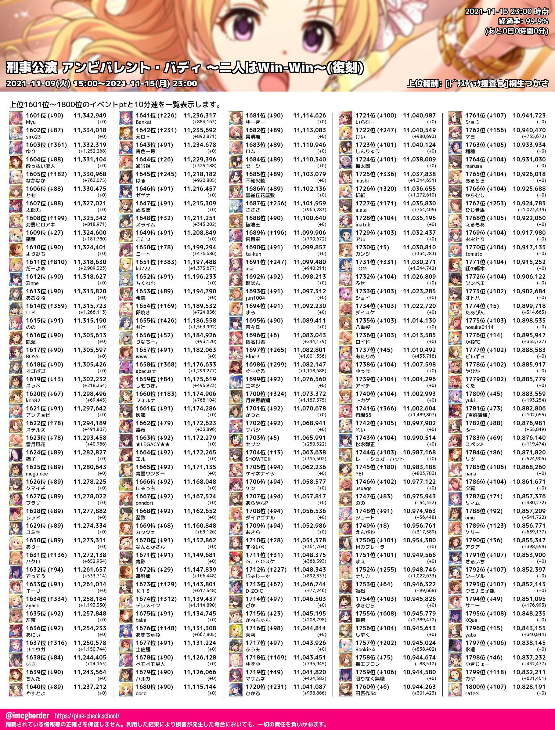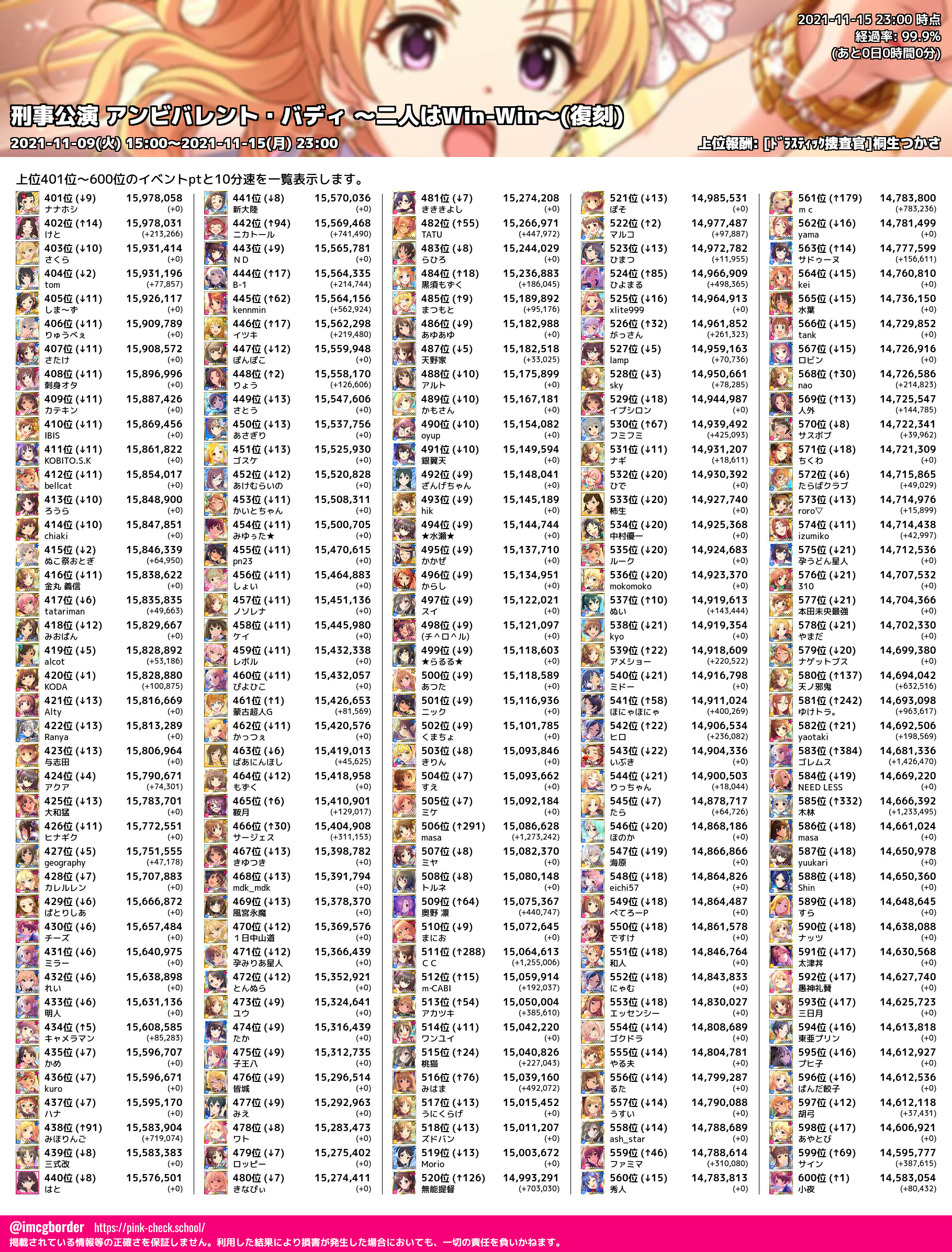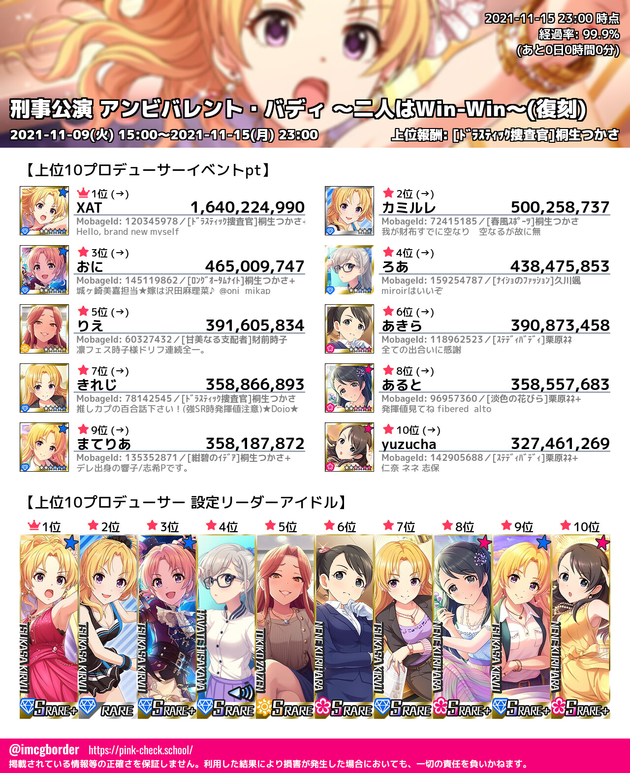 上位プロデューサースコア (2021-11-15 23:00 時点)
