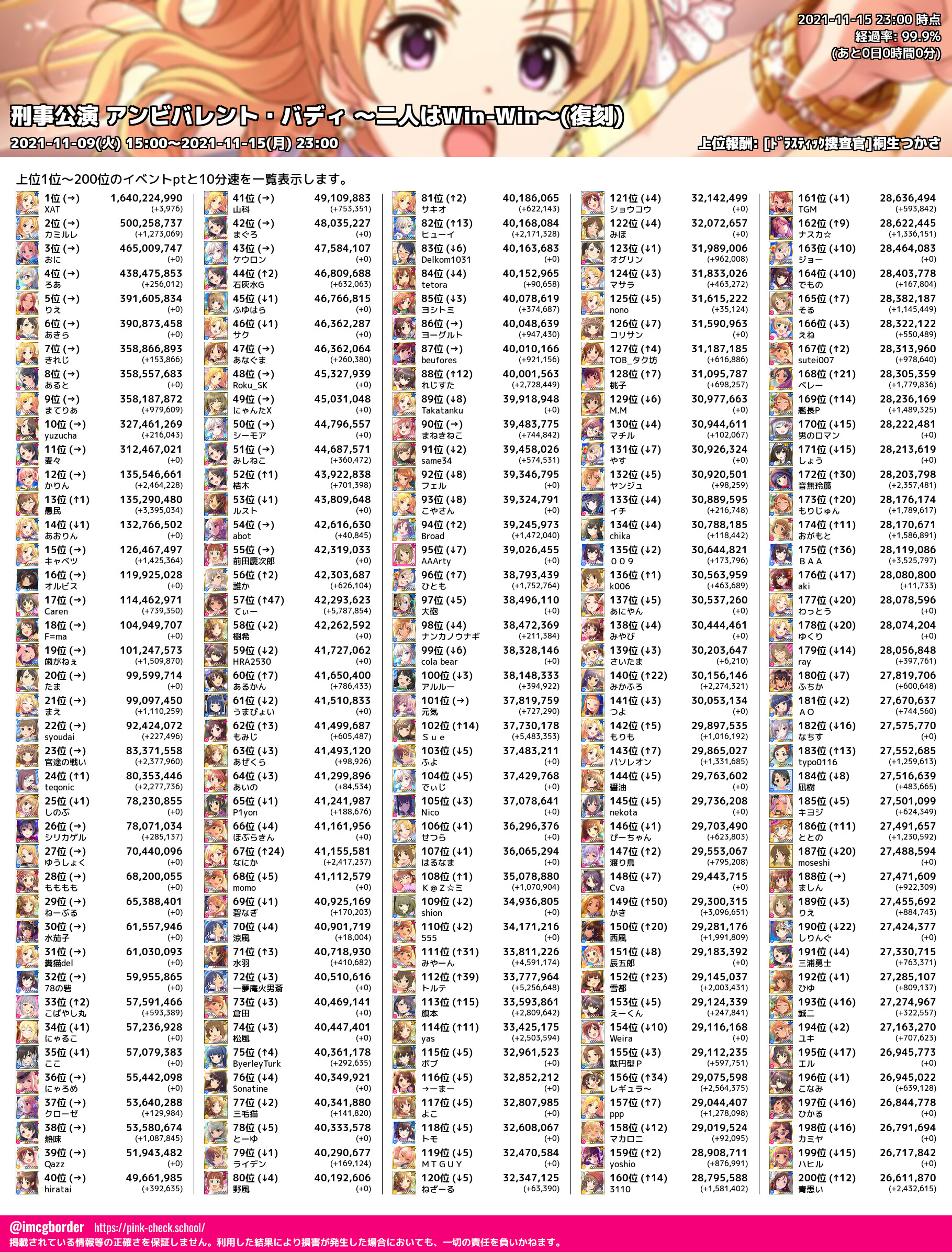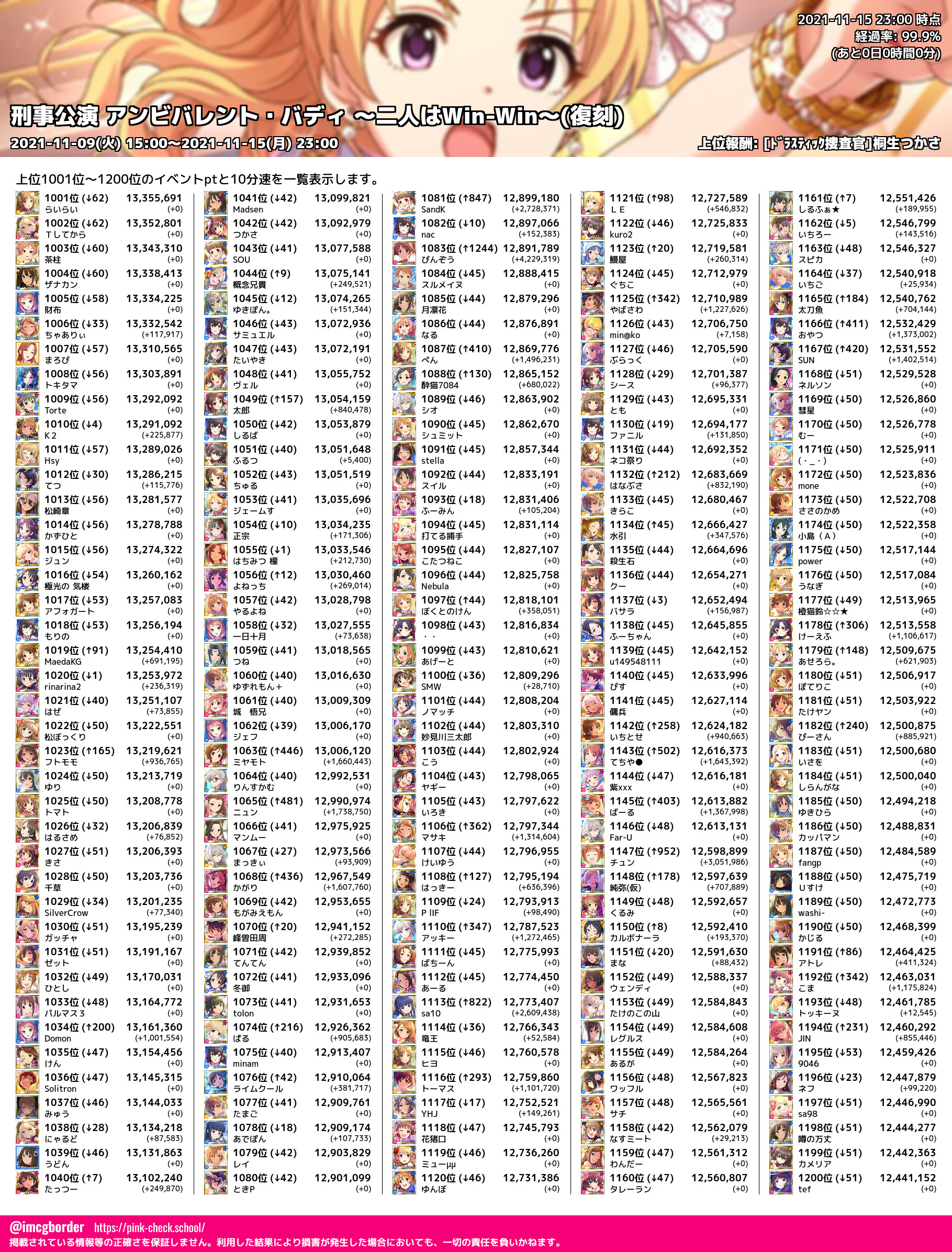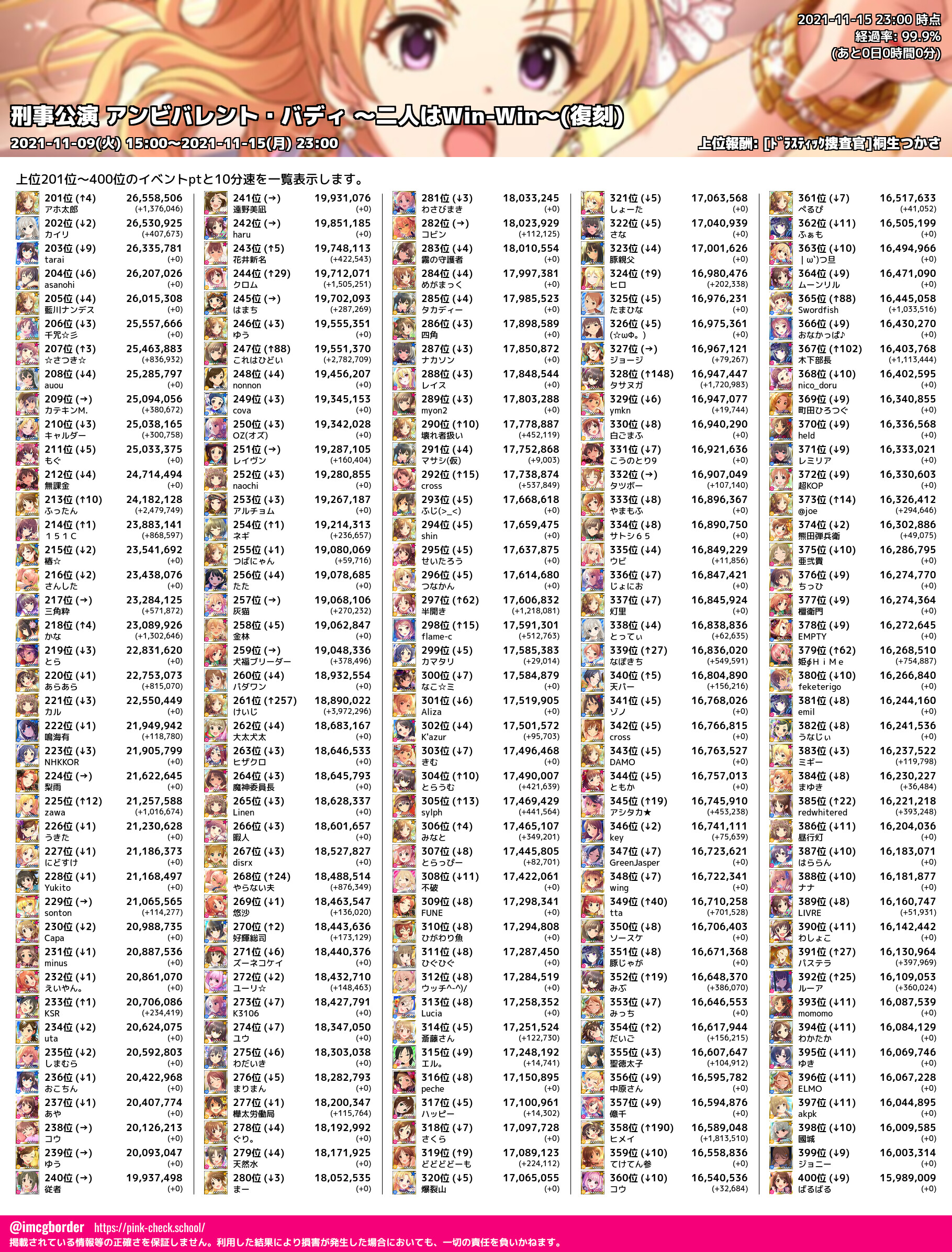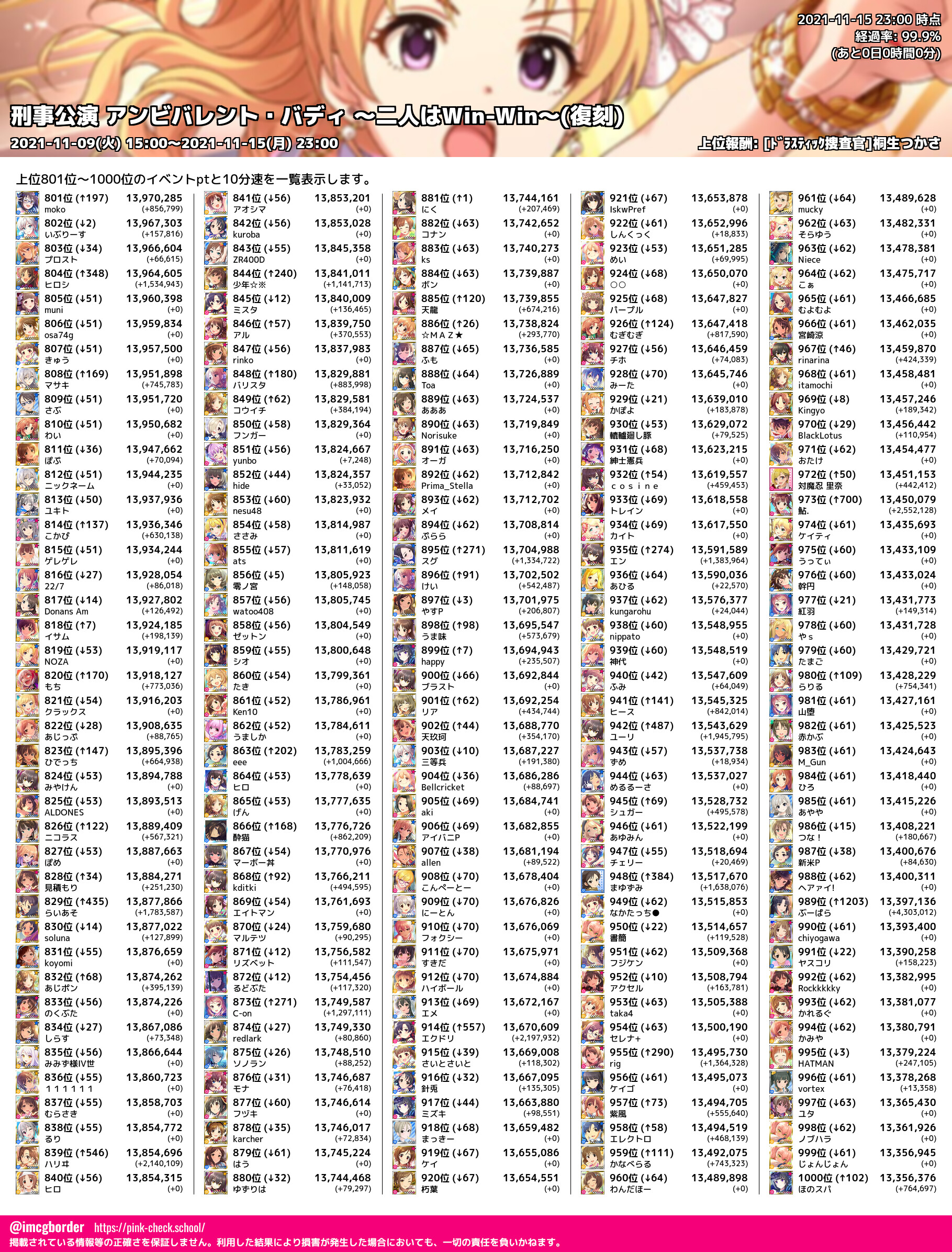 上位プロデューサースコア (2021-11-15 23:00 時点)
