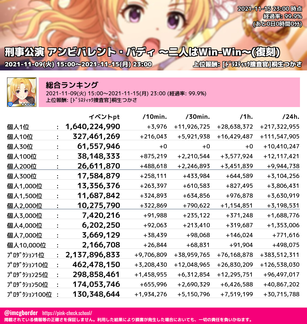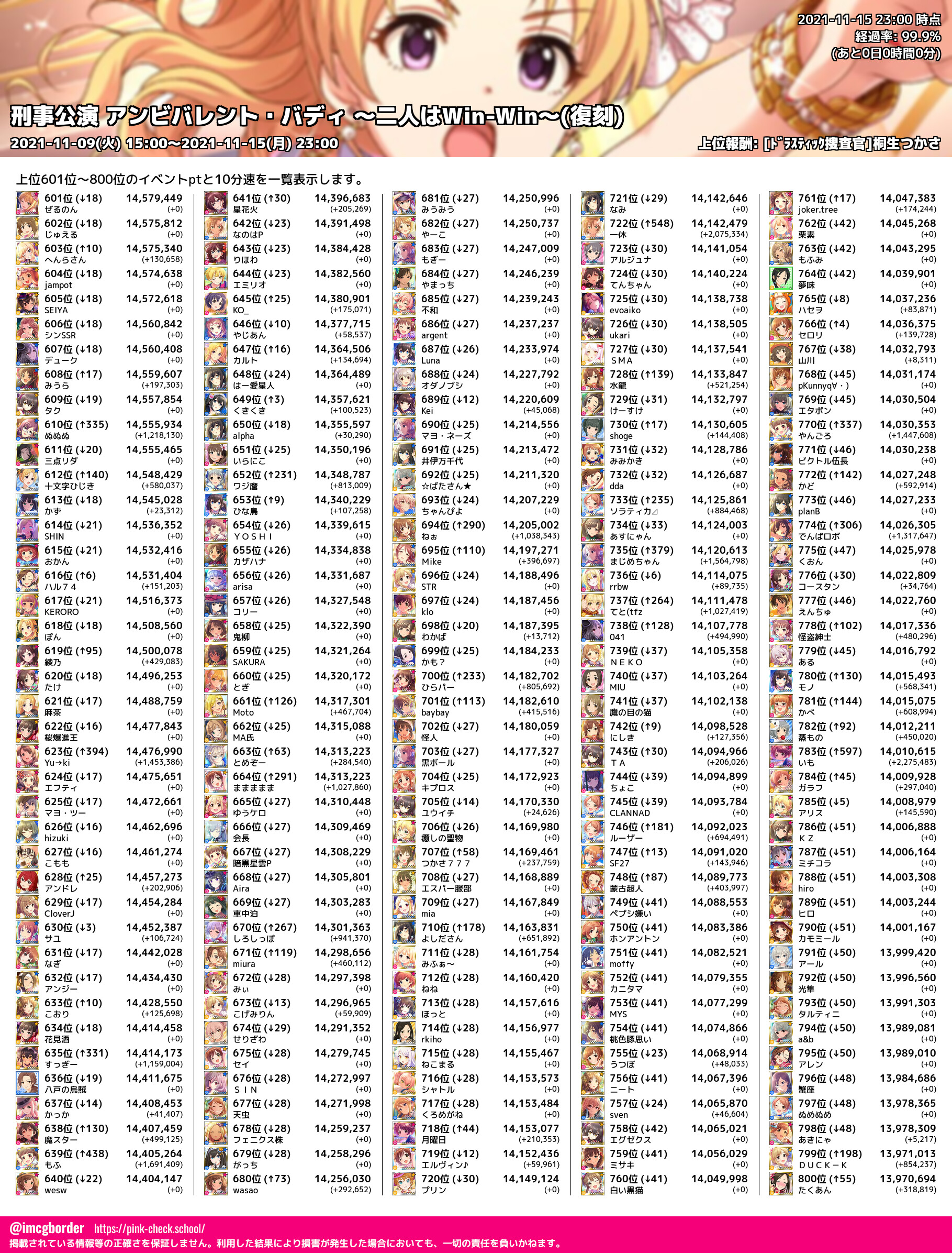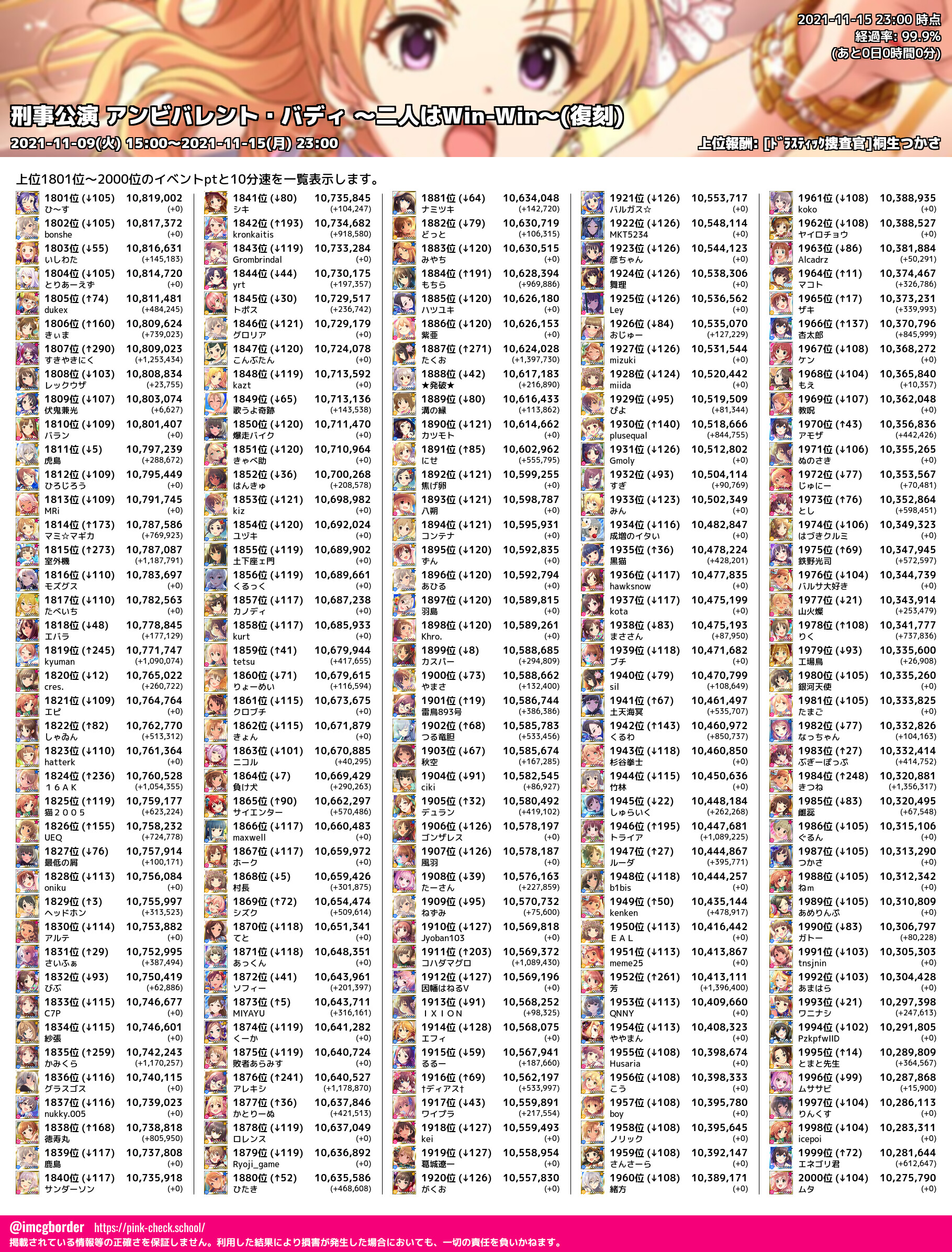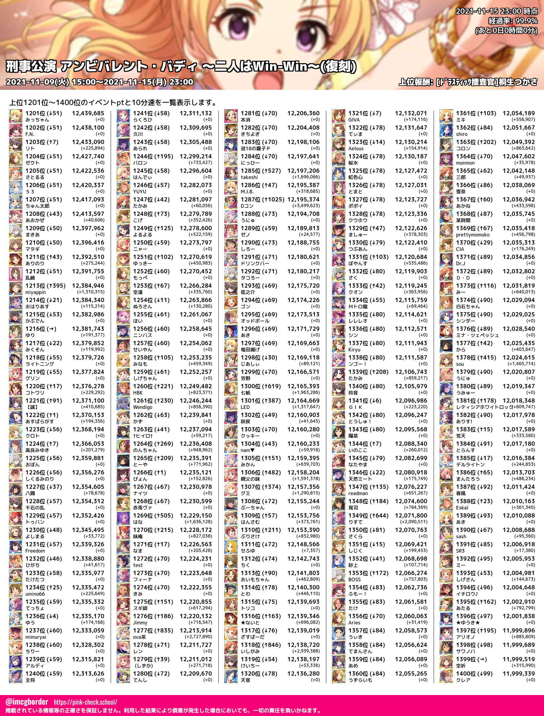 上位プロデューサースコア (2021-11-15 23:00 時点)