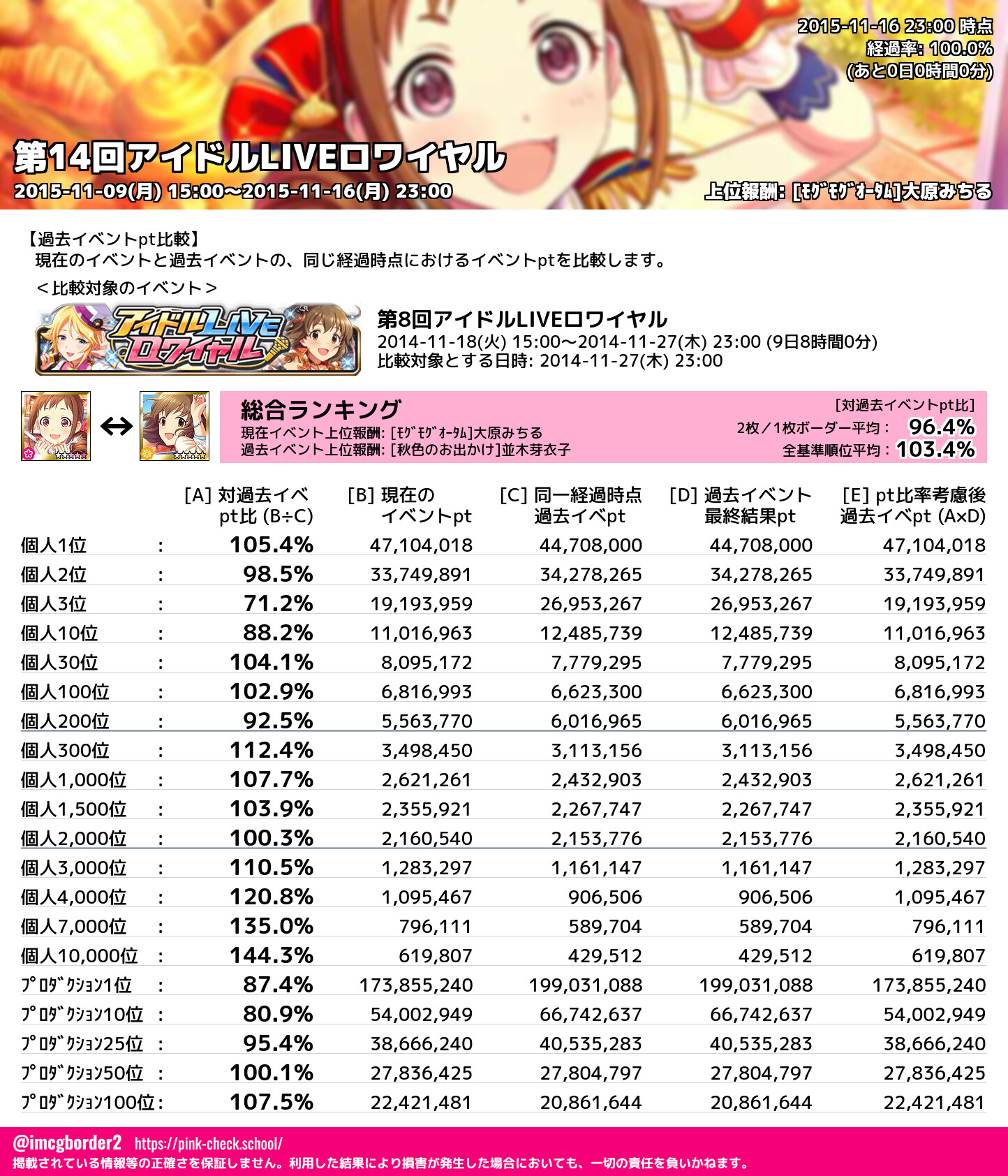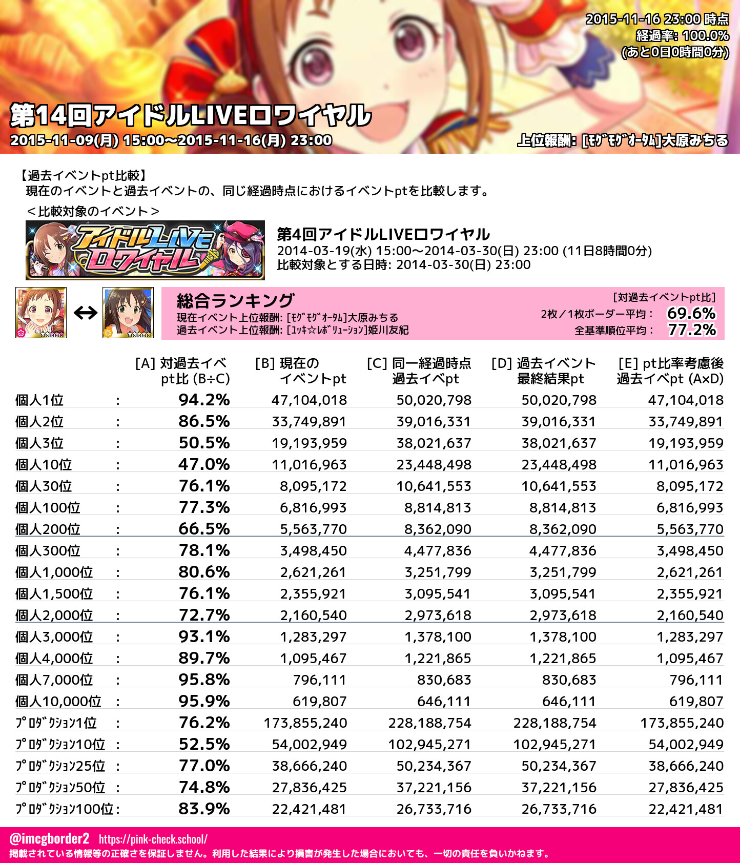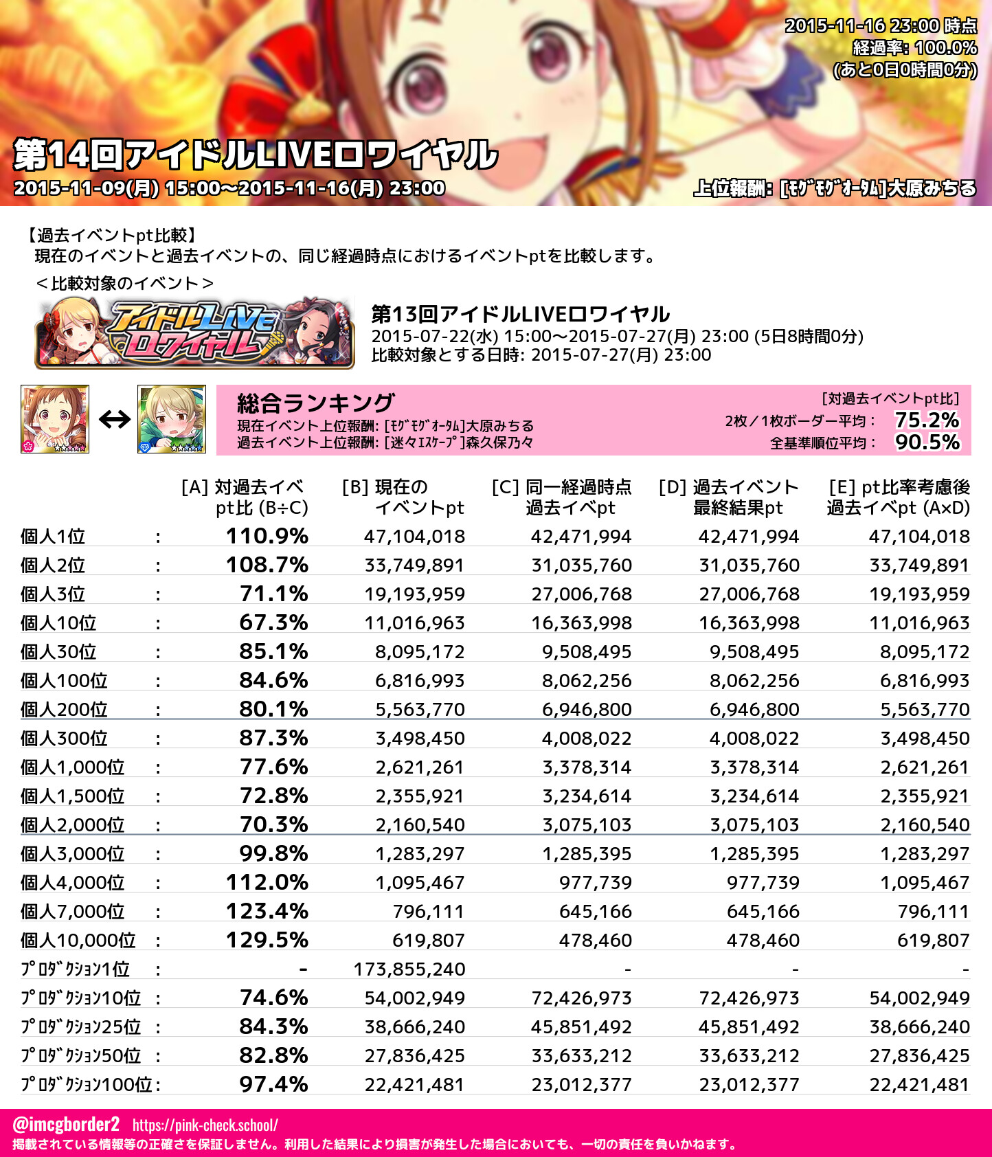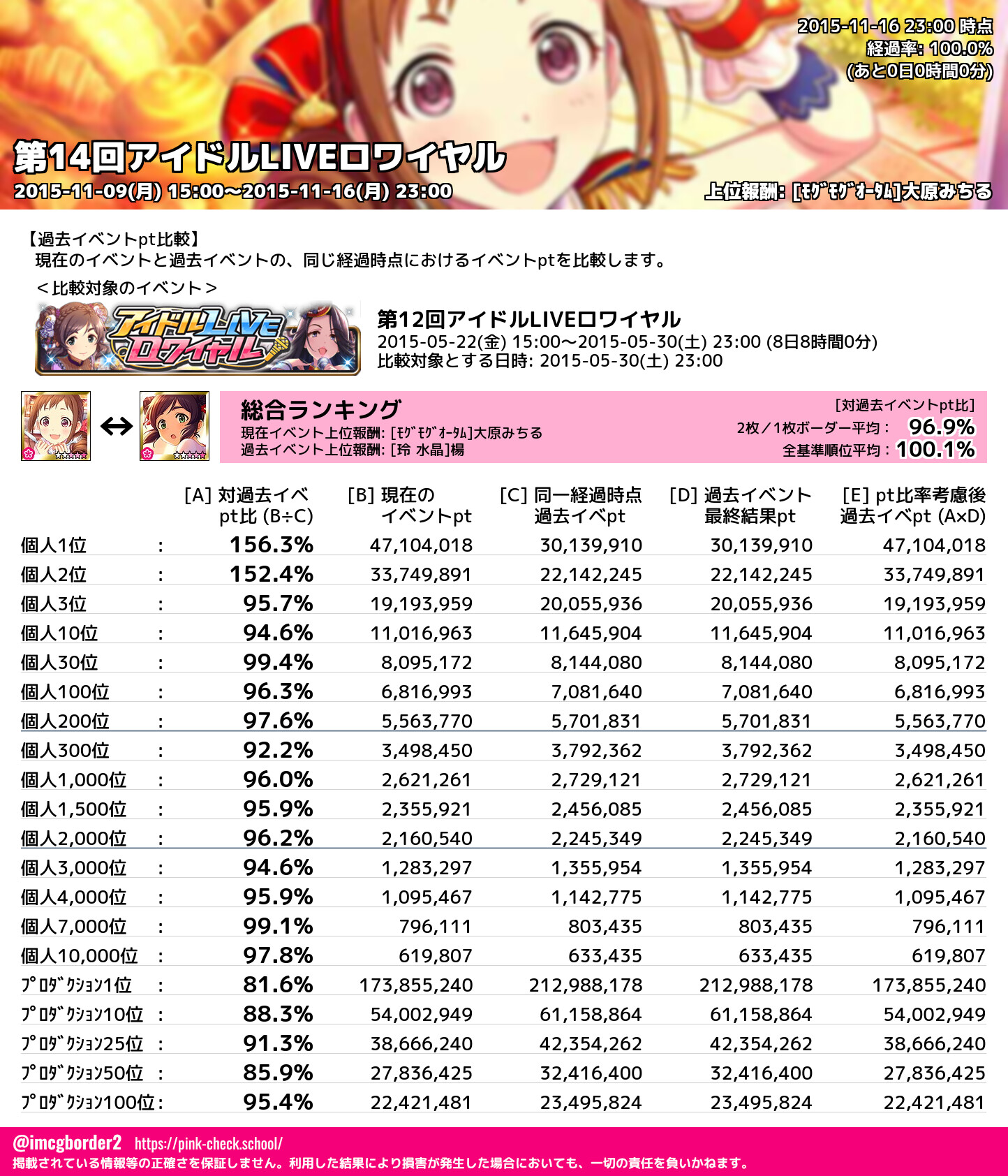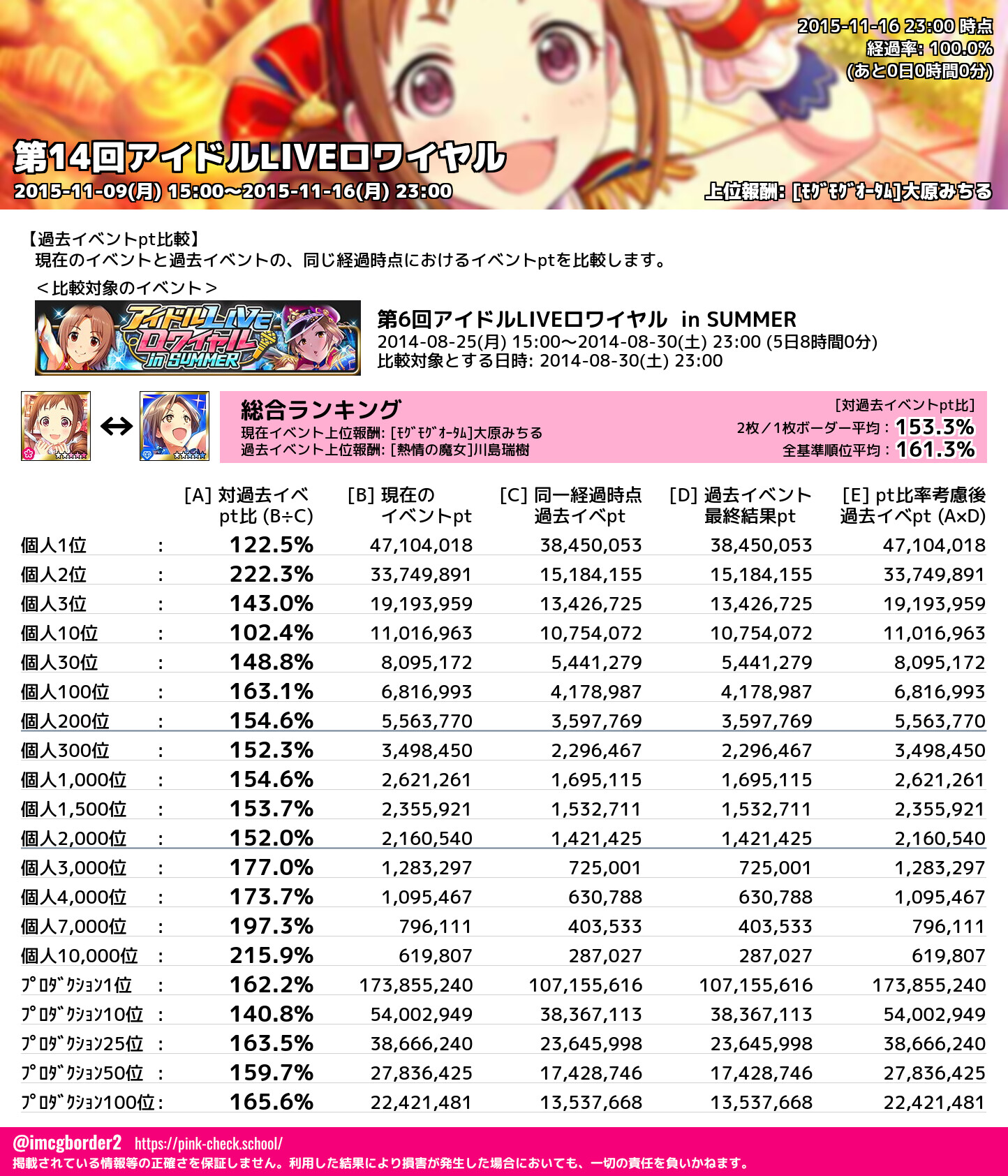 上位プロデューサースコア (2015-11-16 23:00 時点)
