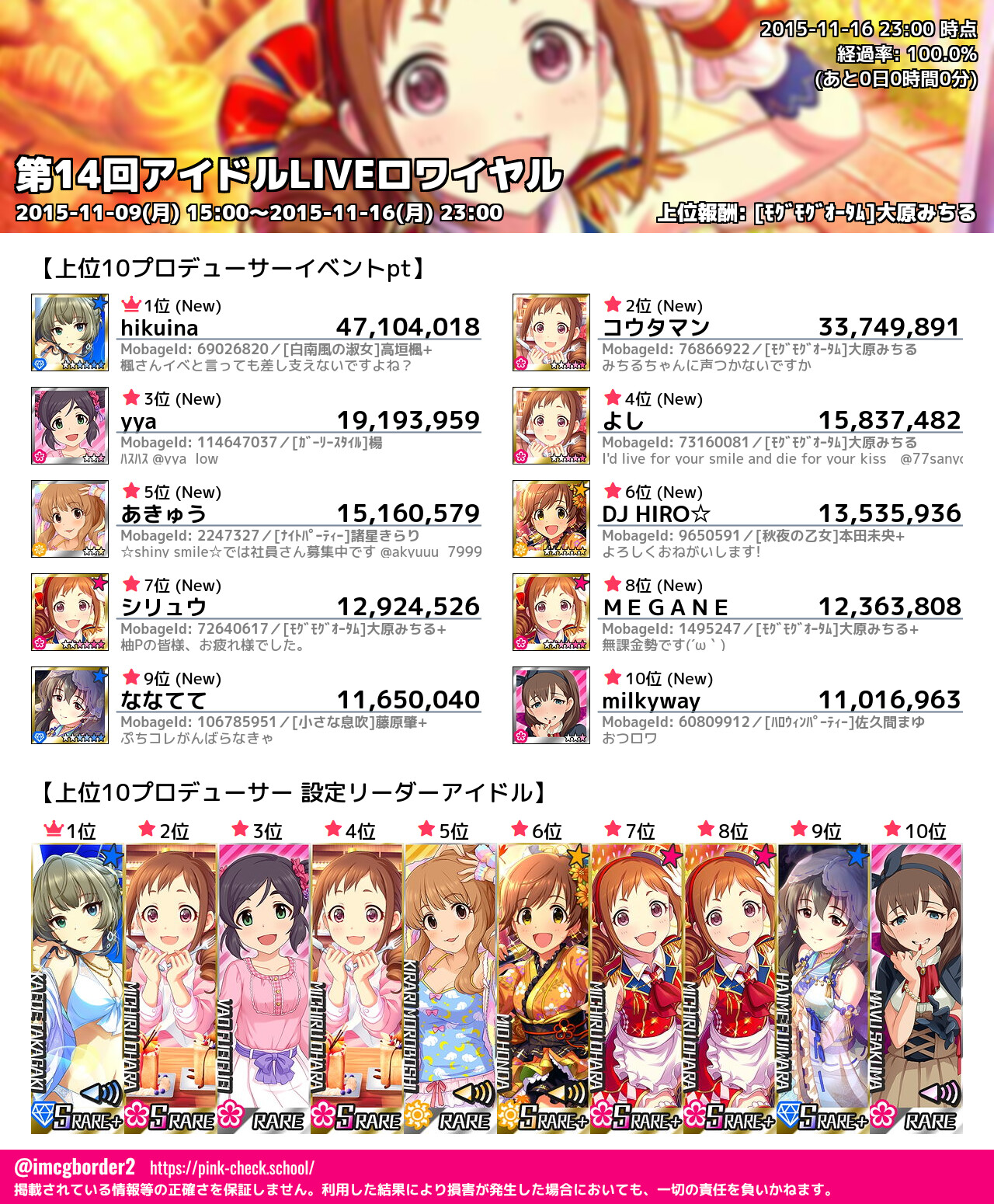 第14回アイドルLIVEロワイヤル 結果集計完了