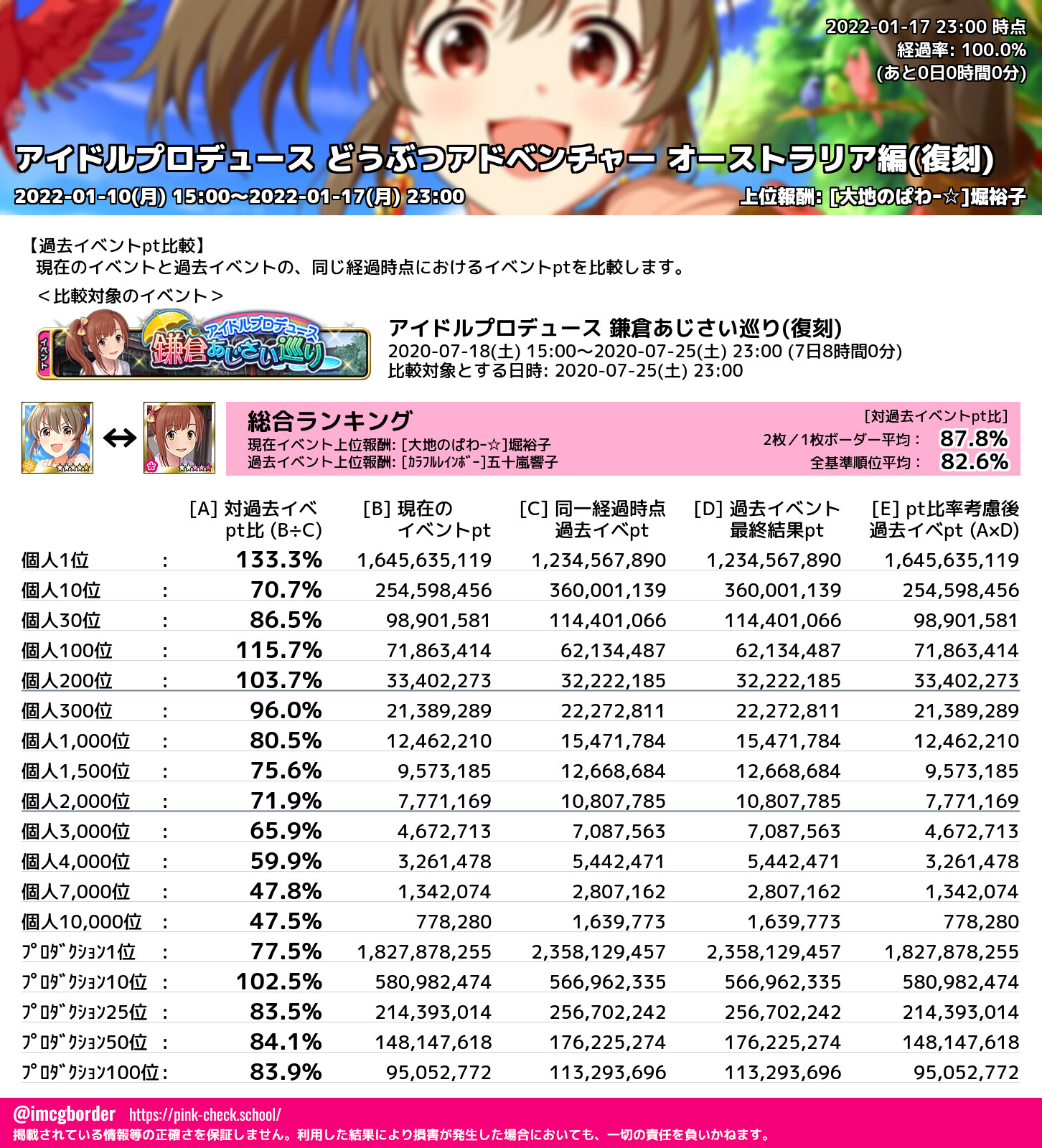アイドルプロデュース どうぶつアドベンチャー オーストラリア編(復刻) 結果集計完了