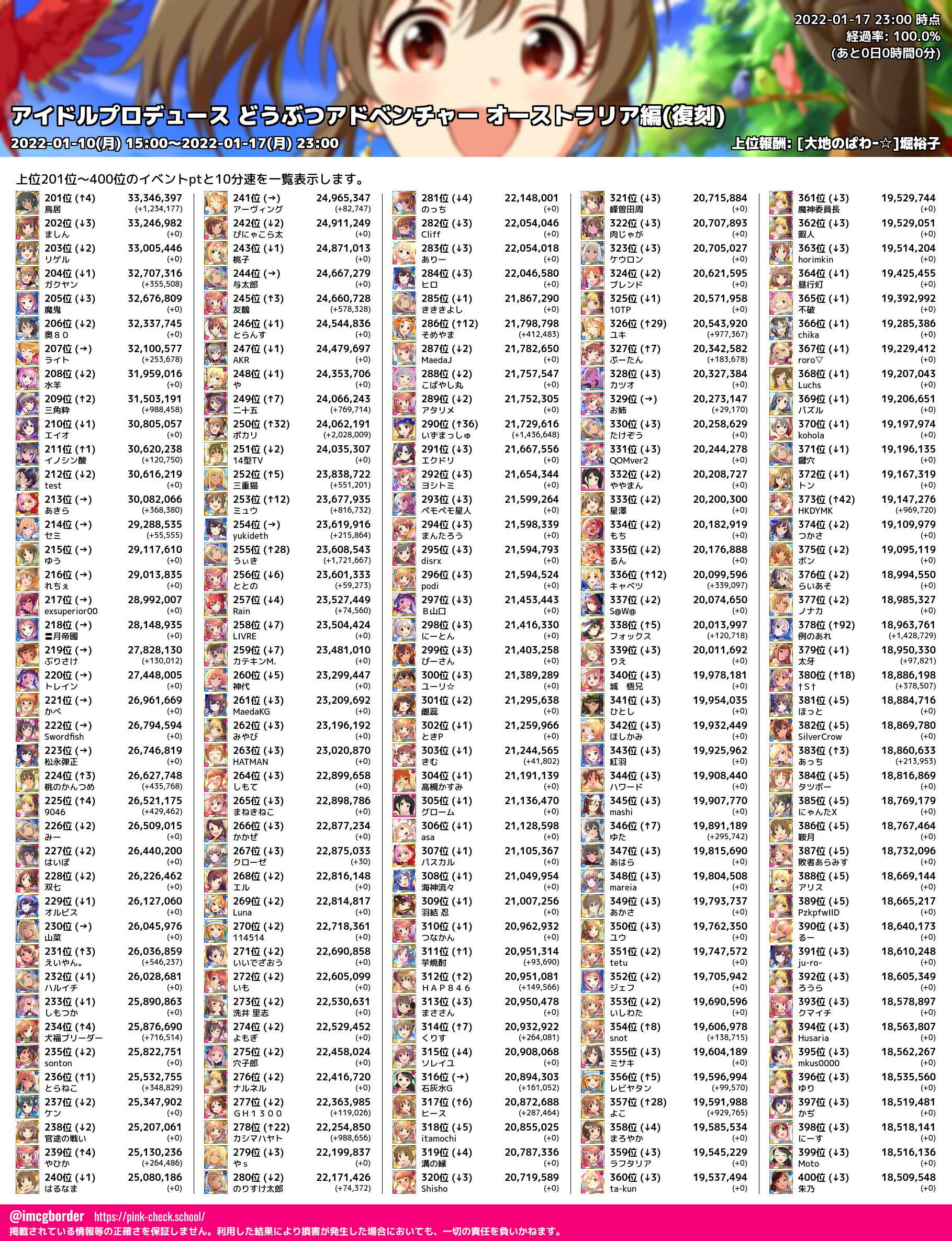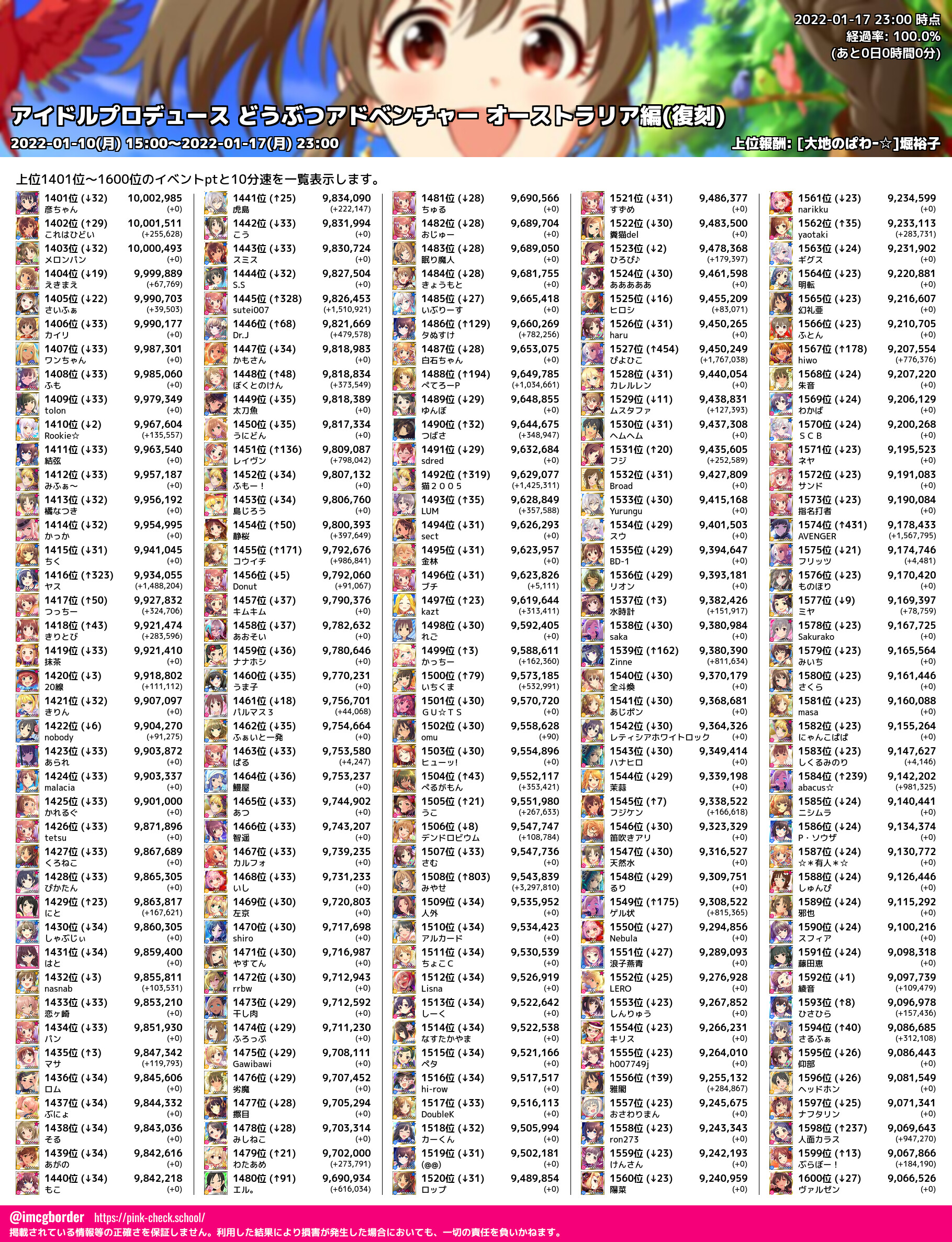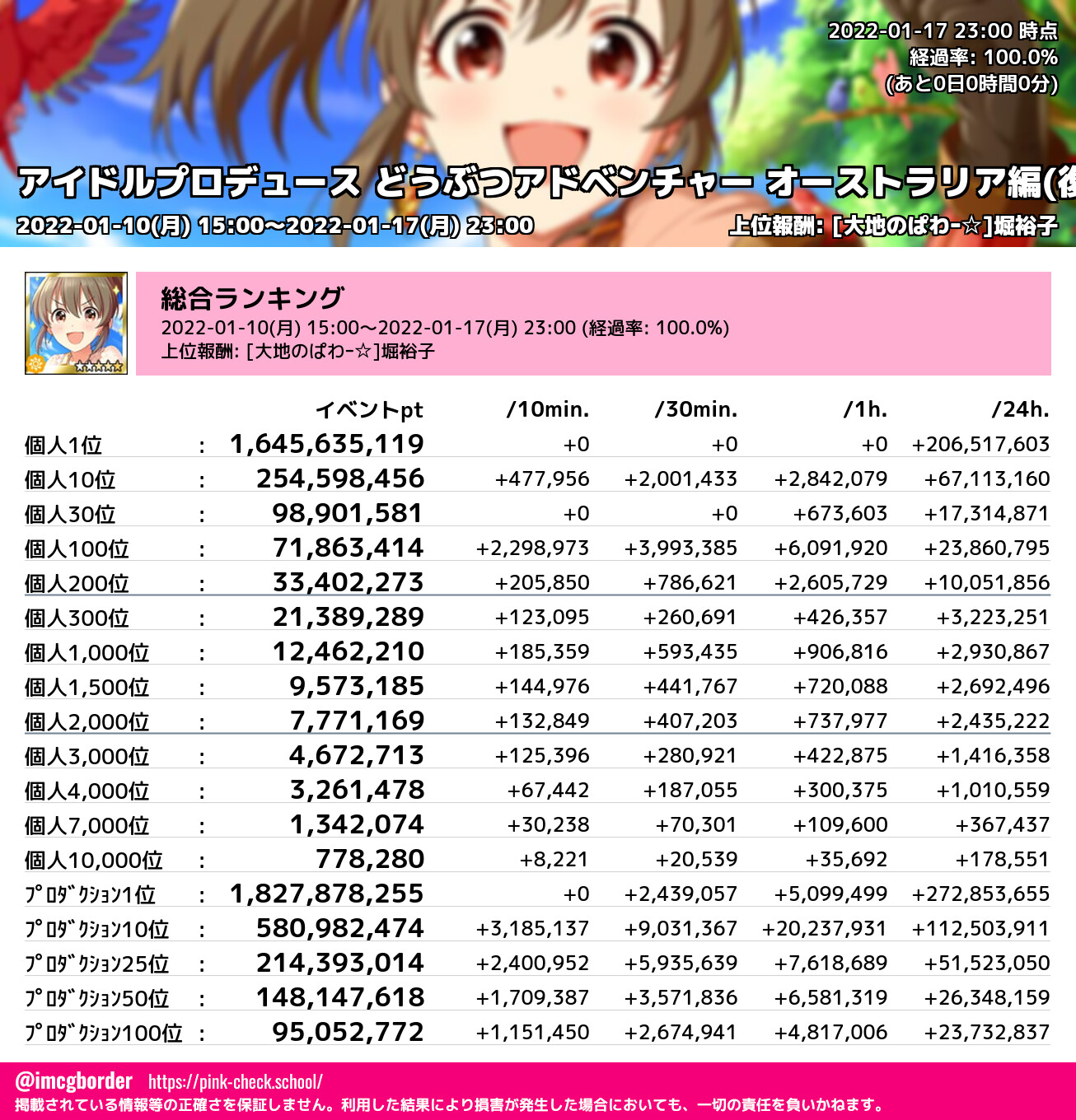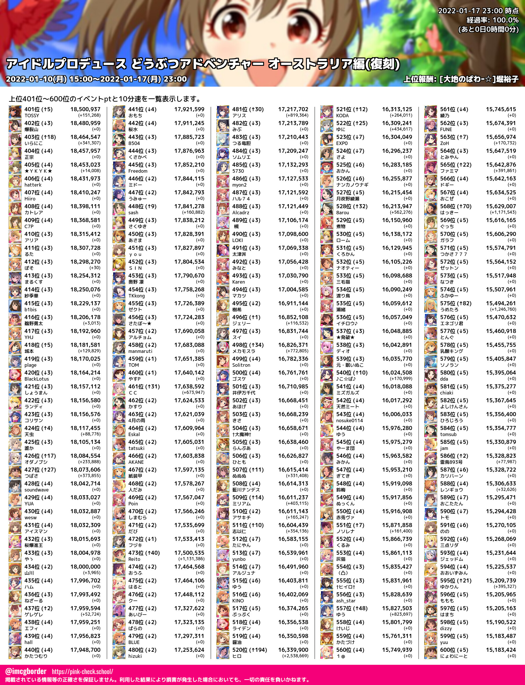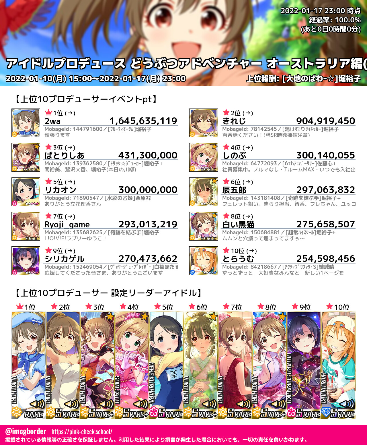 上位プロデューサースコア (2022-01-17 23:00 時点)