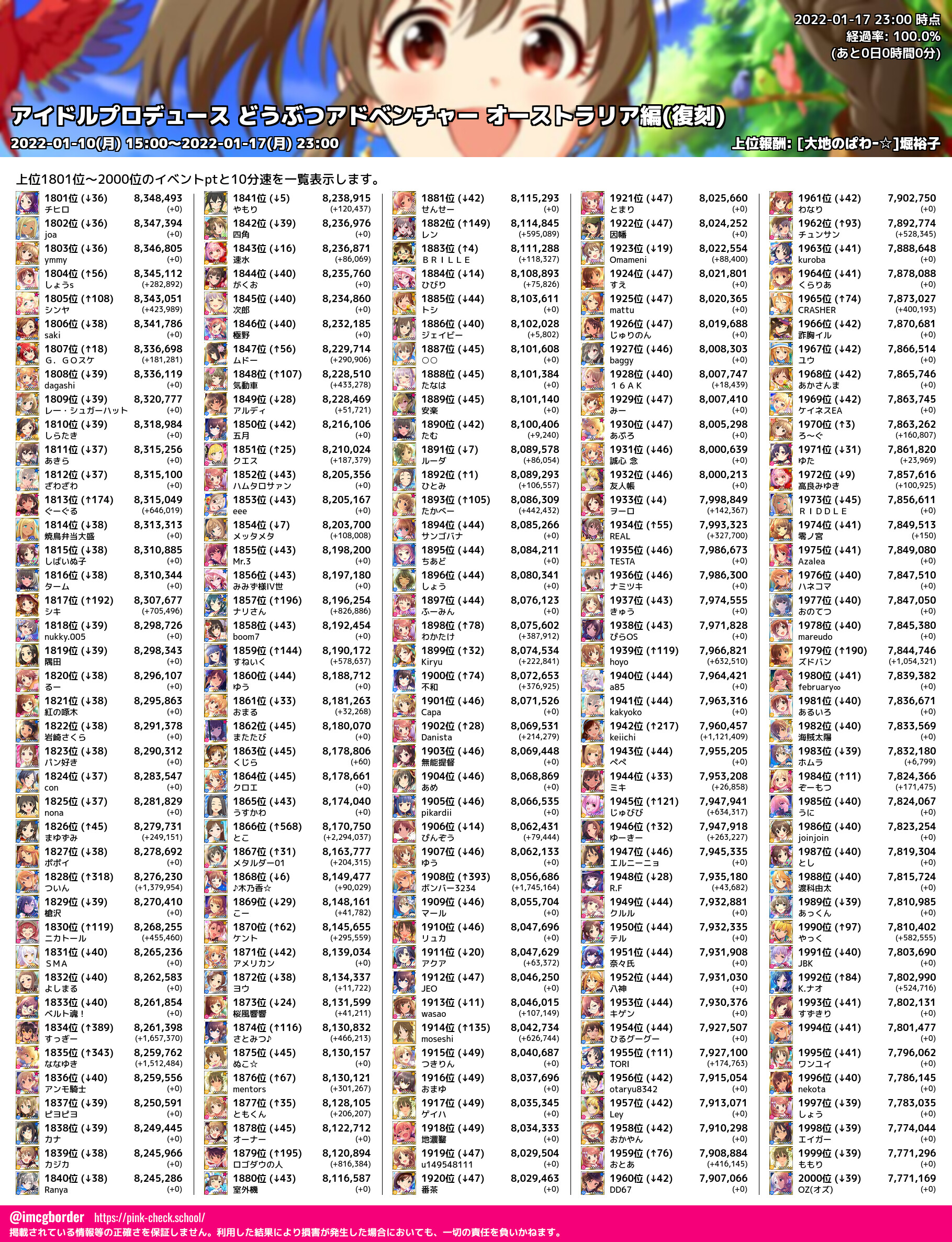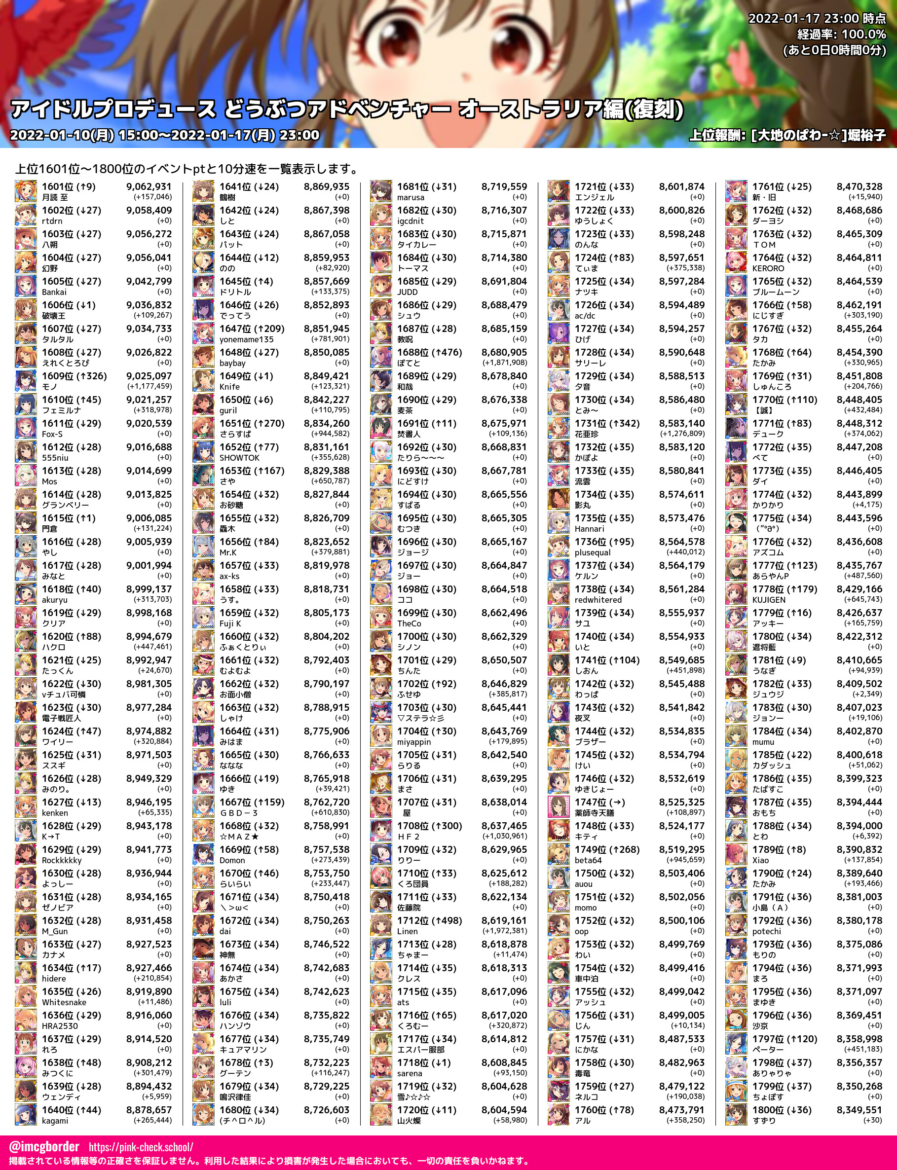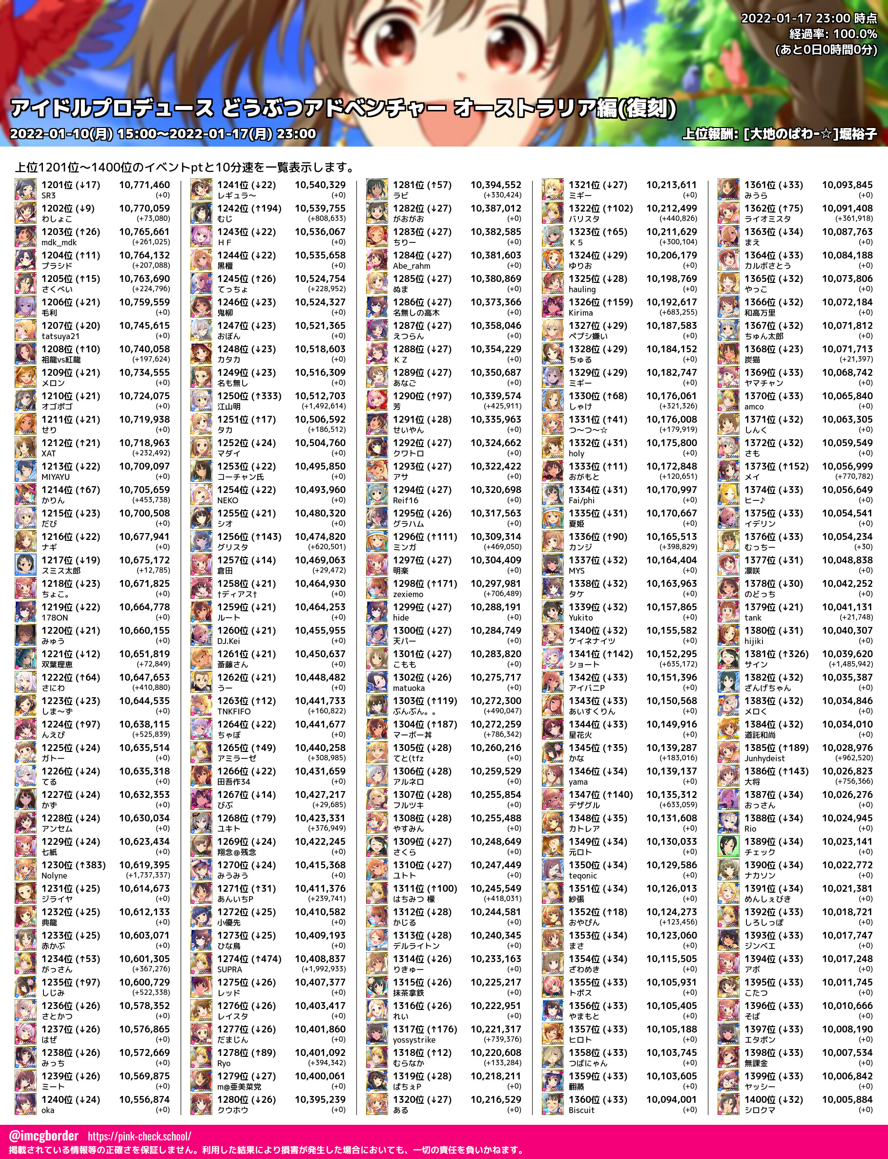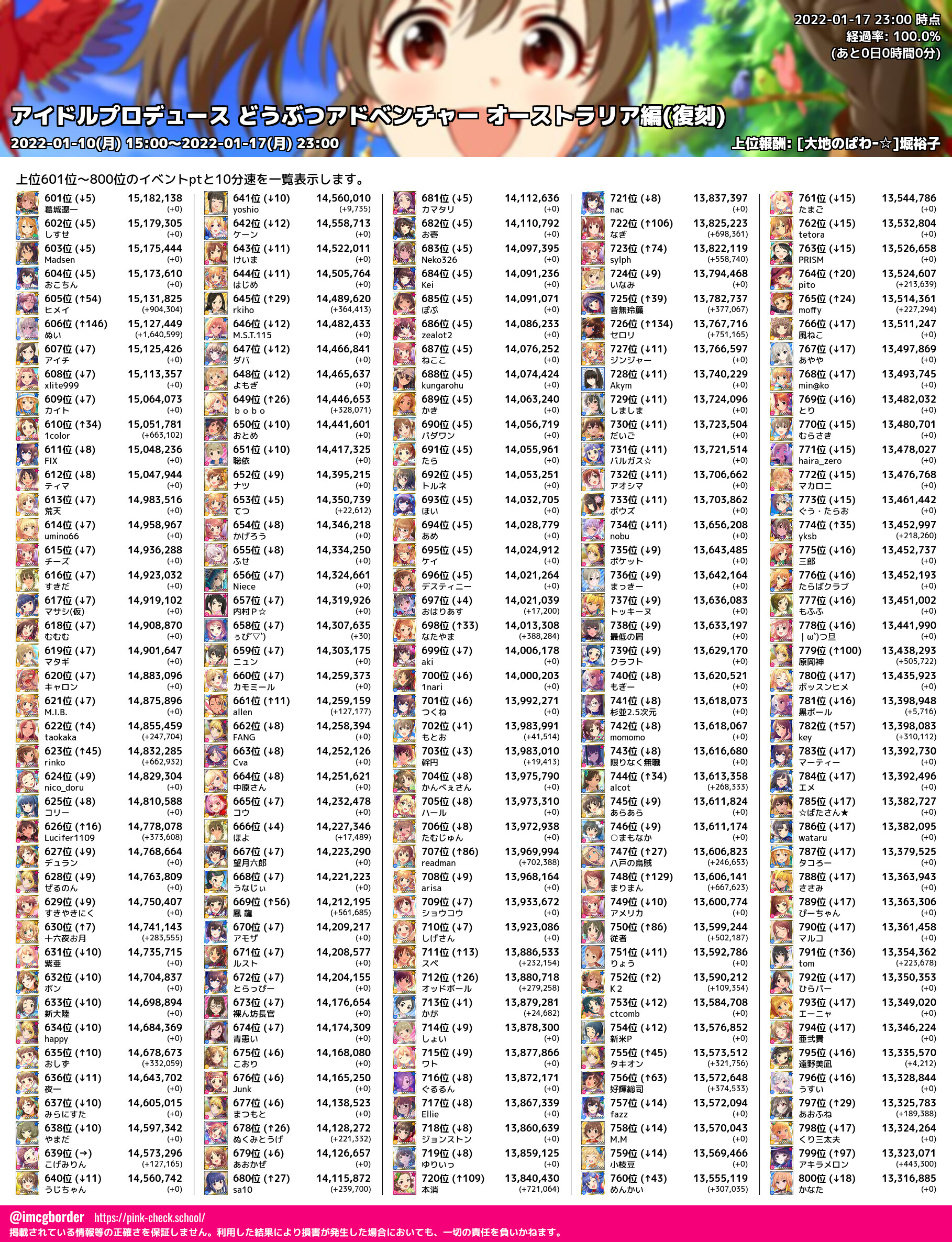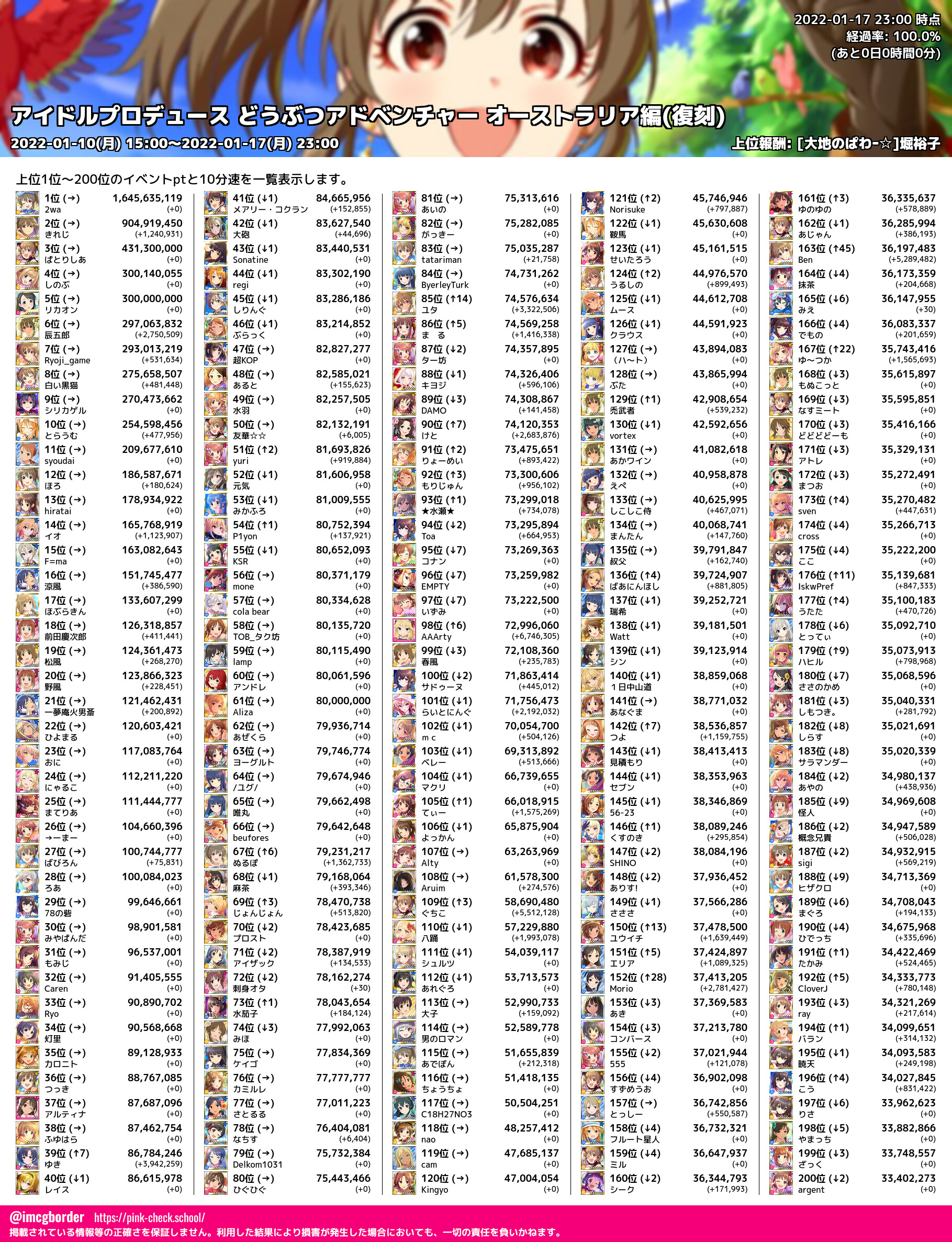 上位プロデューサースコア (2022-01-17 23:00 時点)