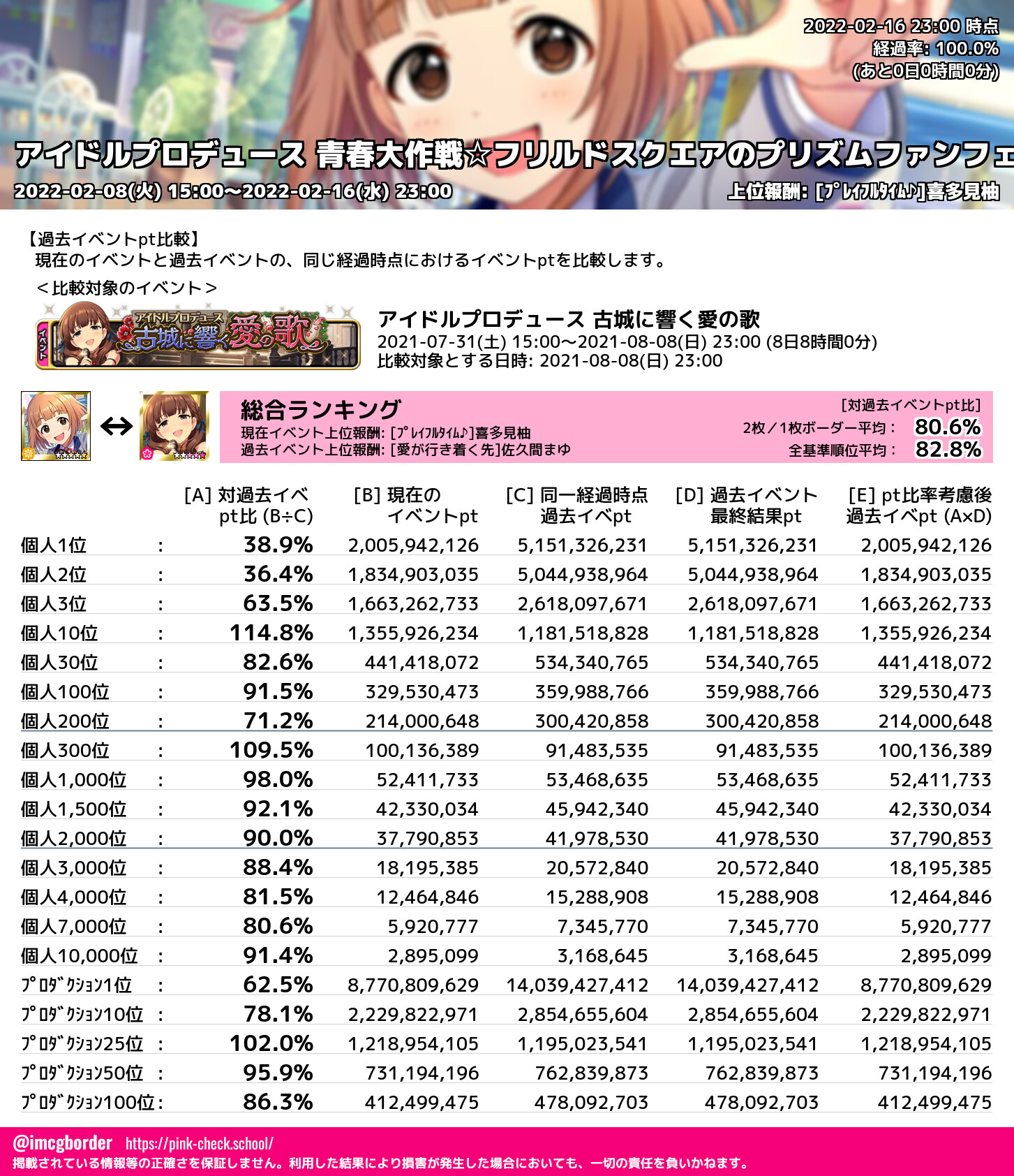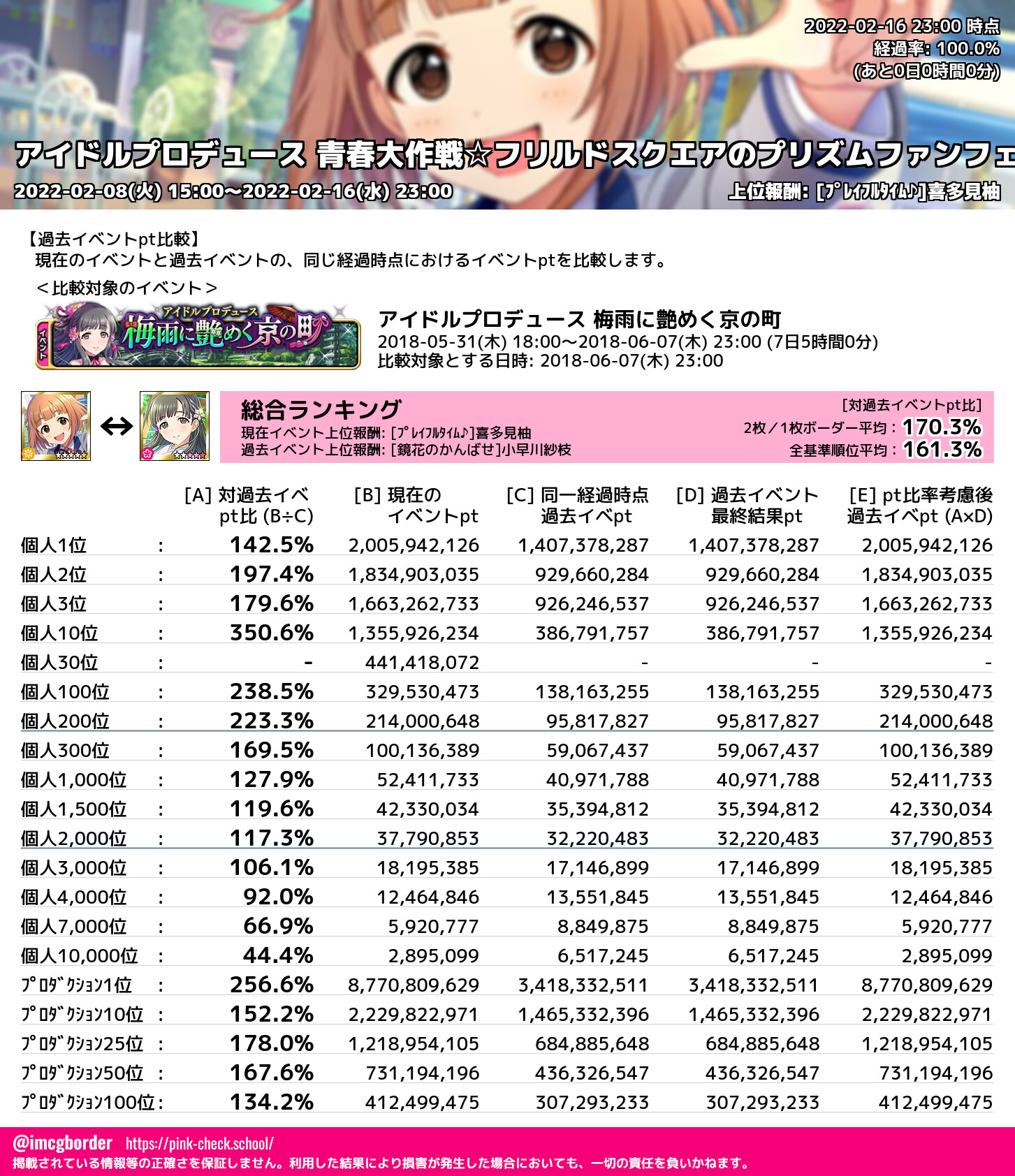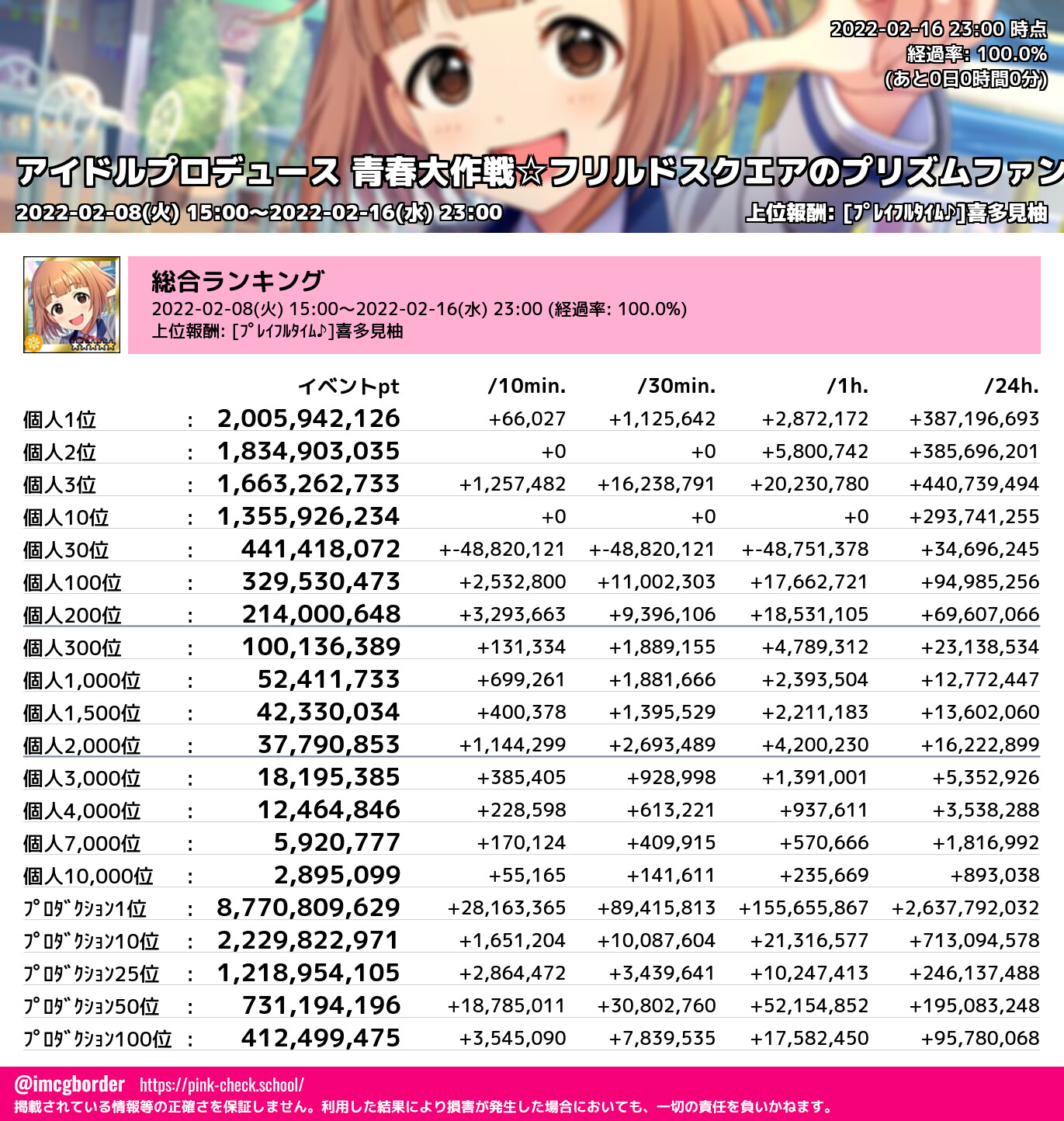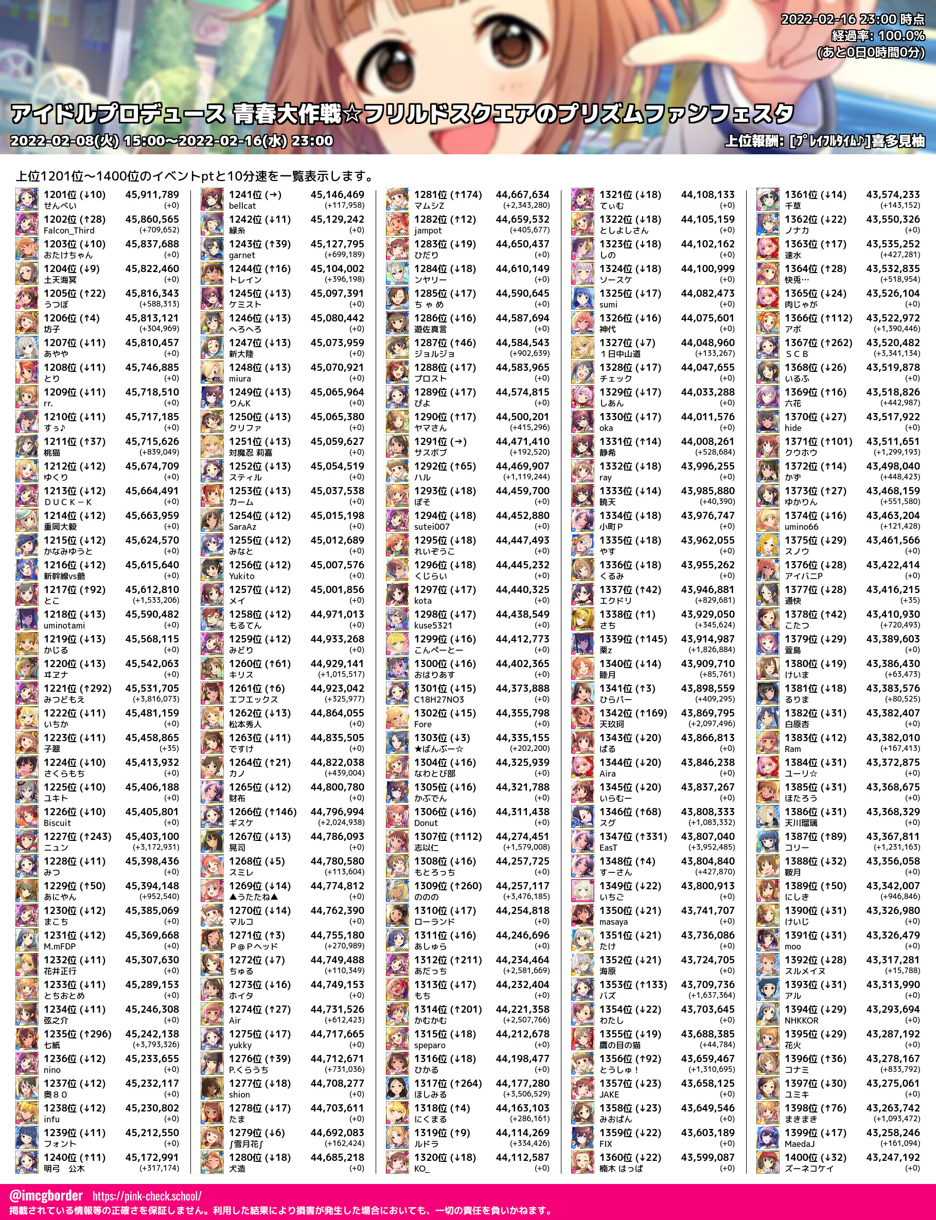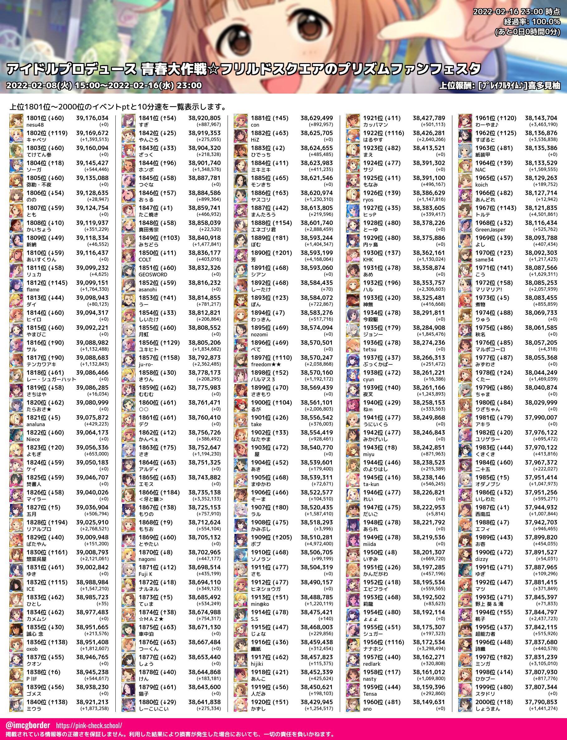 上位プロデューサースコア (2022-02-16 23:00 時点)