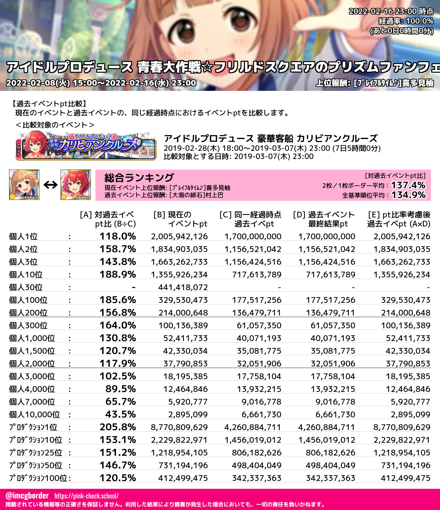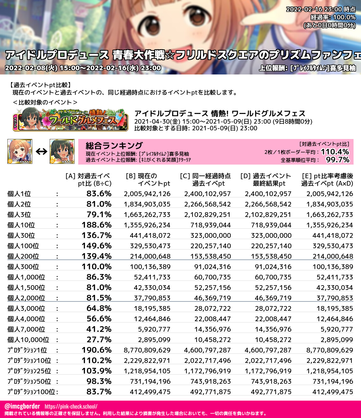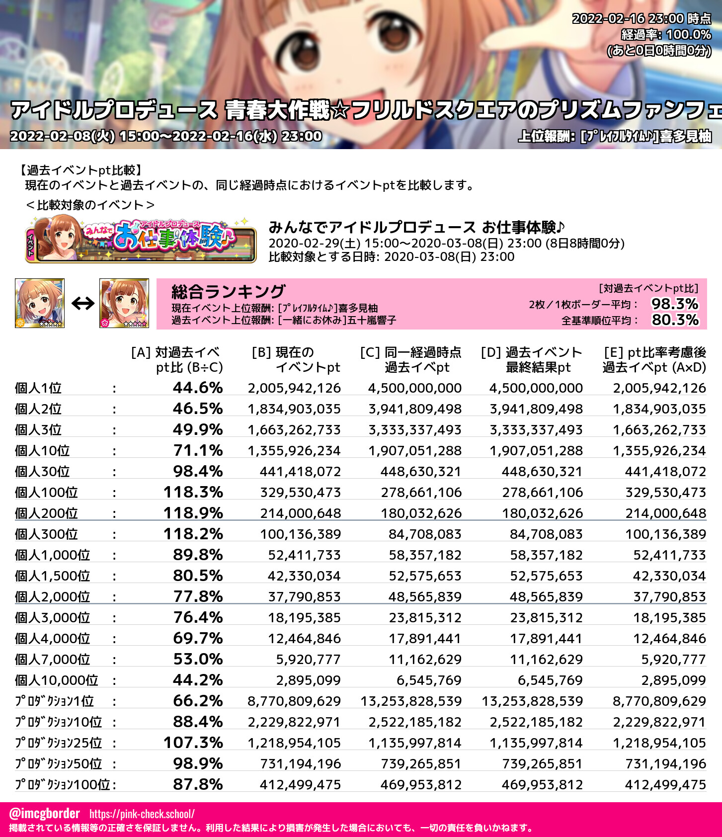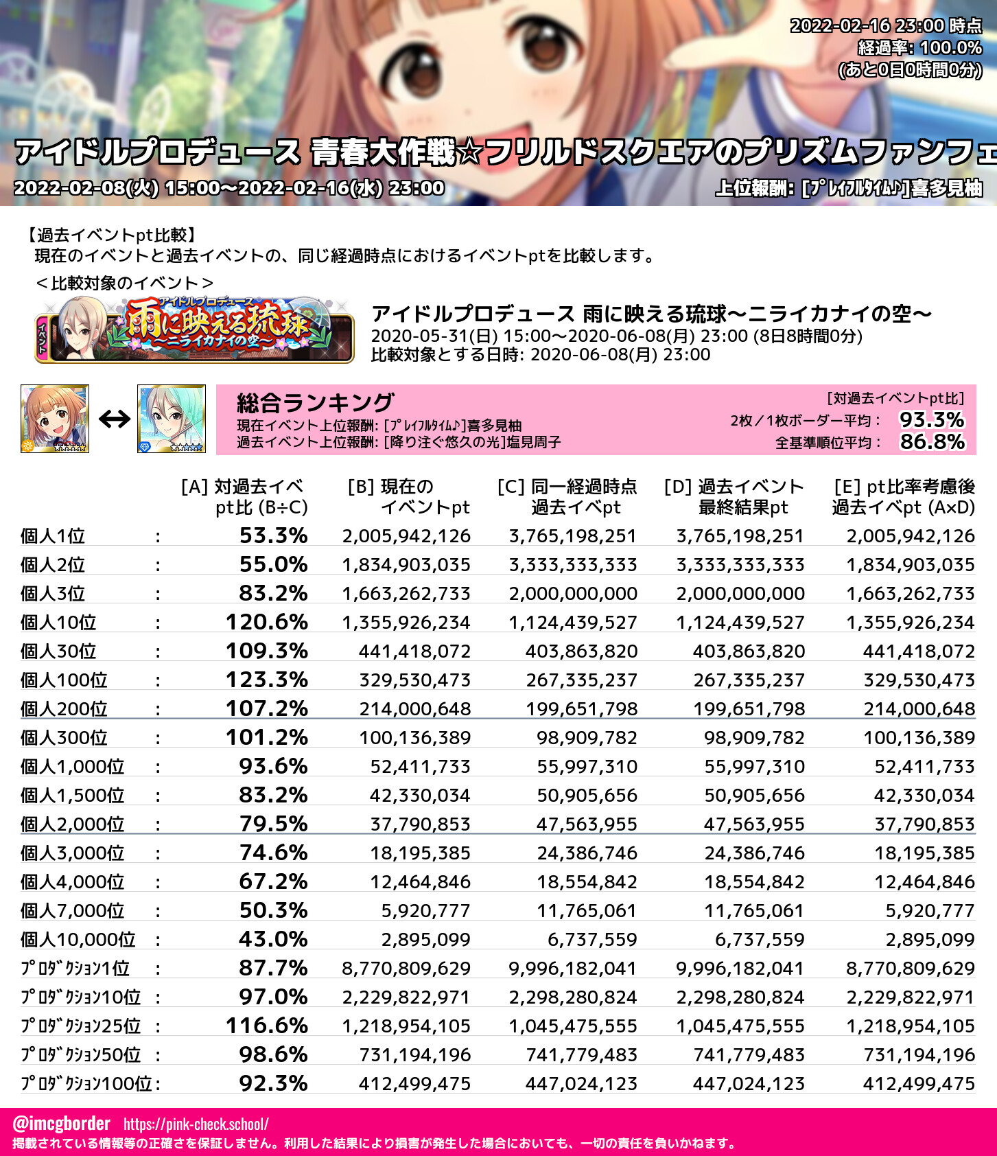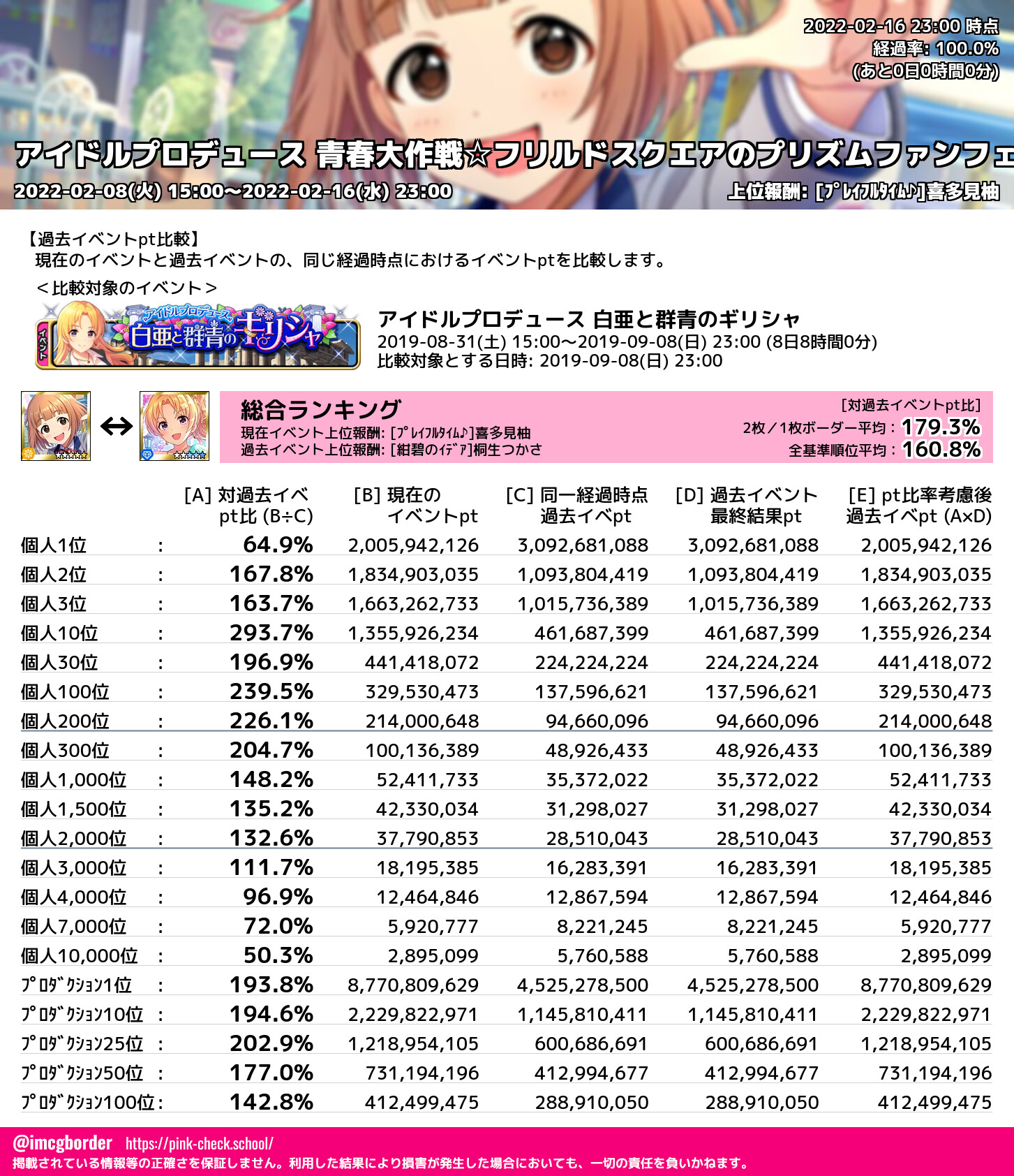 上位プロデューサースコア (2022-02-16 23:00 時点)