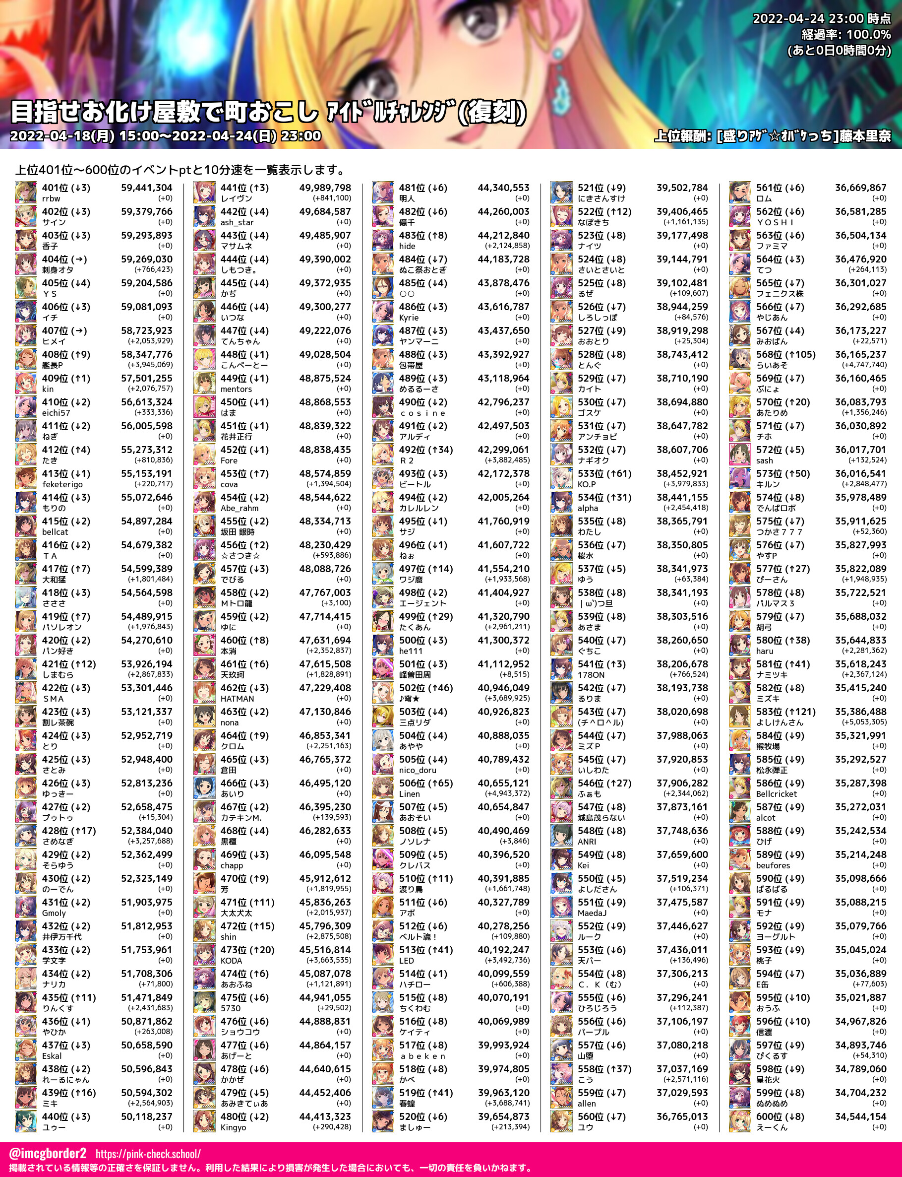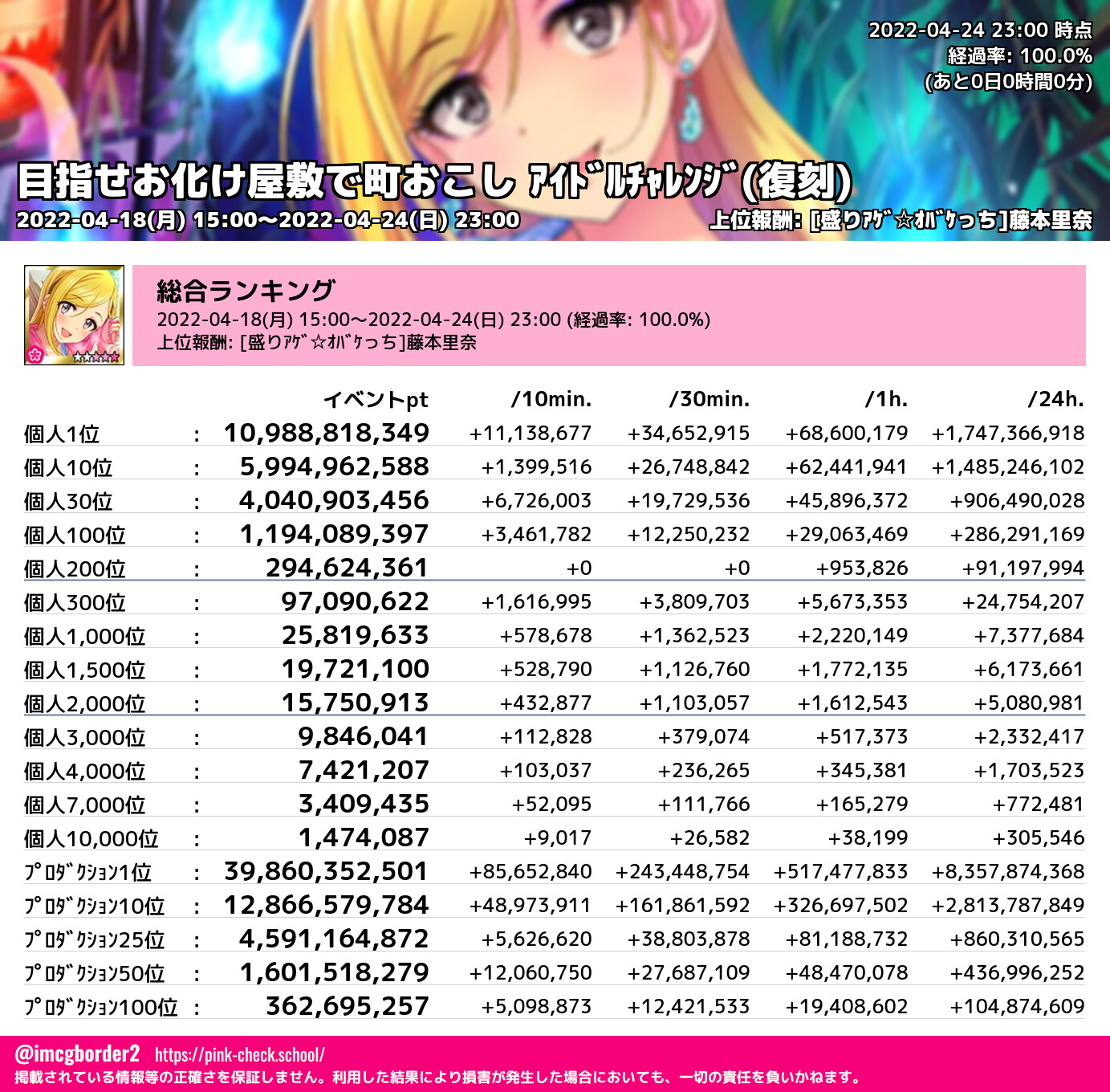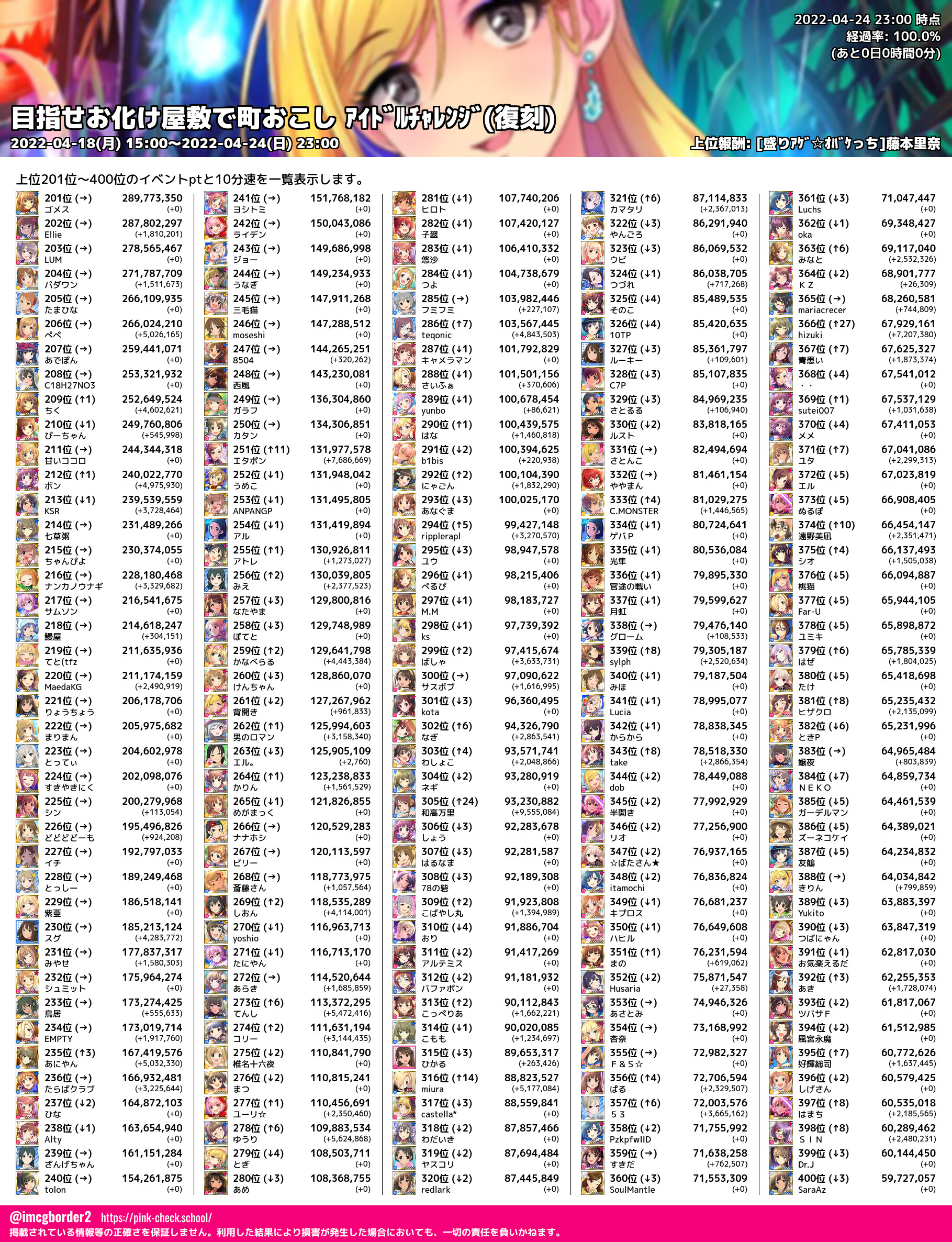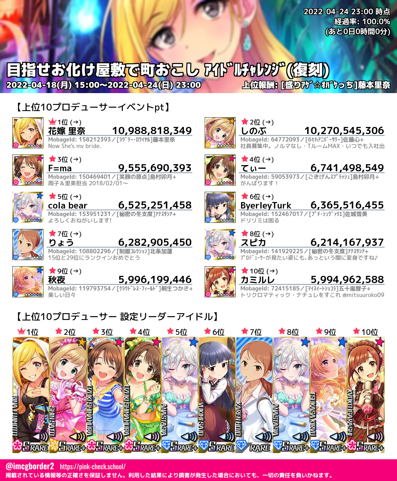 上位プロデューサースコア (2022-04-24 23:00 時点)