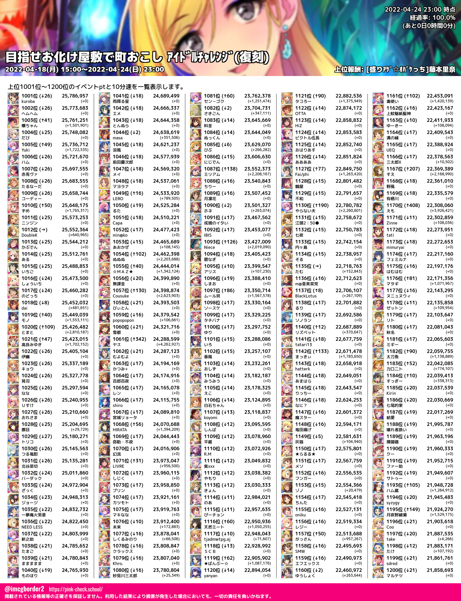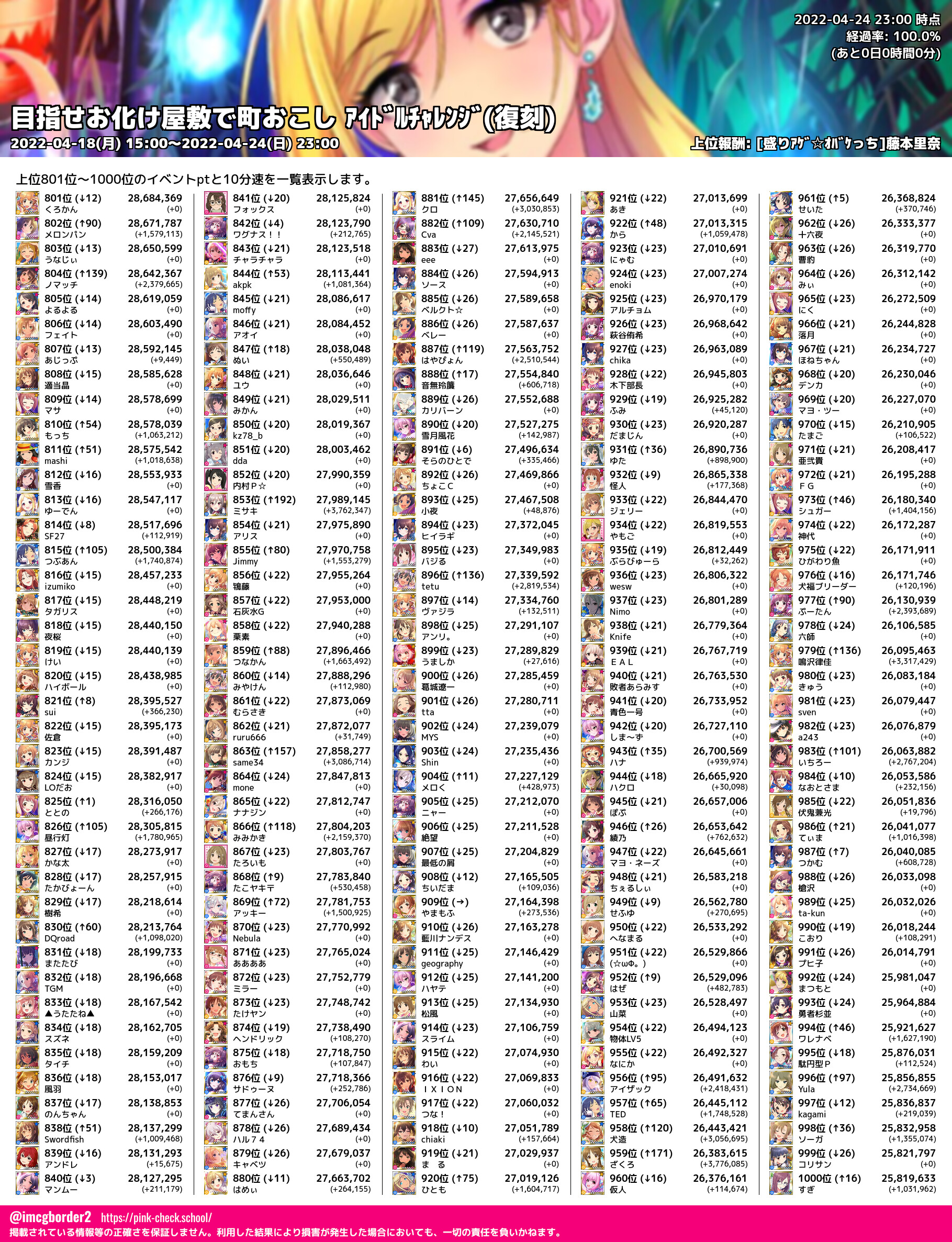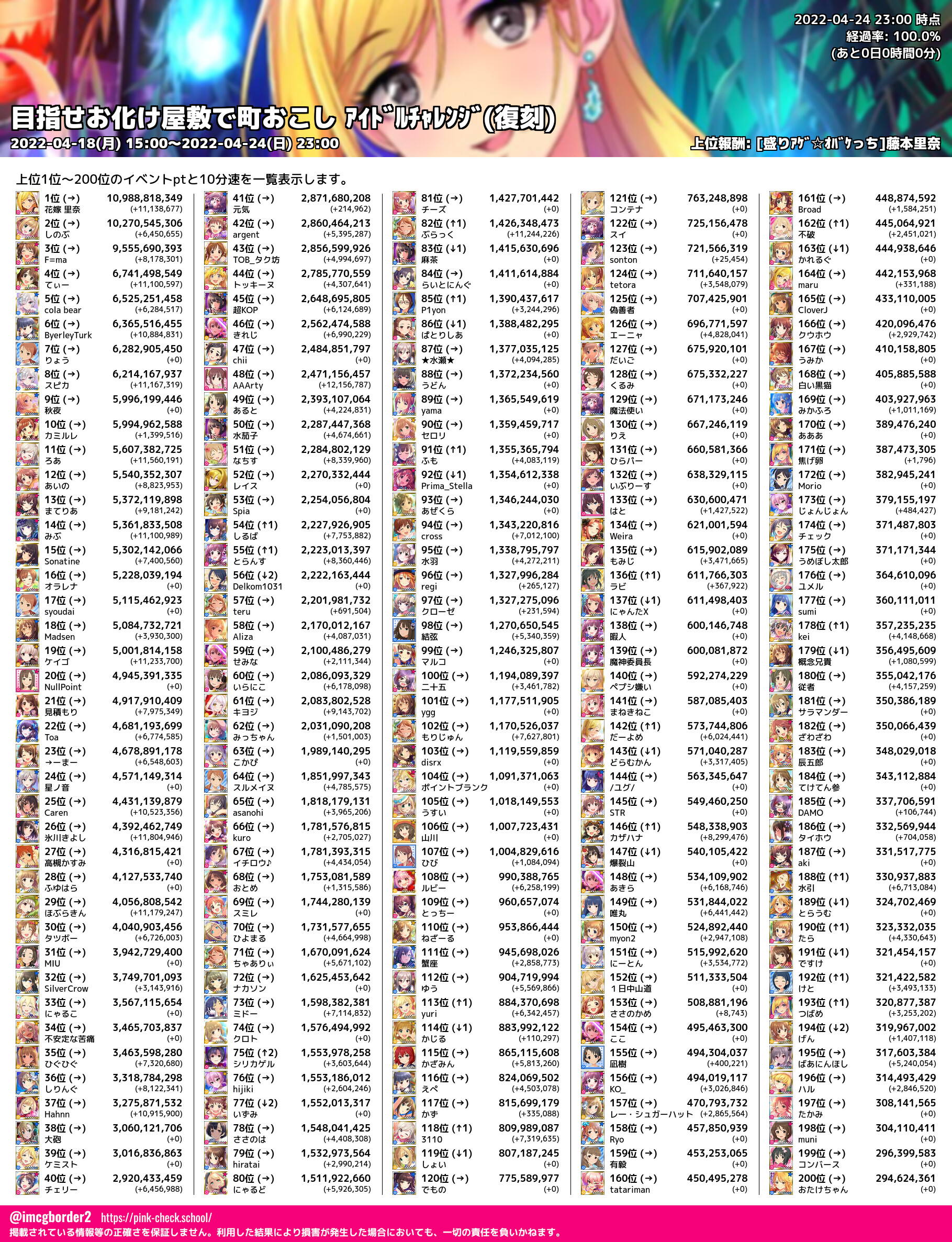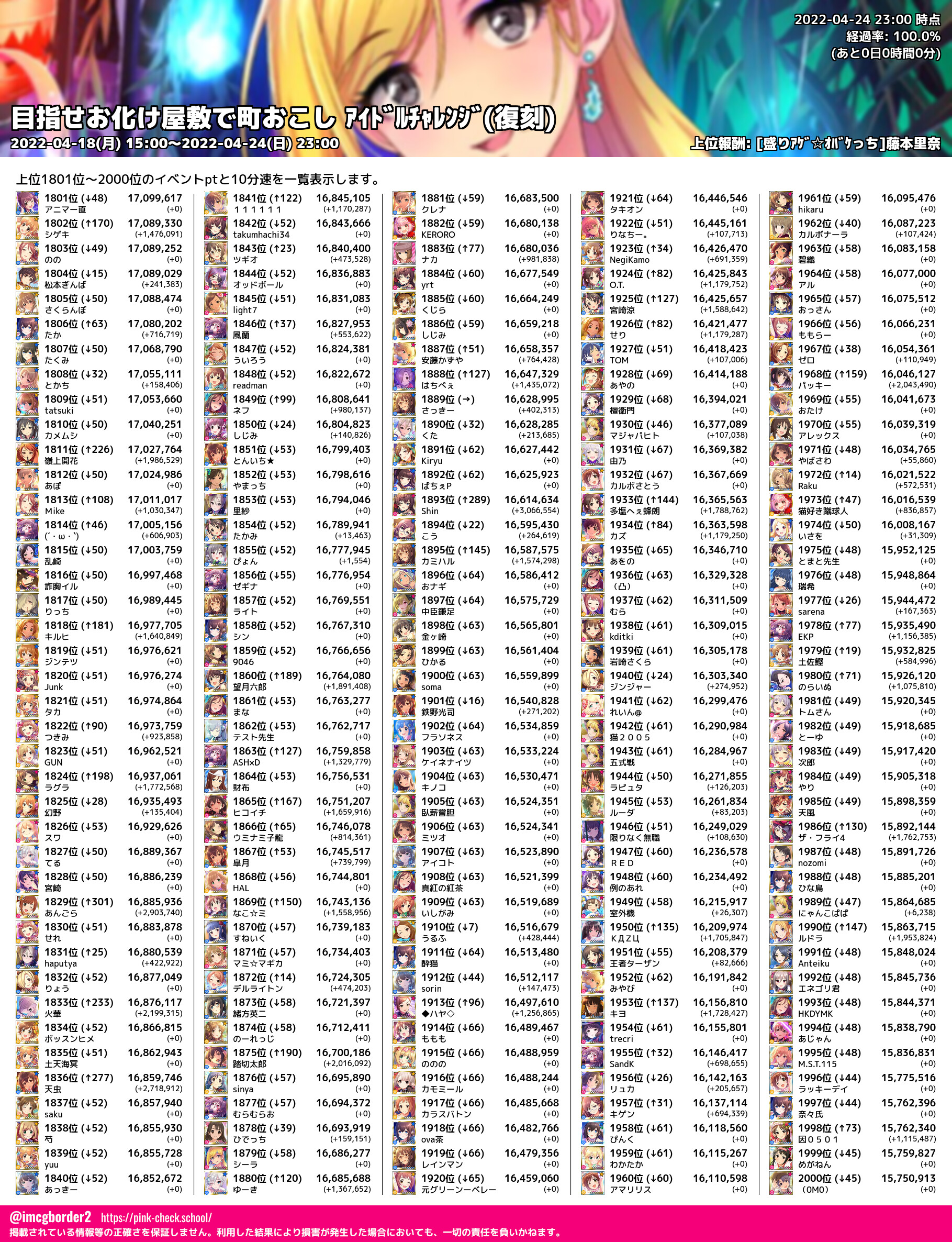 上位プロデューサースコア (2022-04-24 23:00 時点)