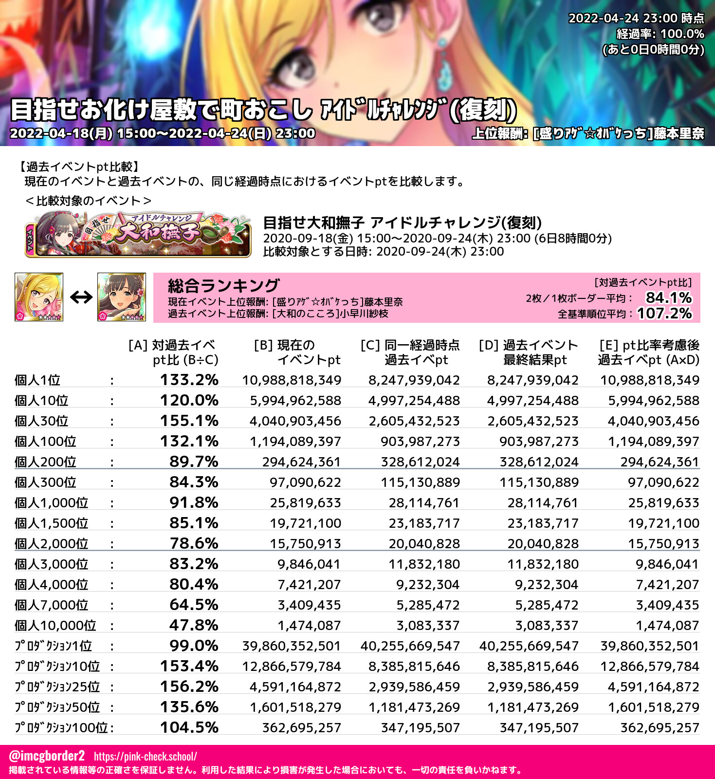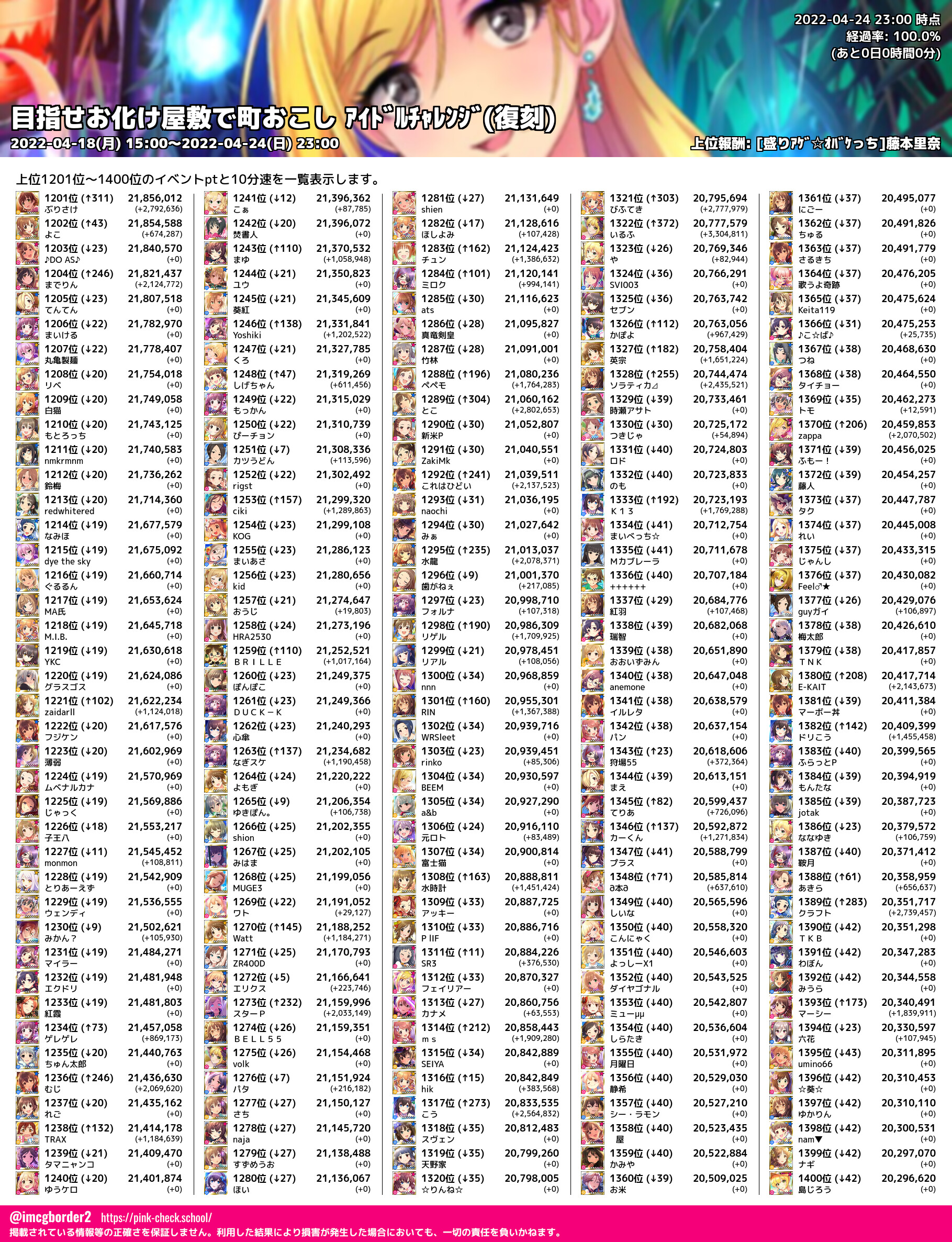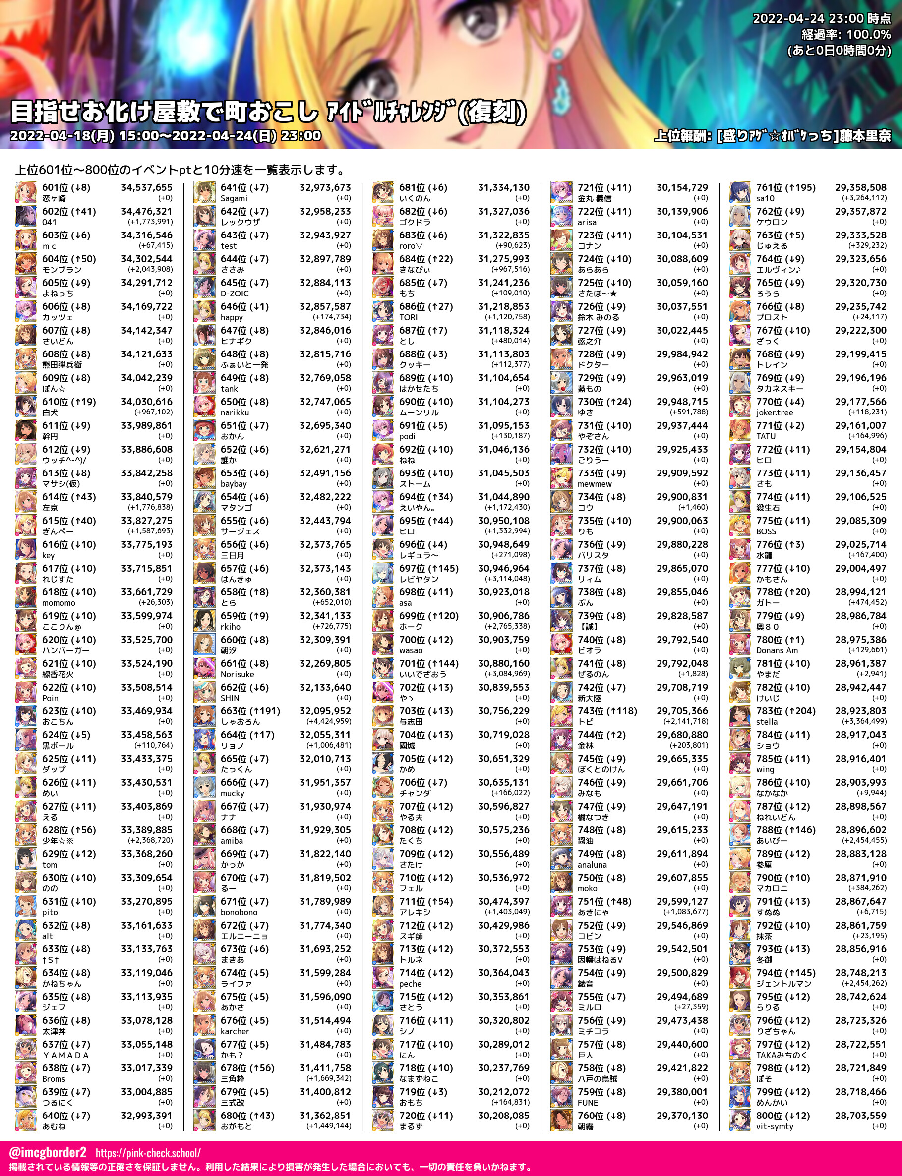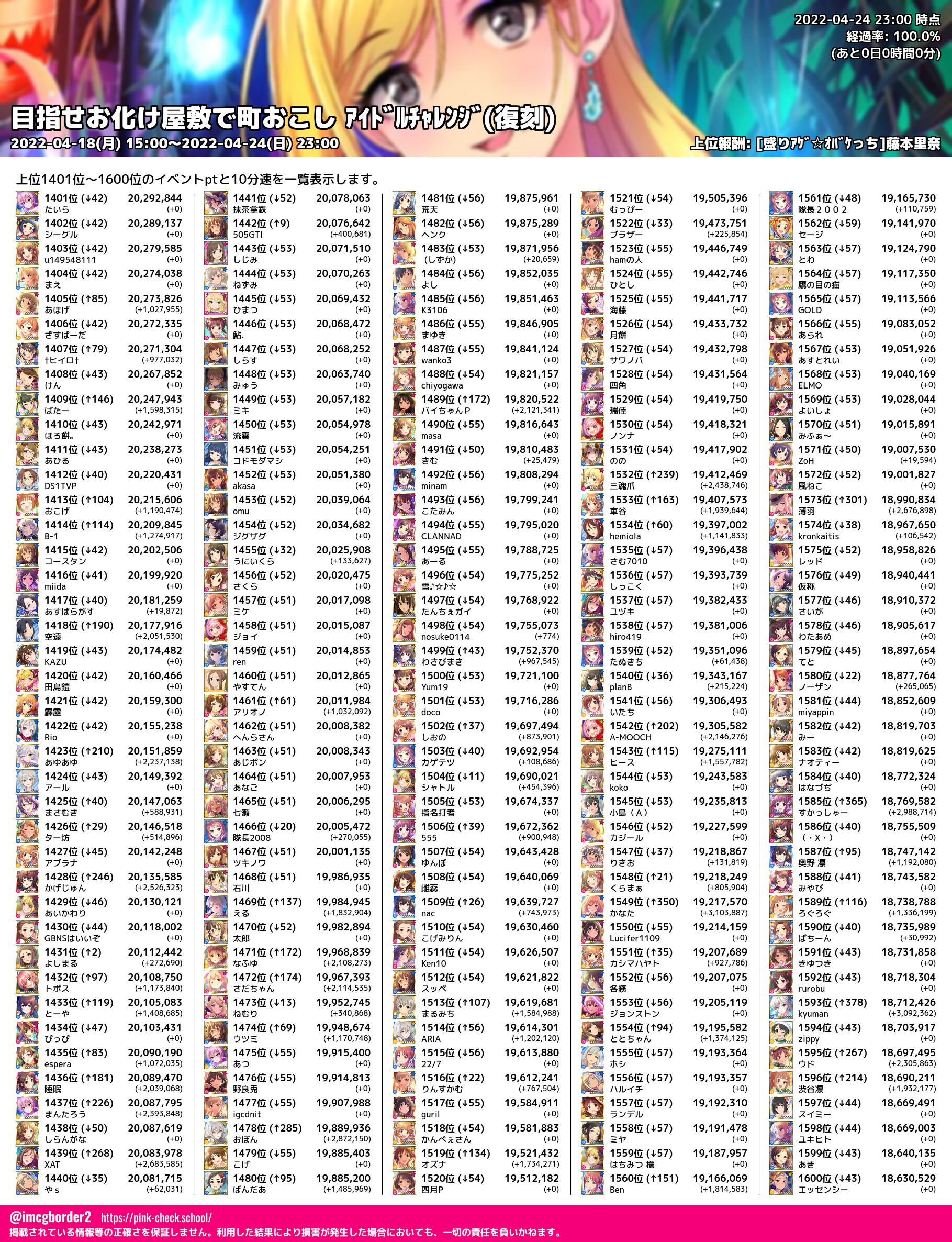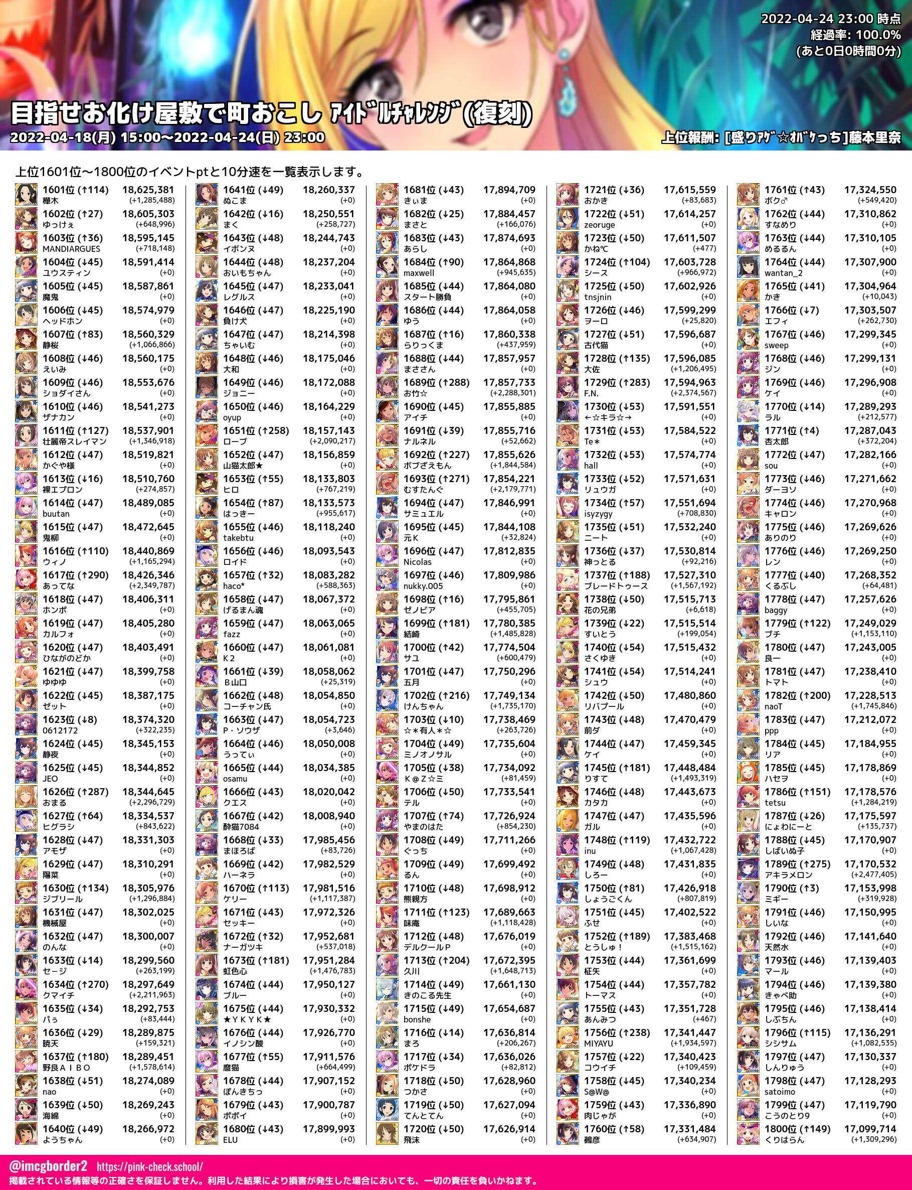 上位プロデューサースコア (2022-04-24 23:00 時点)