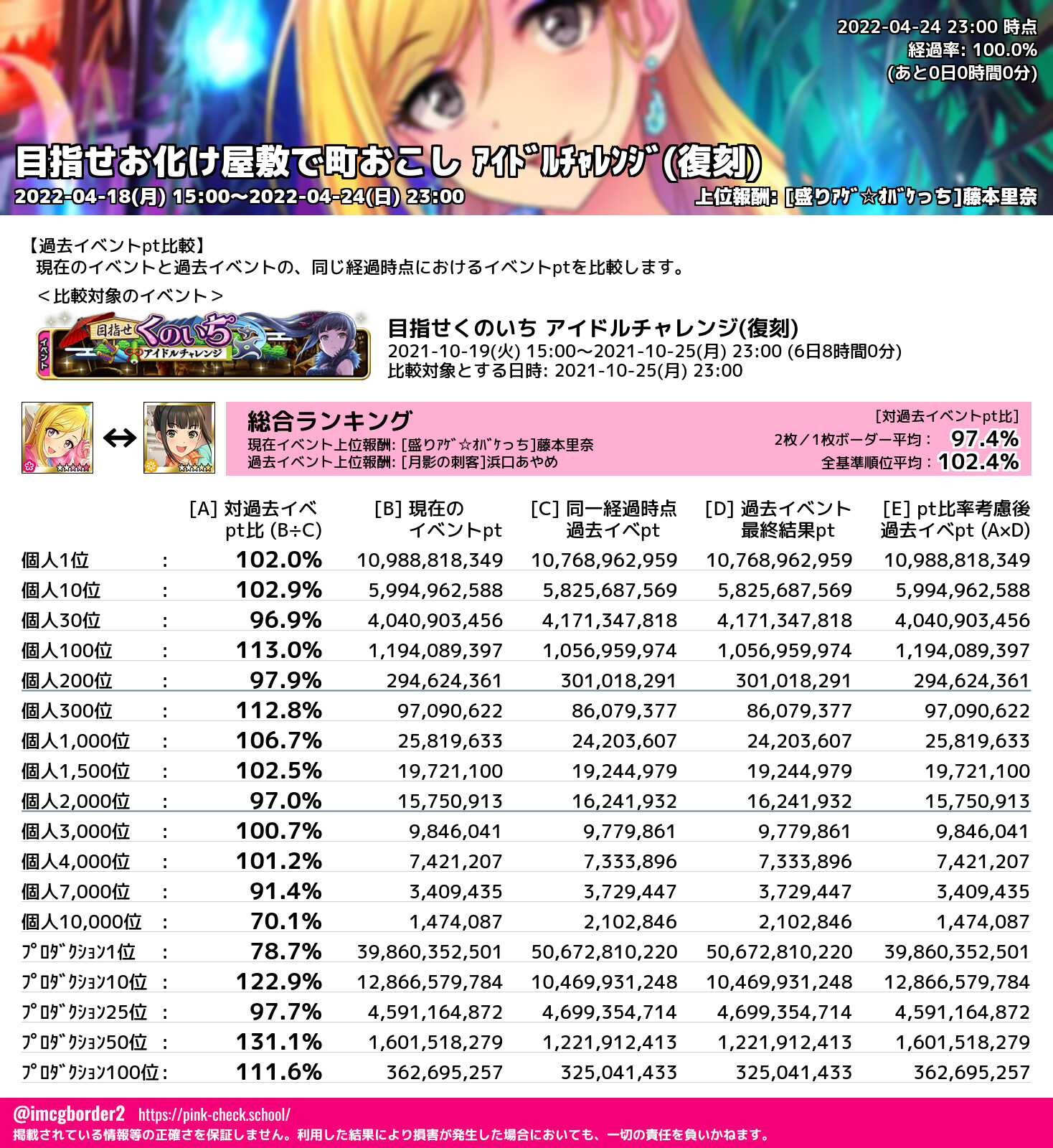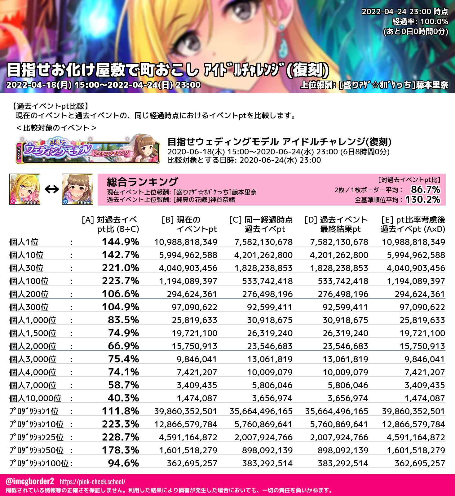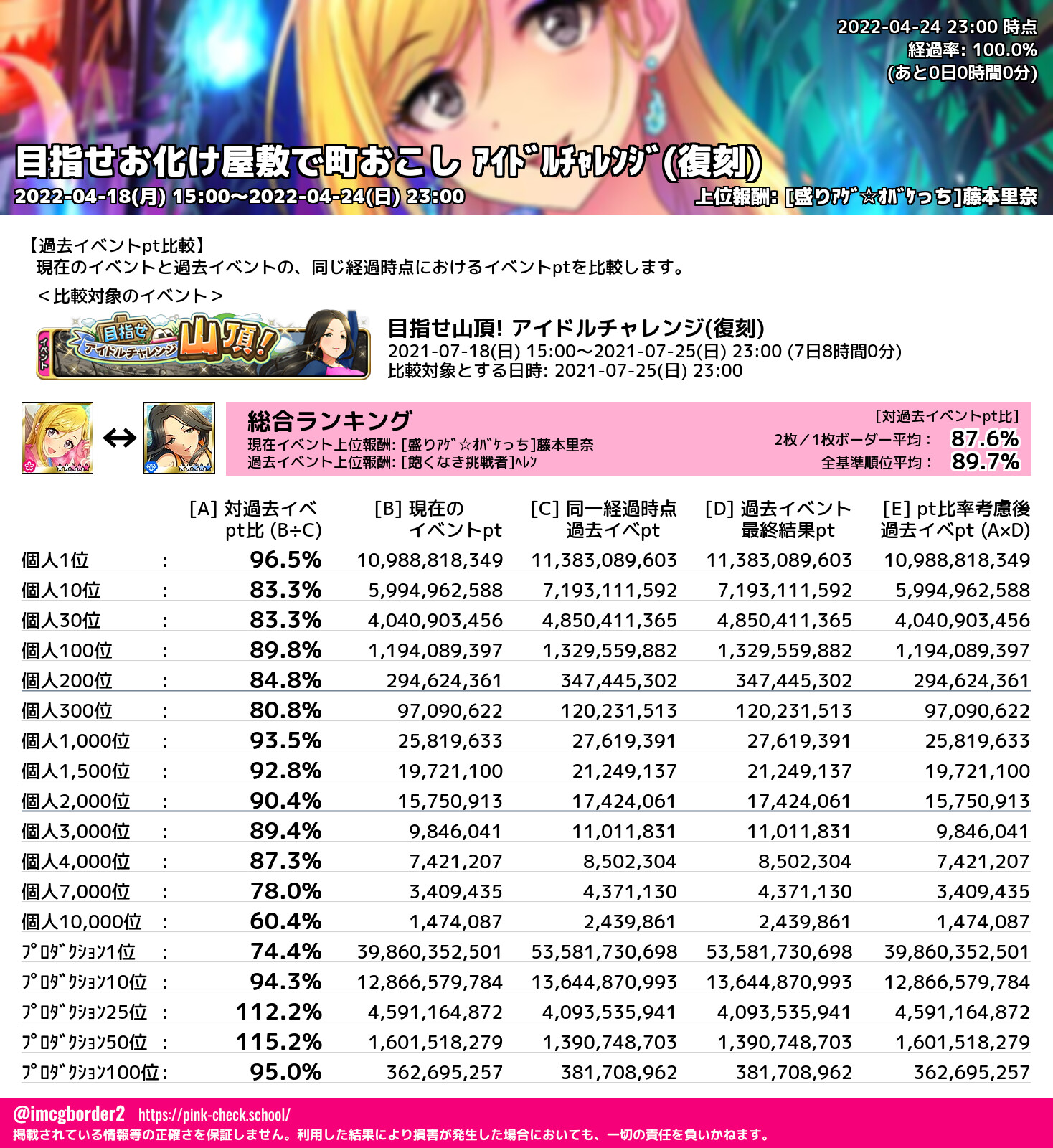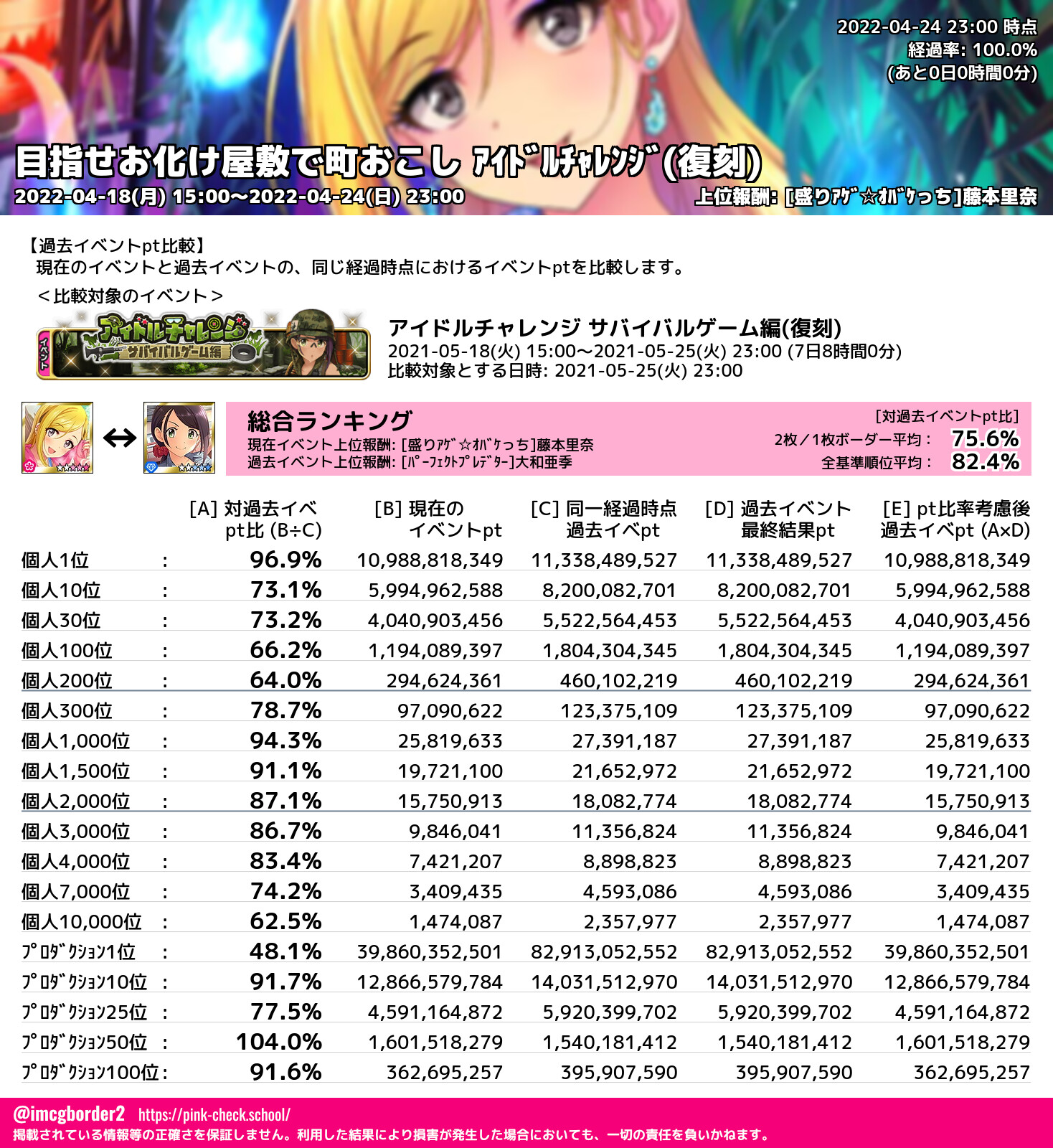 上位プロデューサースコア (2022-04-24 23:00 時点)