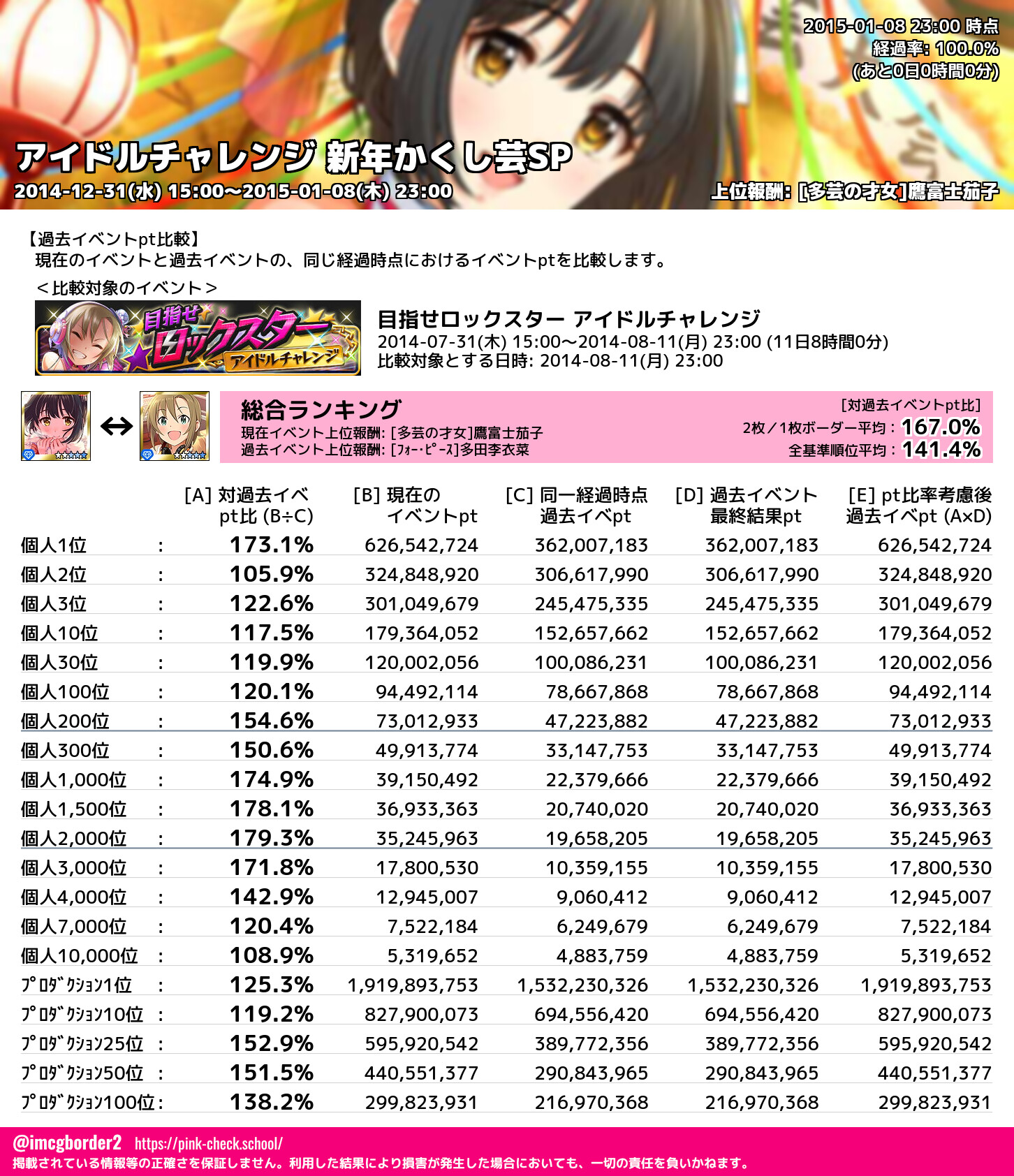 | 特記事項 | ※3日21時~4日14時過ぎまでランキング閲覧不具合のため未取得 |